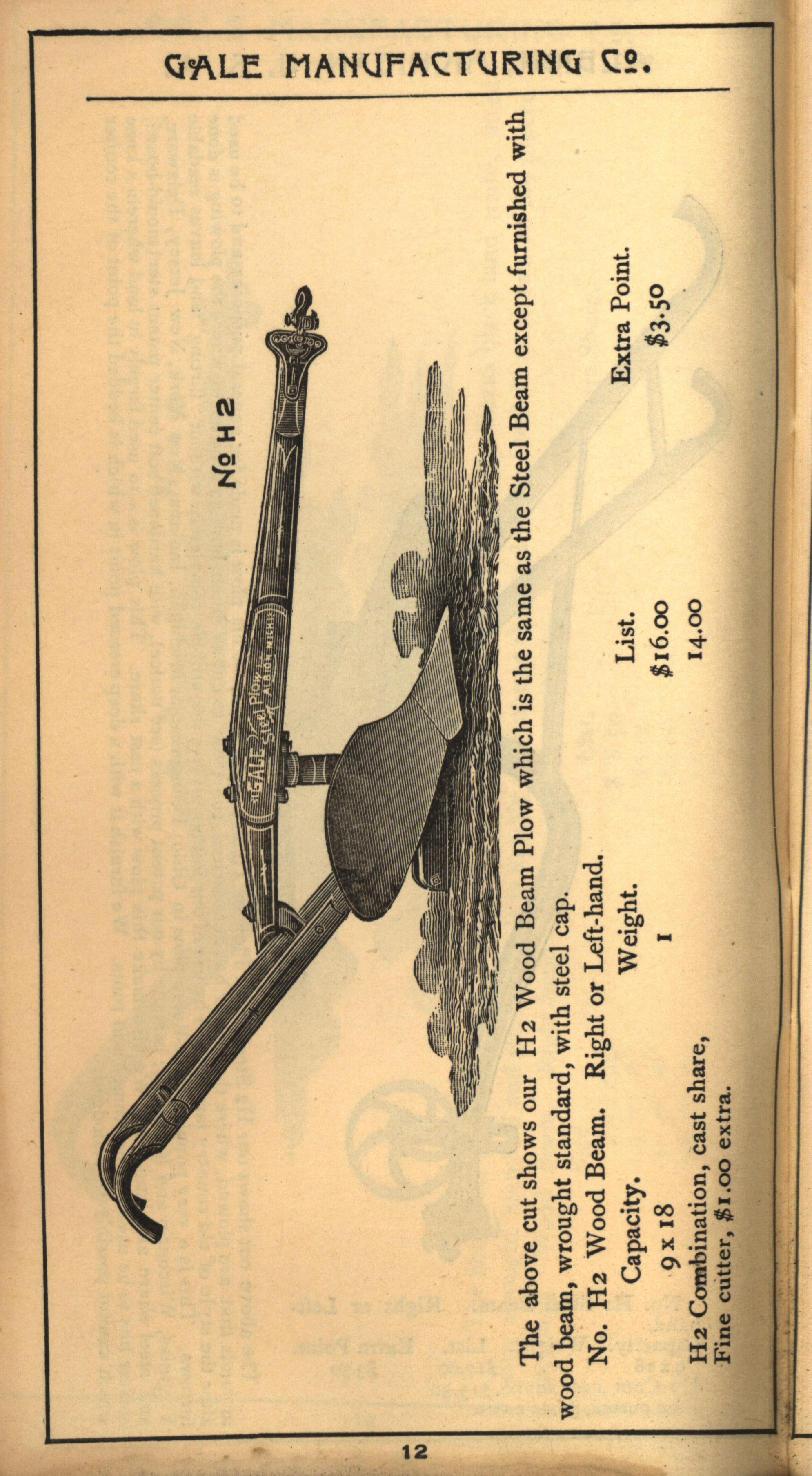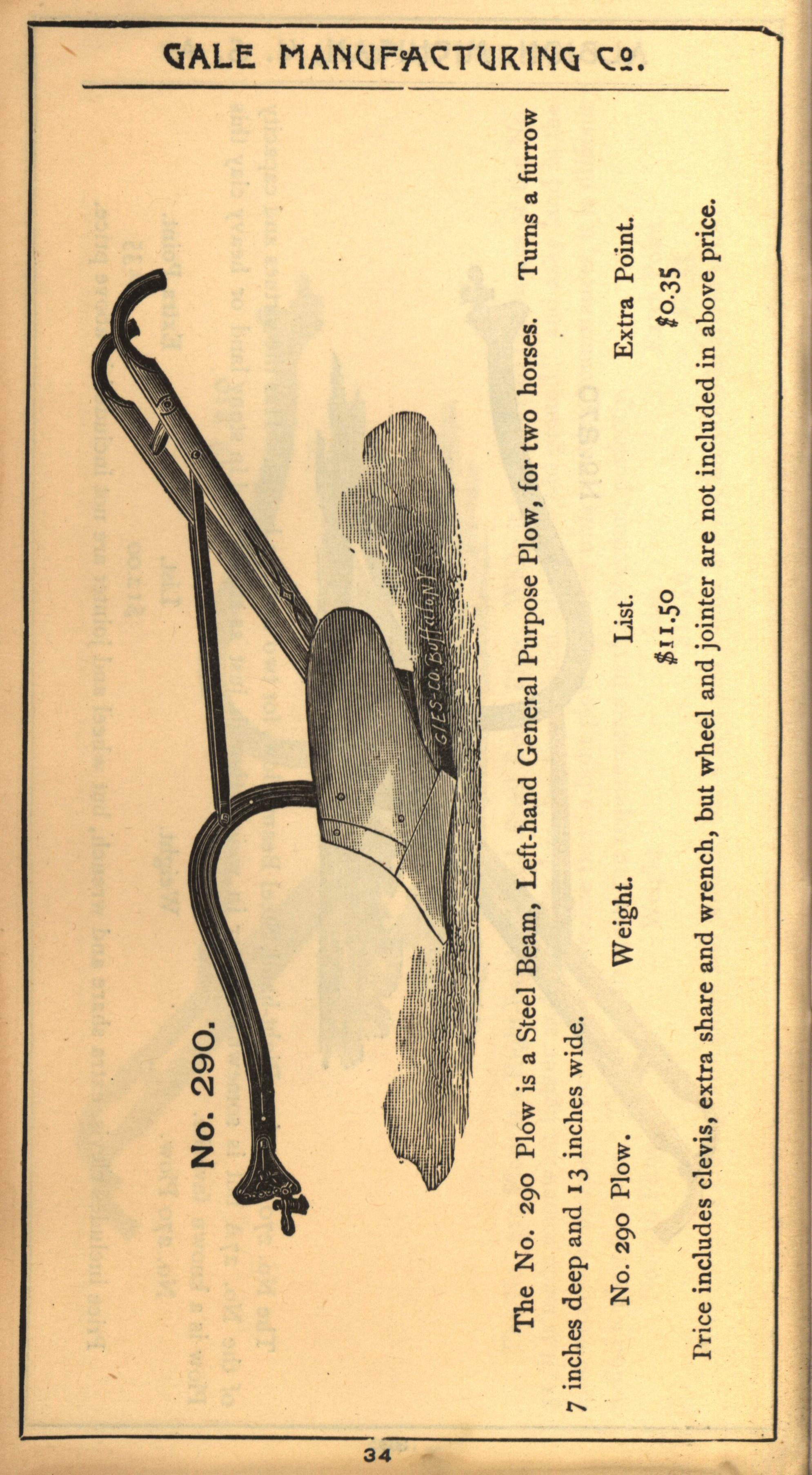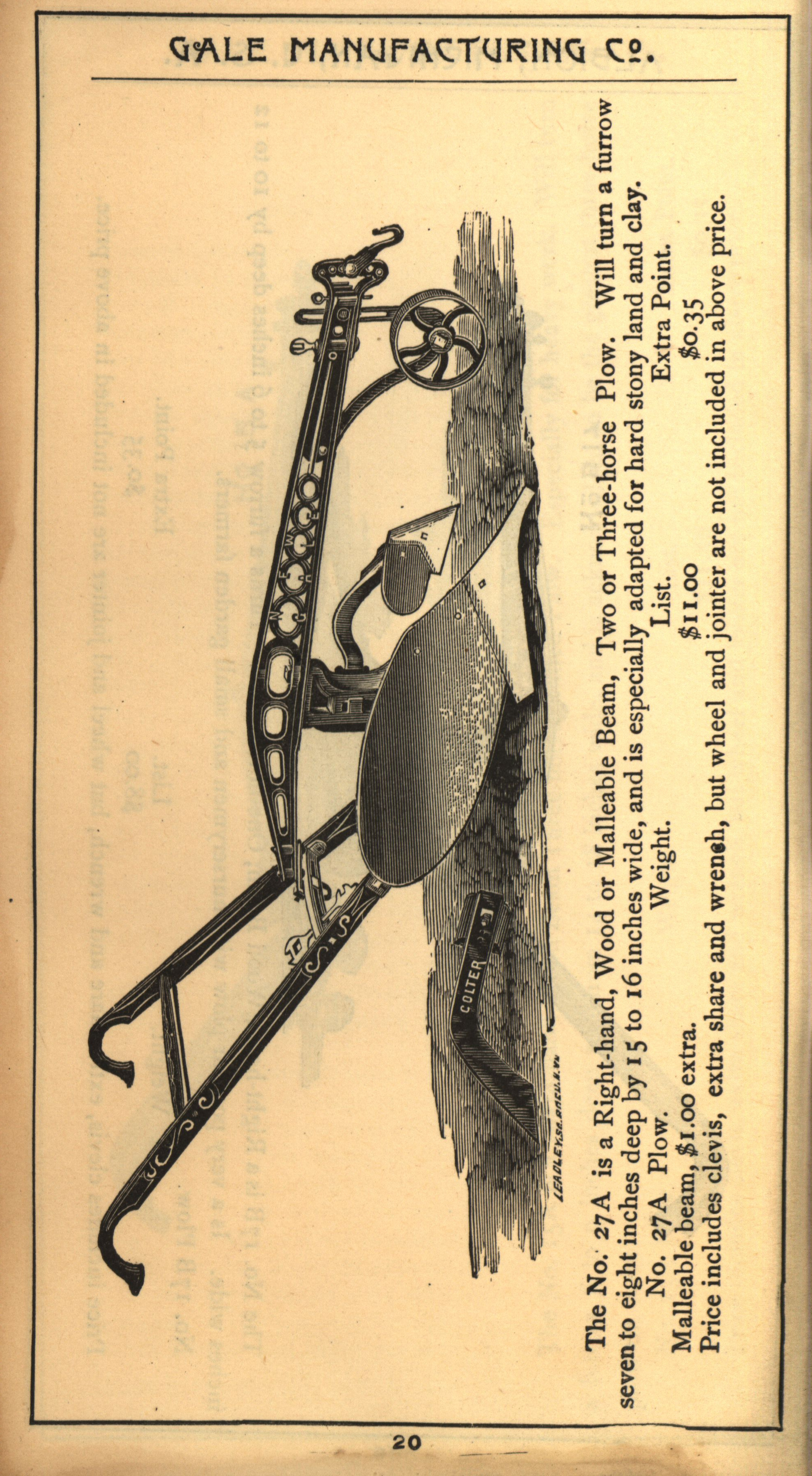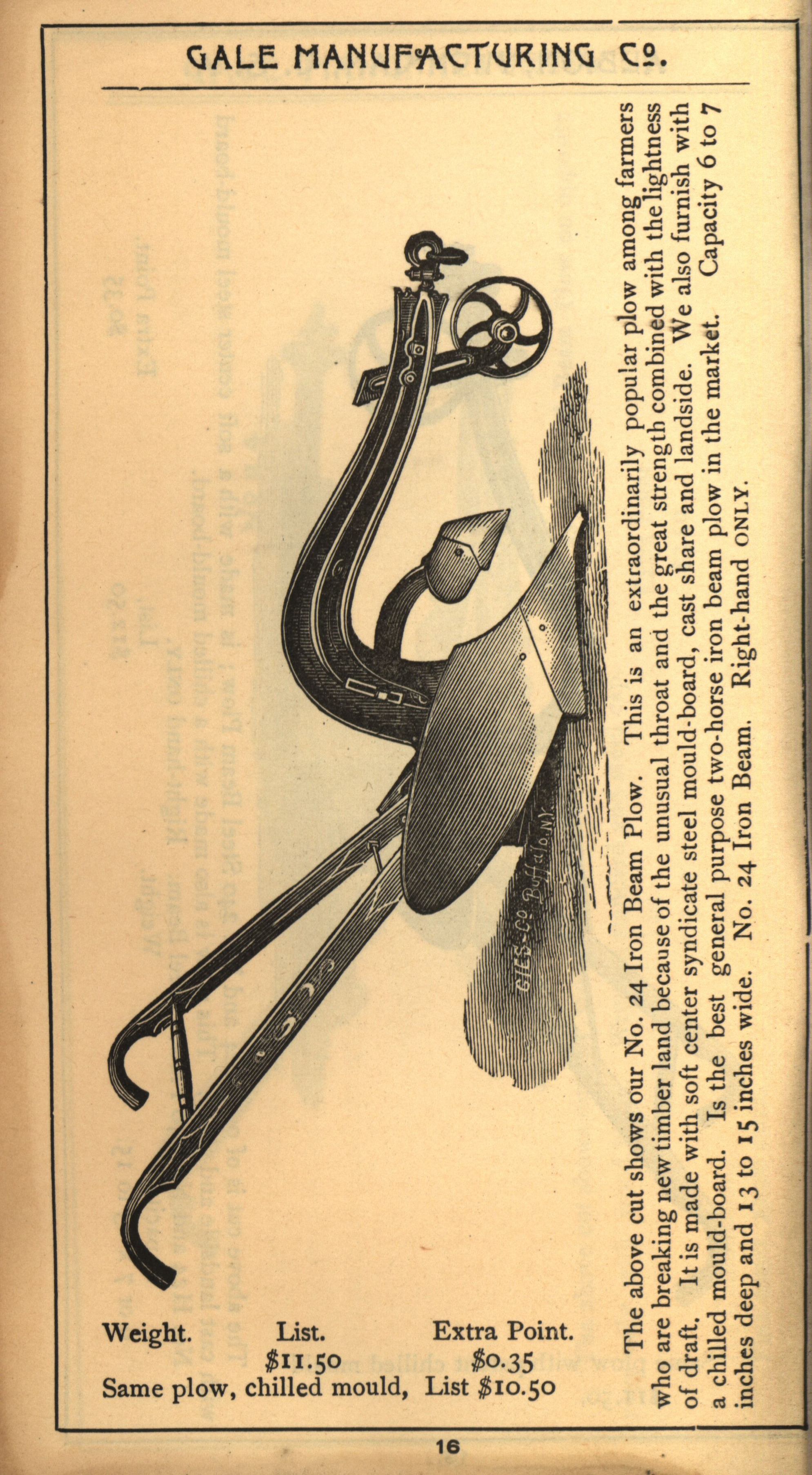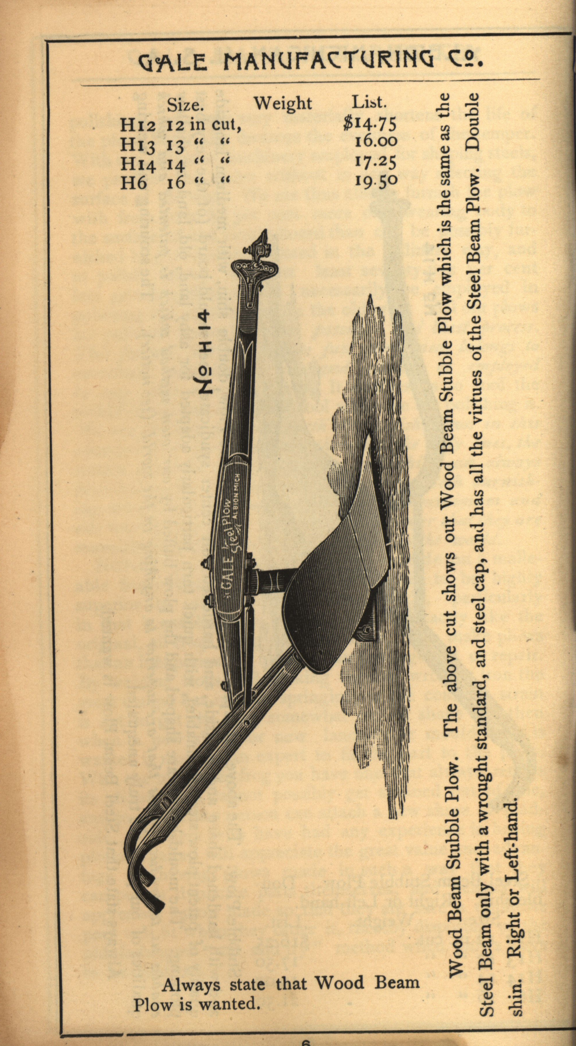 - Illustrated catalog for the plows offered by the Gale Manufacturing Company.
