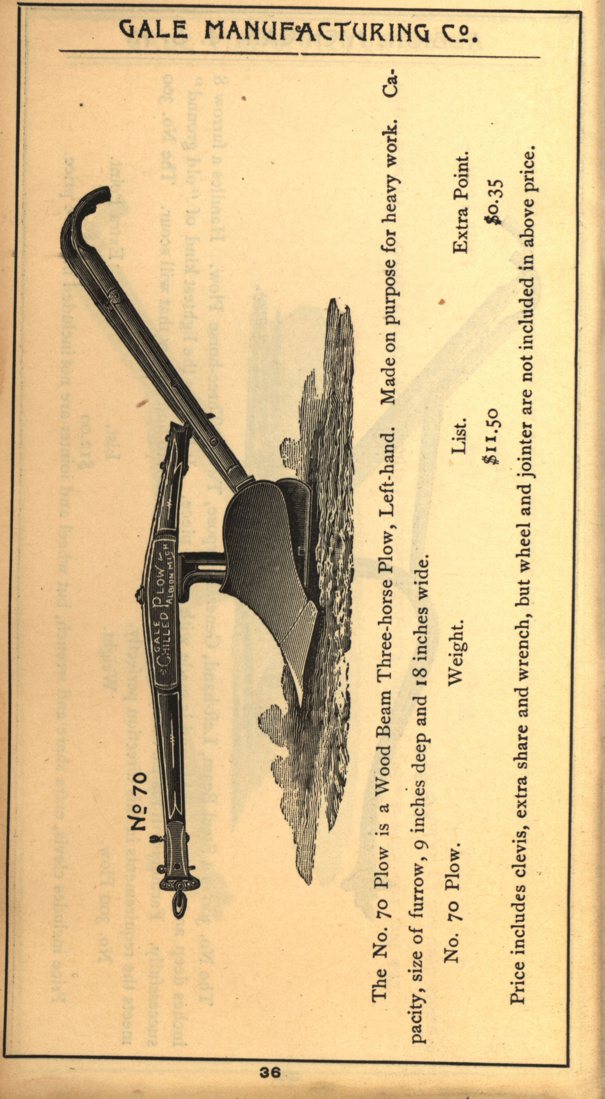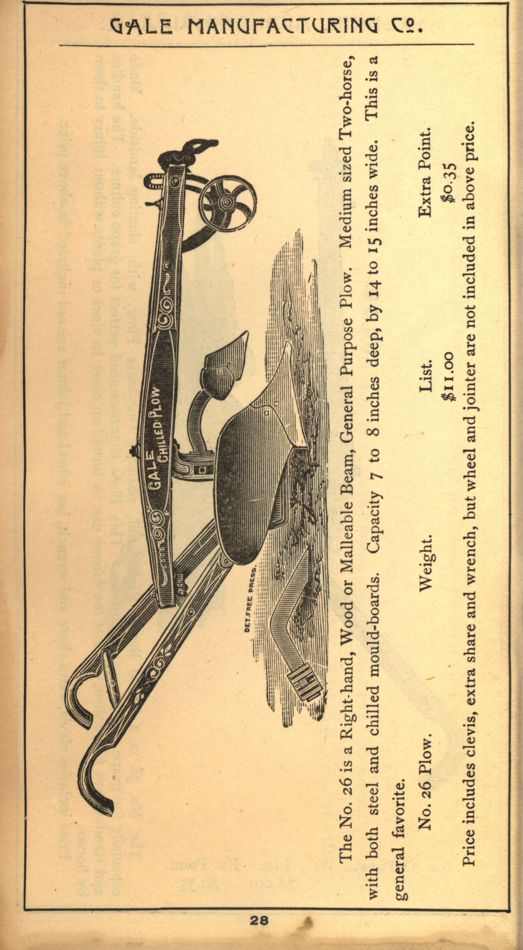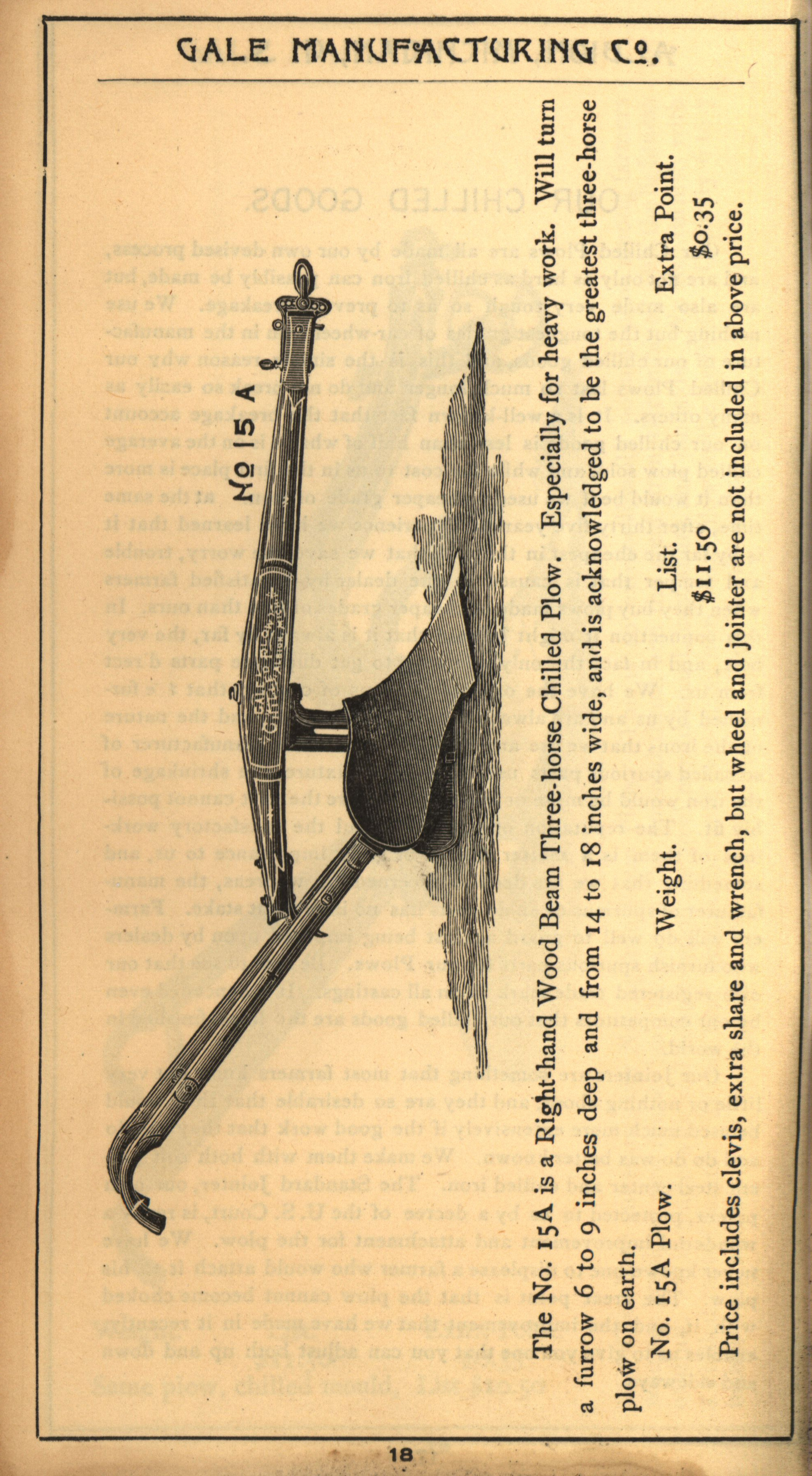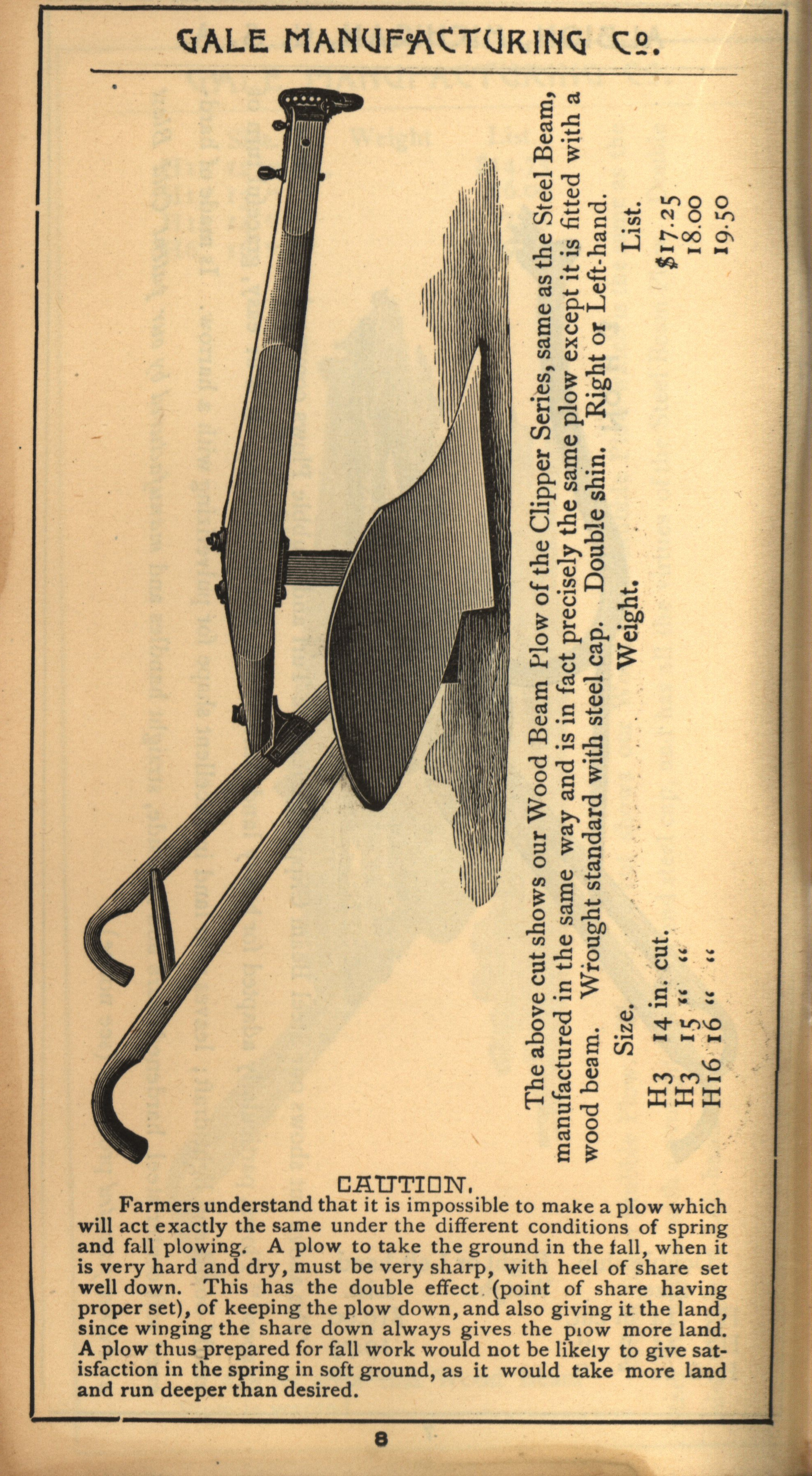 - Illustrated catalog for the plows offered by the Gale Manufacturing Company.