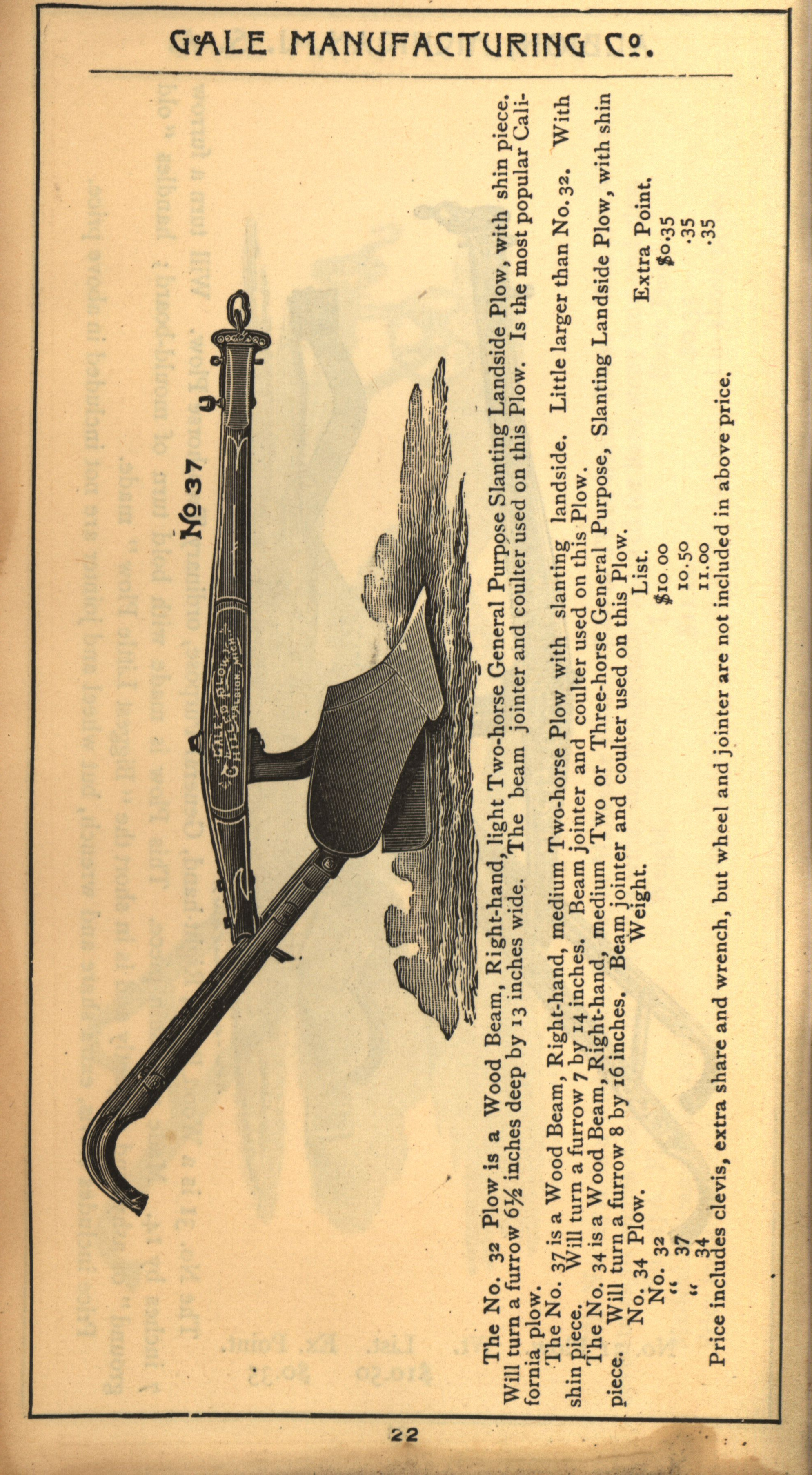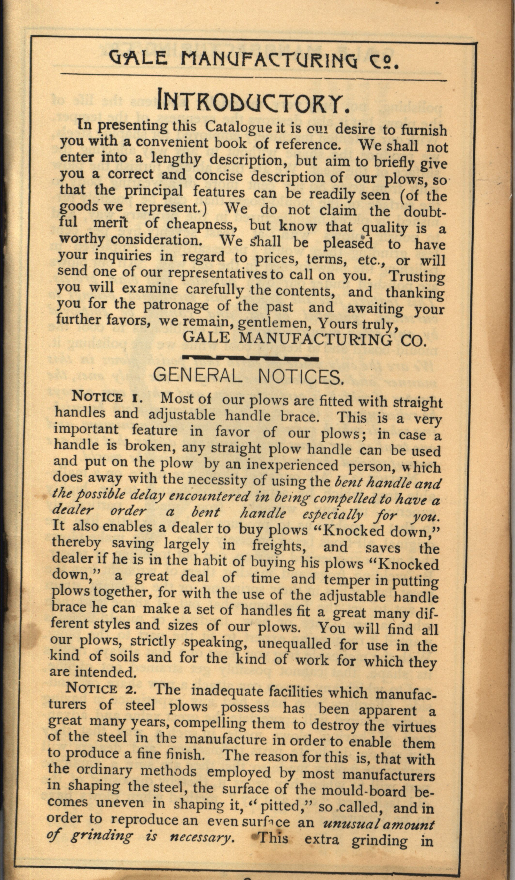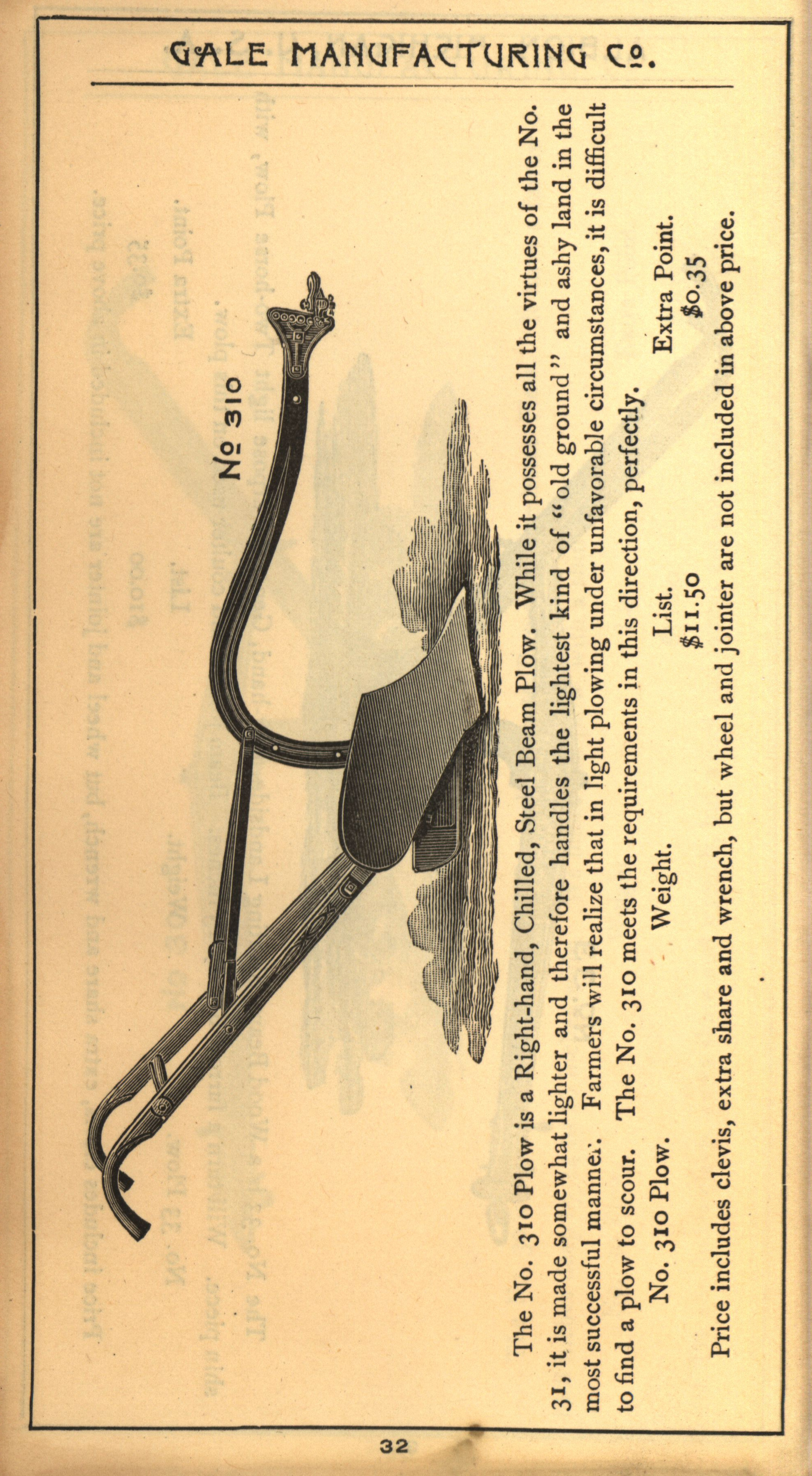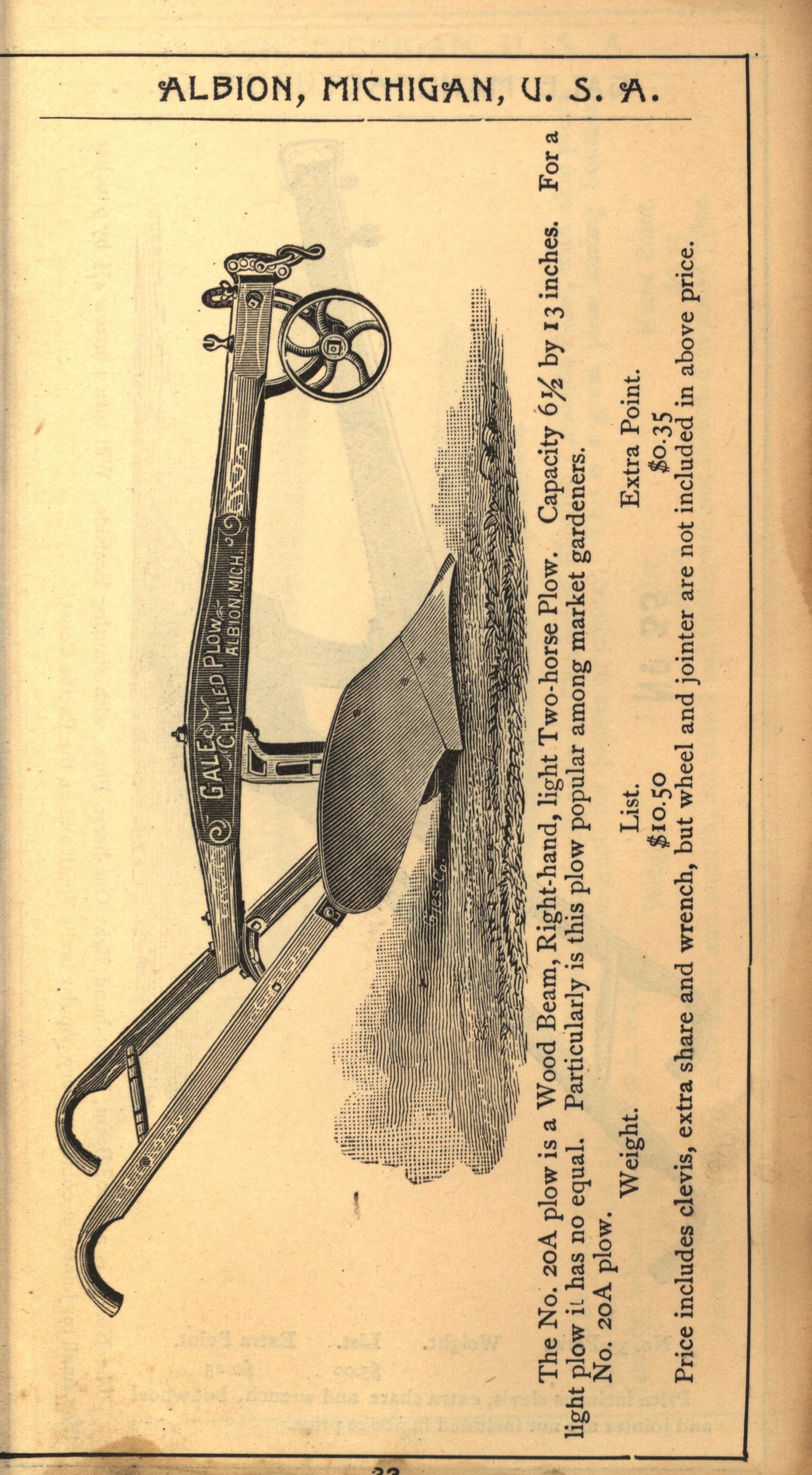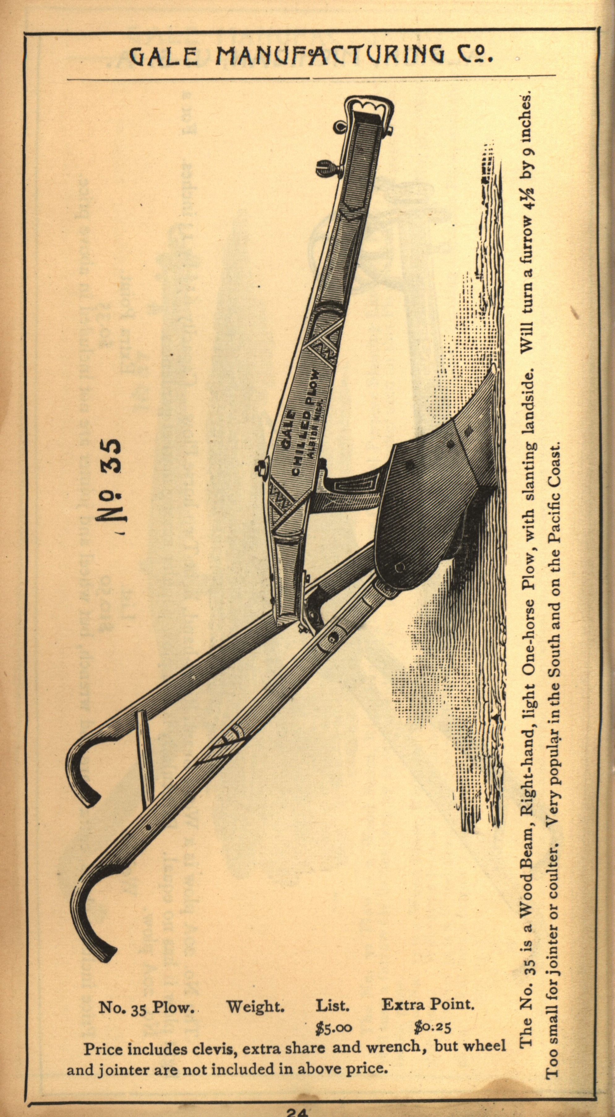 - Illustrated catalog for the plows offered by the Gale Manufacturing Company.