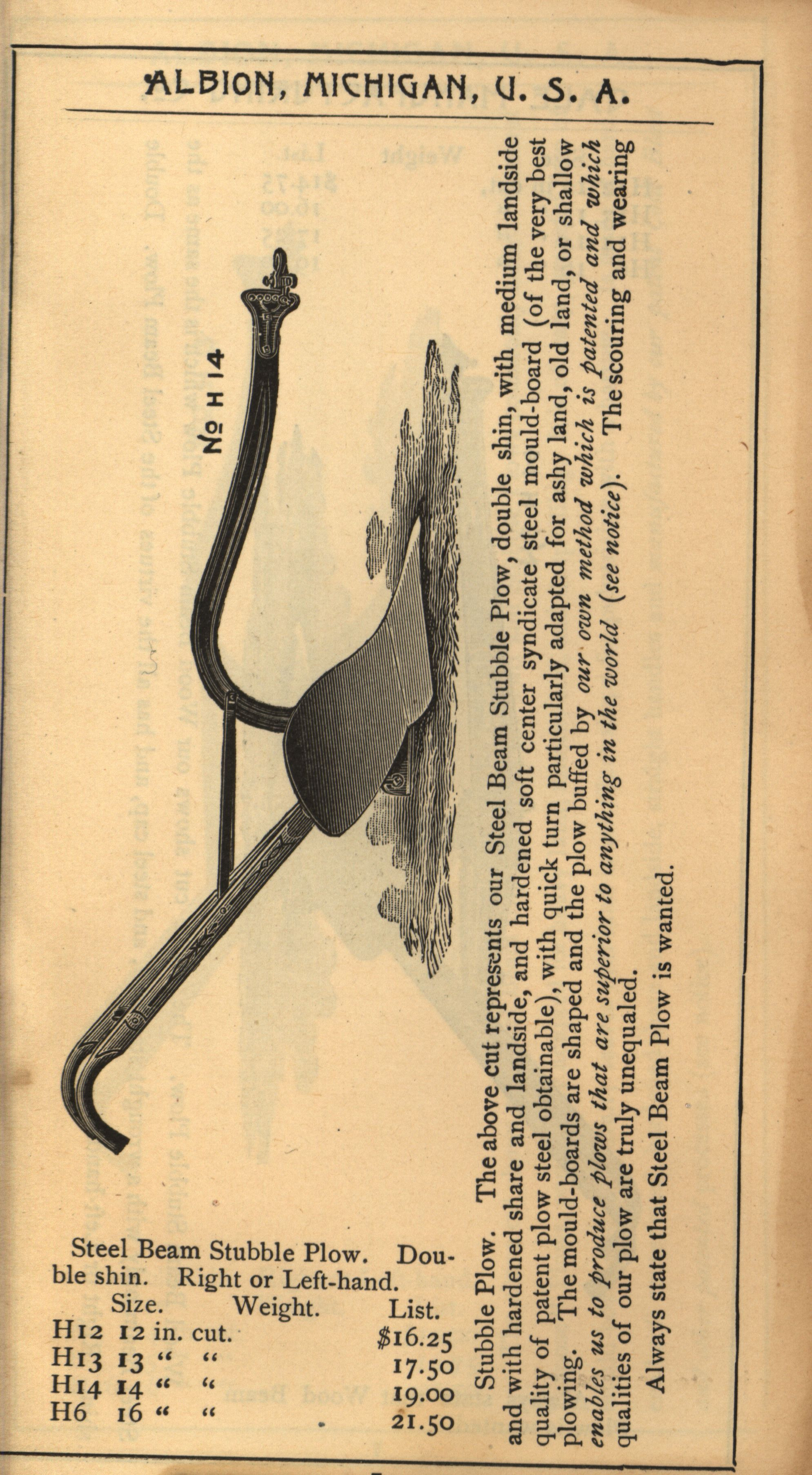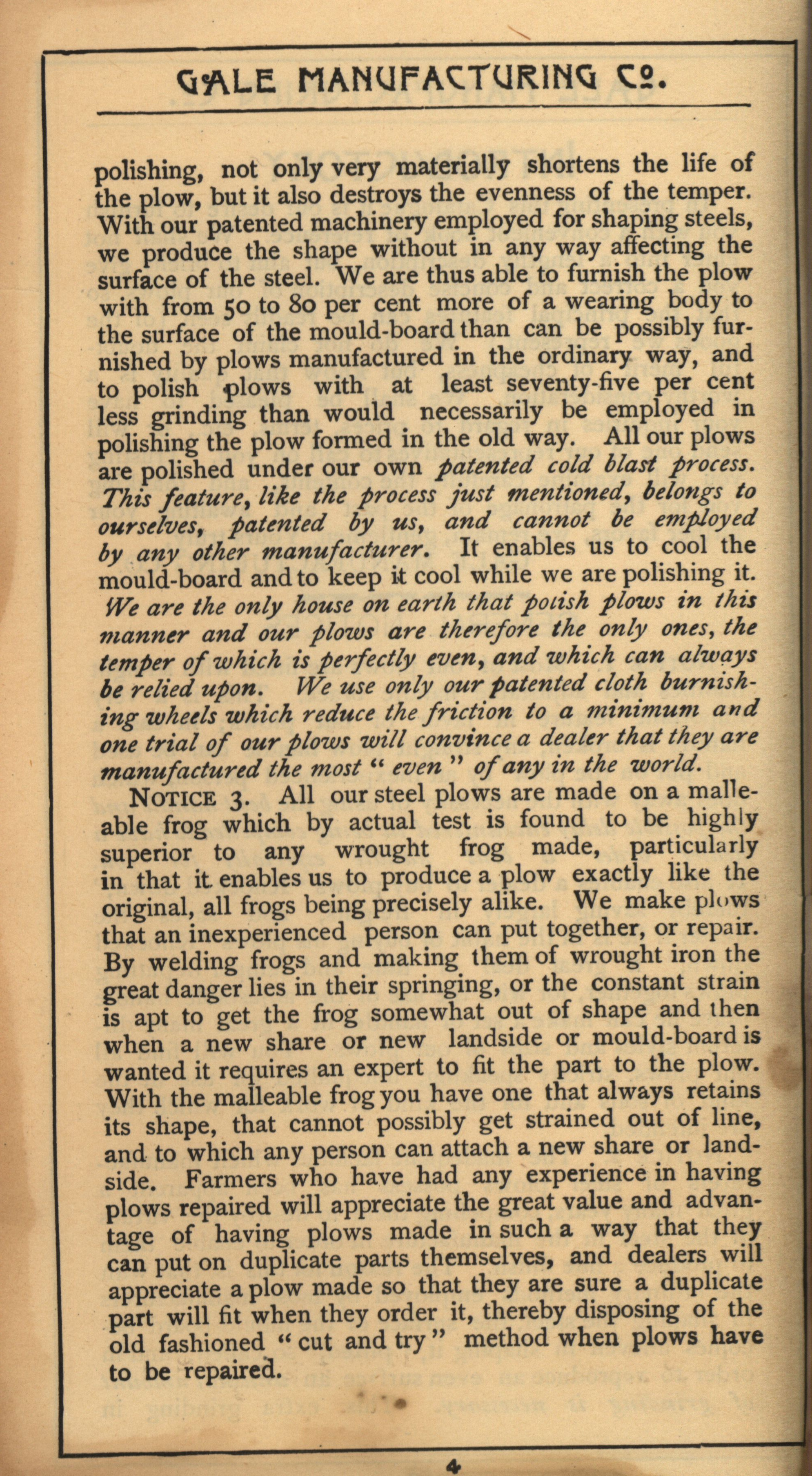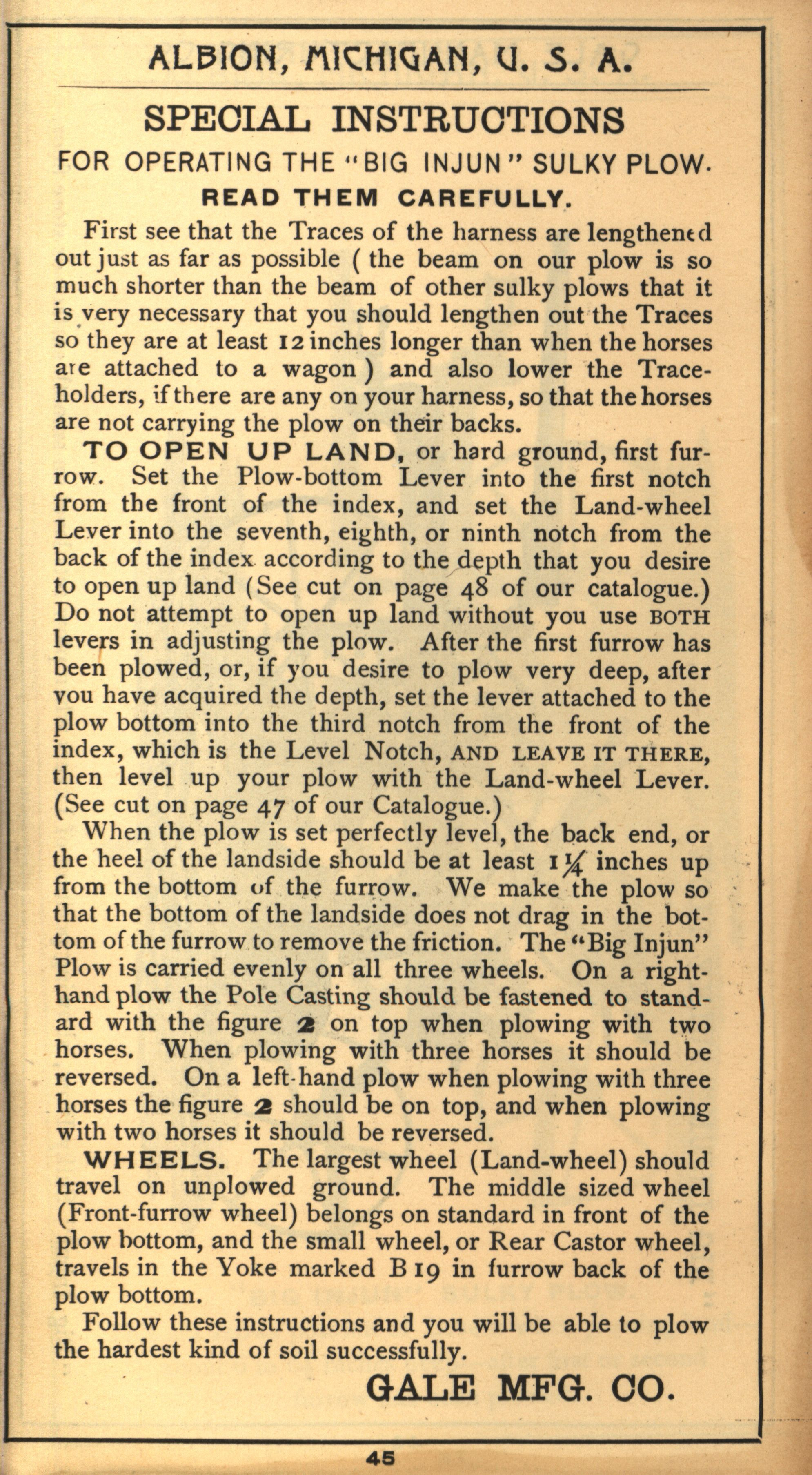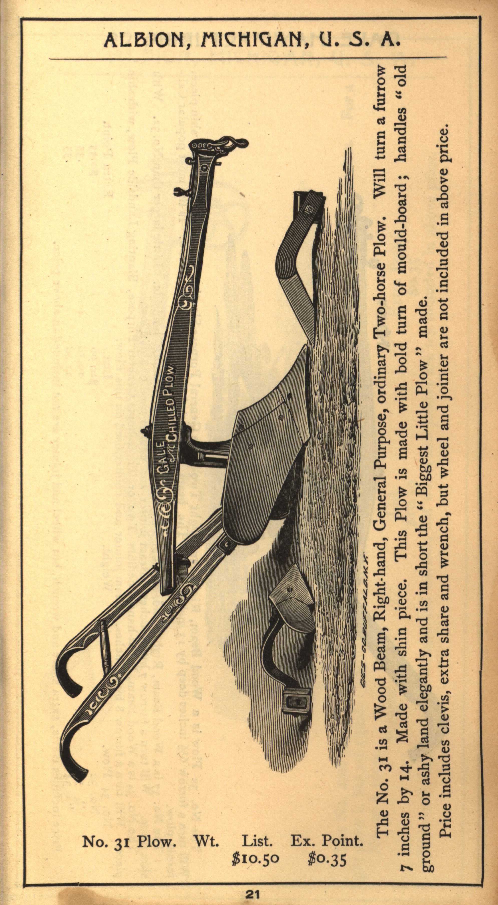 - Illustrated catalog for the plows offered by the Gale Manufacturing Company.