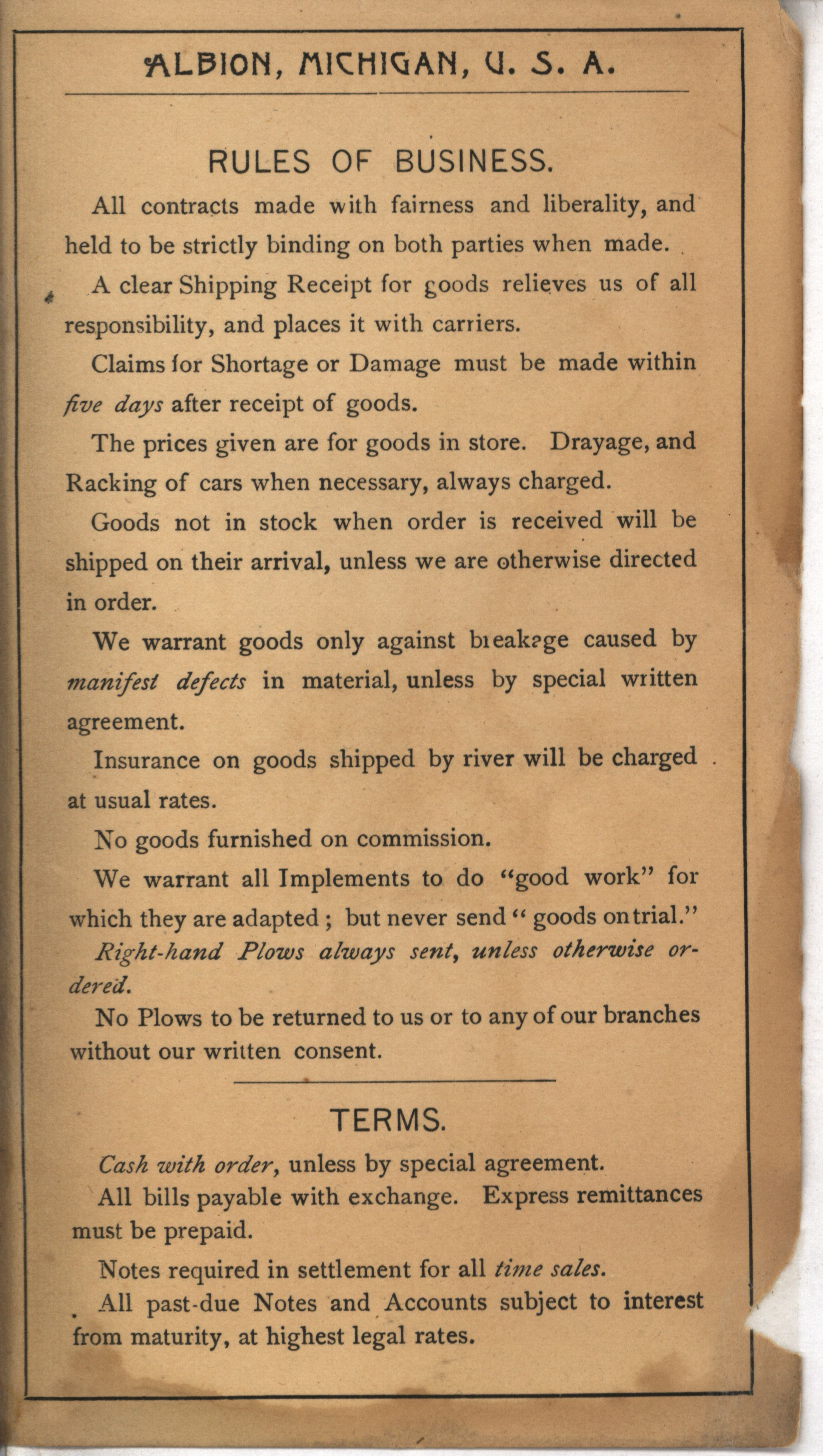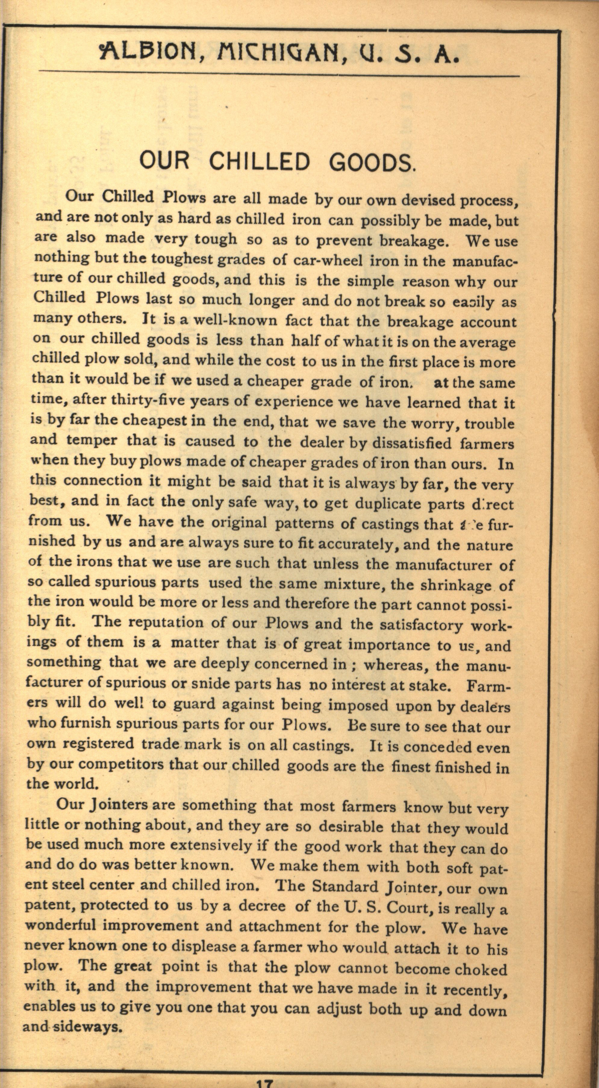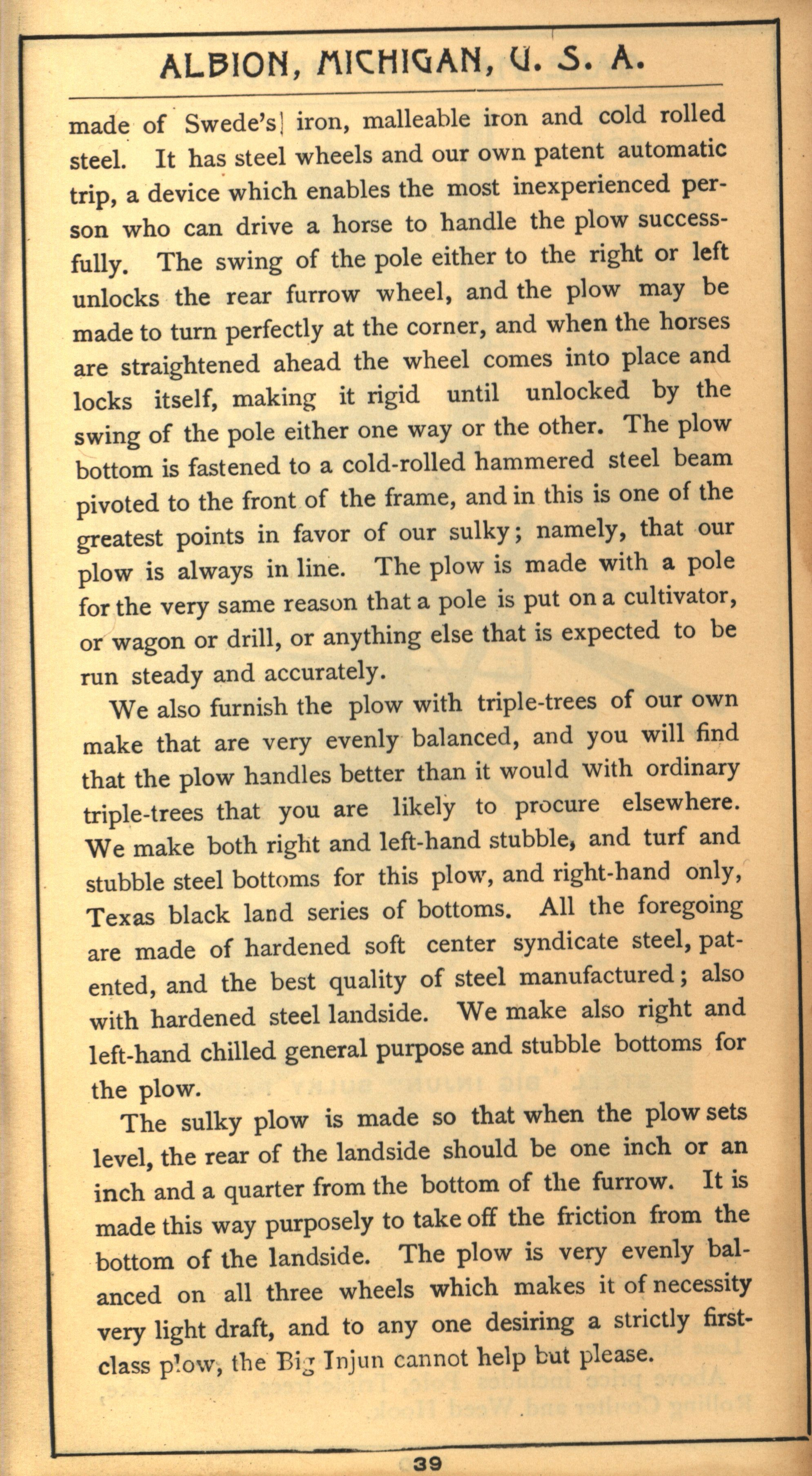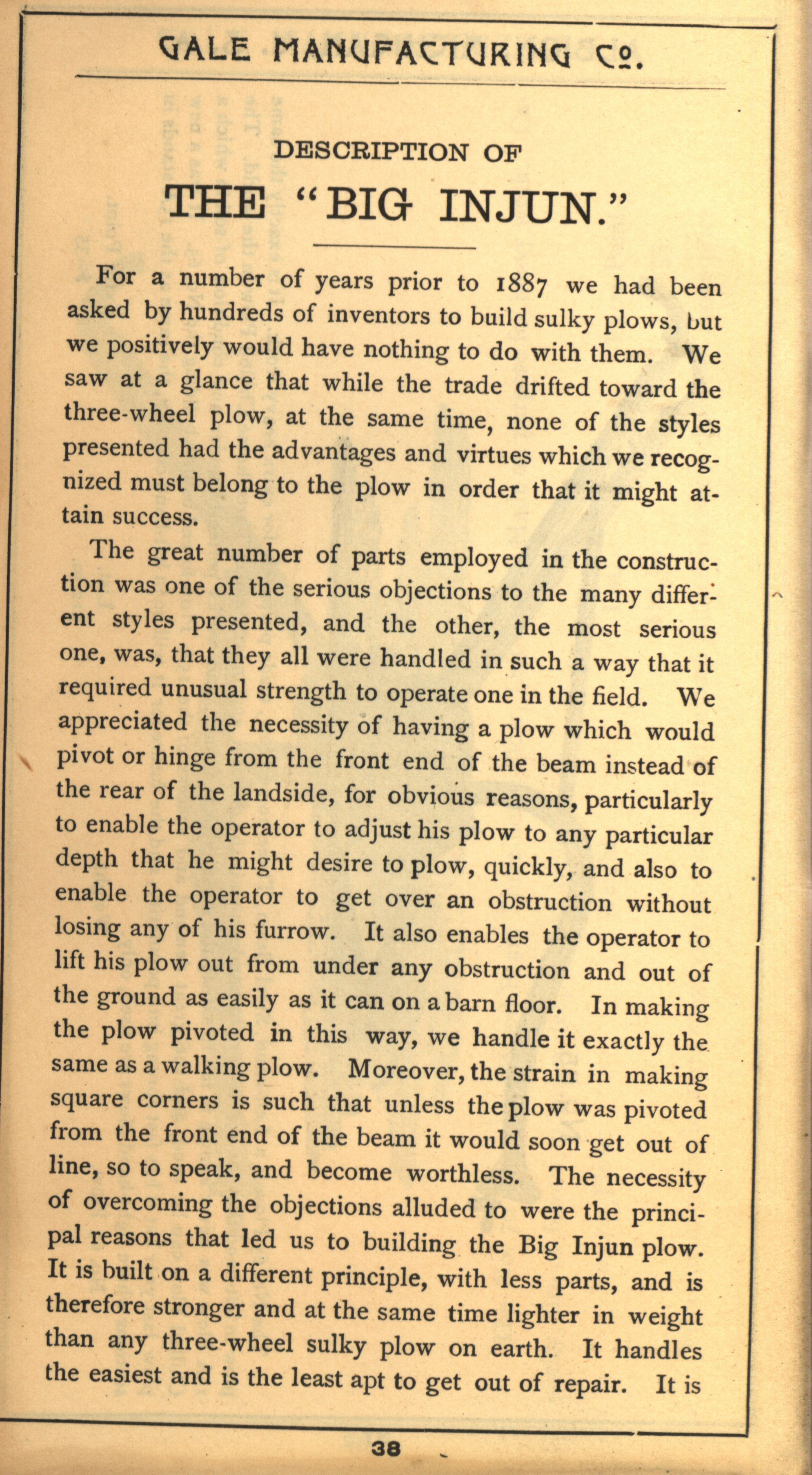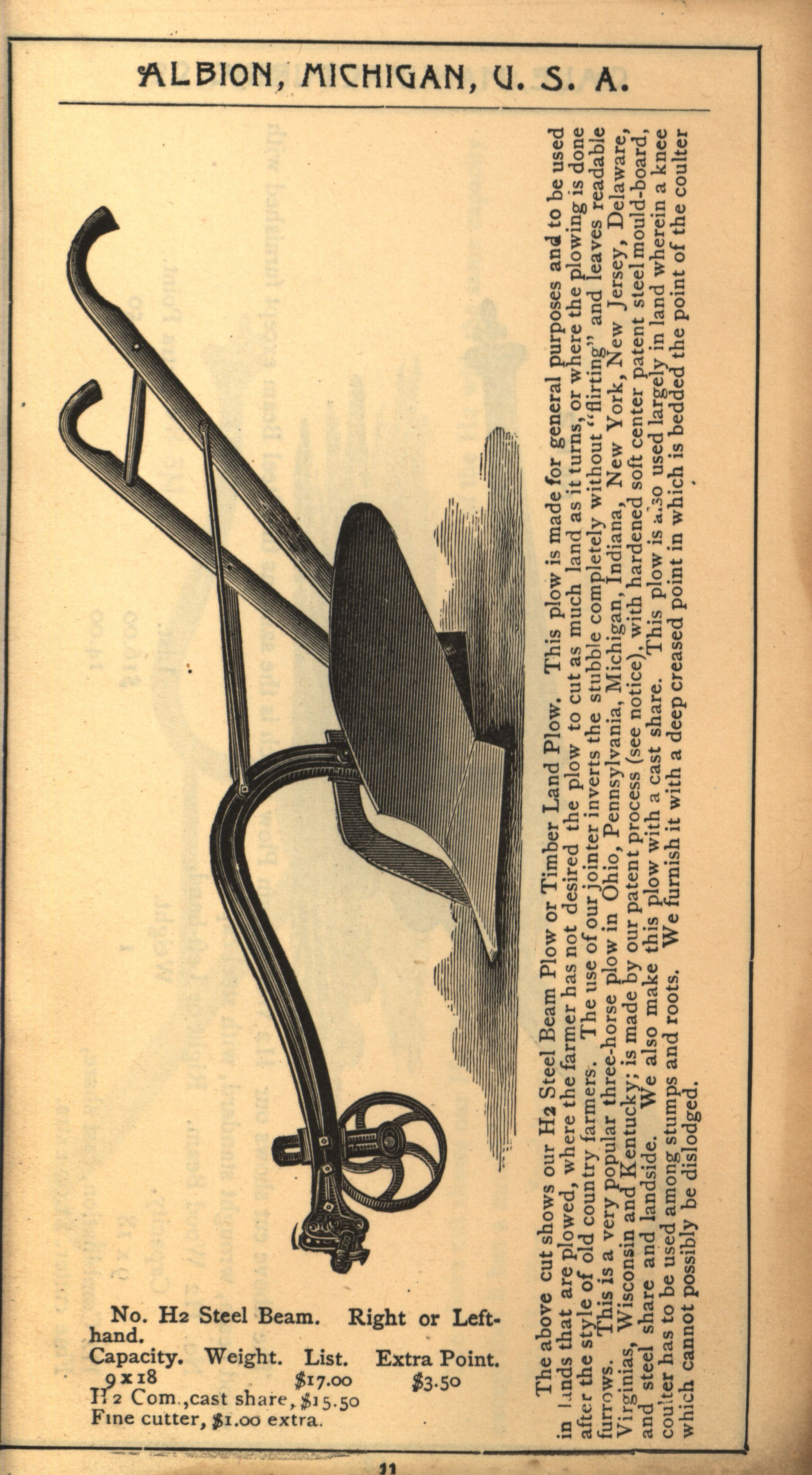 - Illustrated catalog for the plows offered by the Gale Manufacturing Company.