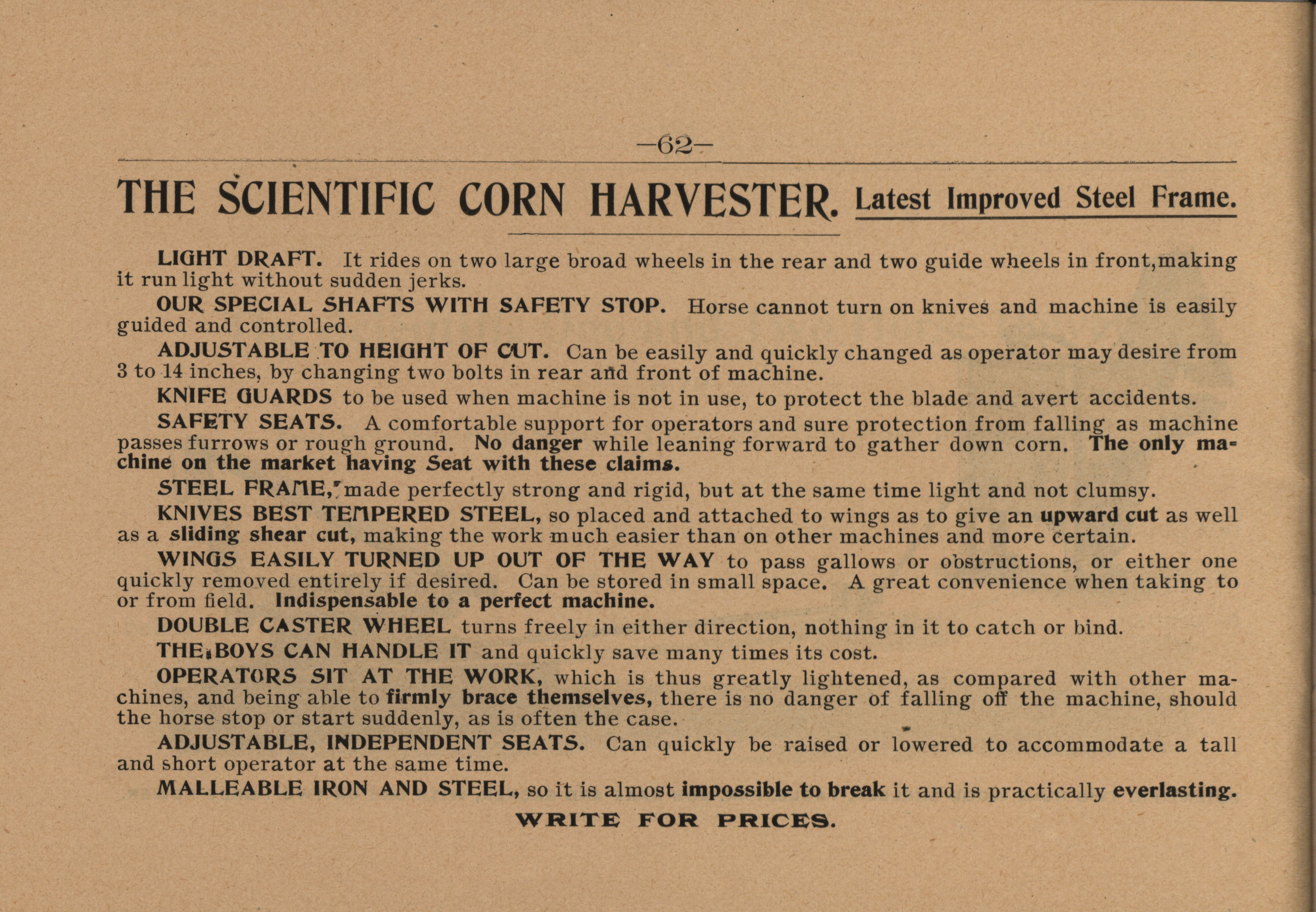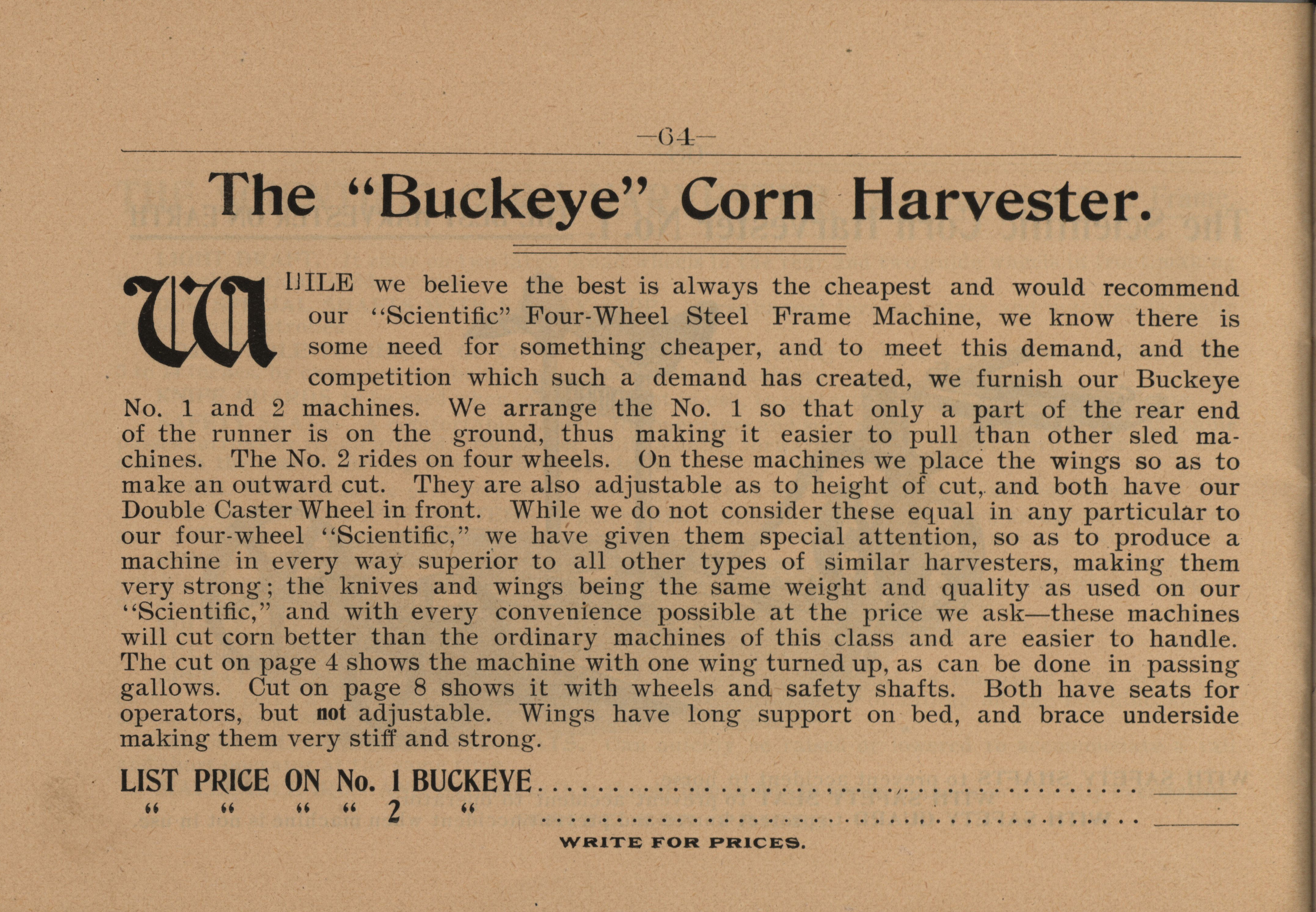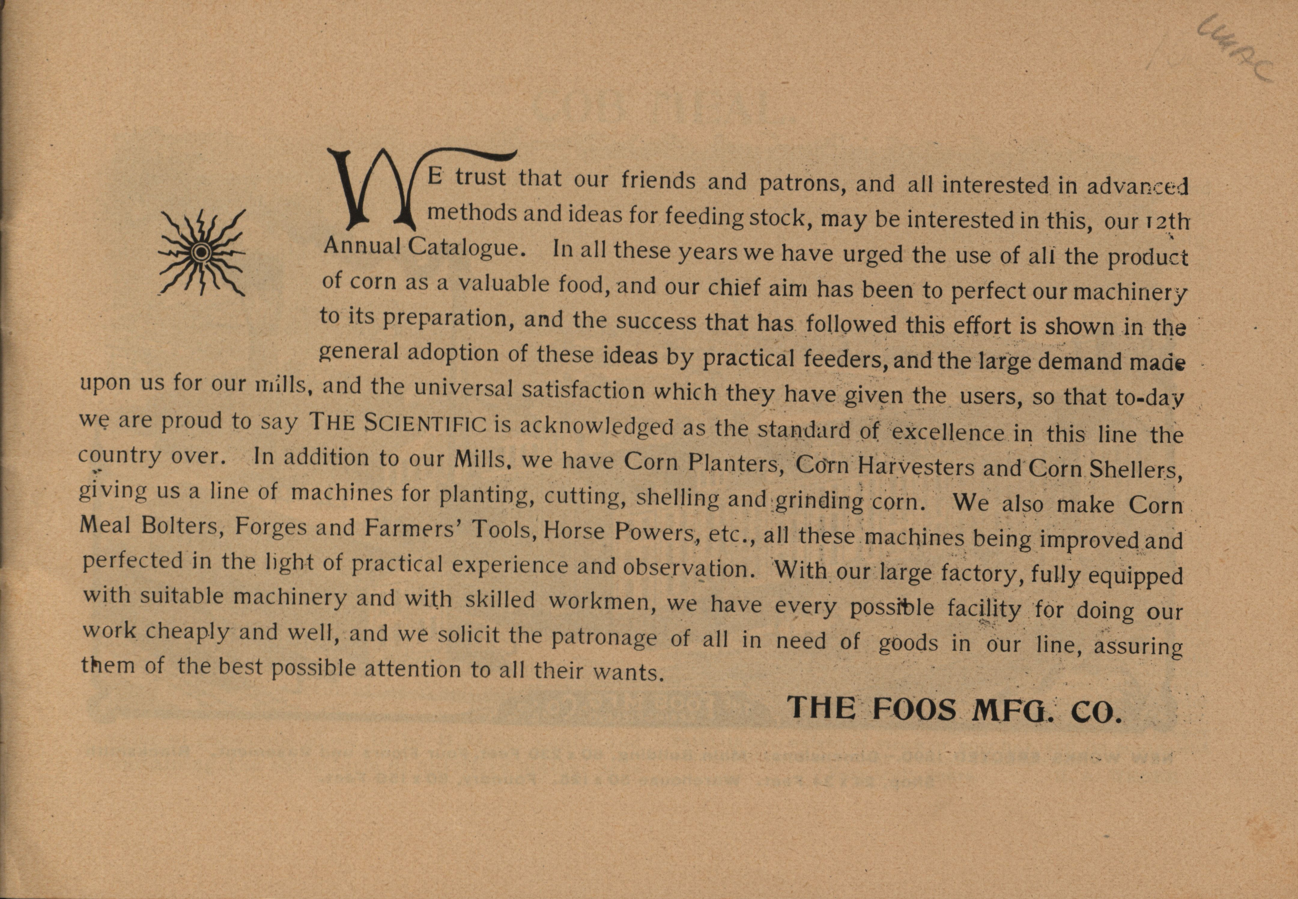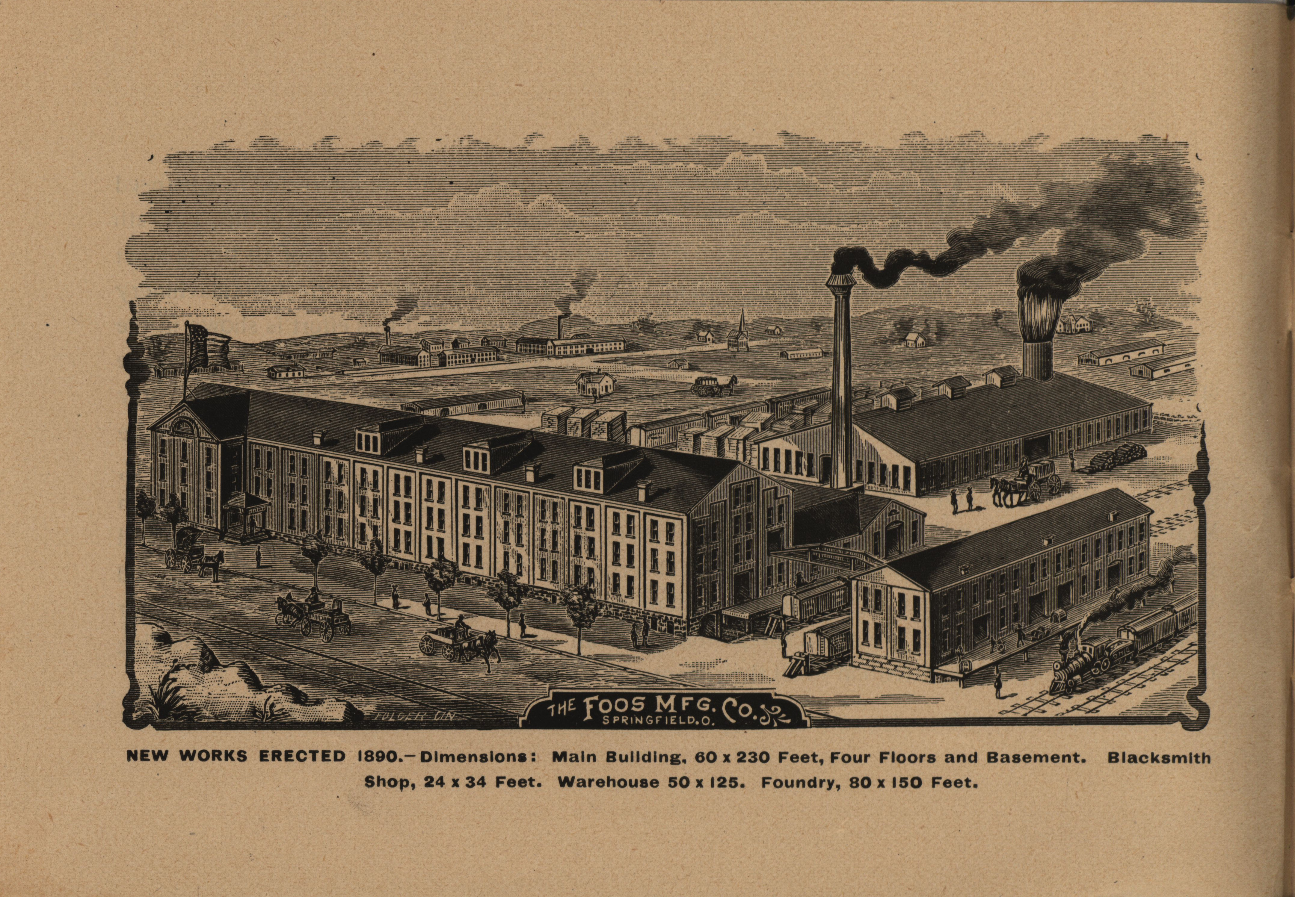 - Illustrated catalog describing the farmers tools and agricultural implements offered by The Foos Manufacturing Company.