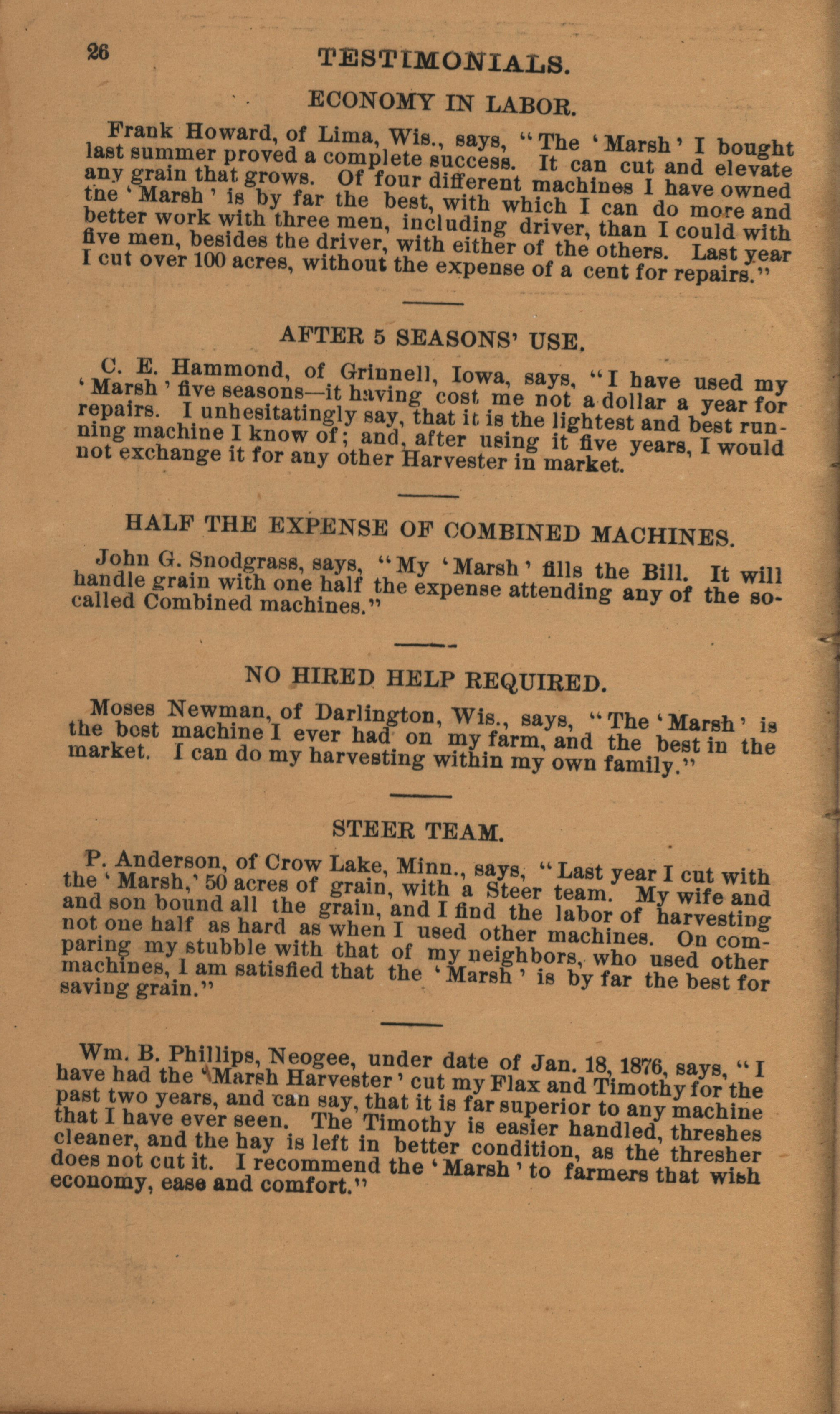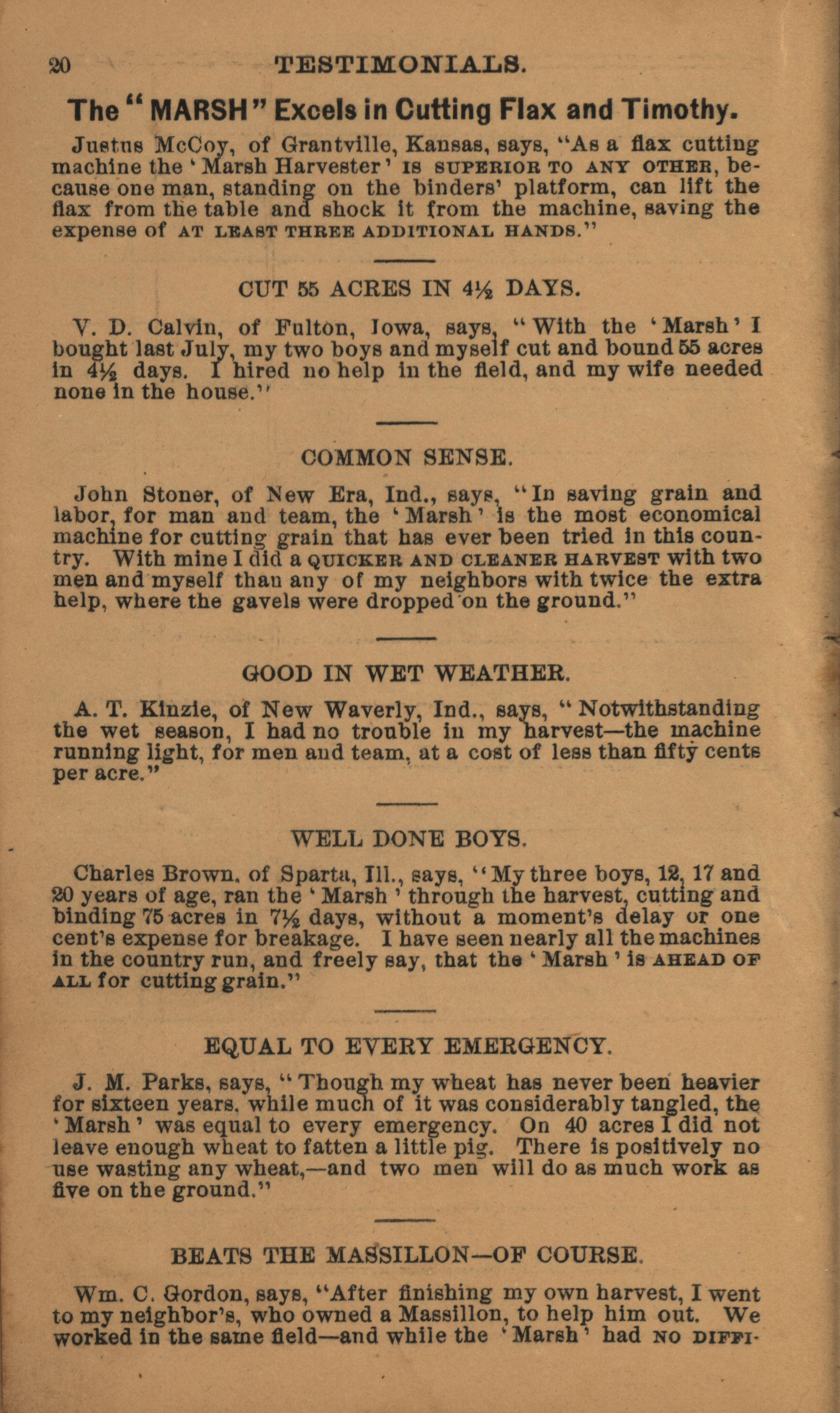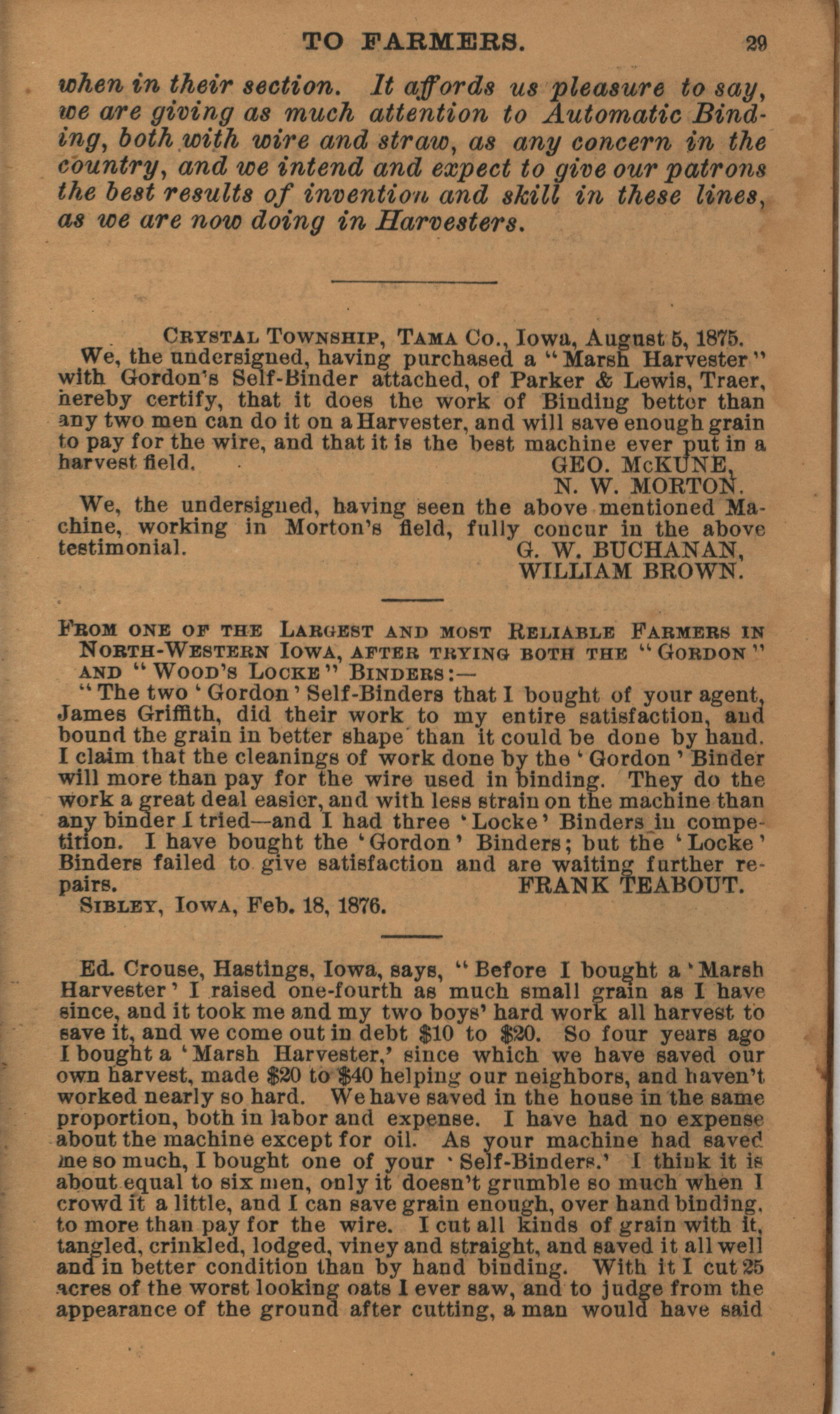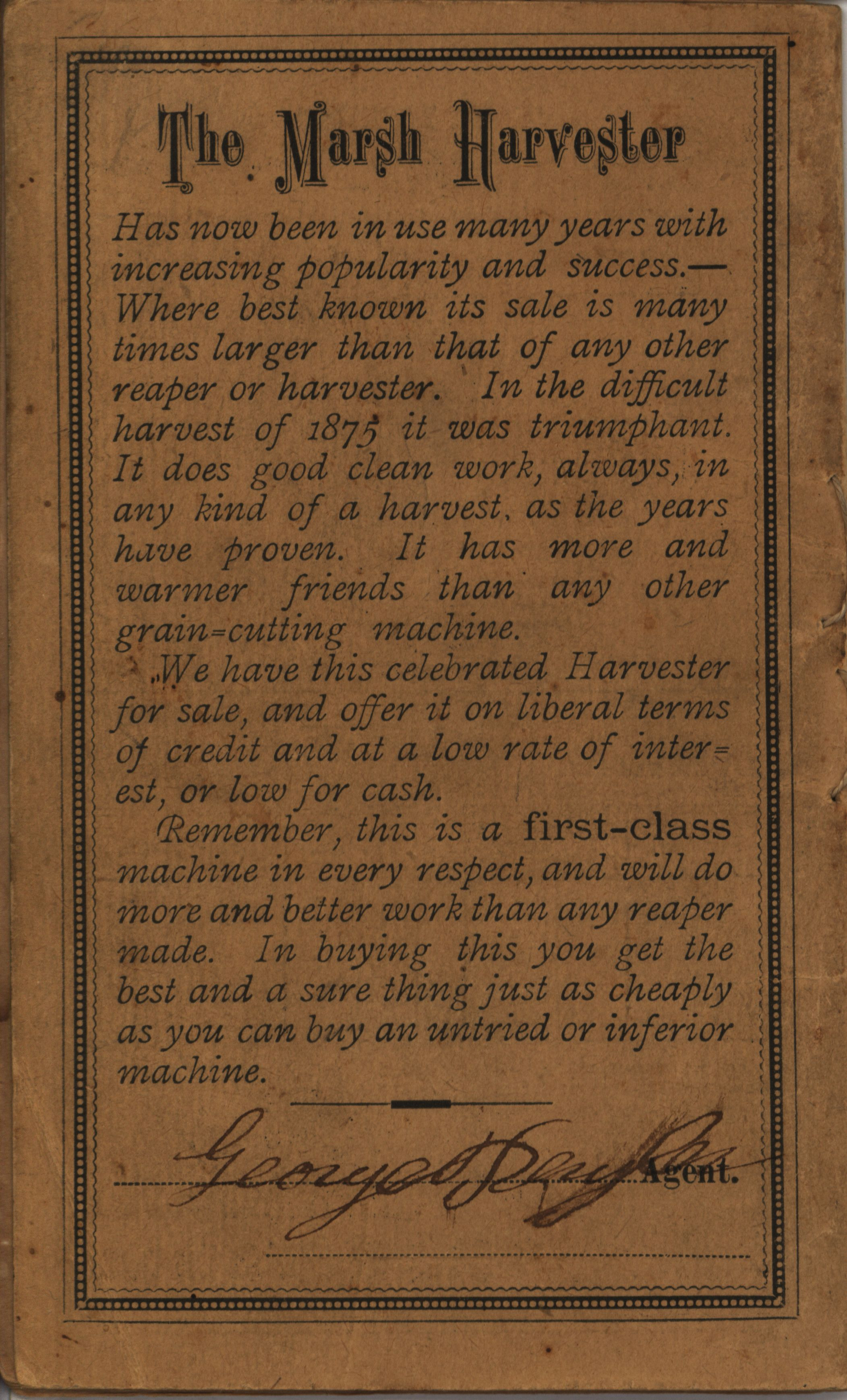 - "Gammon and Deering Manufacturers 1876 farmers memorandum book", Agricultural Machinery Literature Collection, Iowa State University Library Digital Collections
