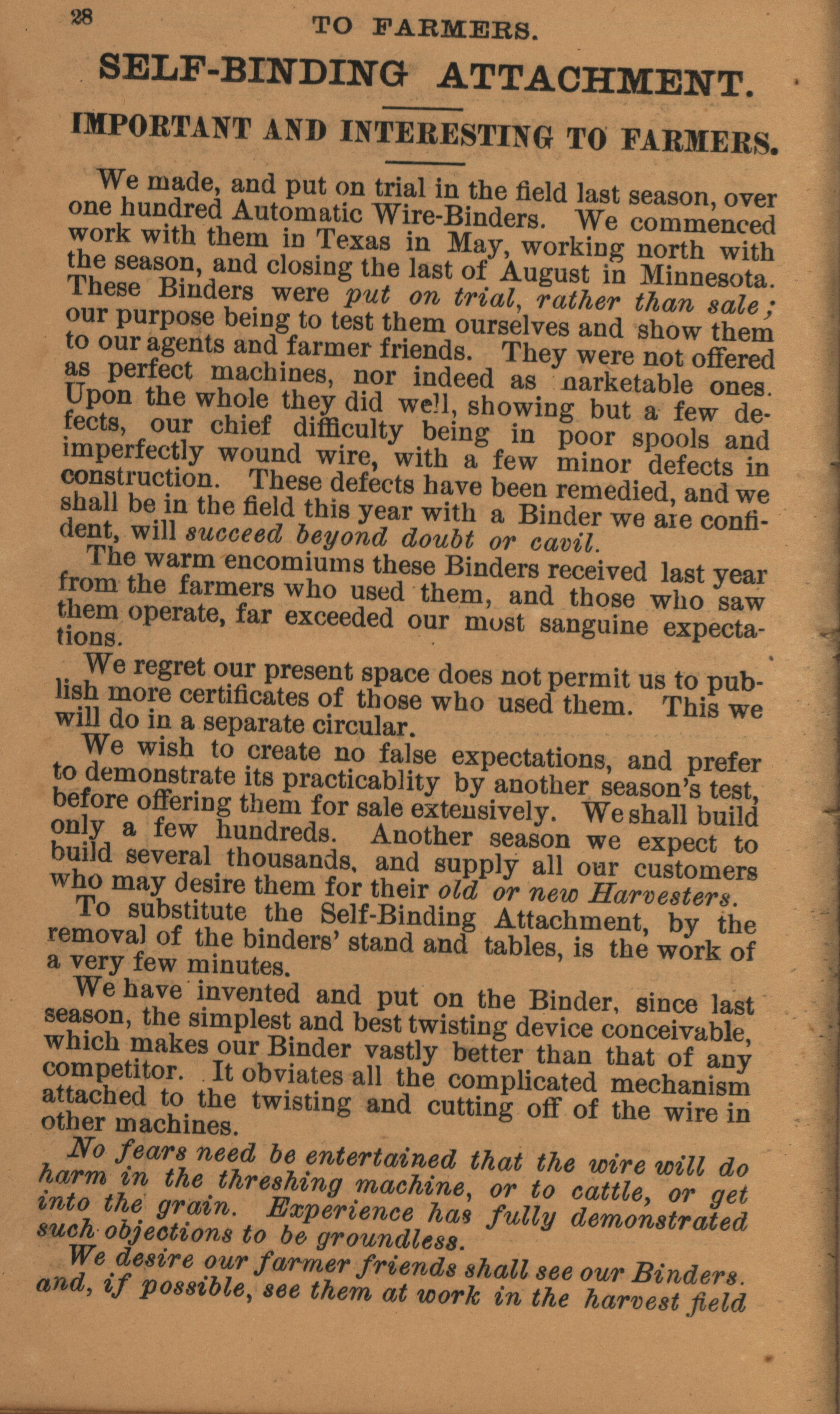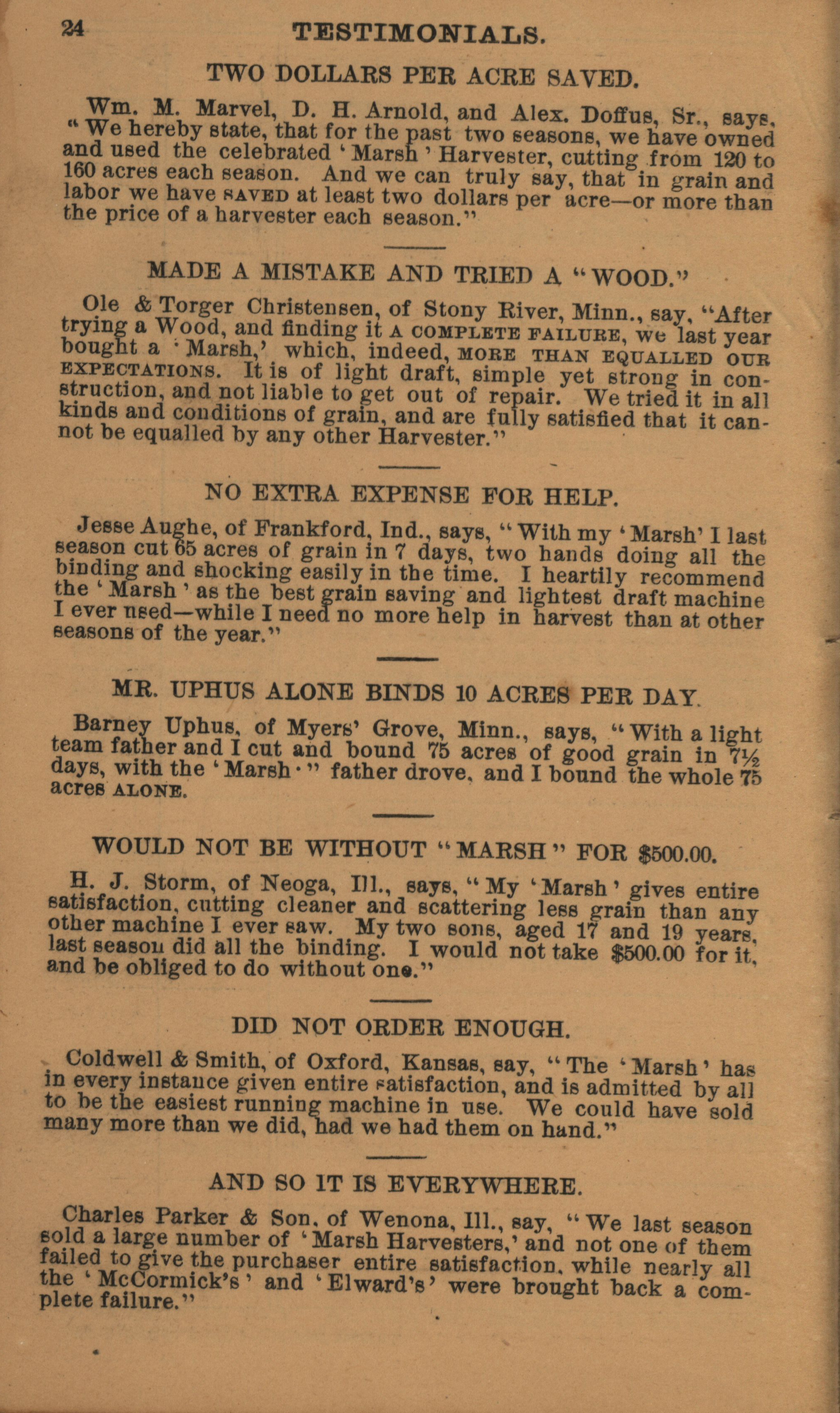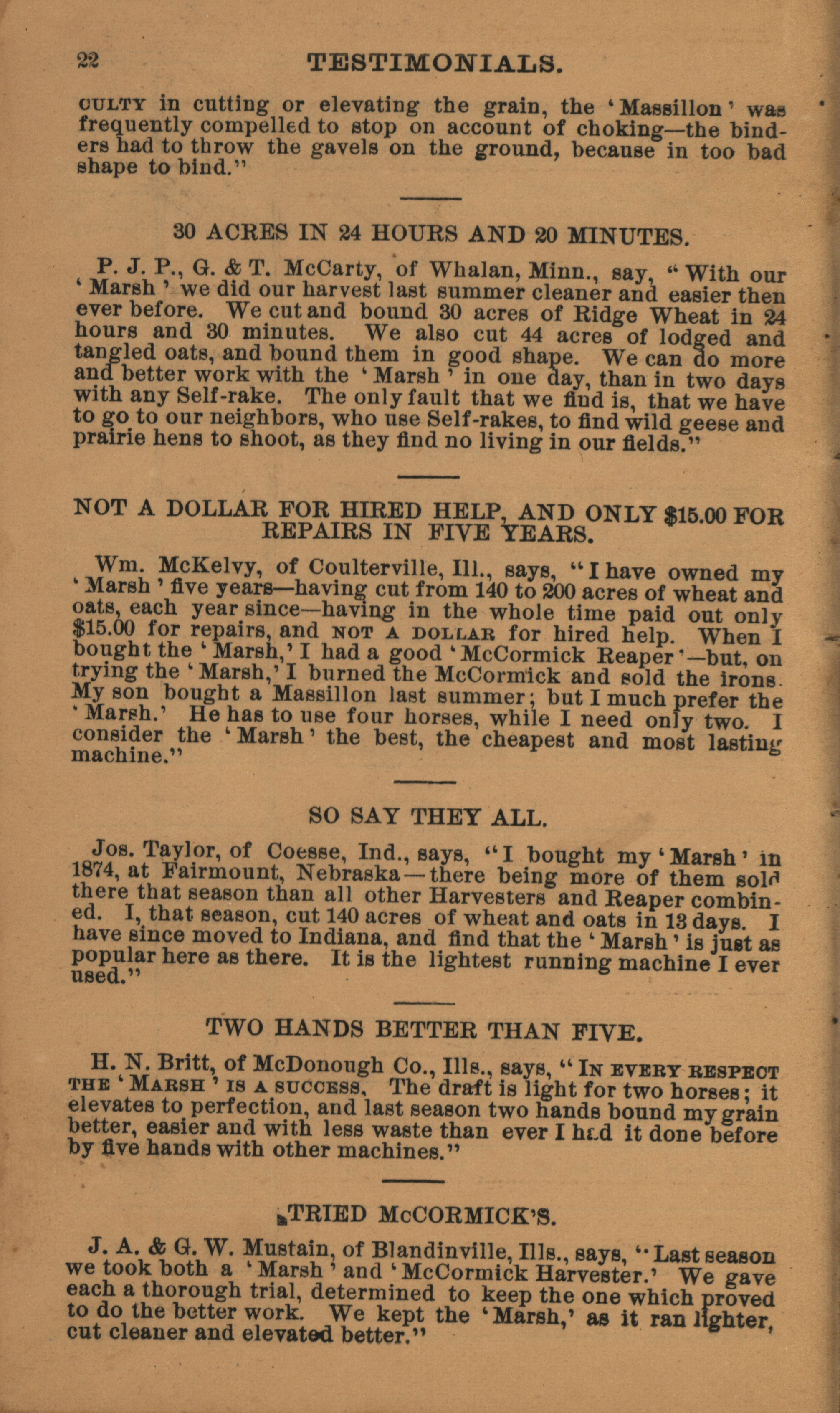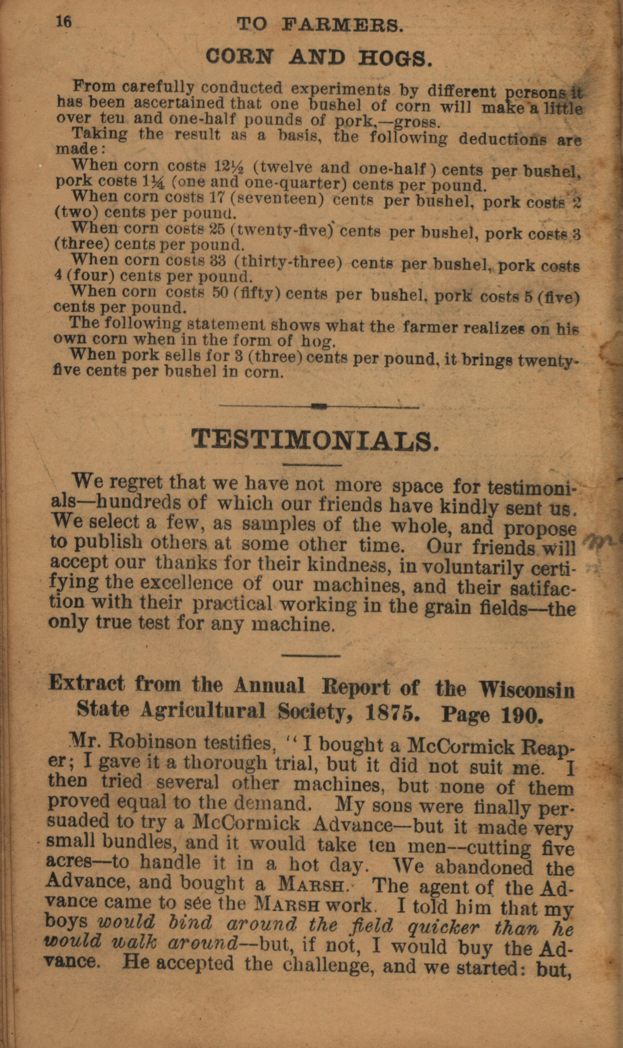 - "Gammon and Deering Manufacturers 1876 farmers memorandum book", Agricultural Machinery Literature Collection, Iowa State University Library Digital Collections