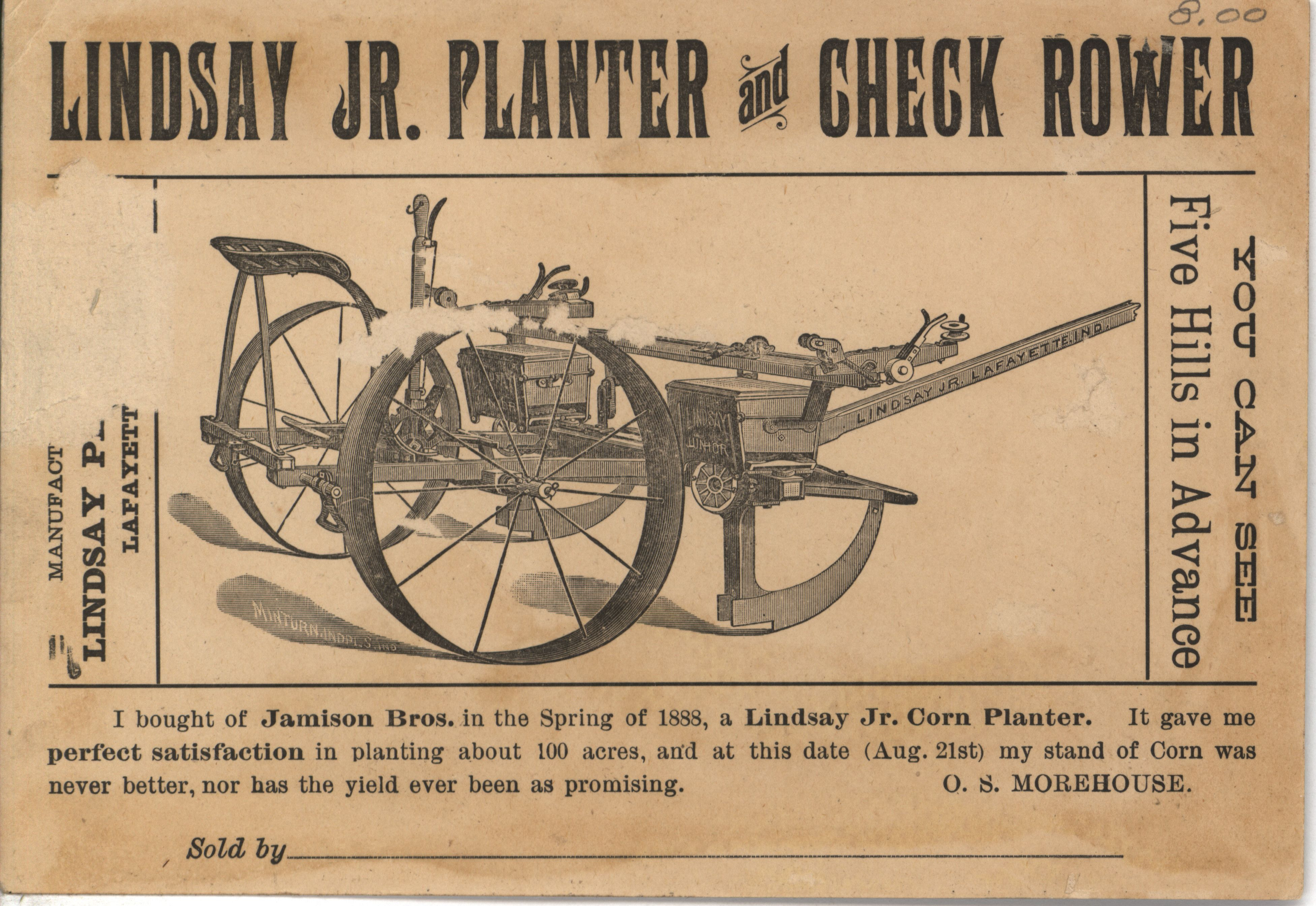 - "Advertisement card for the Lindsay Jr. Planter and Check Rower", Agricultural Machinery Literature Collection, Iowa State University Library Digital Collections