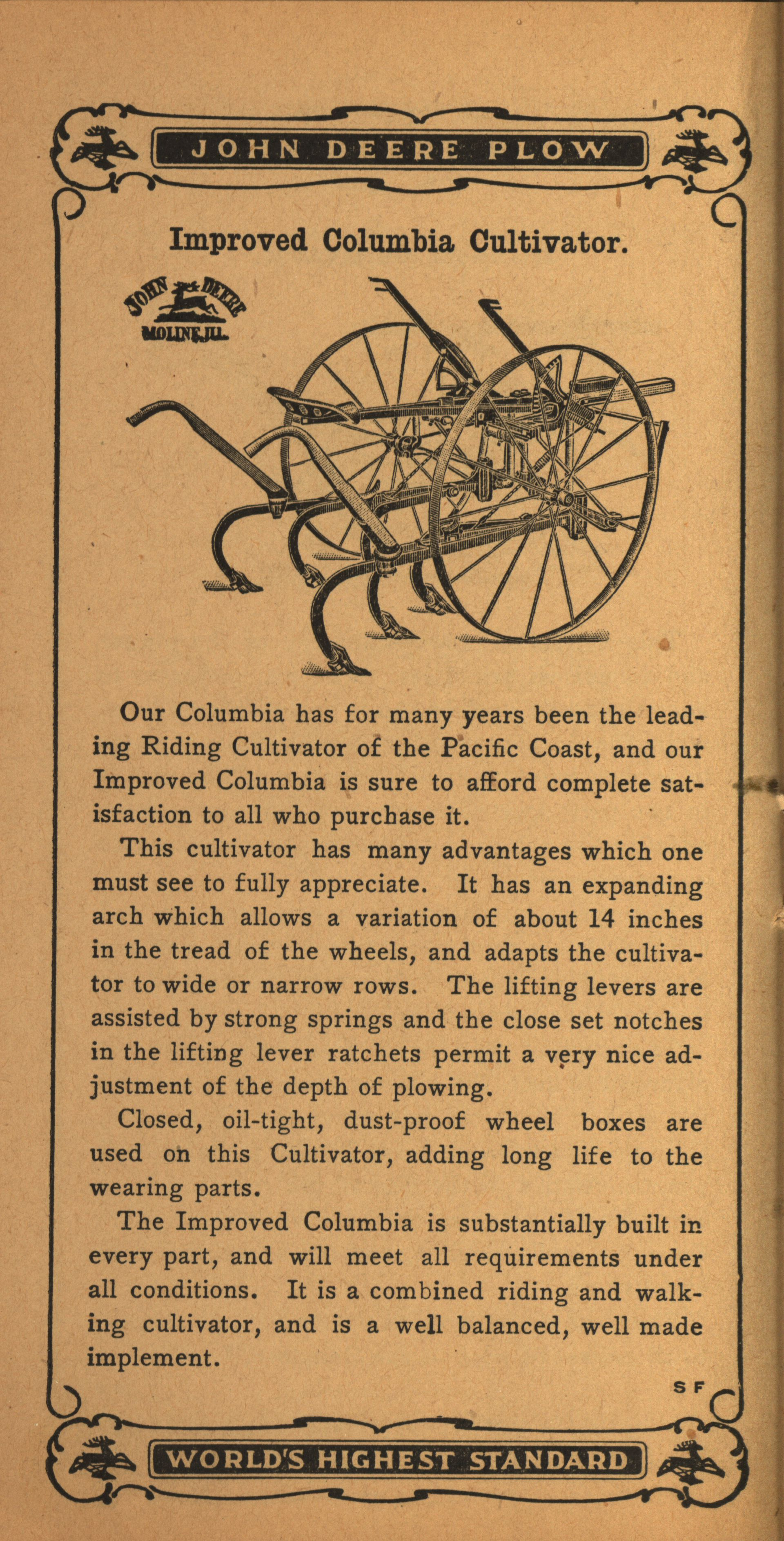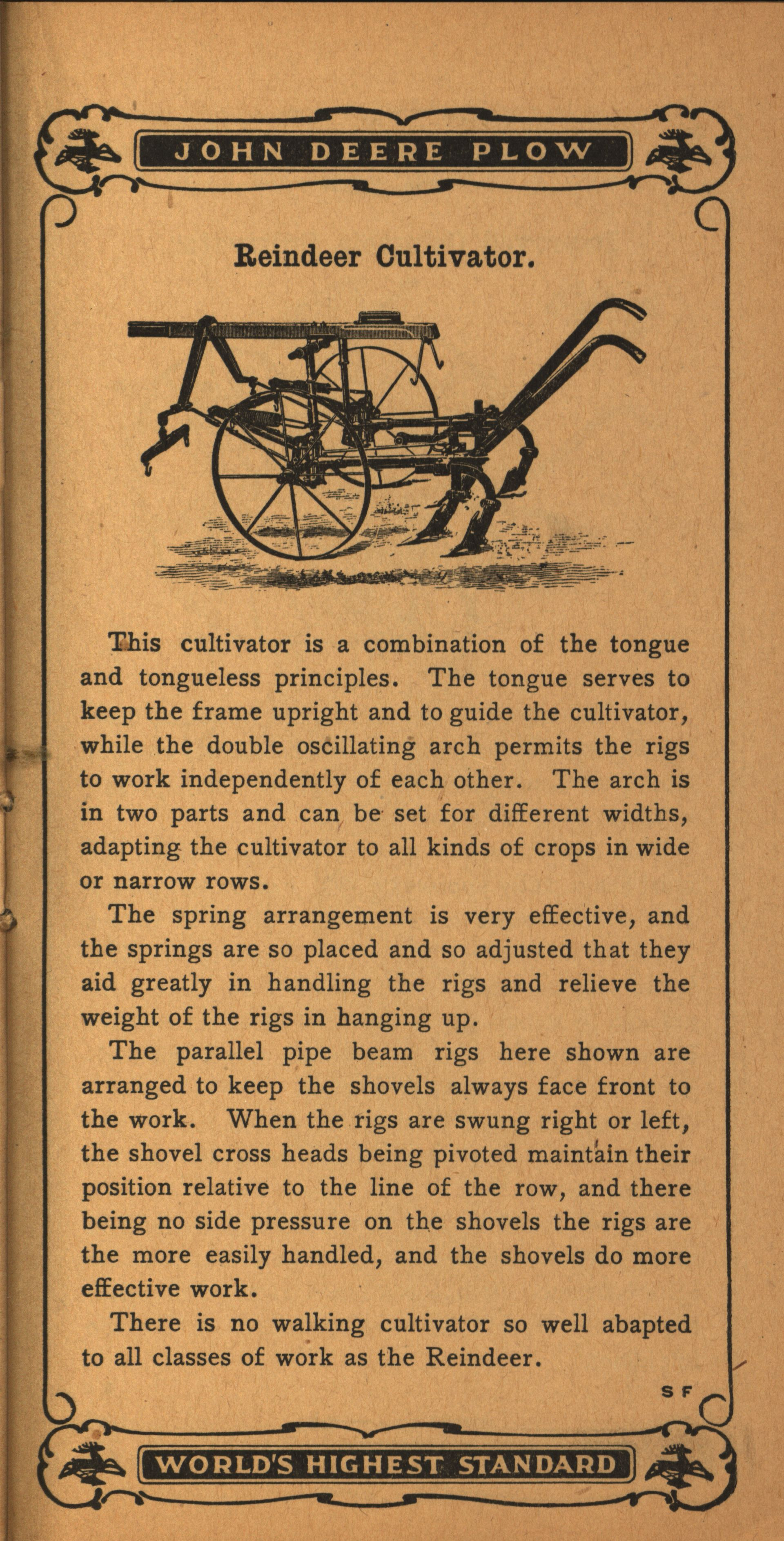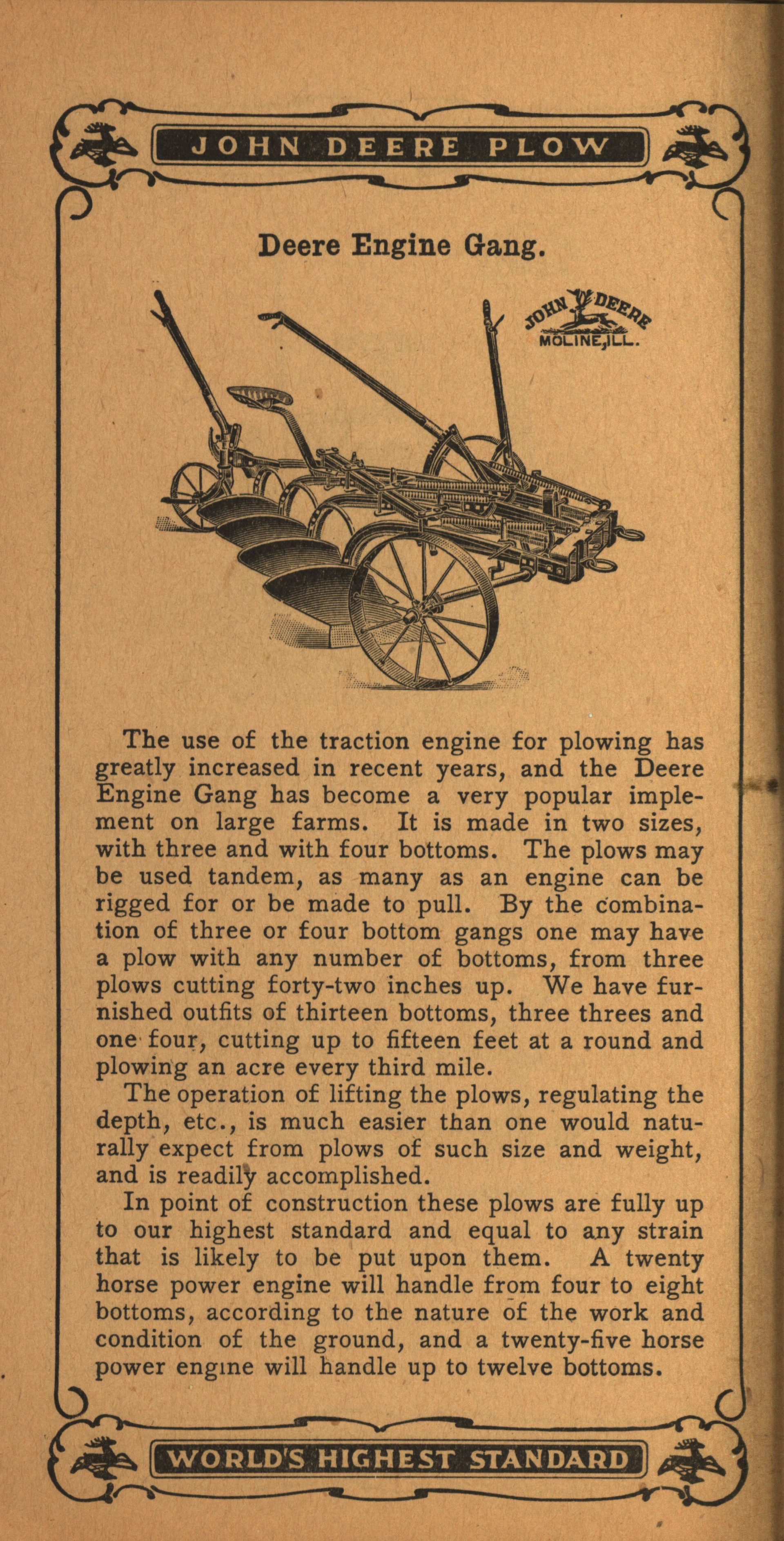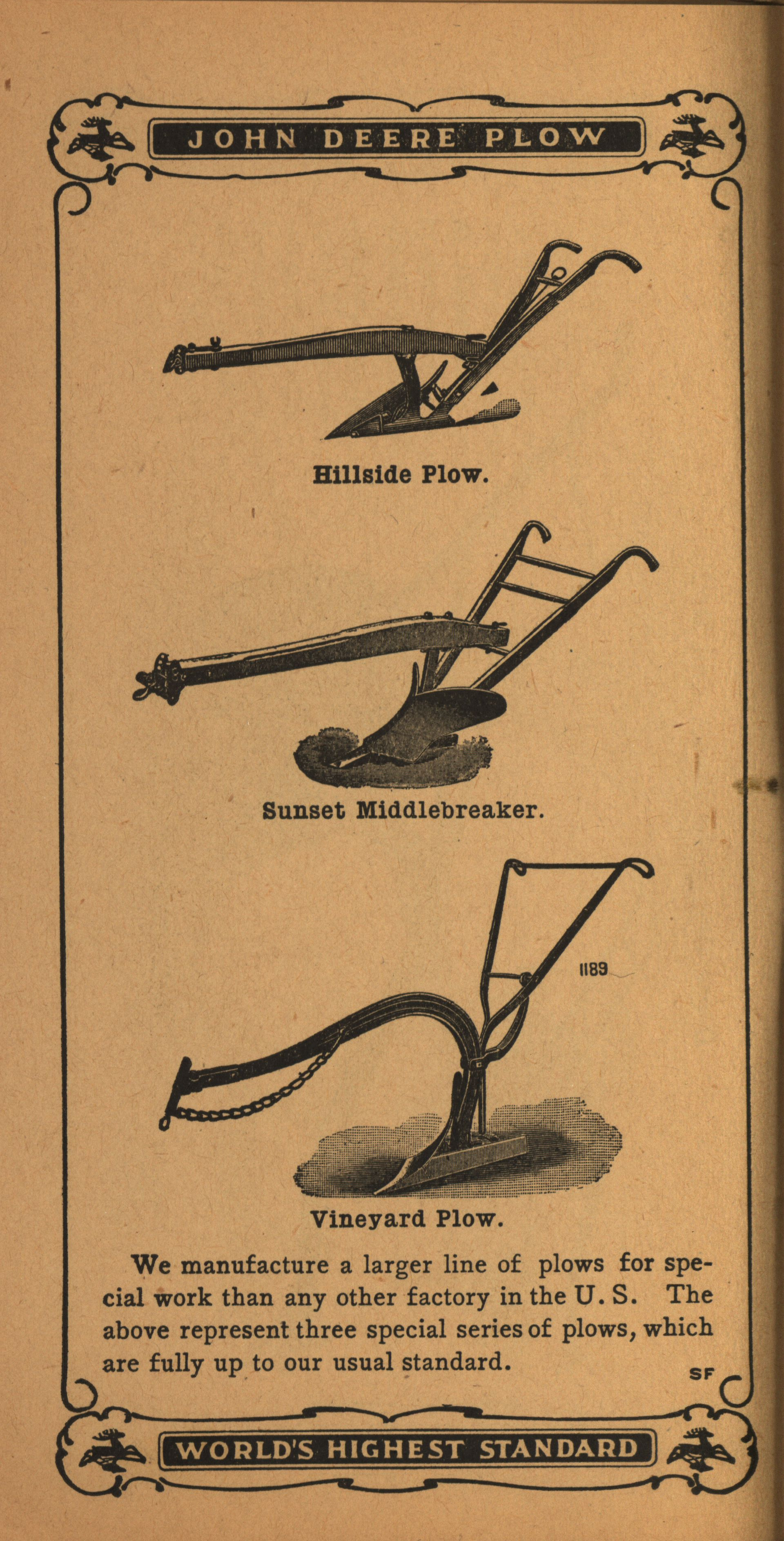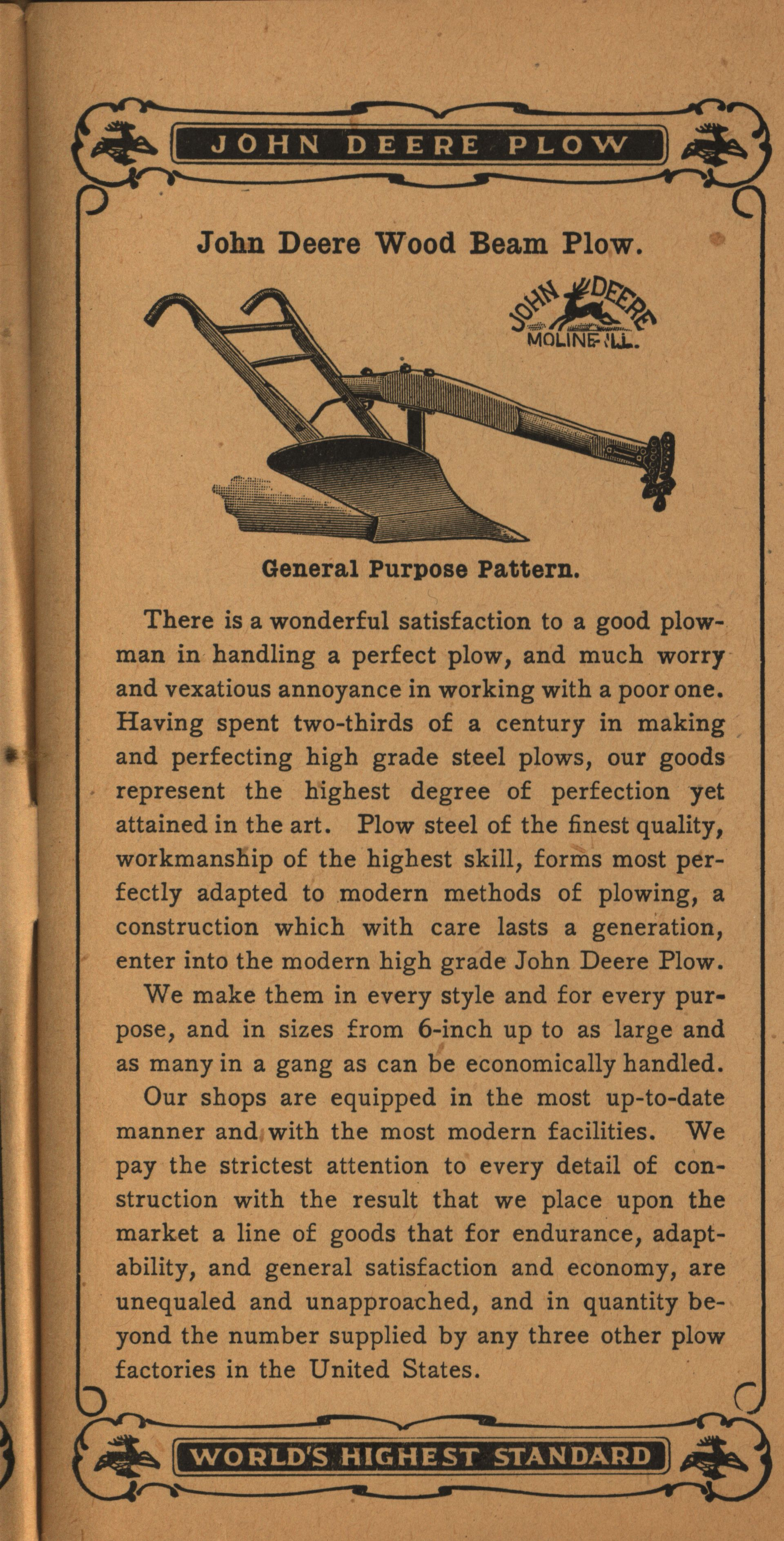 - Illustrated pocket catalog describing the products offered by Deere Implement Company in 1905.