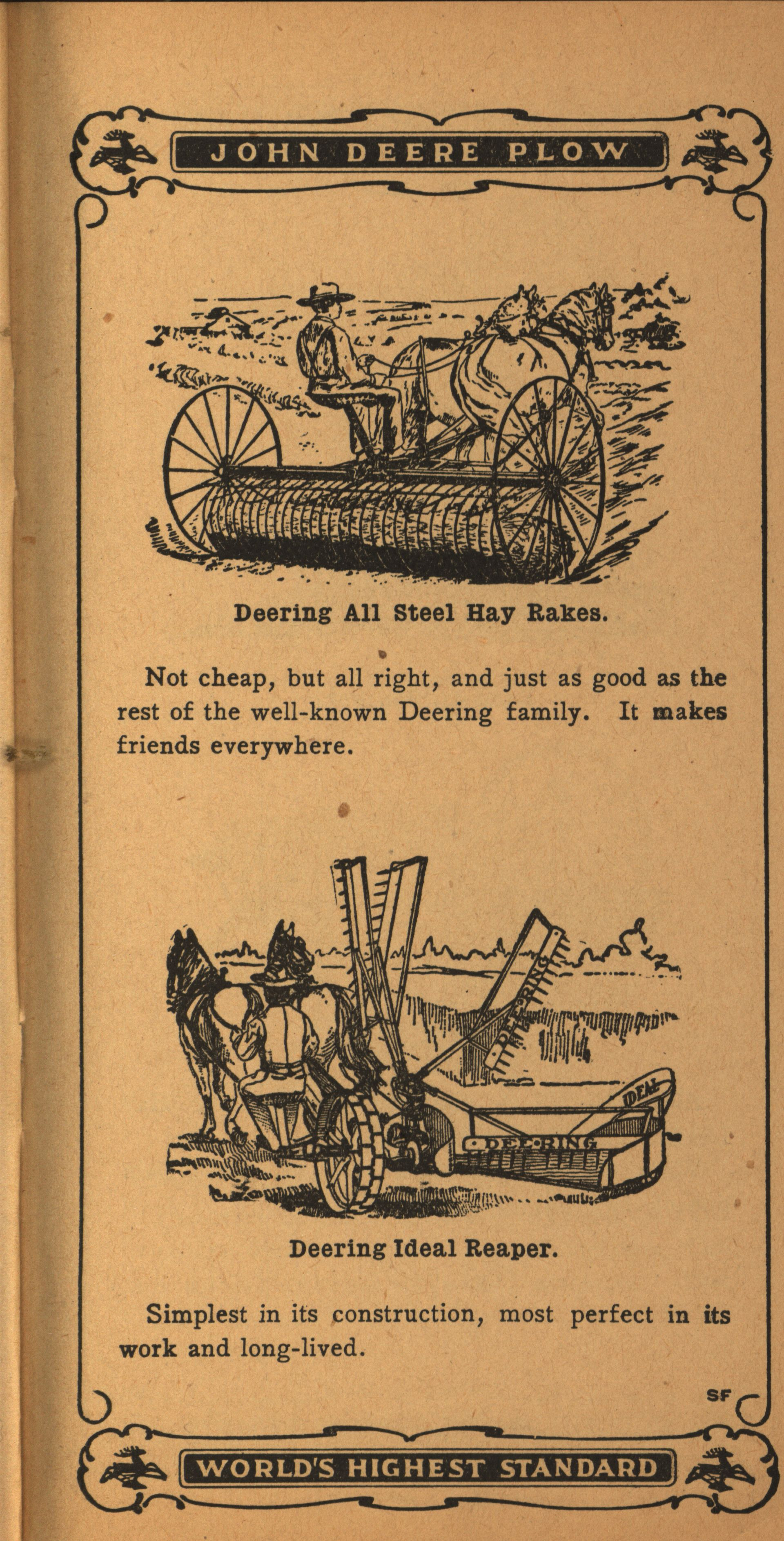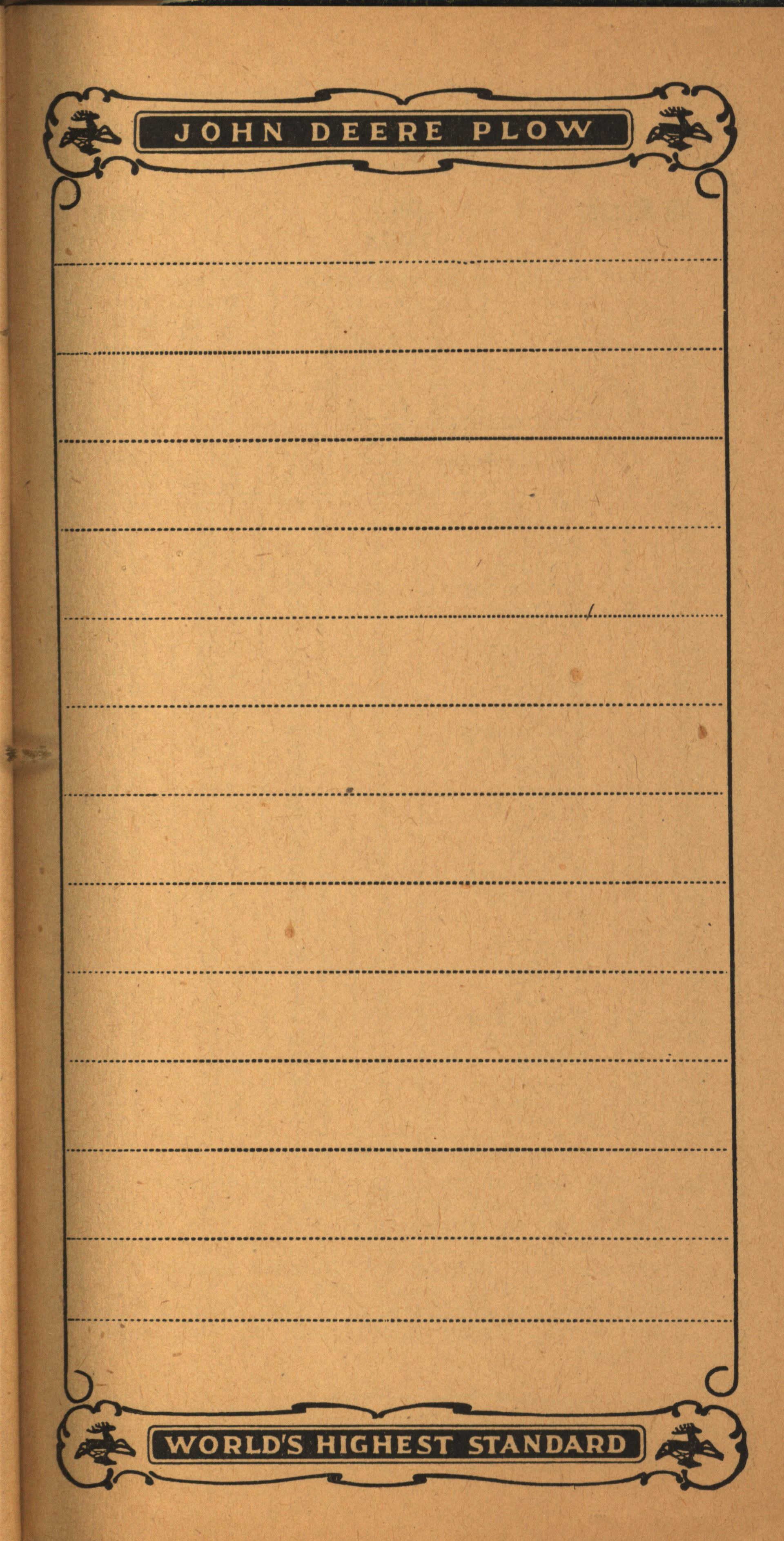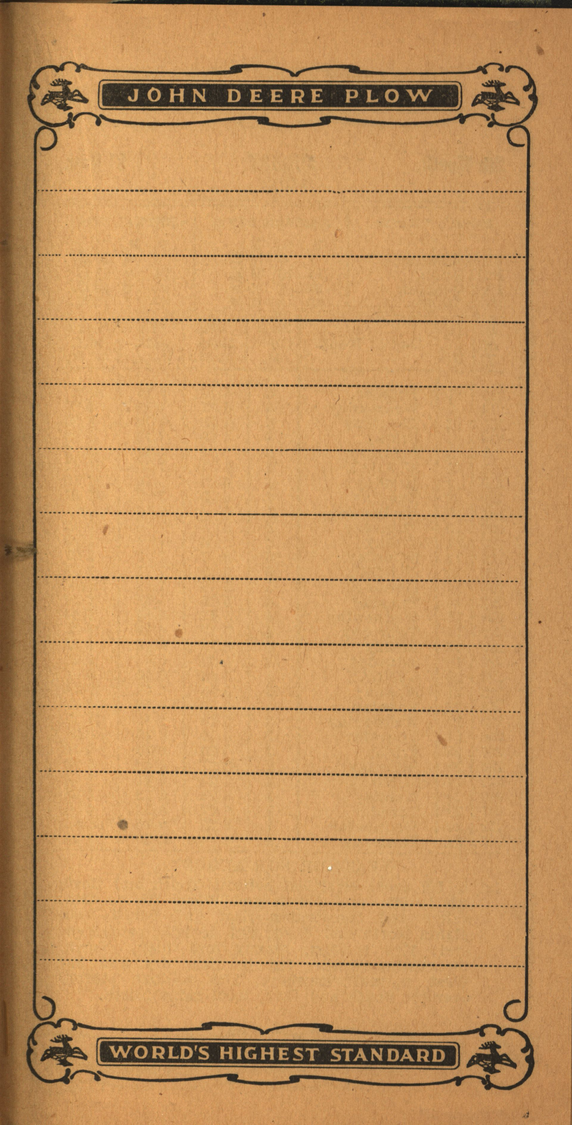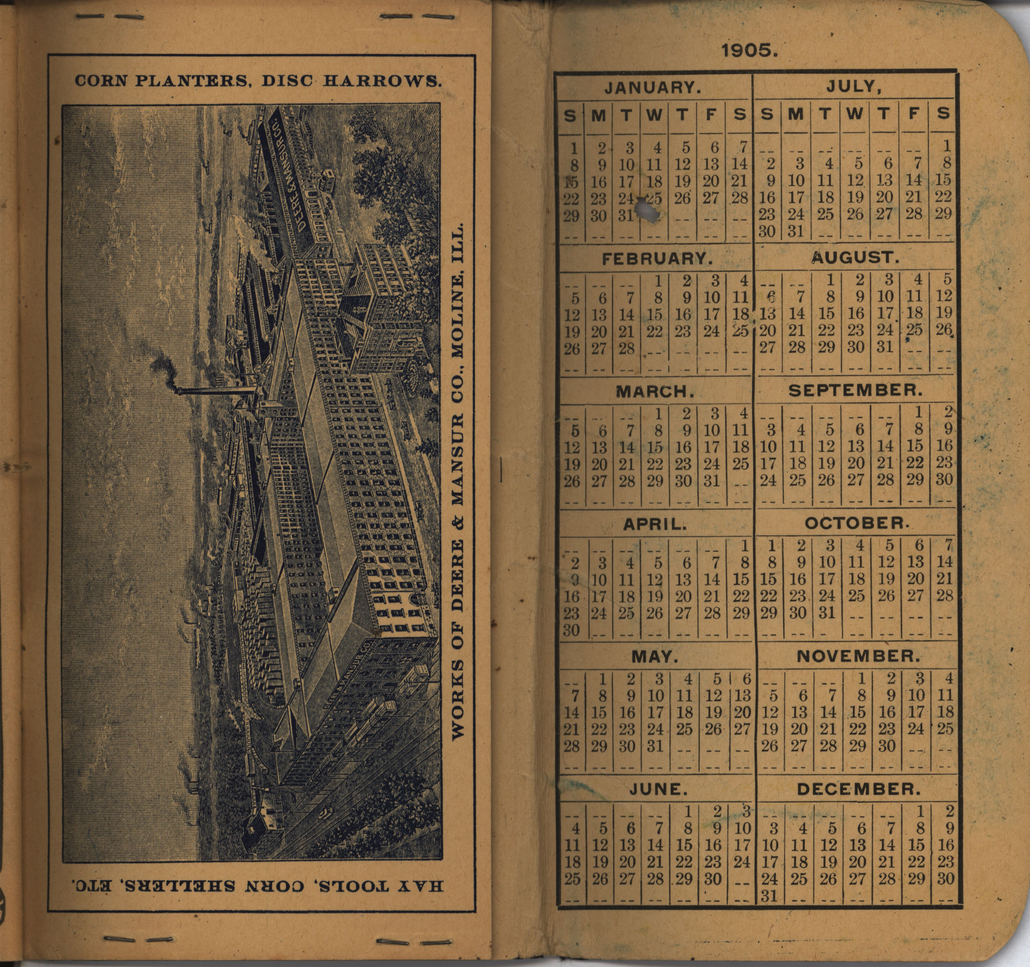 - "Deere Implement Company 1905 farmers pocket companion", Agricultural Machinery Literature Collection, Iowa State University Library Digital Collections