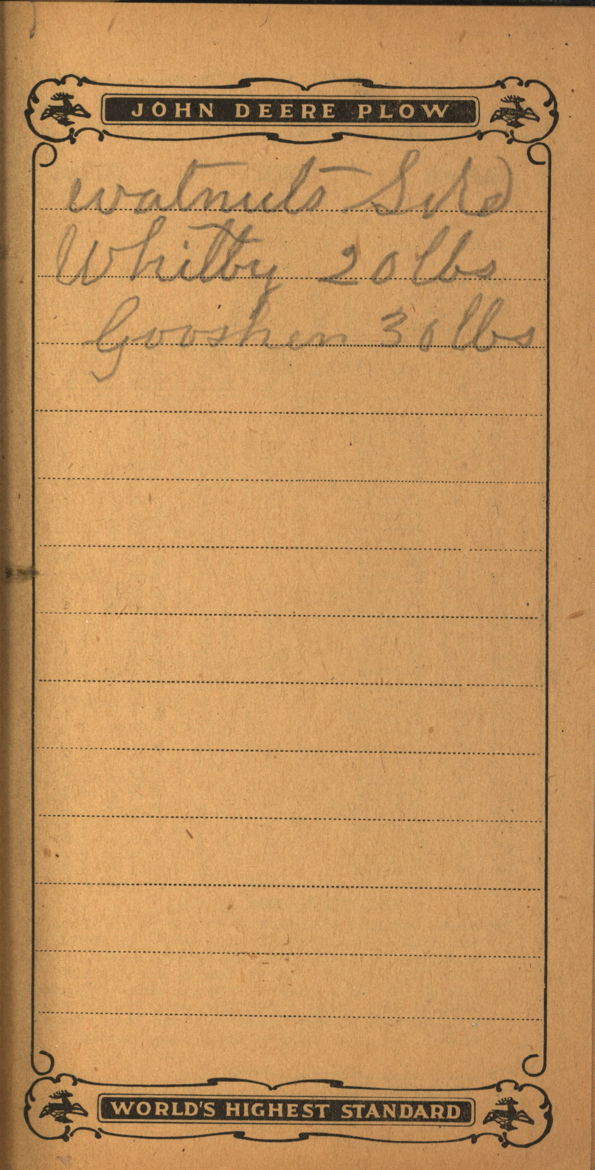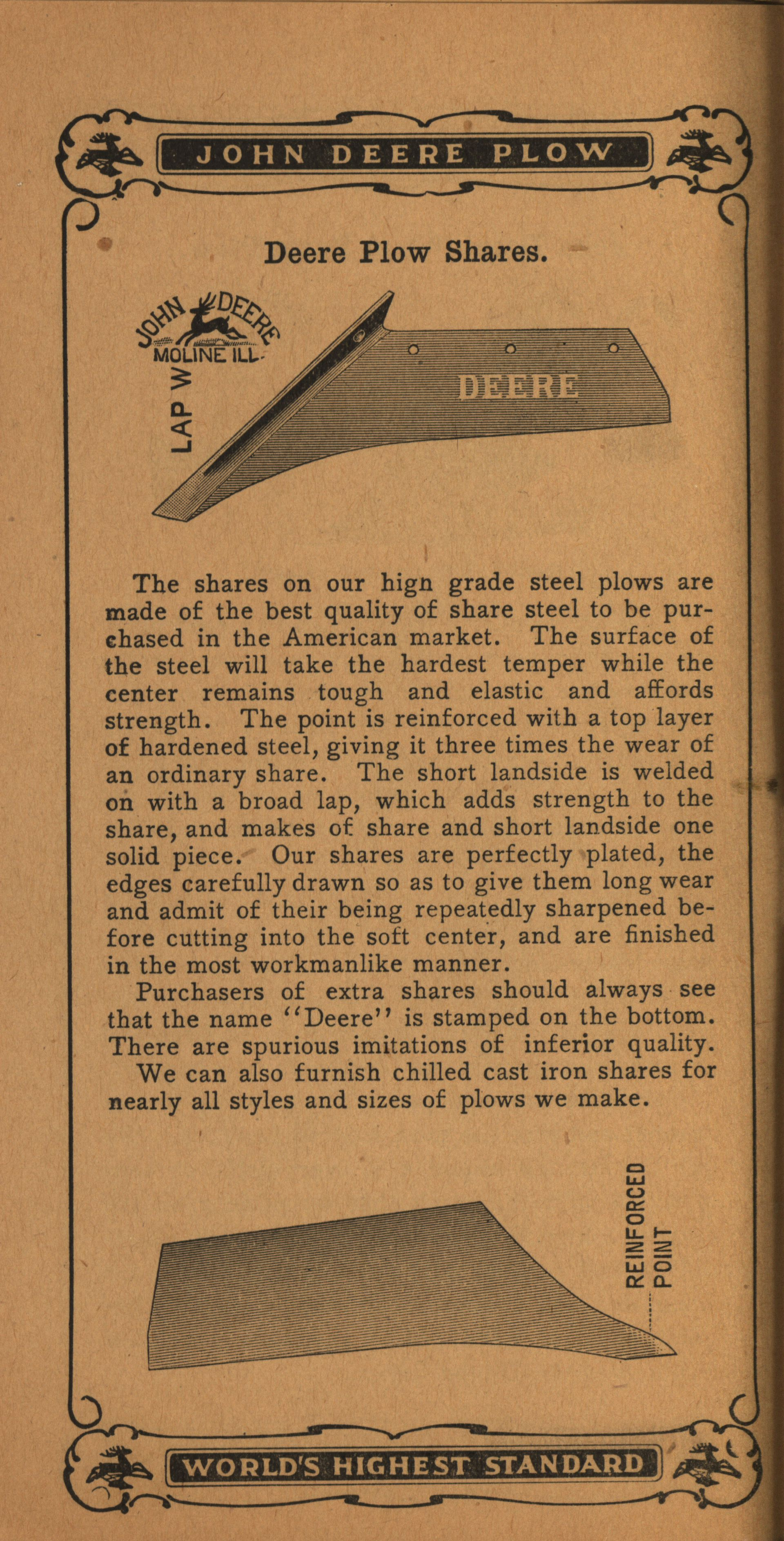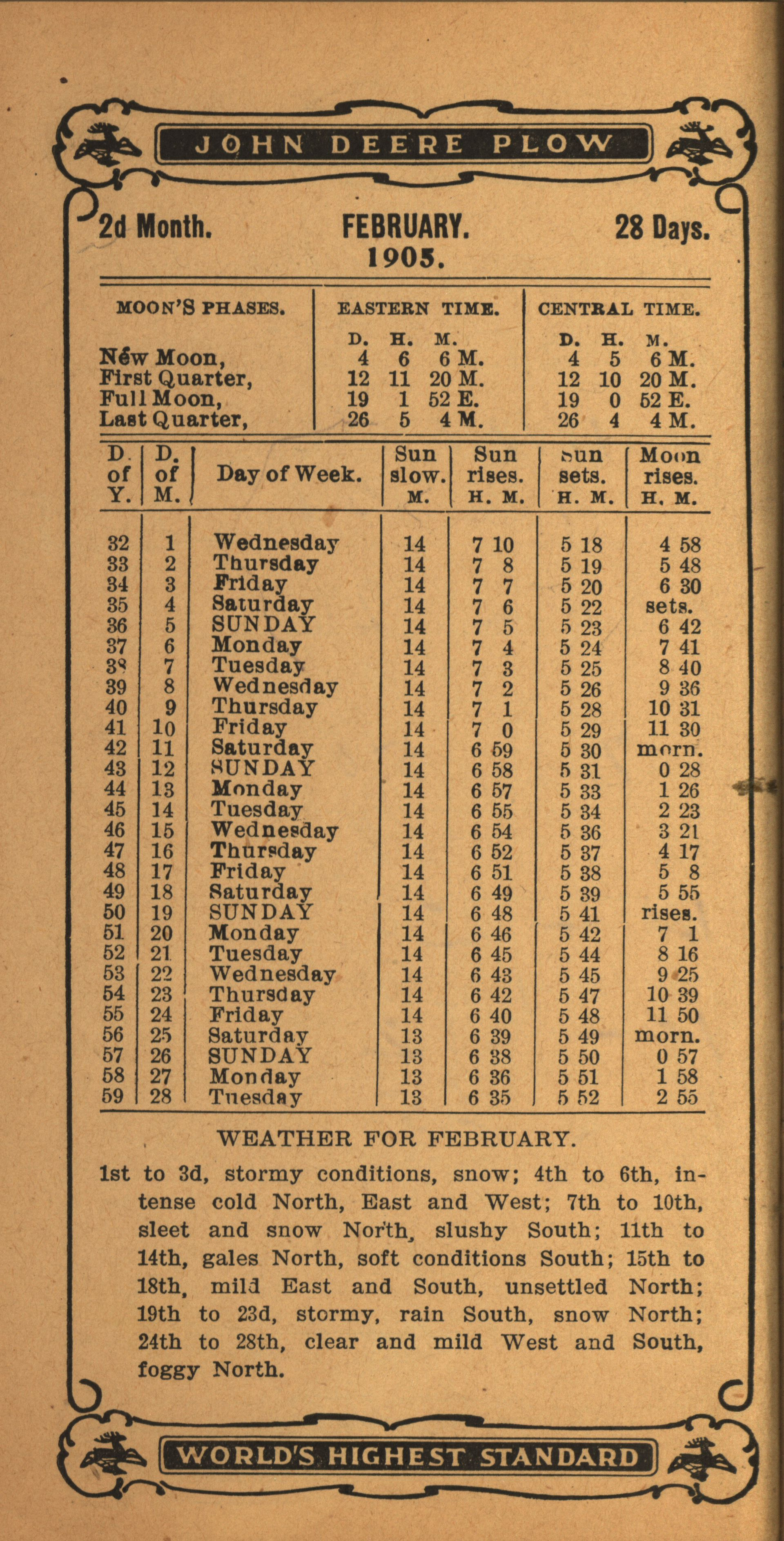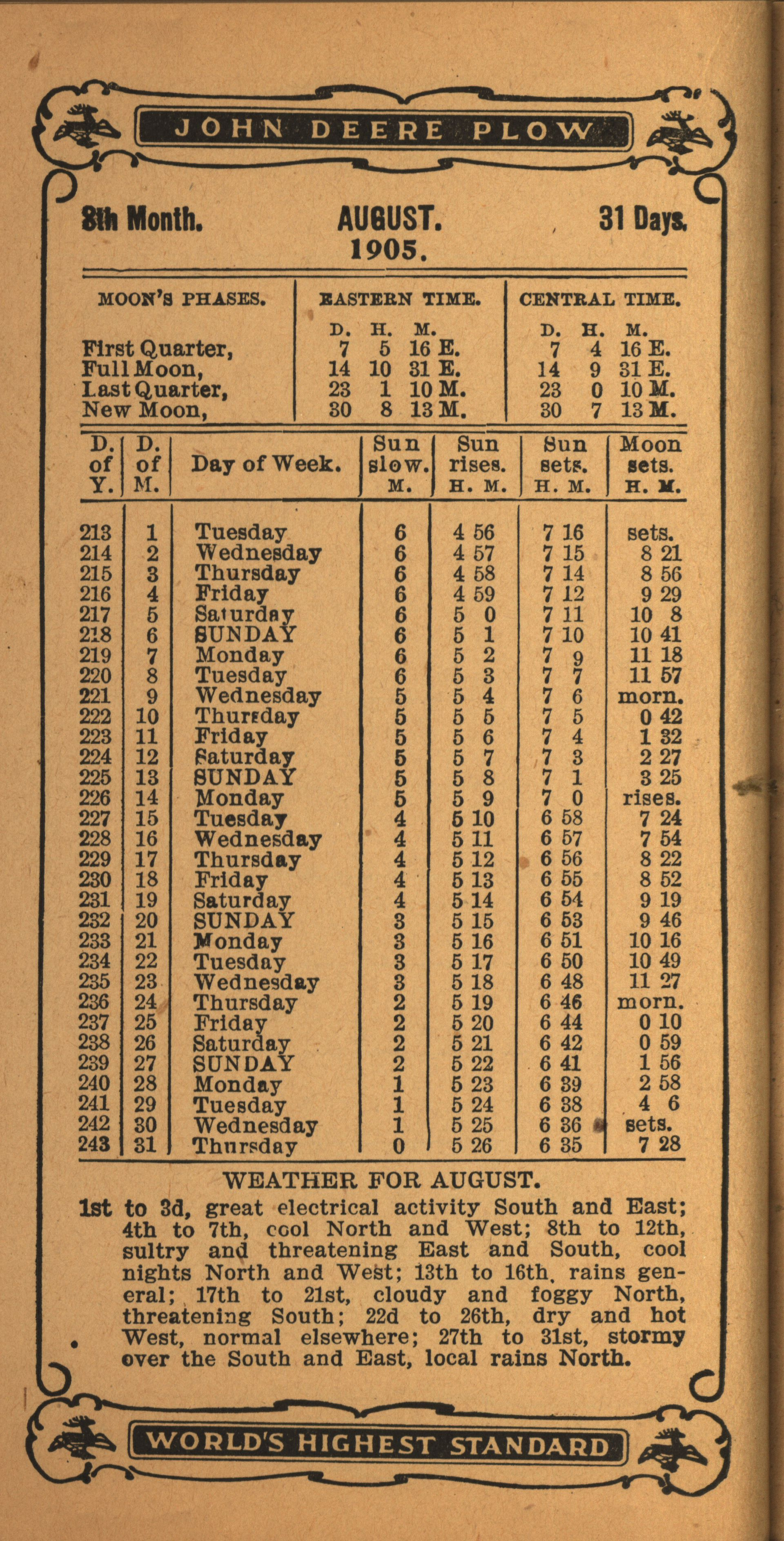 - "Deere Implement Company 1905 farmers pocket companion", Agricultural Machinery Literature Collection, Iowa State University Library Digital Collections