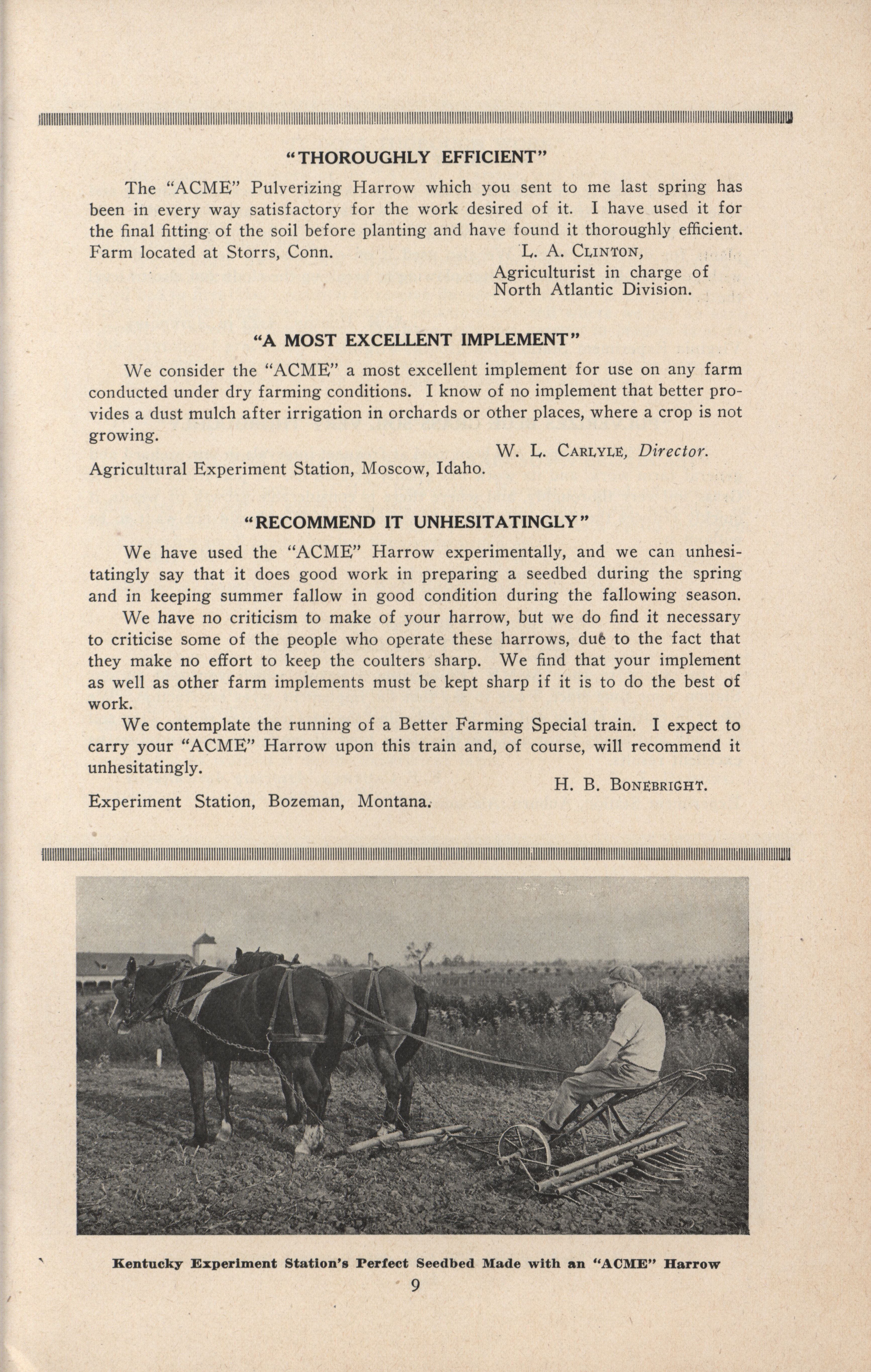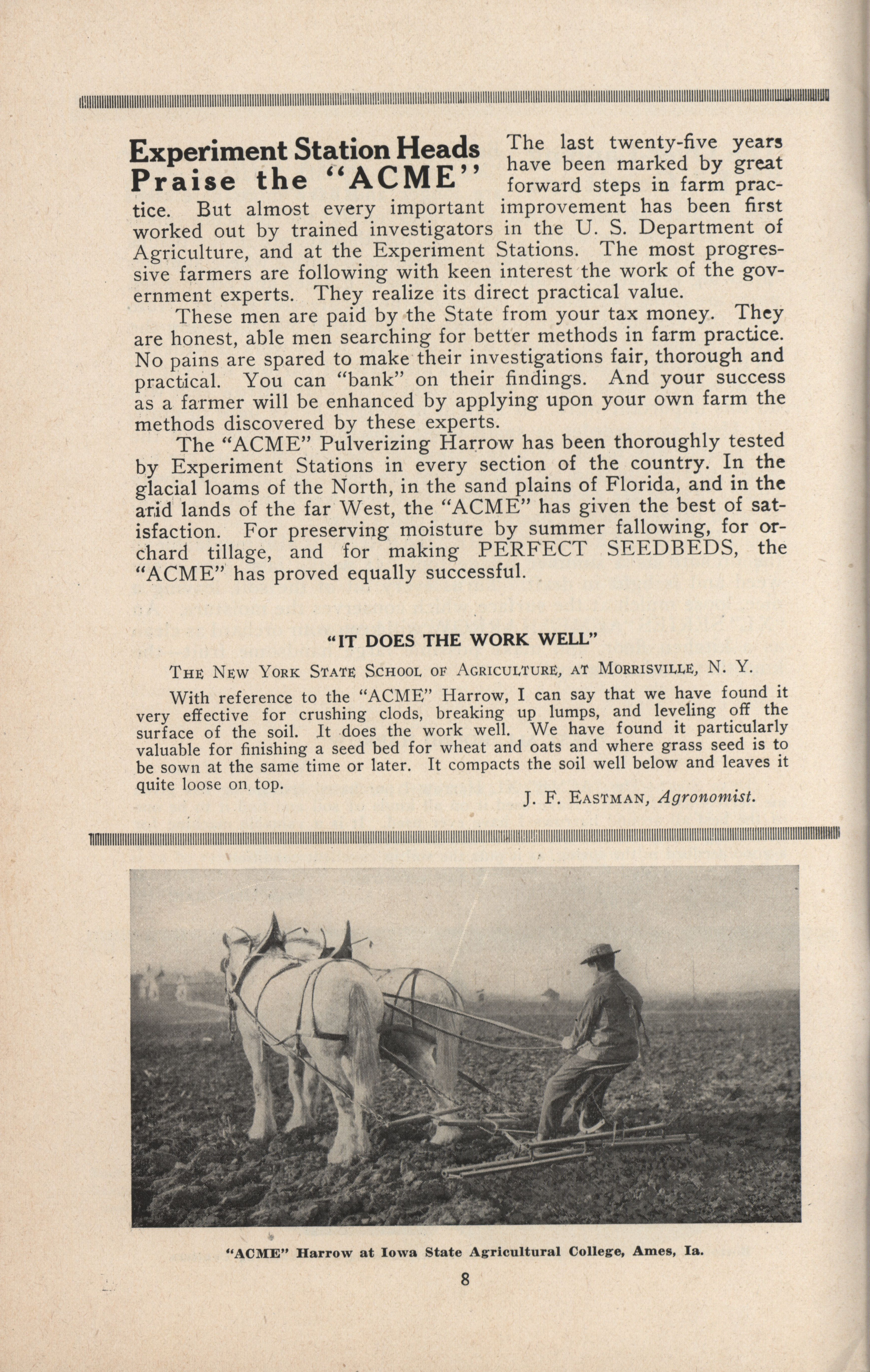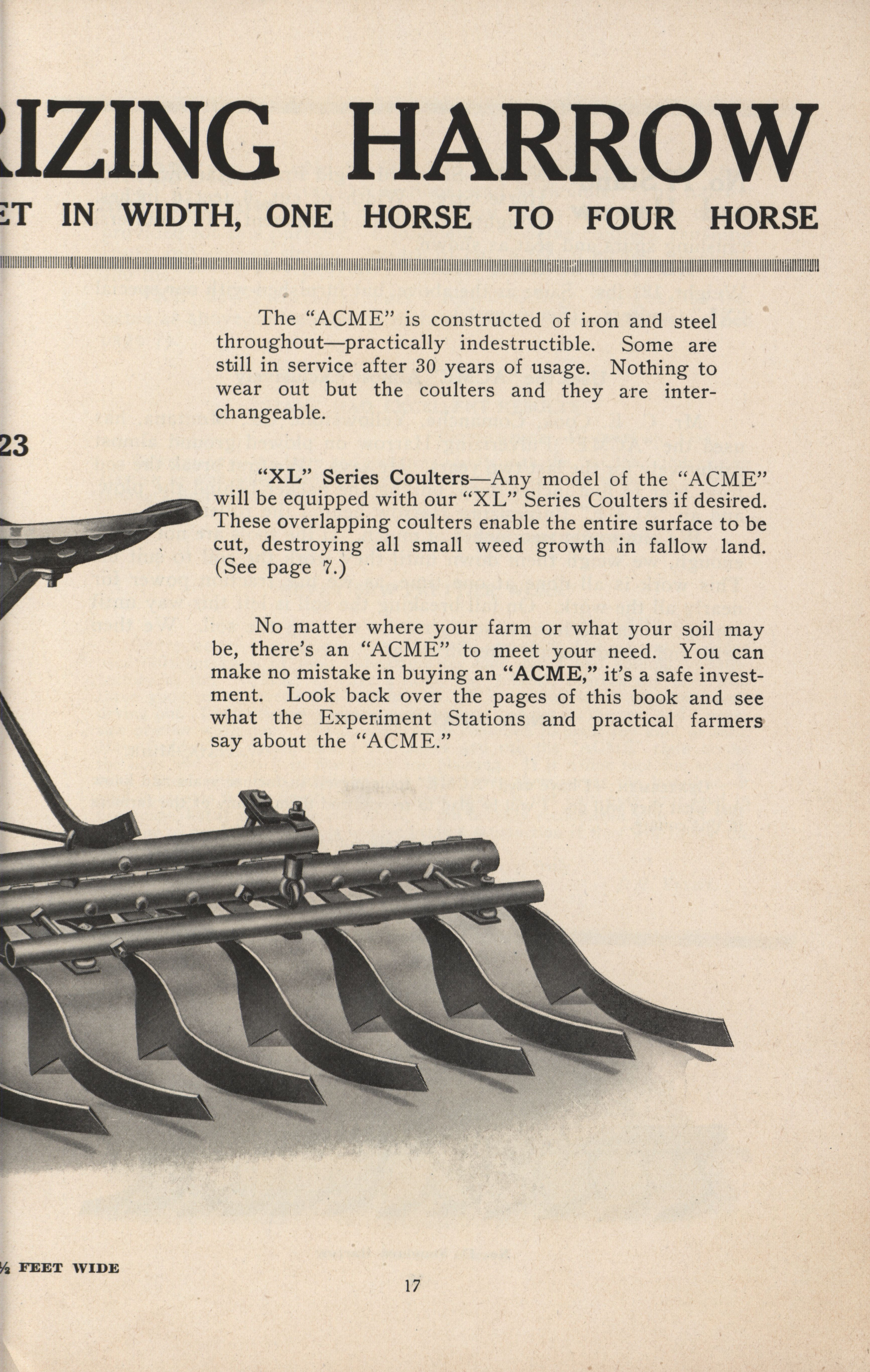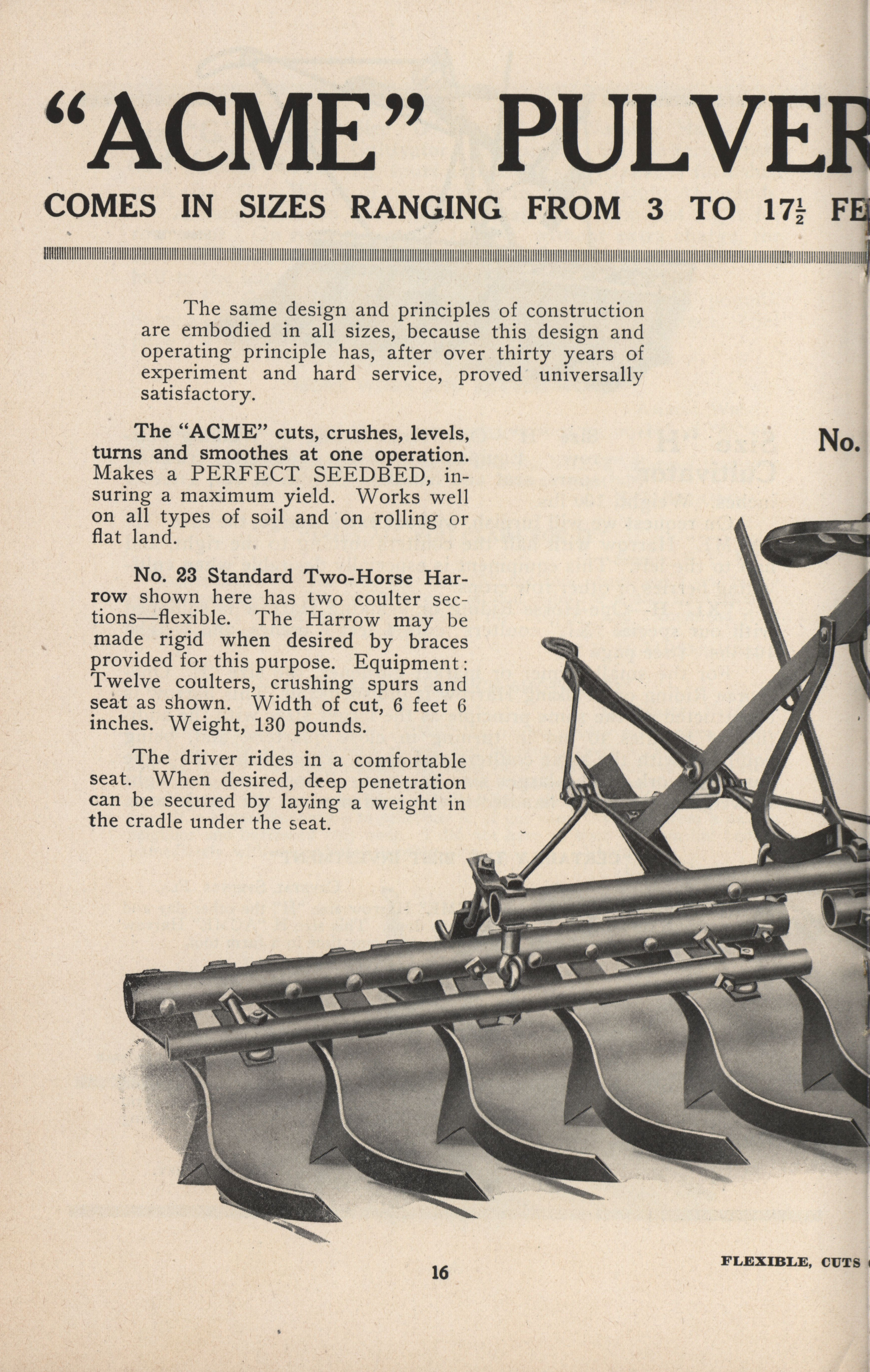 - "The "Acme" way to crops that pay", Agricultural Machinery Literature Collection, Iowa State University Library Digital Collections