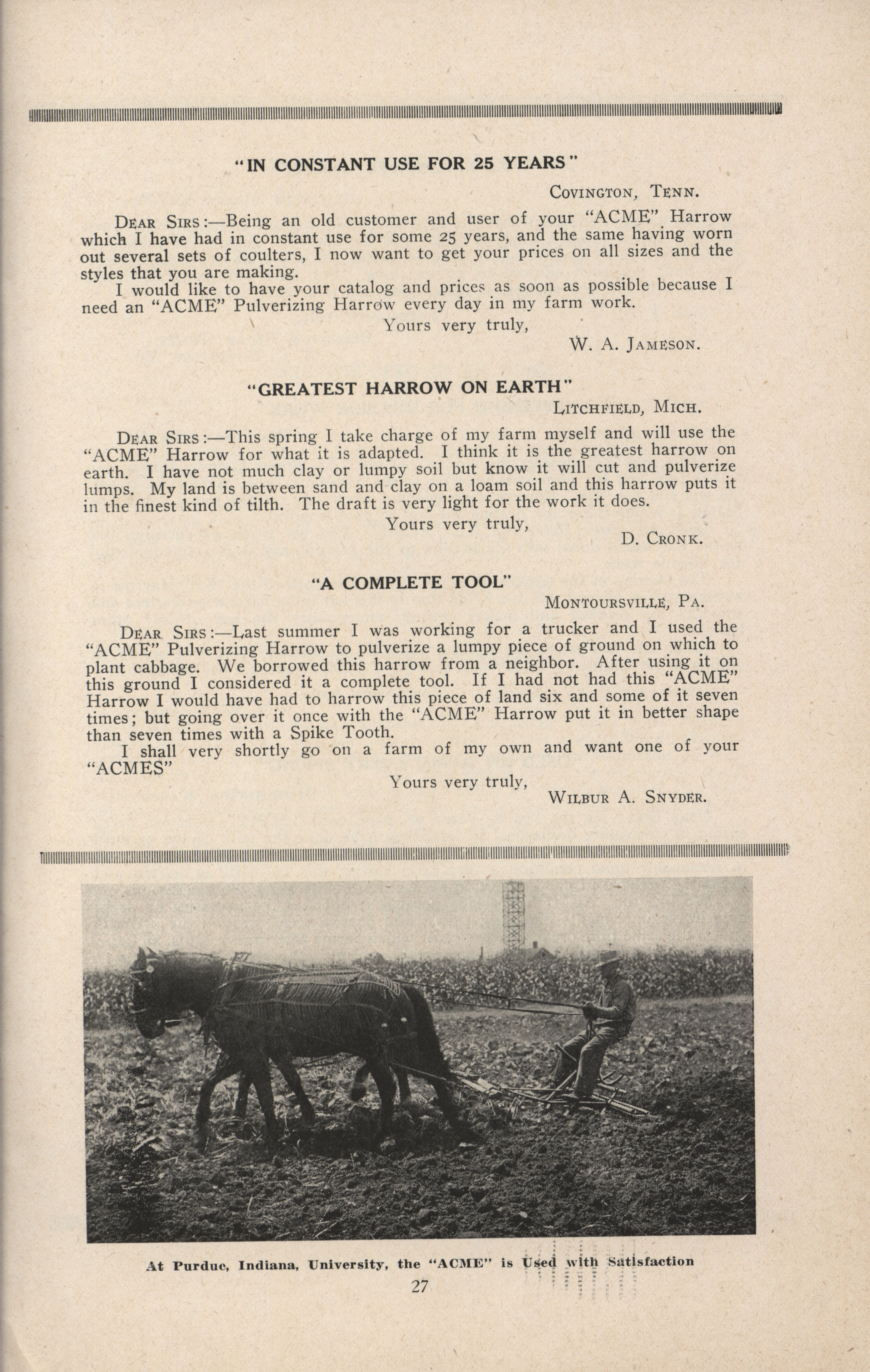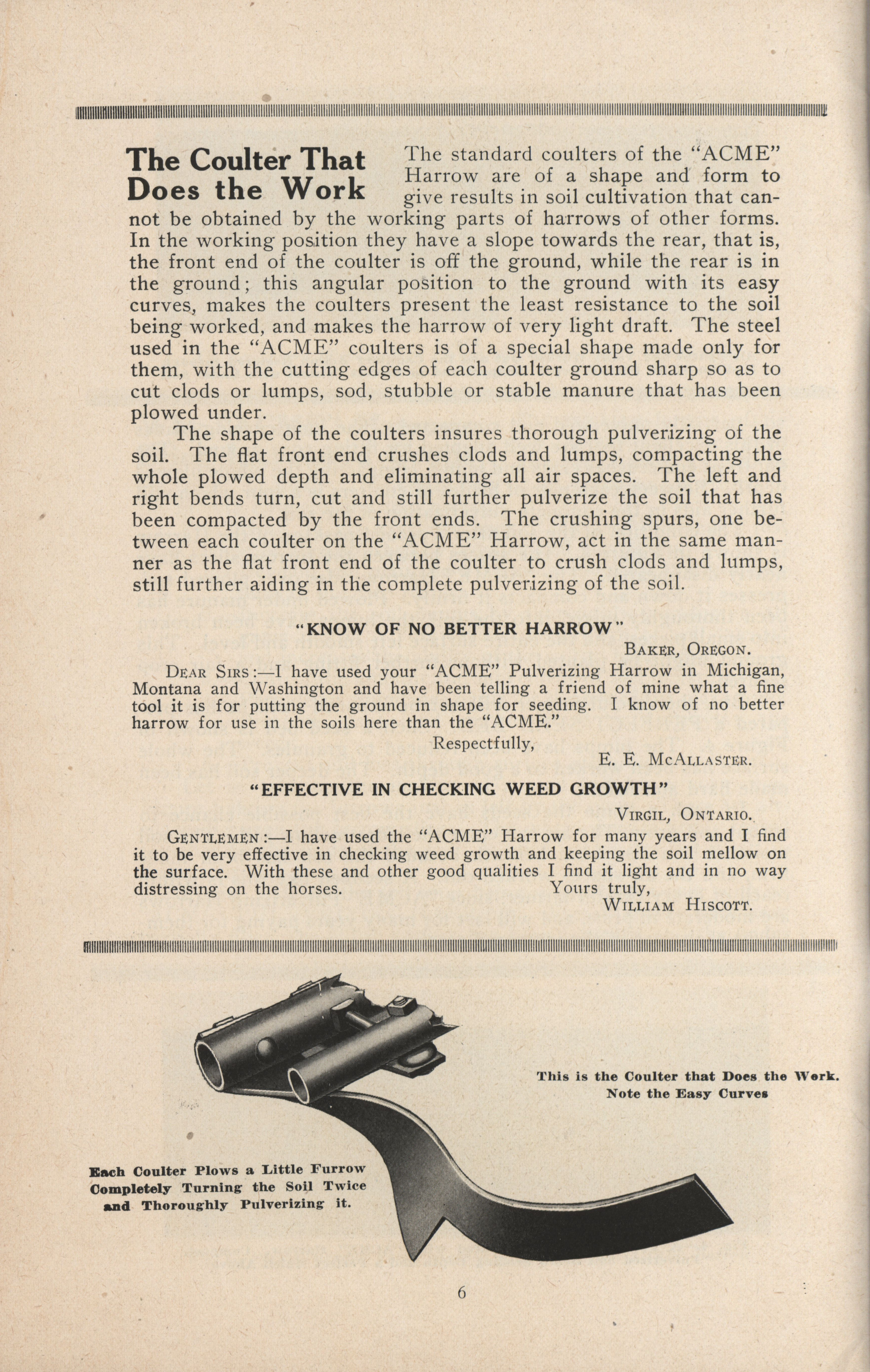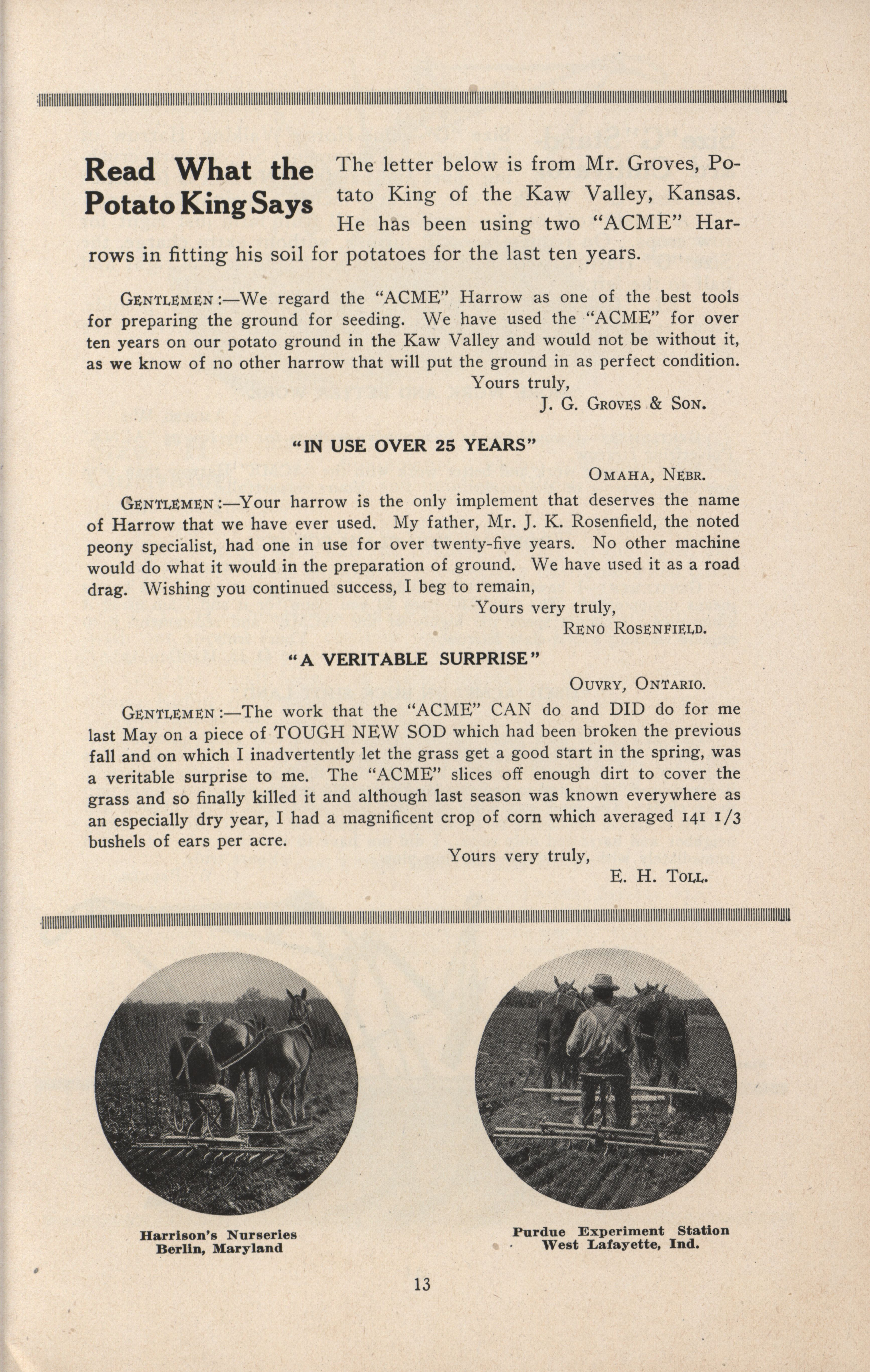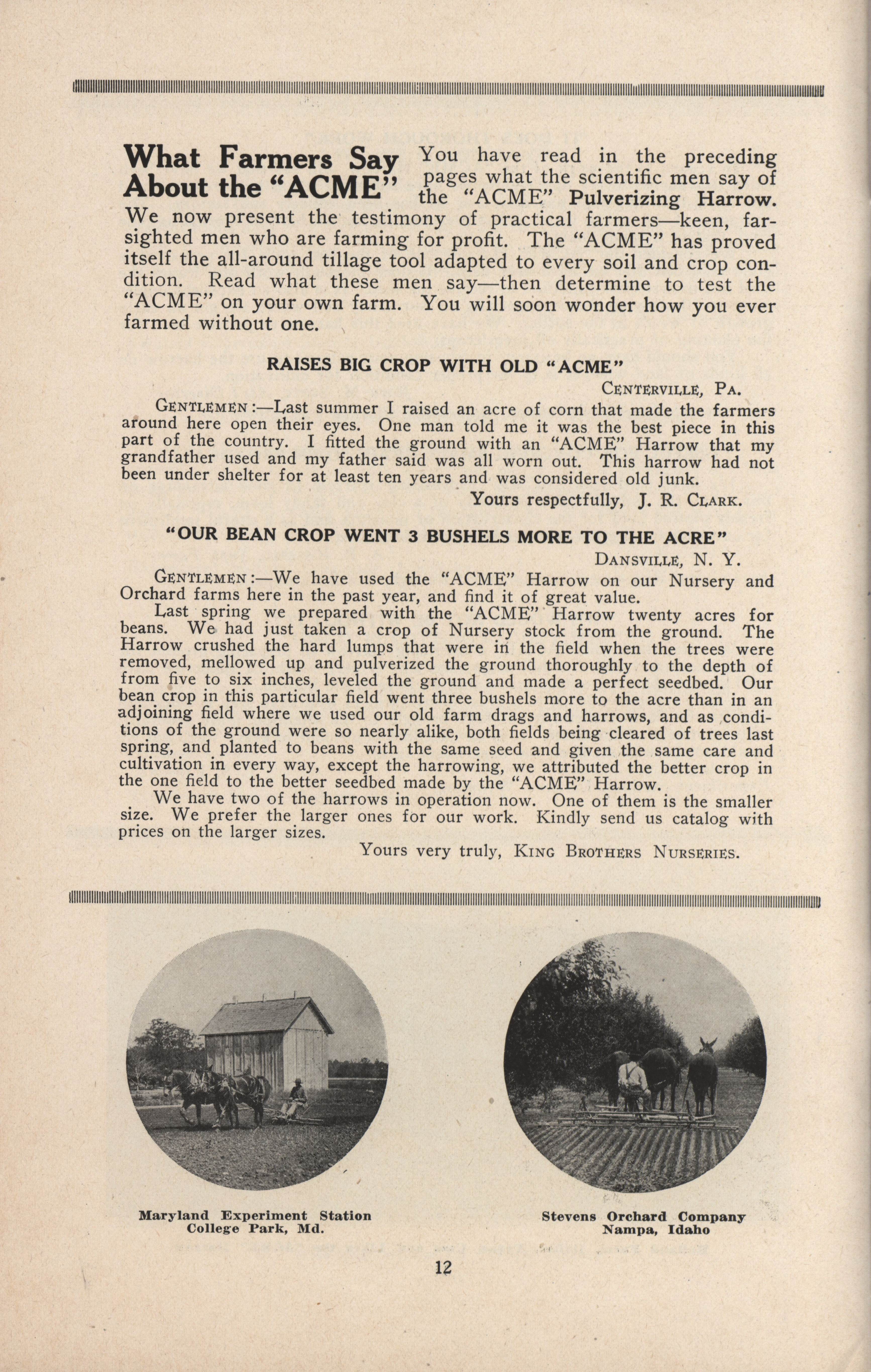 - "The "Acme" way to crops that pay", Agricultural Machinery Literature Collection, Iowa State University Library Digital Collections