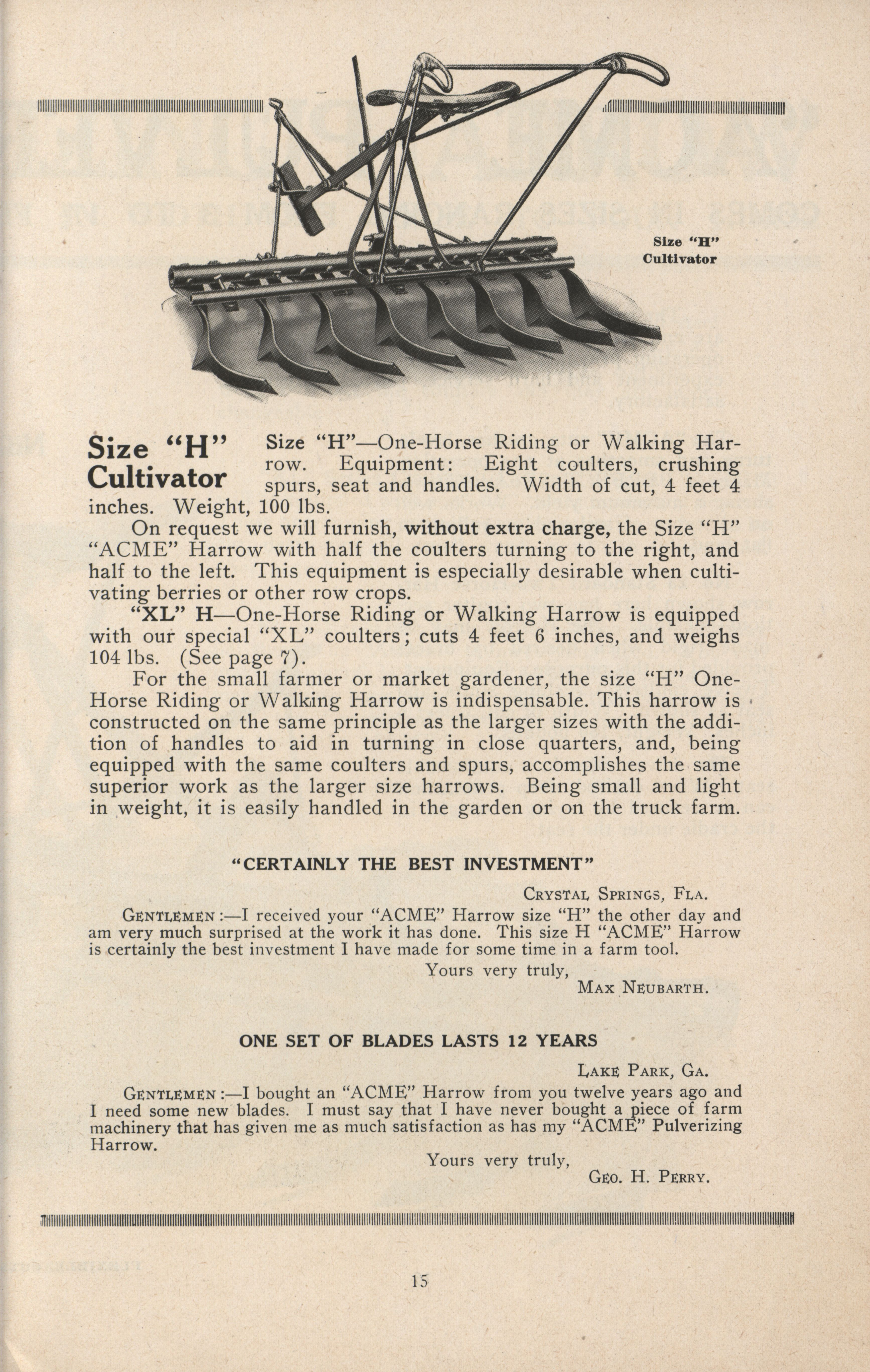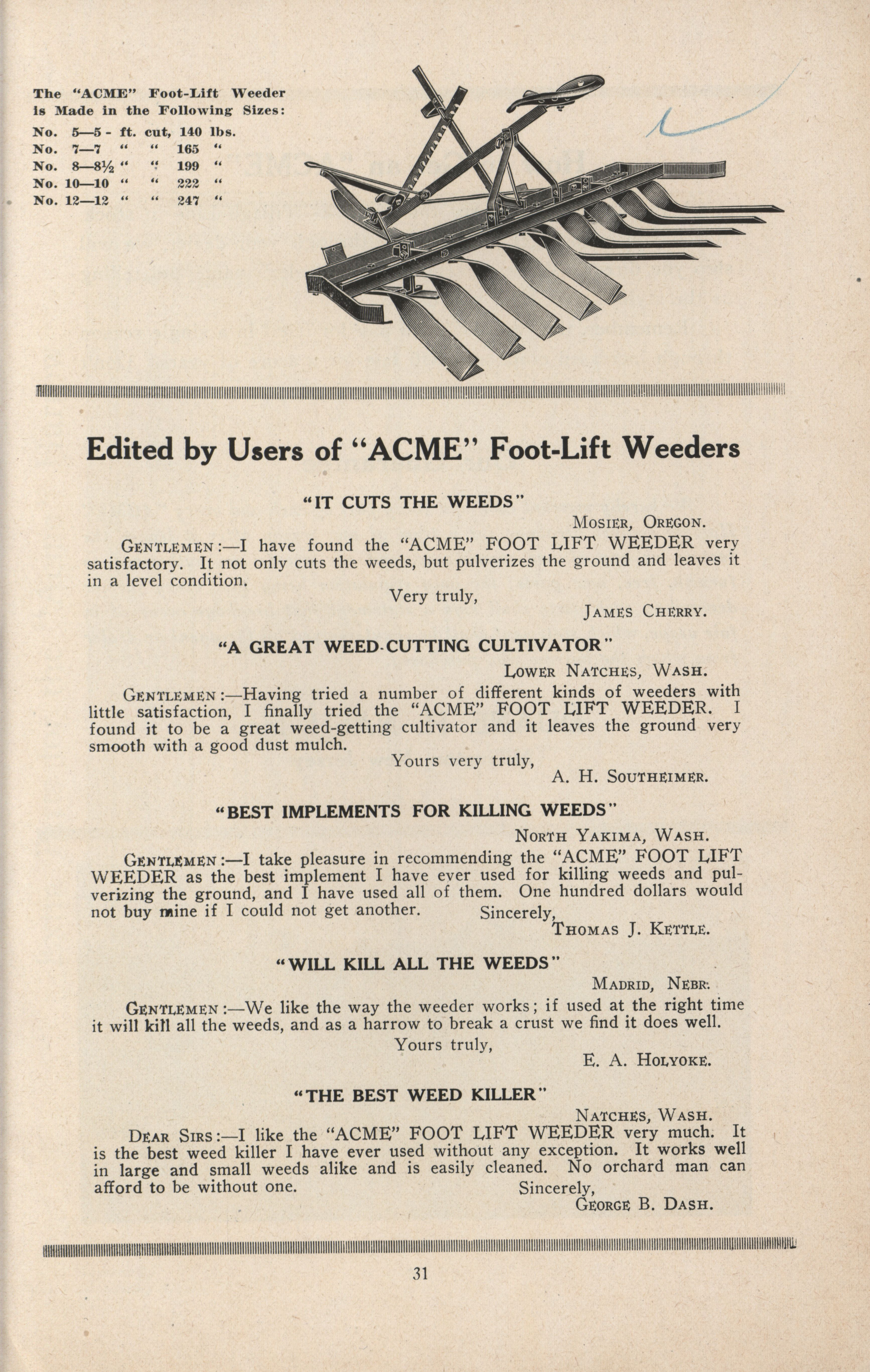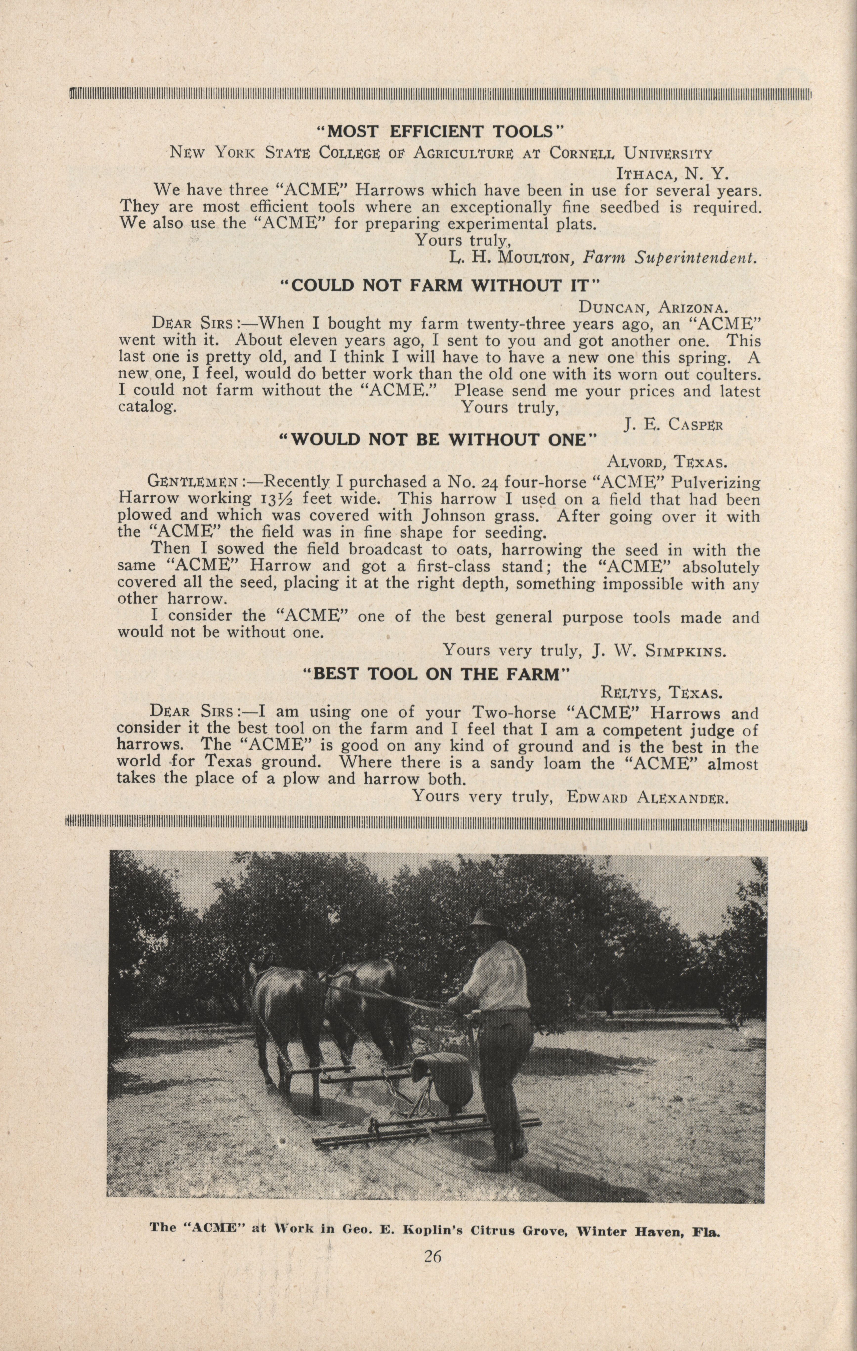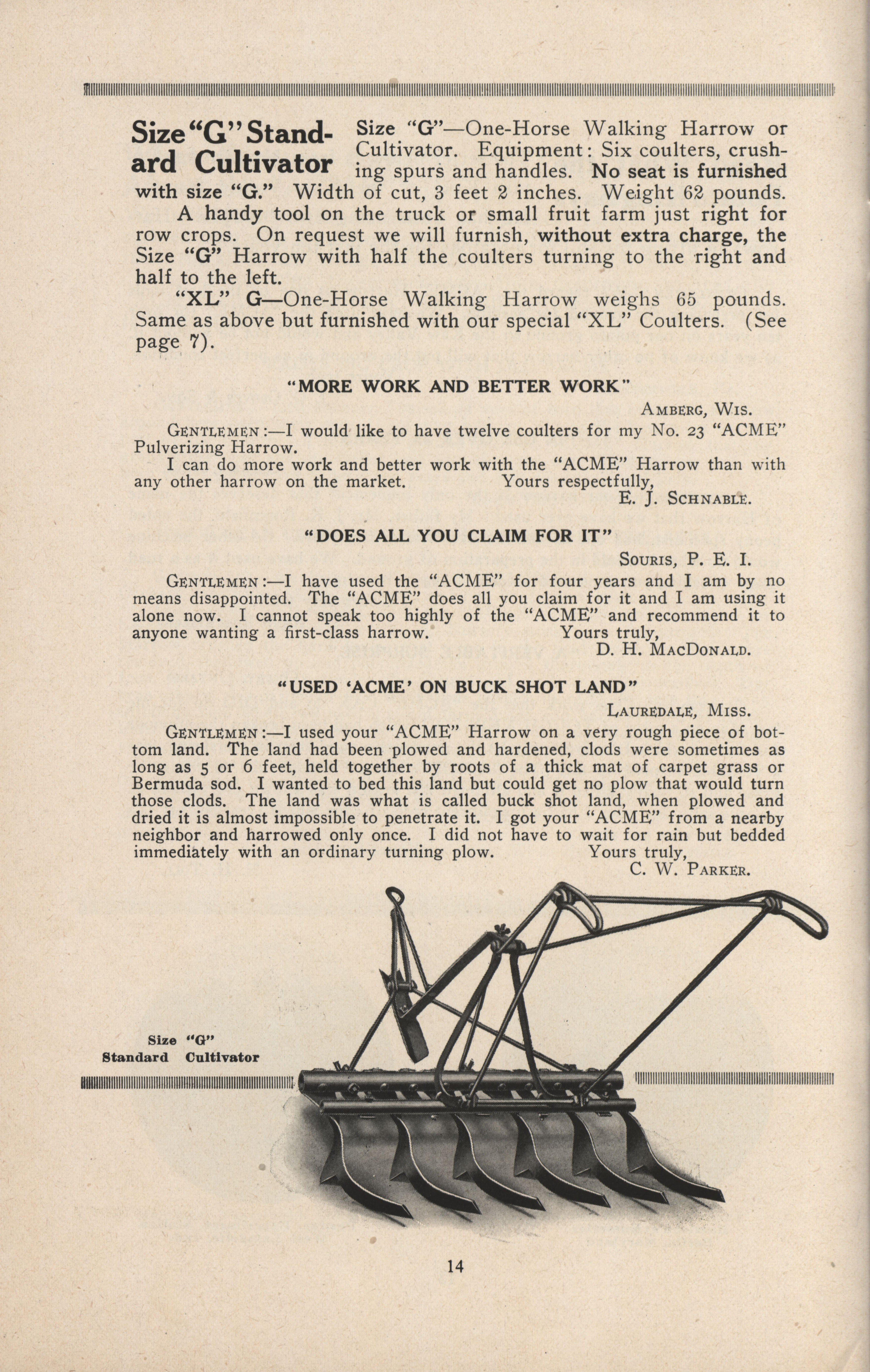 - "The "Acme" way to crops that pay", Agricultural Machinery Literature Collection, Iowa State University Library Digital Collections