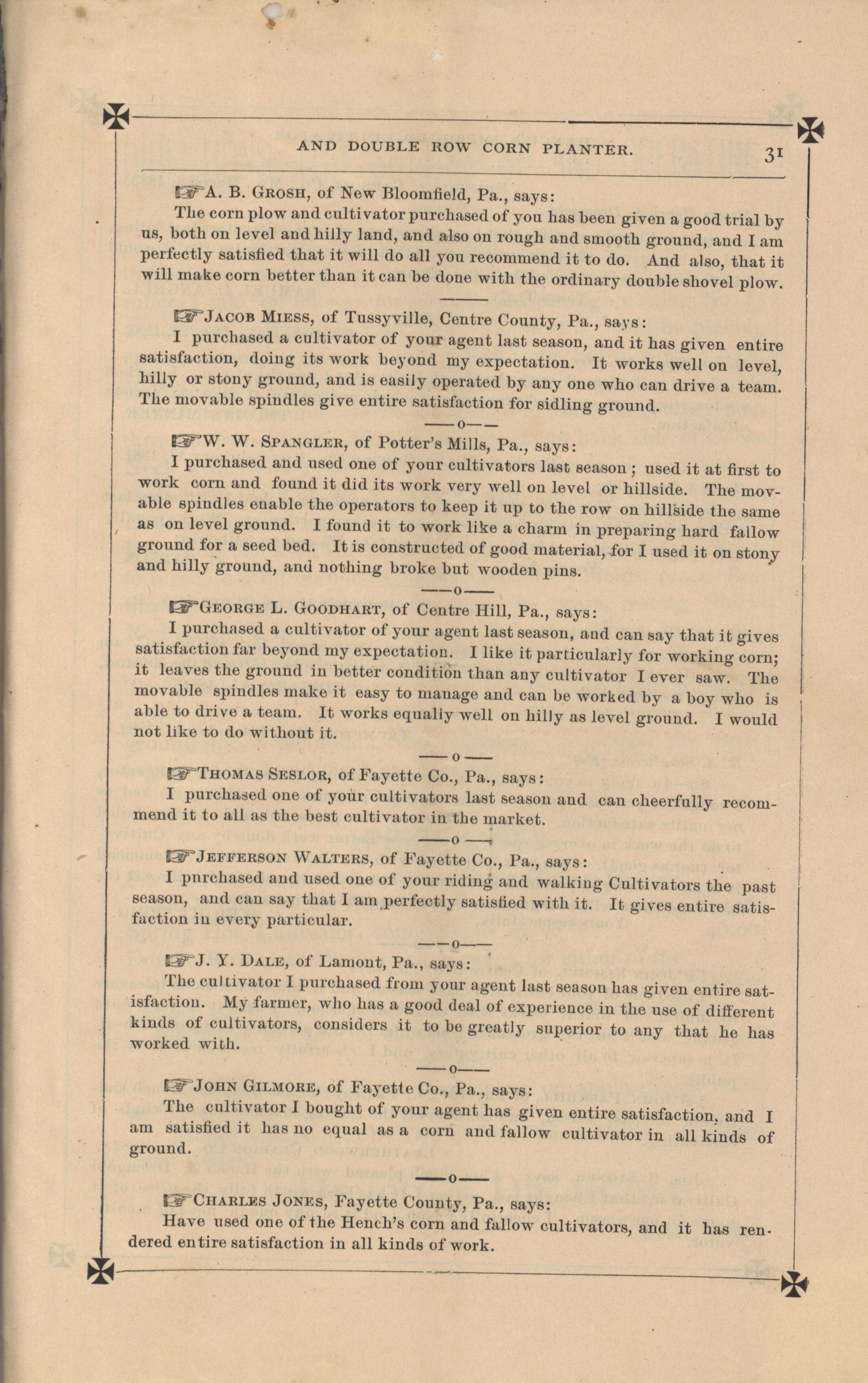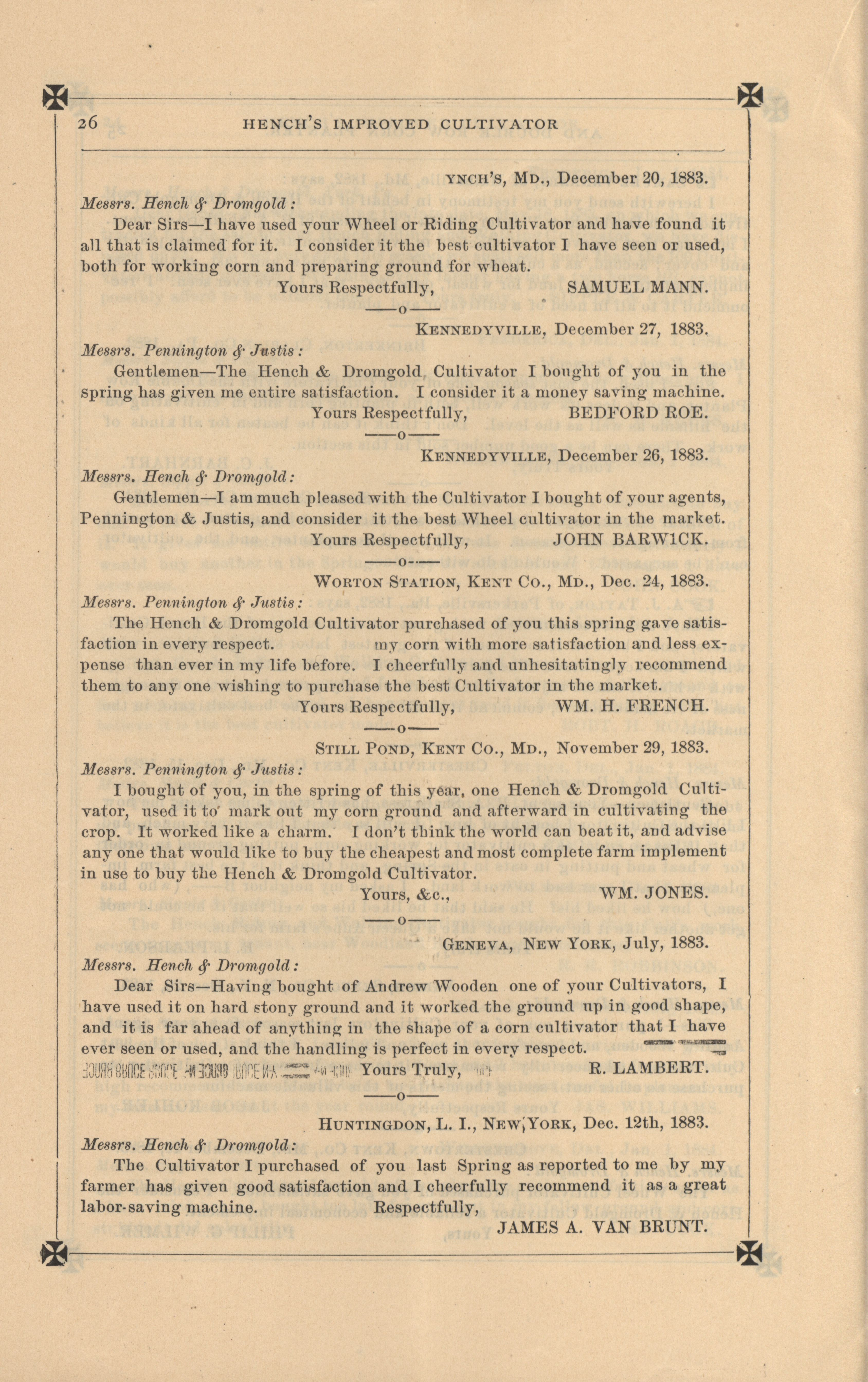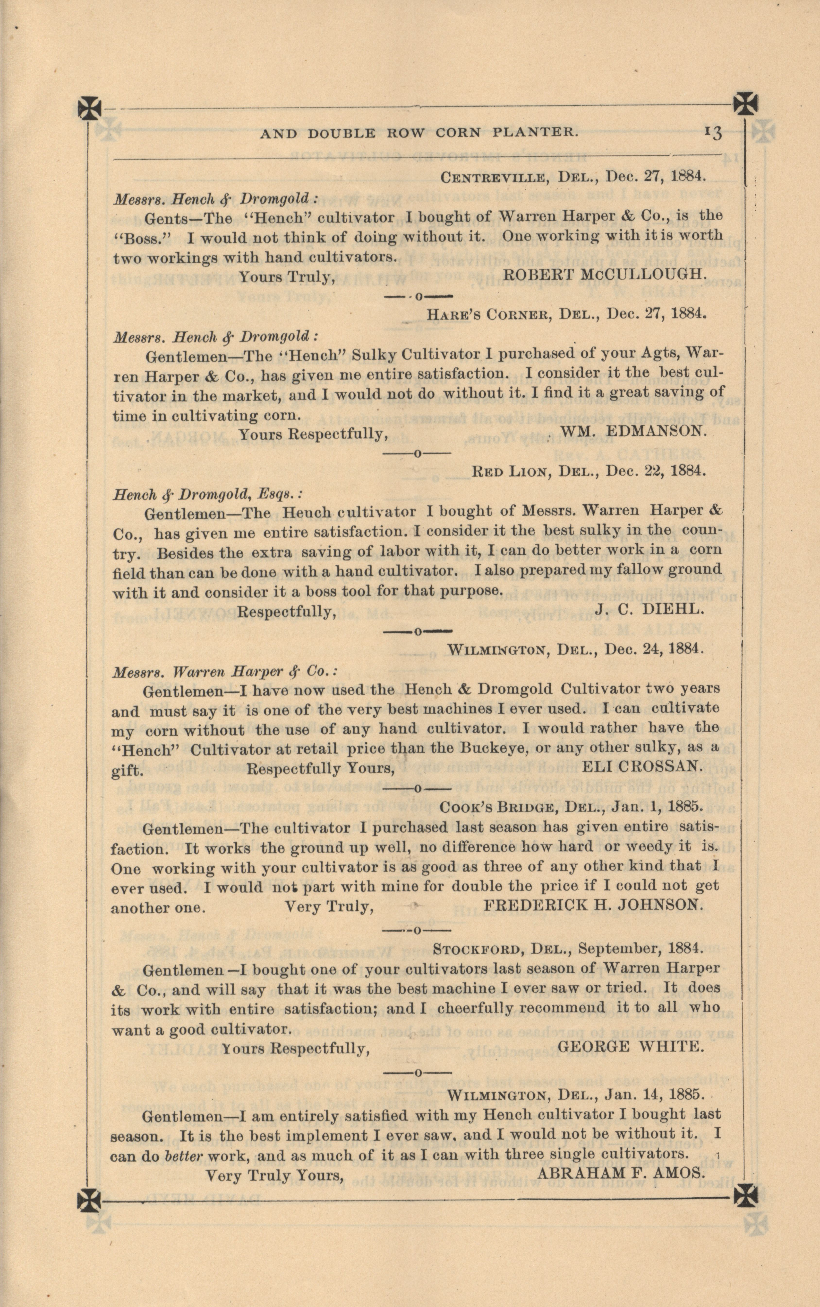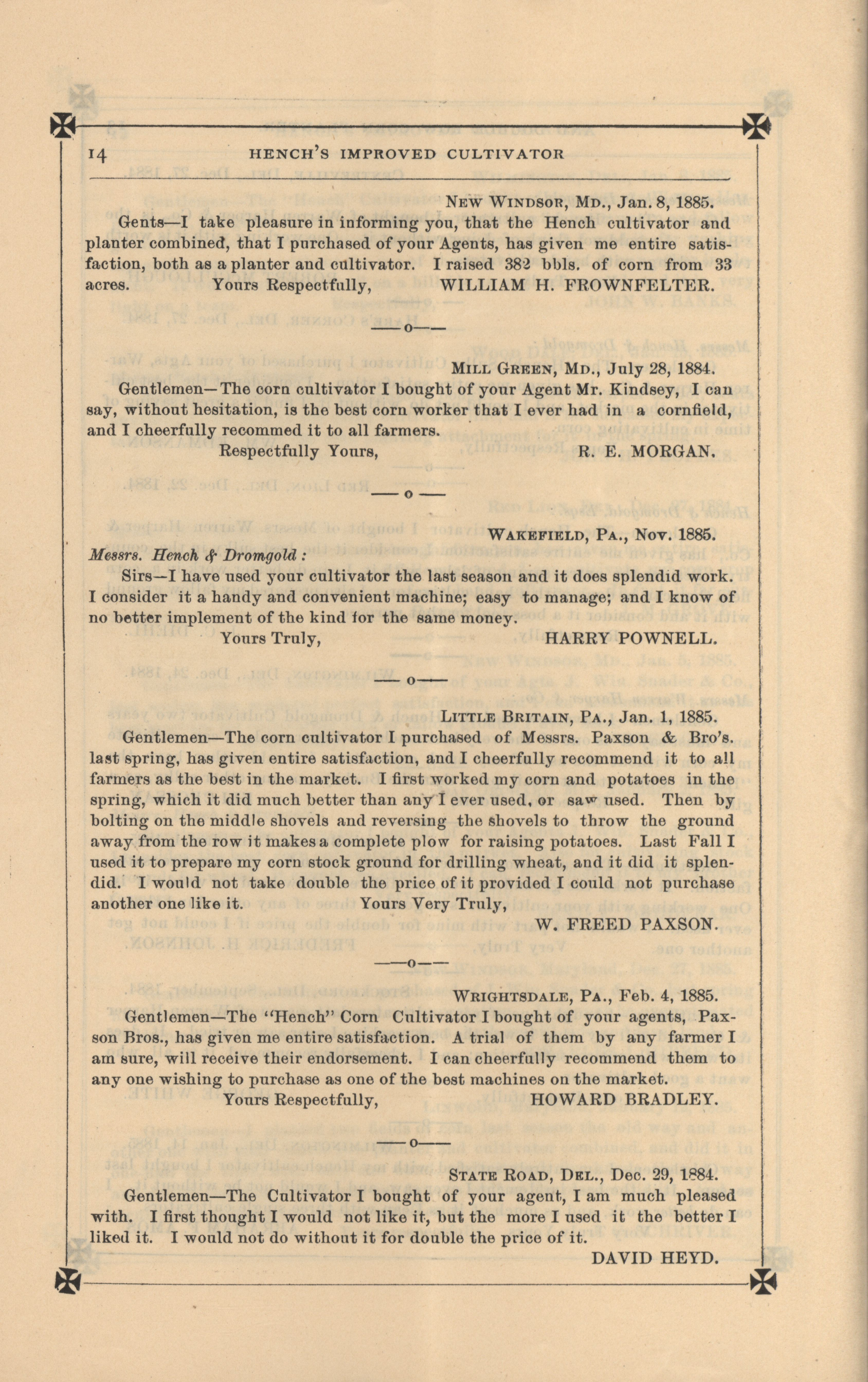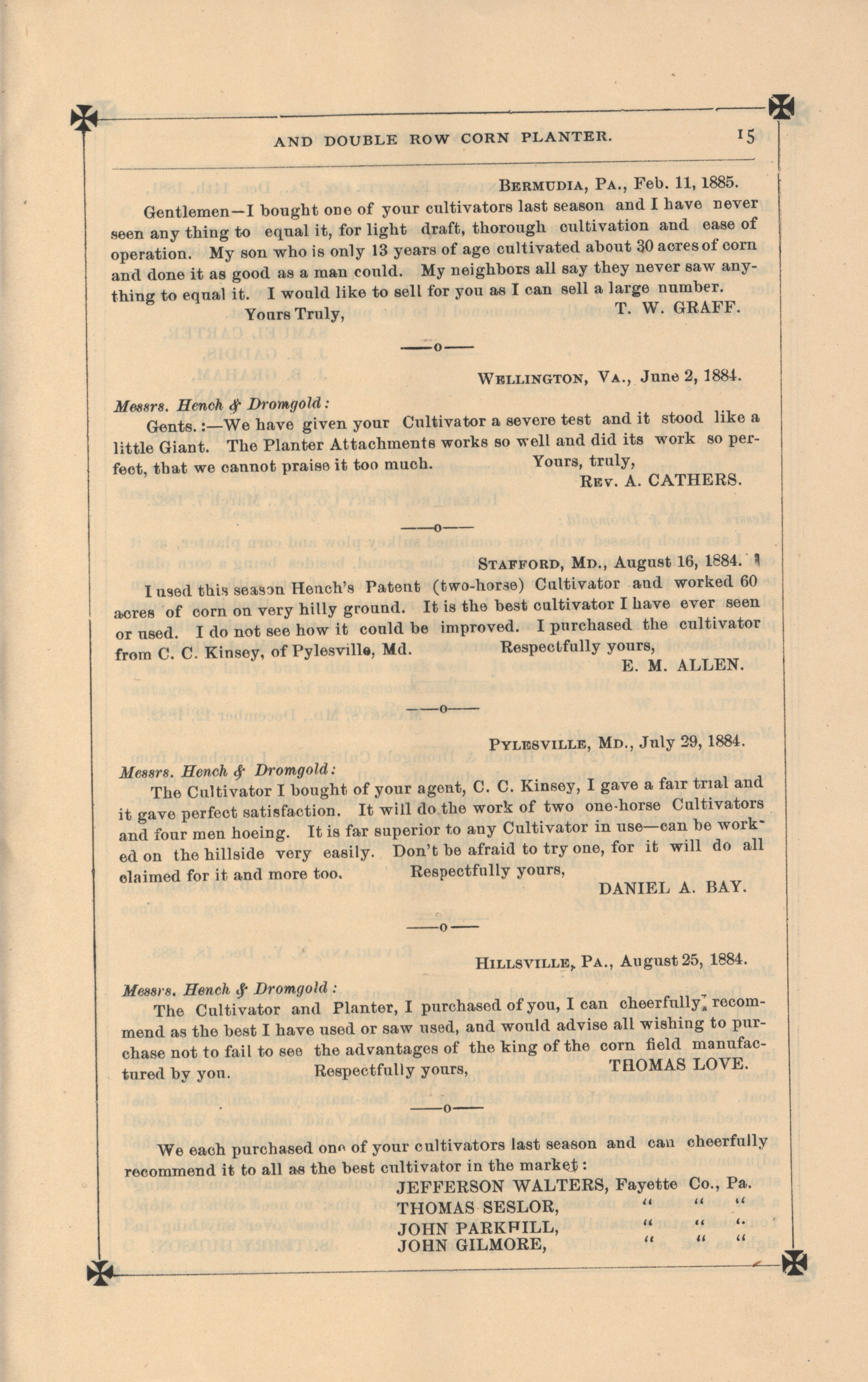 - "Hench's agricultural catalog", Agricultural Machinery Literature Collection, Iowa State University Library Digital Collections