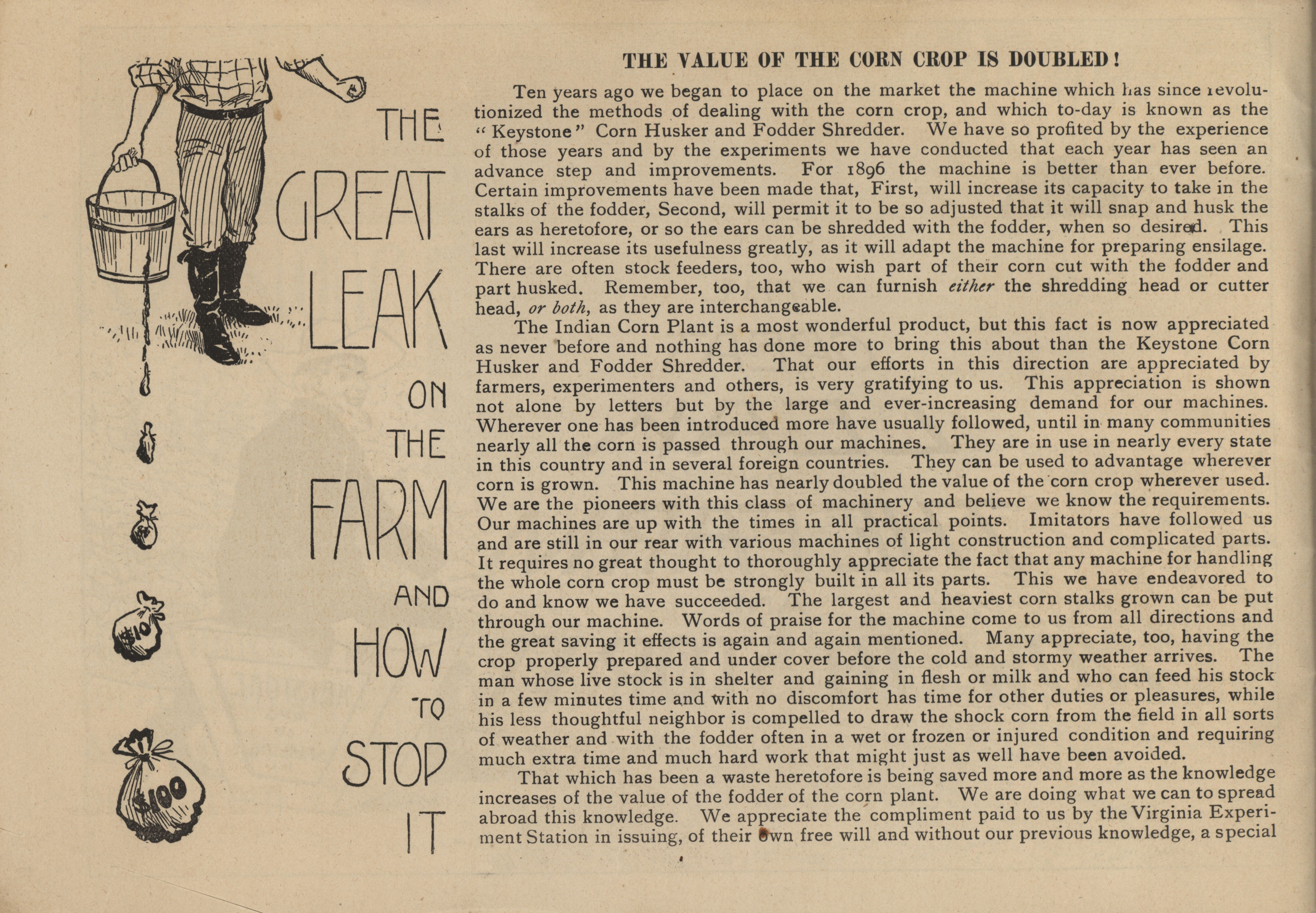 - "The Great Leak on the Farm", Agricultural Machinery Literature Collection, Iowa State University Library Digital Collections
