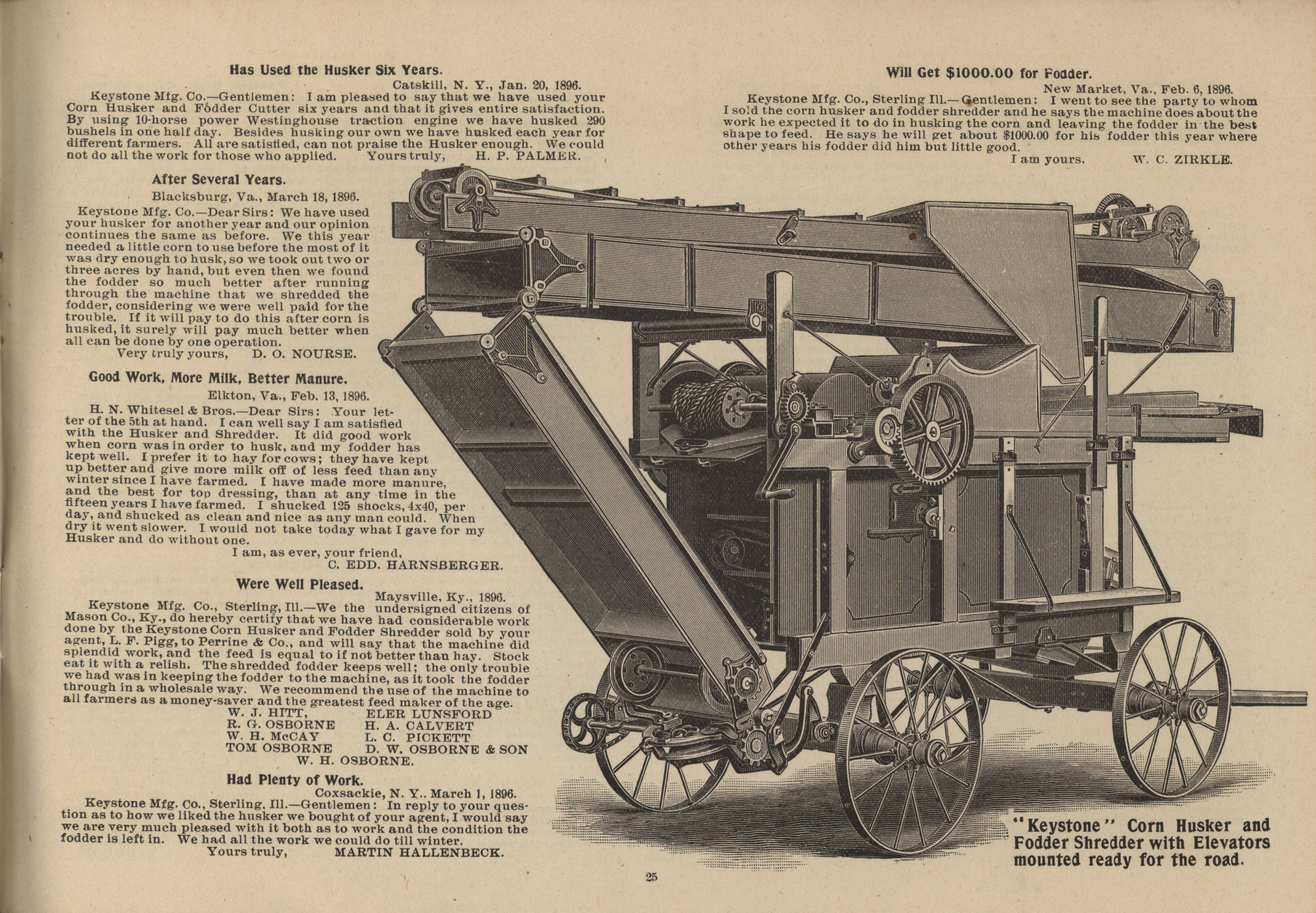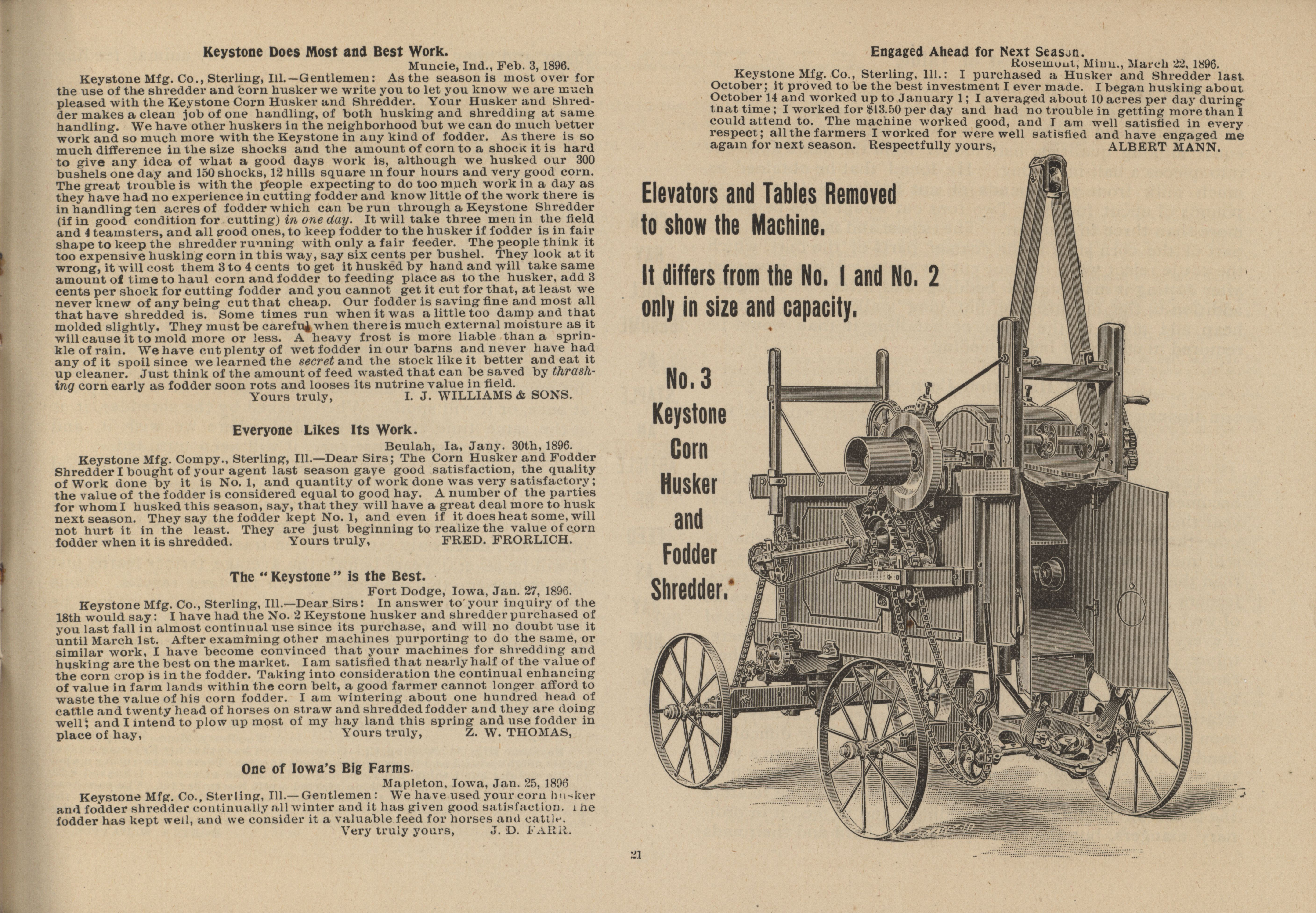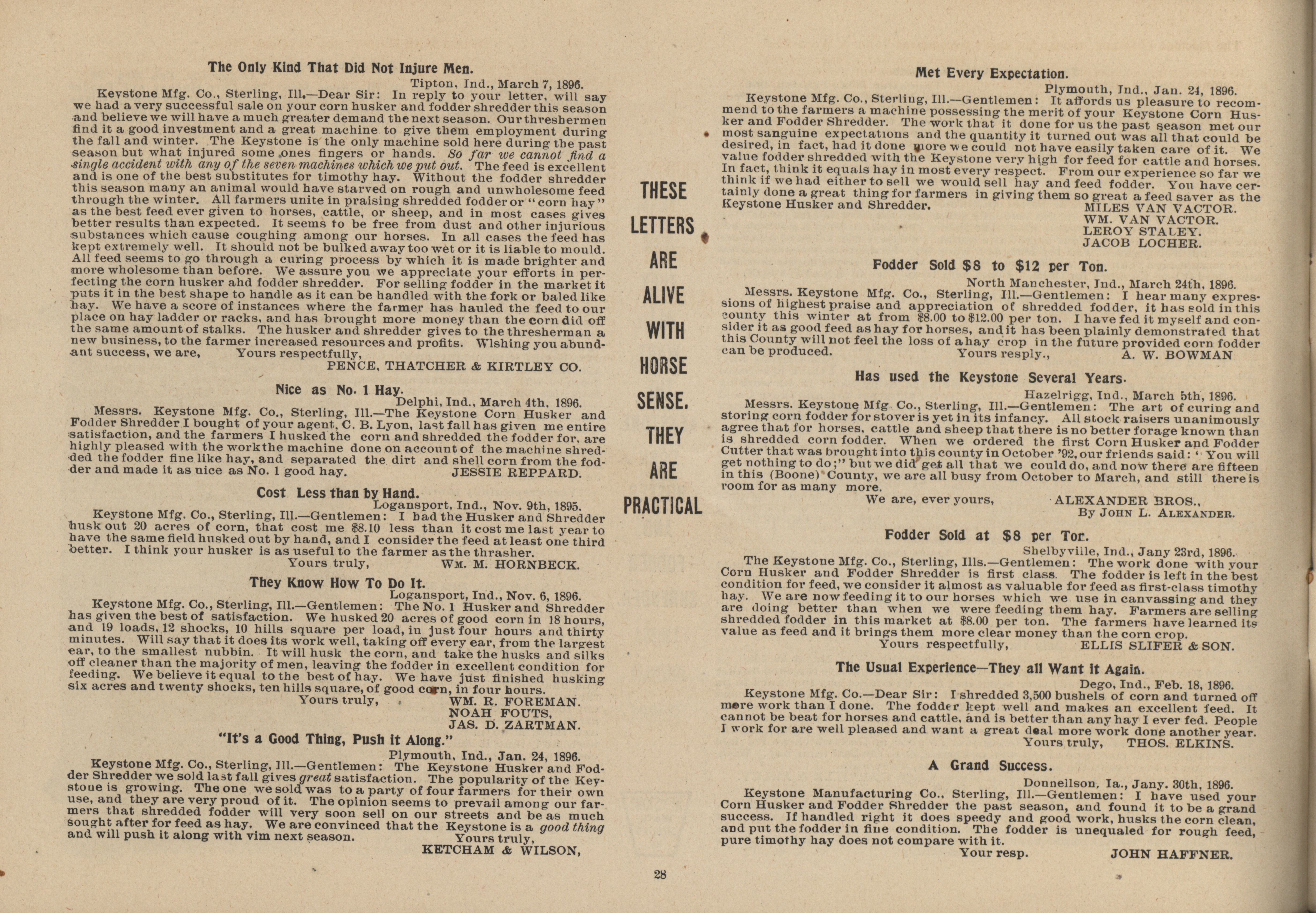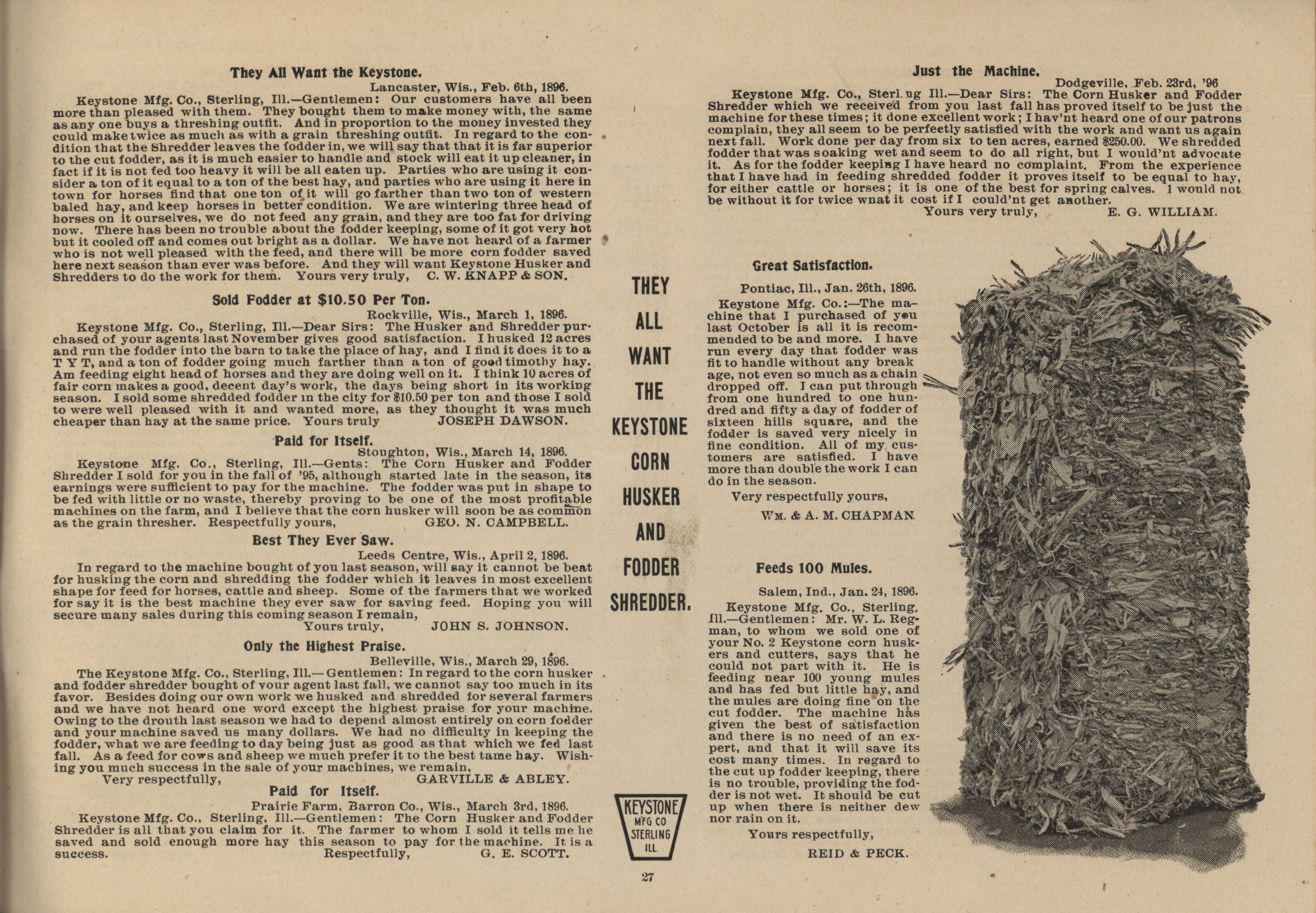 - A booklet containing anecdotes about purchasing Keystone Manufacturing's agricultural machinery.