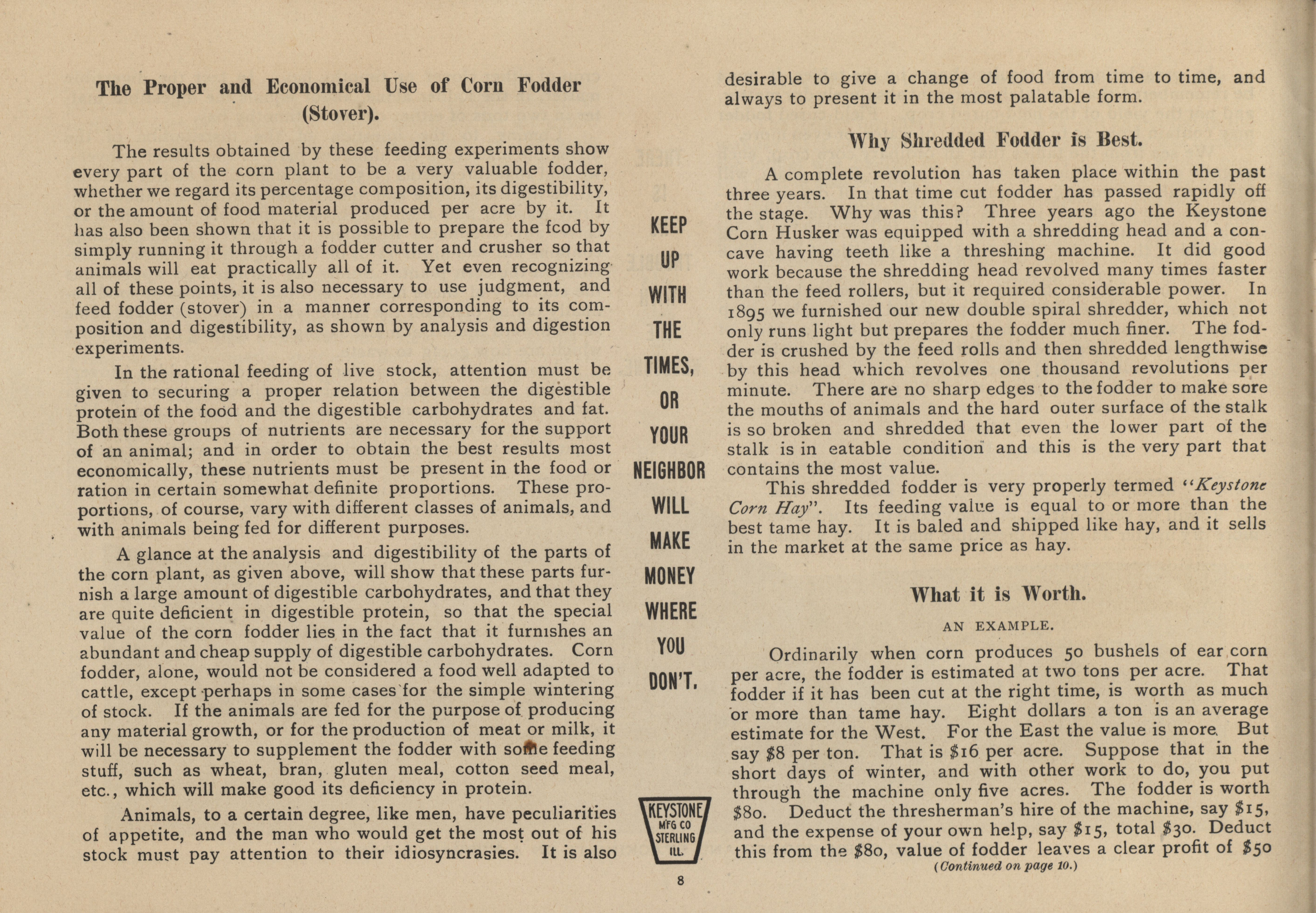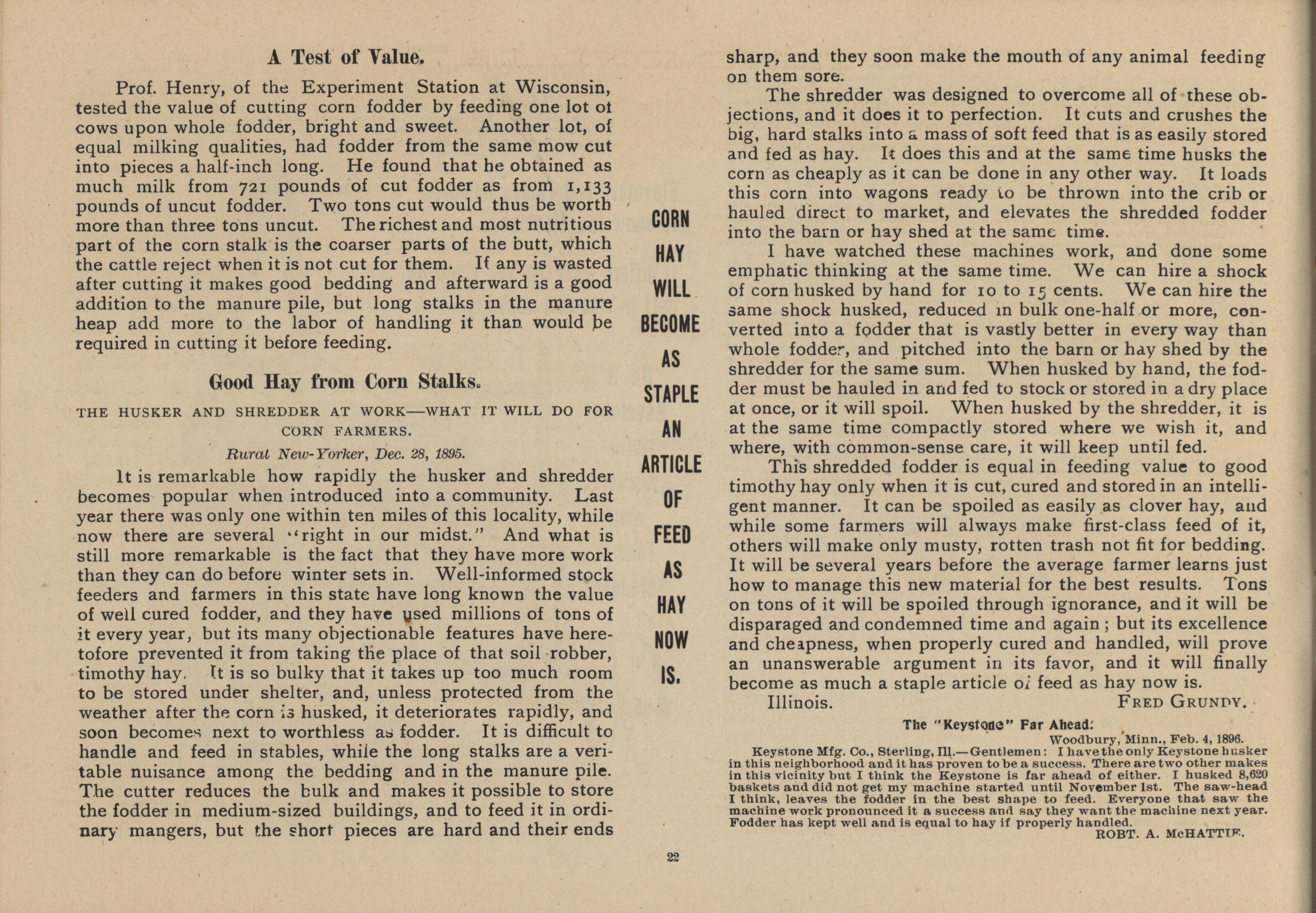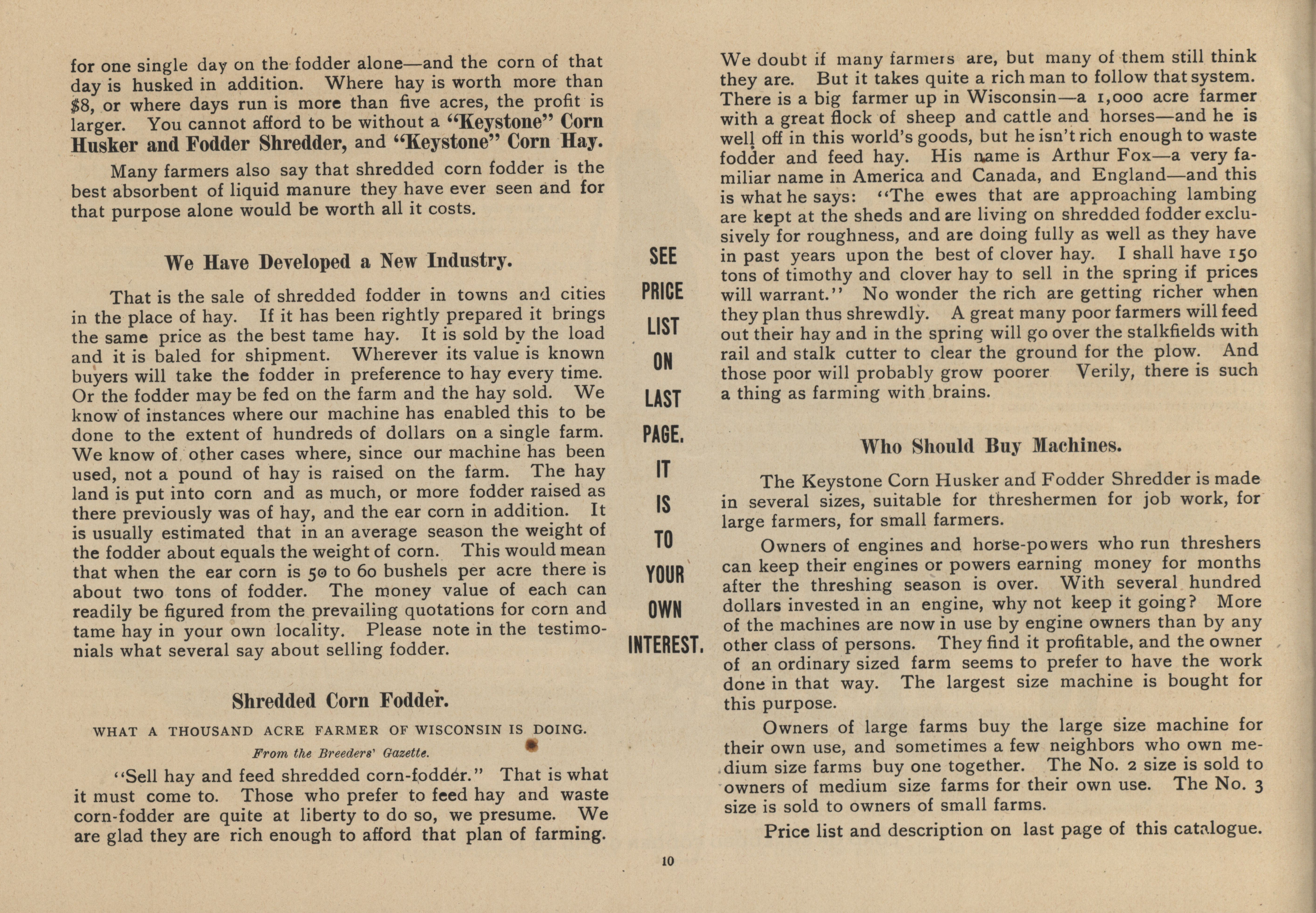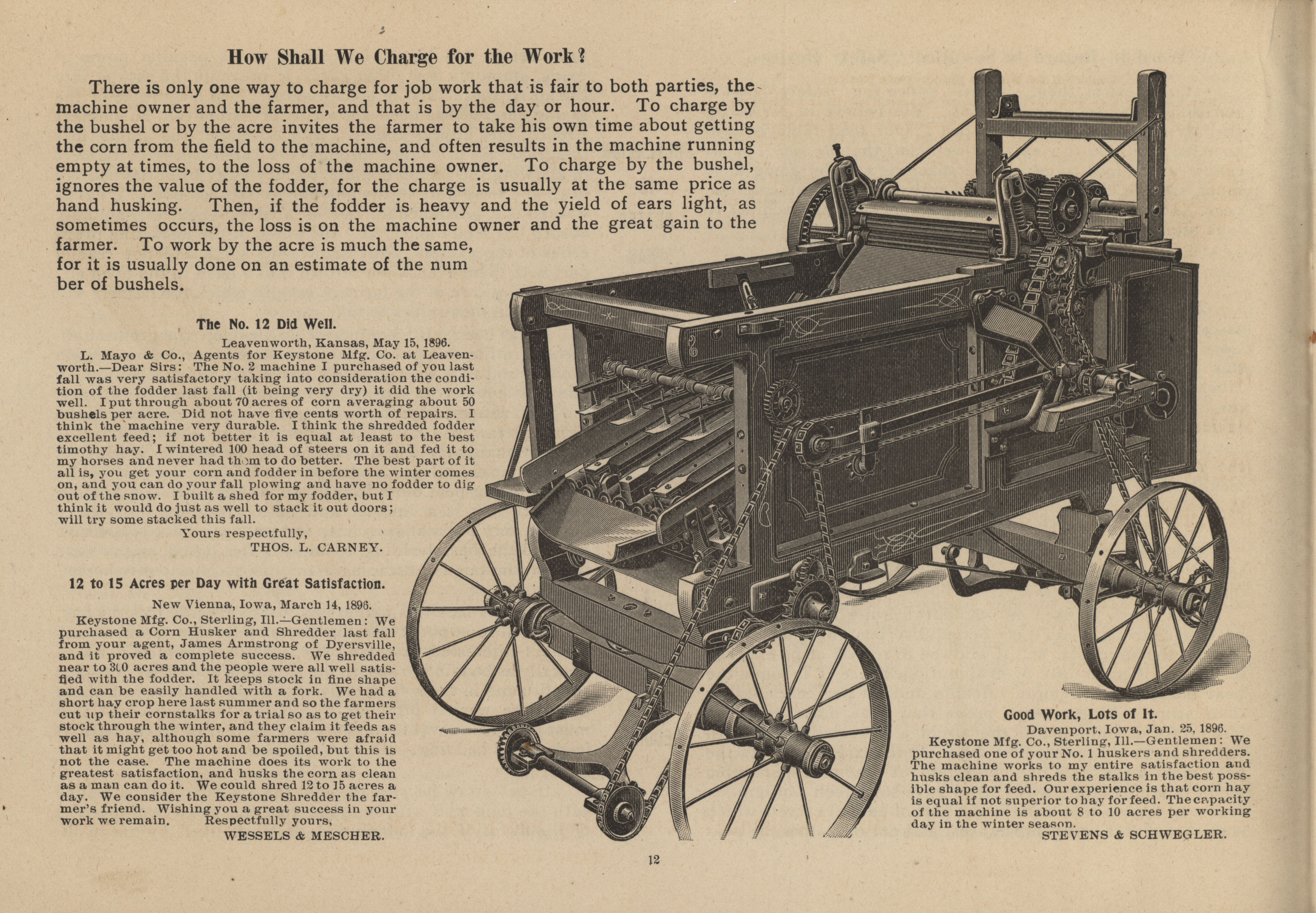 - A booklet containing anecdotes about purchasing Keystone Manufacturing's agricultural machinery.
