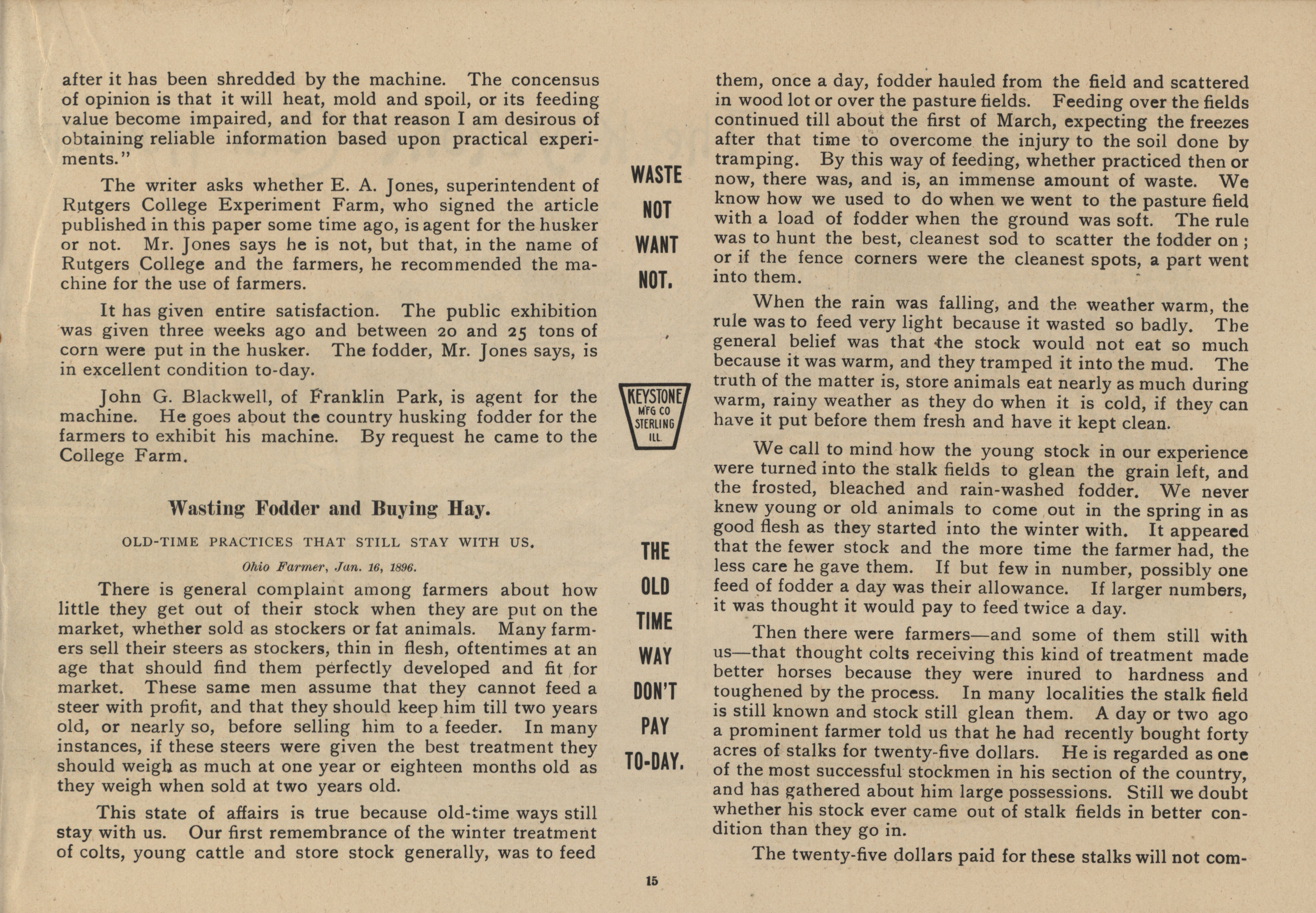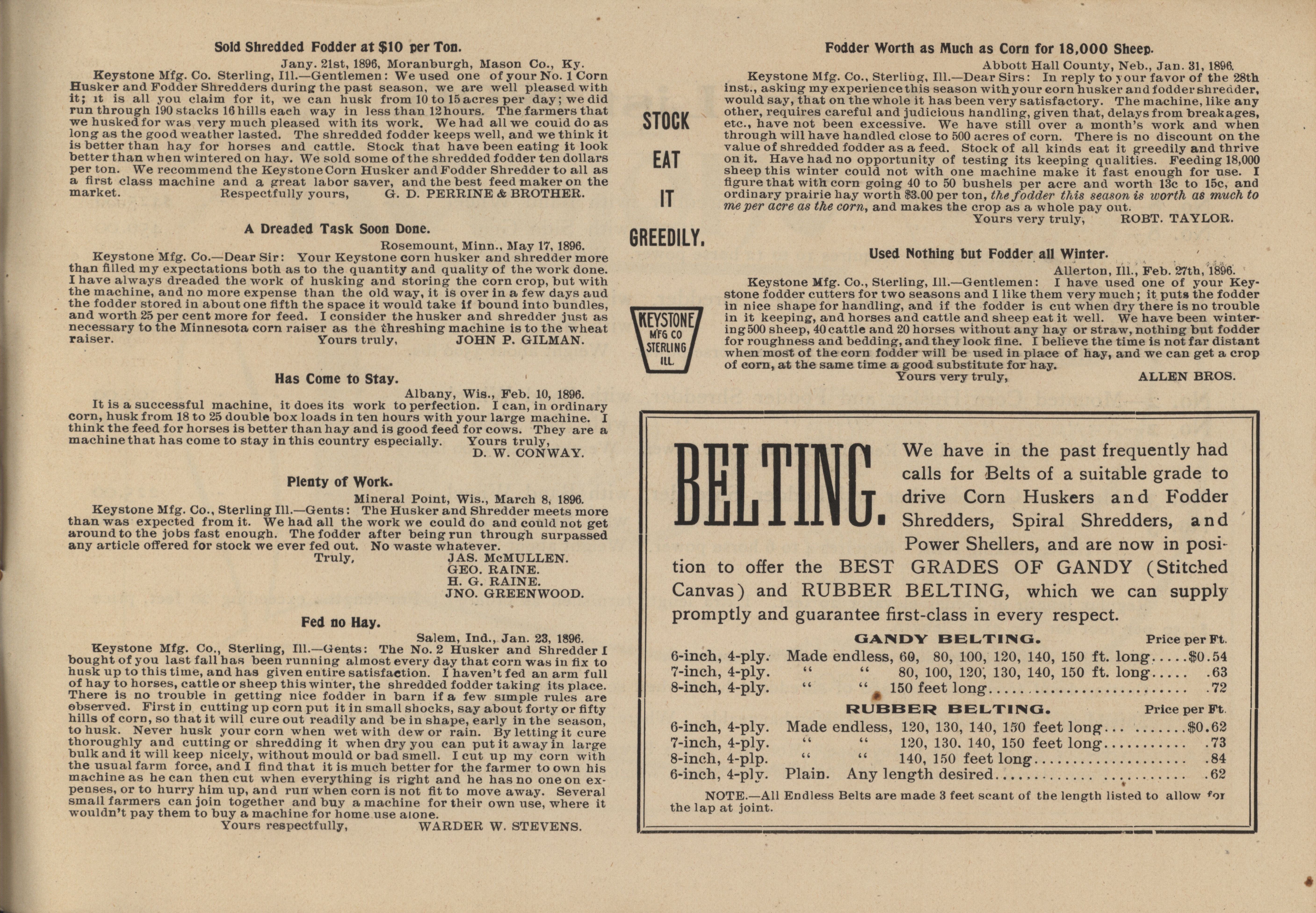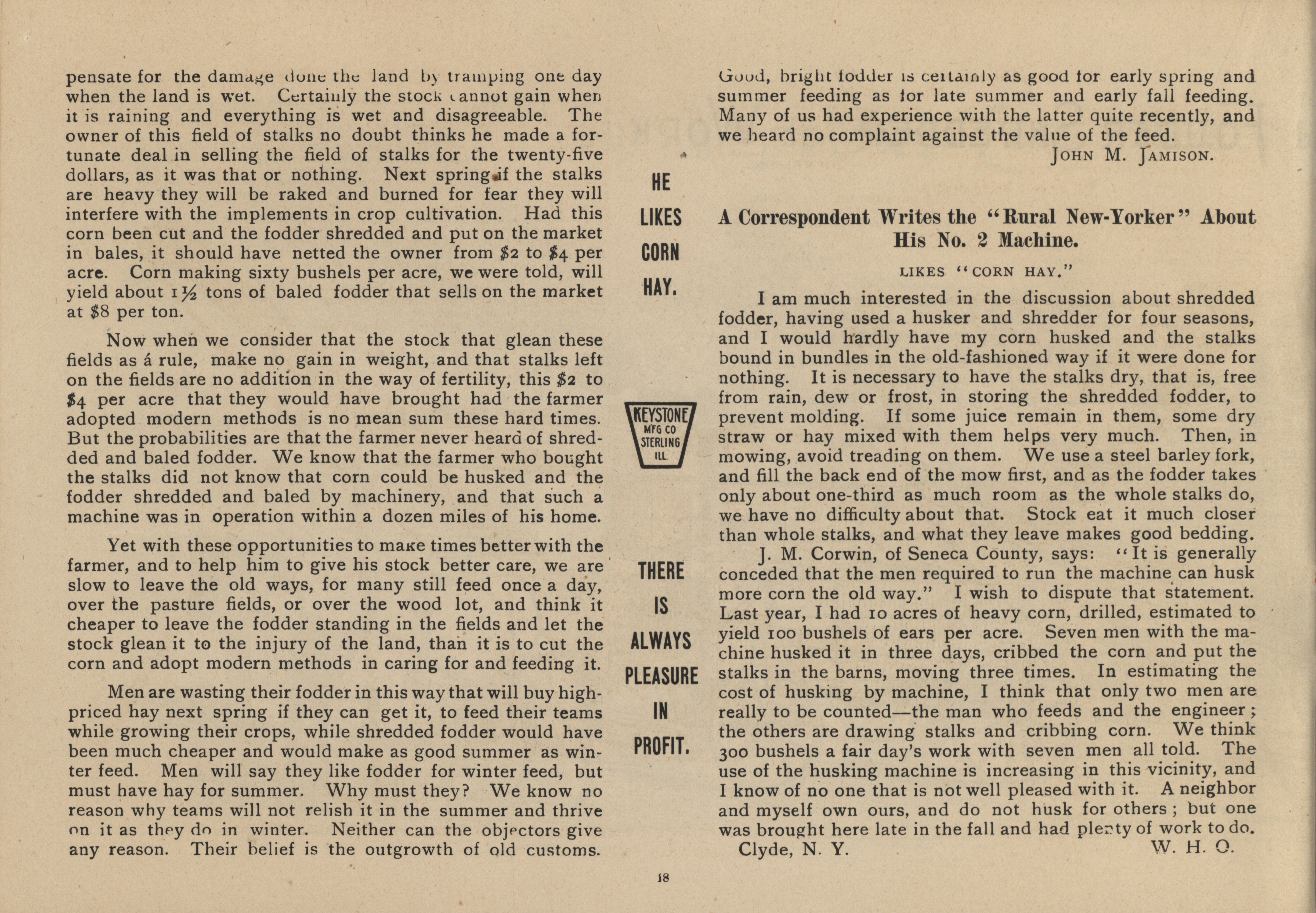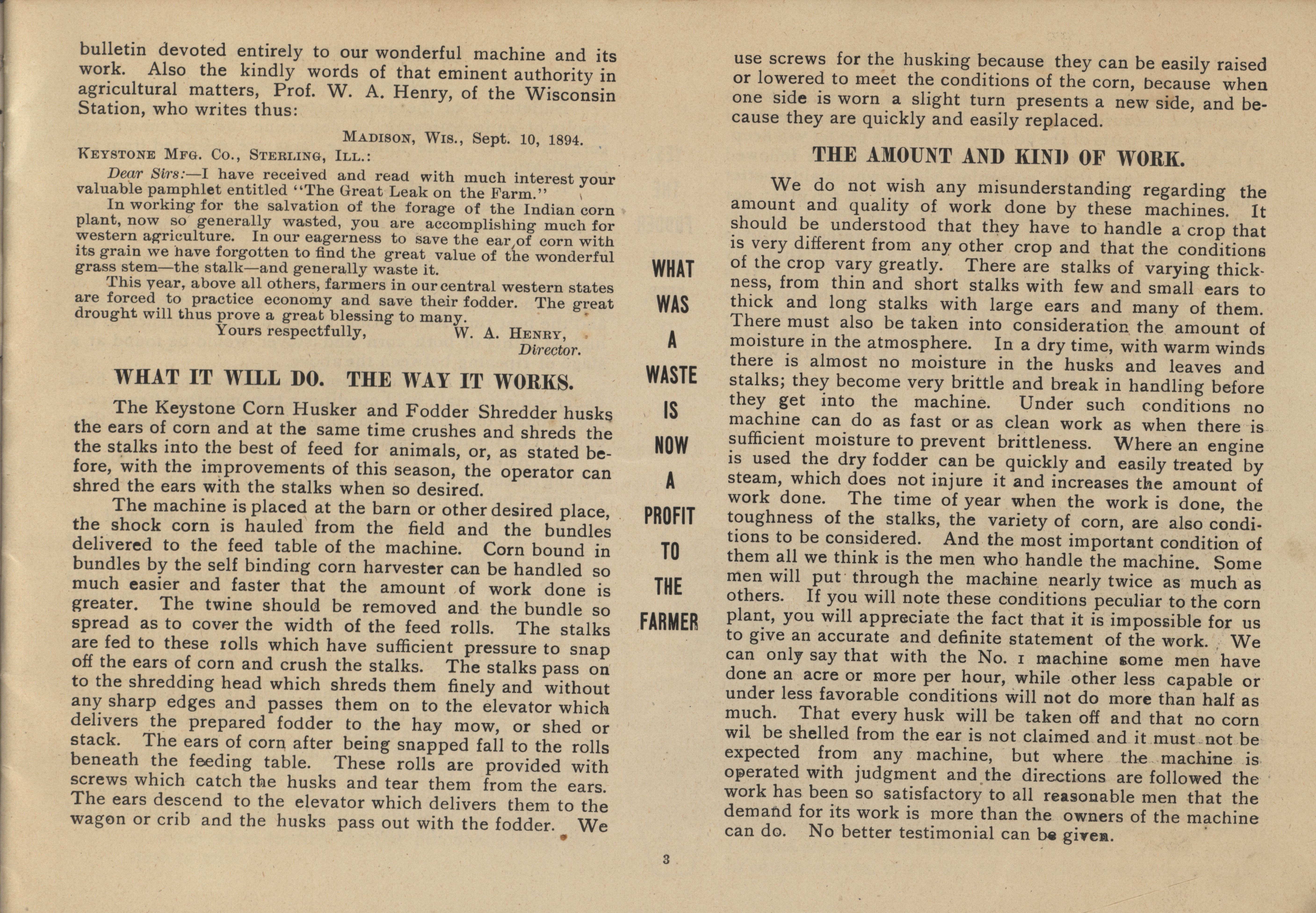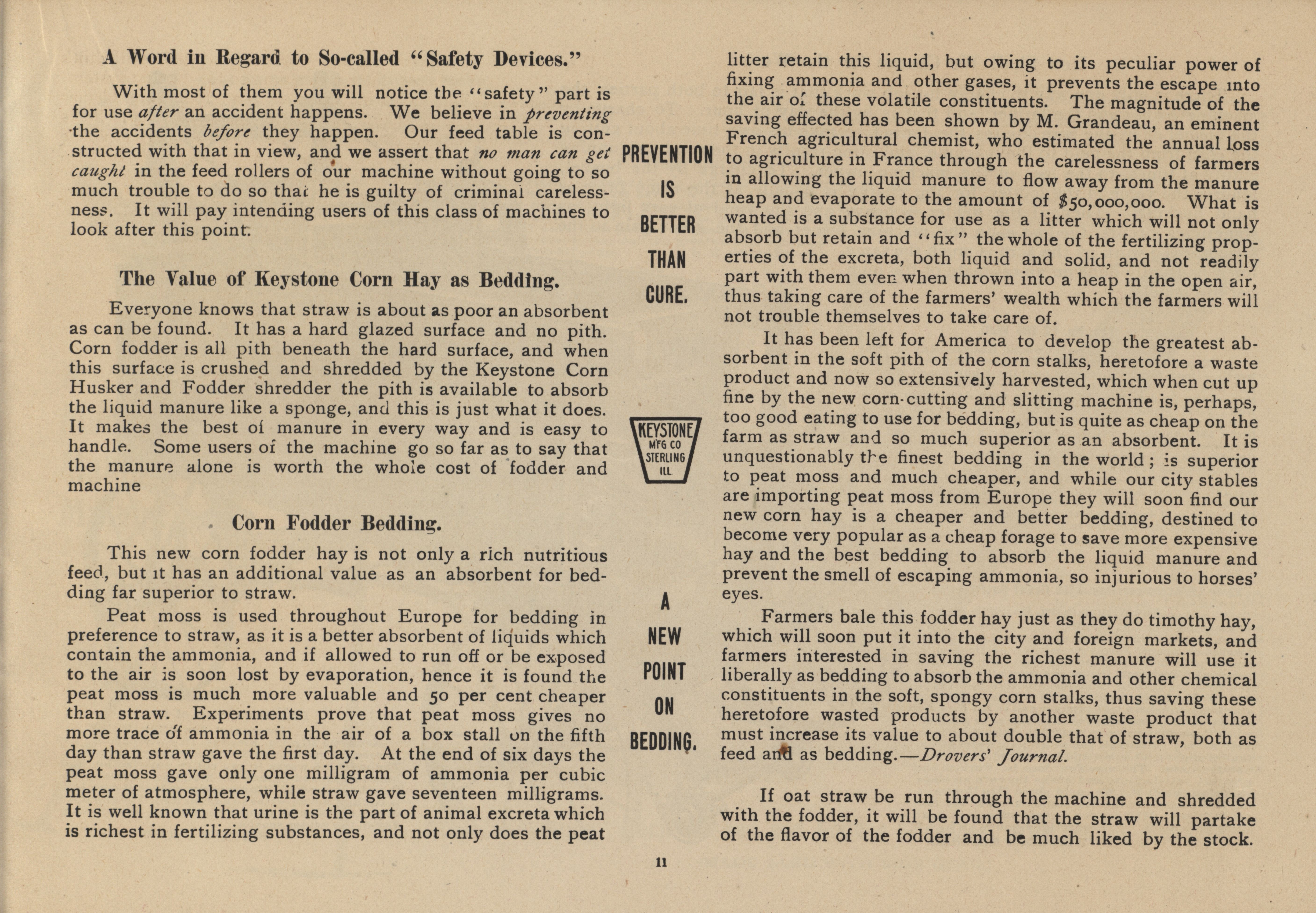 - A booklet containing anecdotes about purchasing Keystone Manufacturing's agricultural machinery.