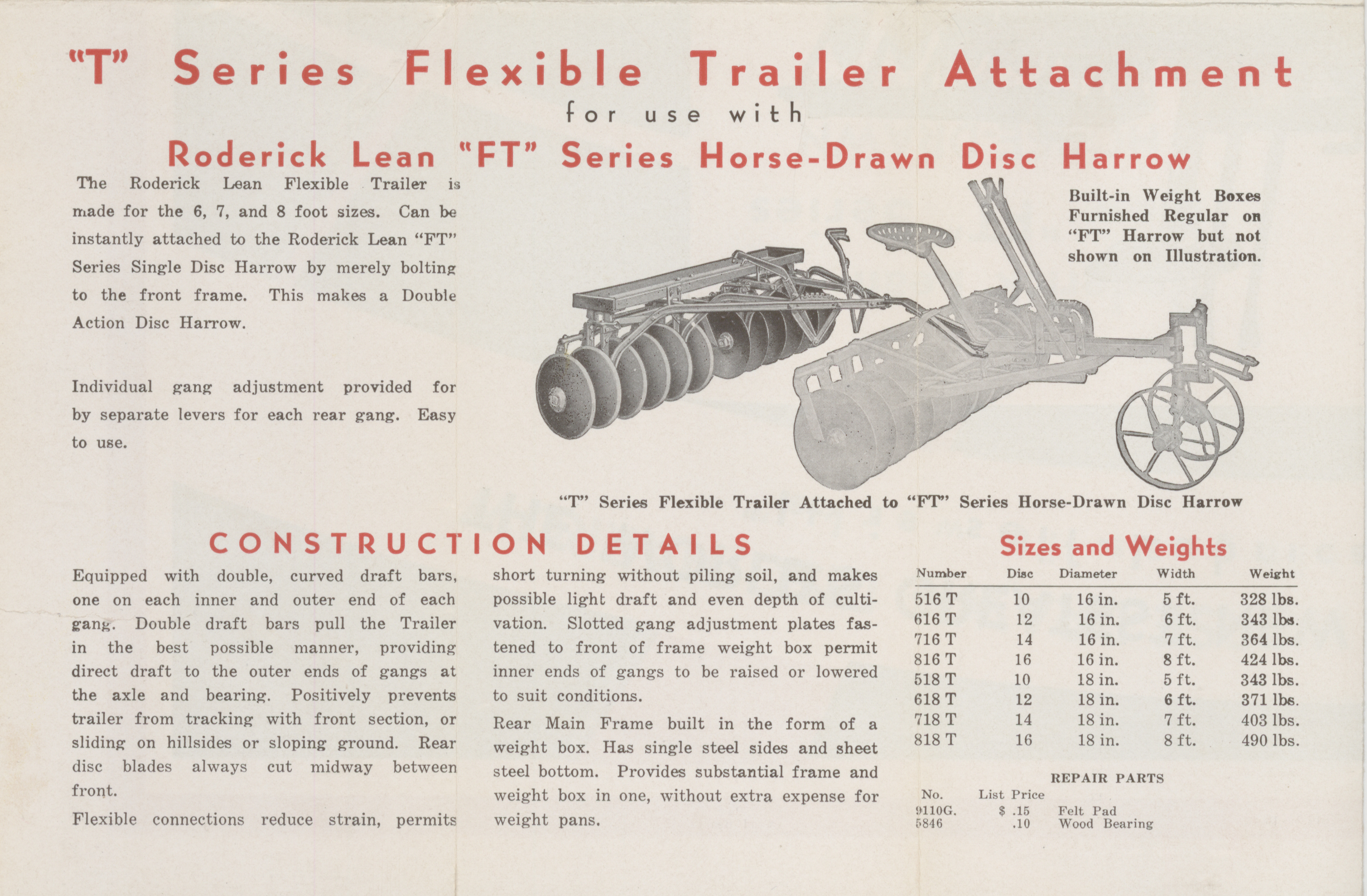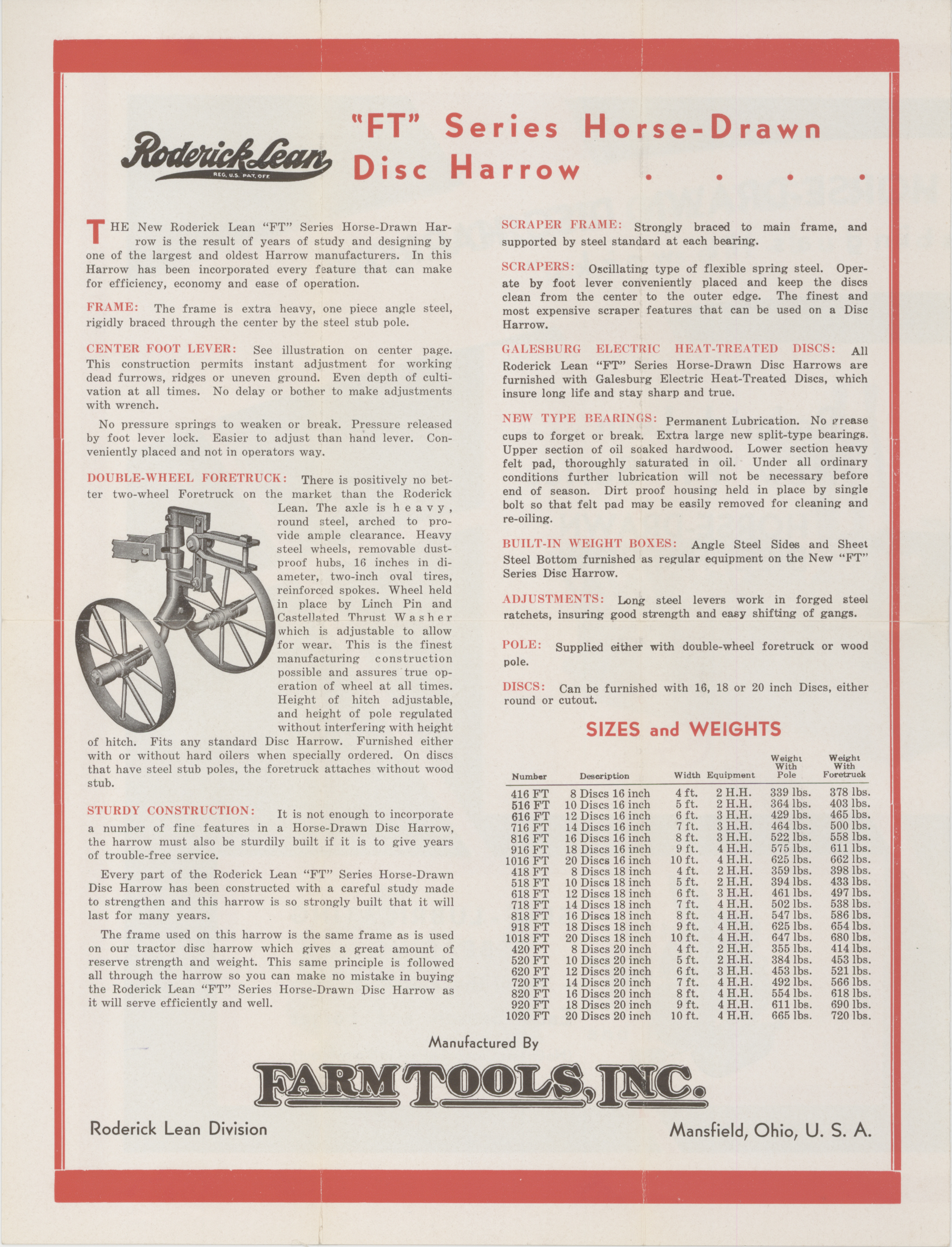 - "Roderick Lean "FT" series horse-drawn disc harrow", Agricultural Machinery Literature Collection, Iowa State University Library Digital Collections