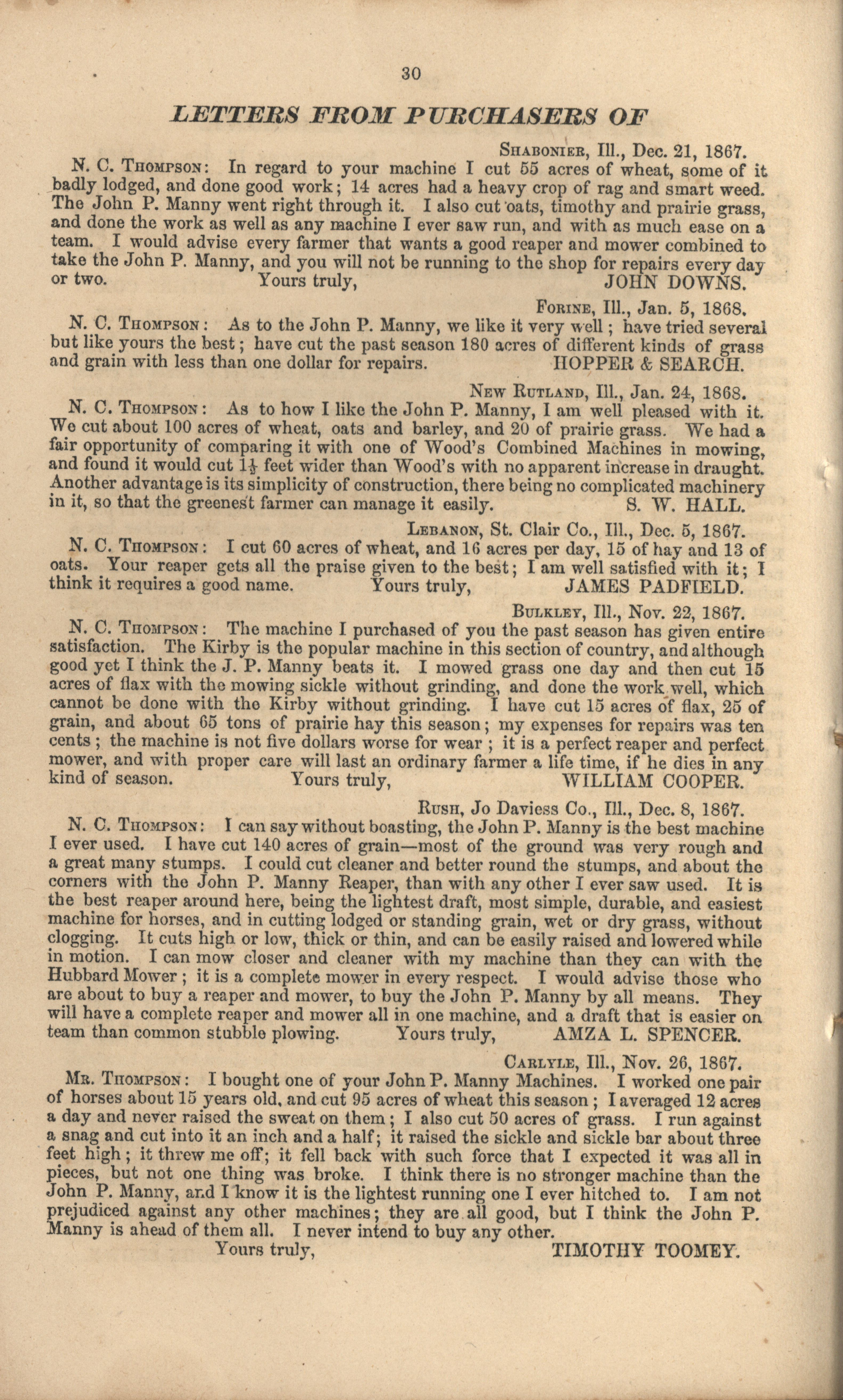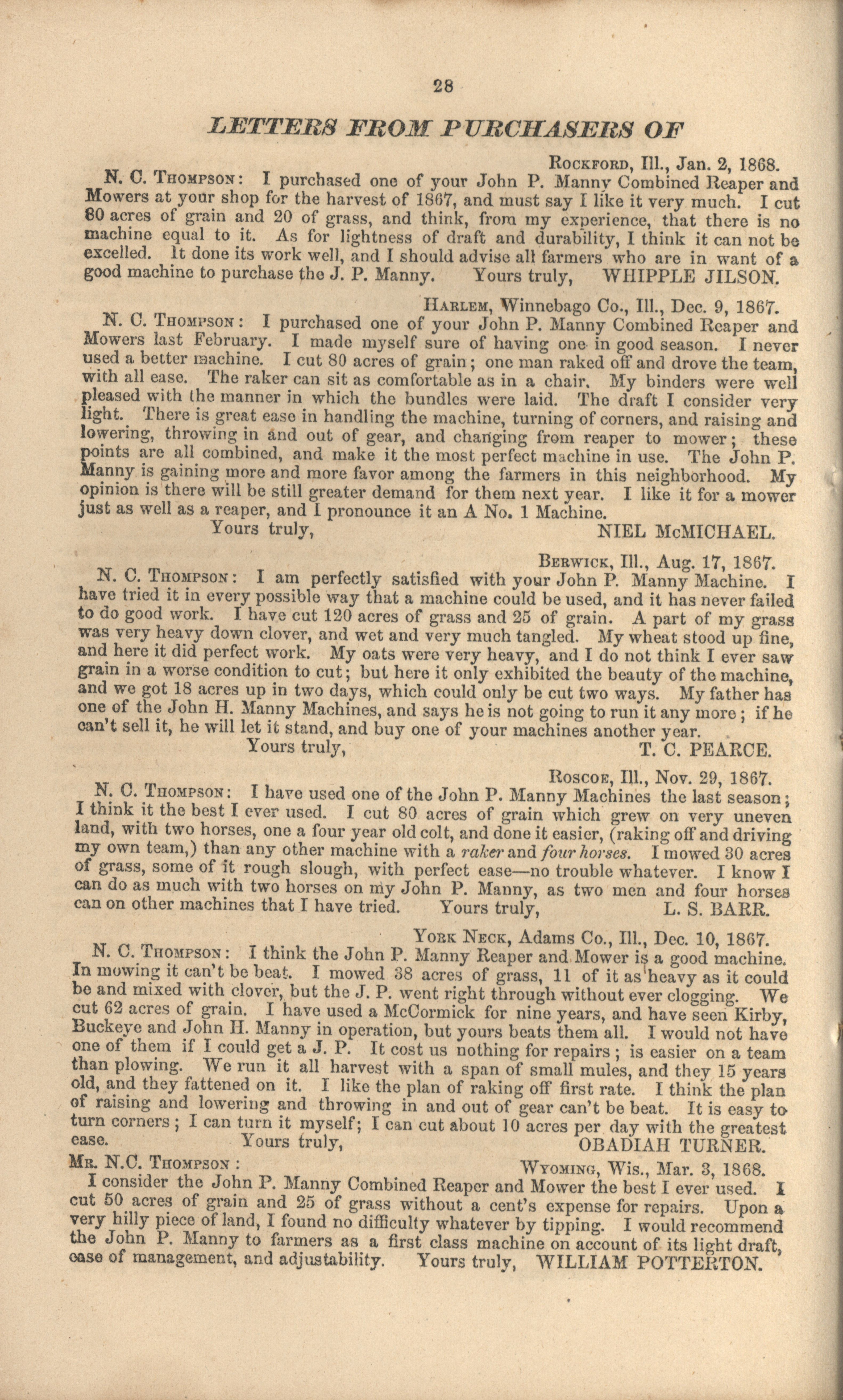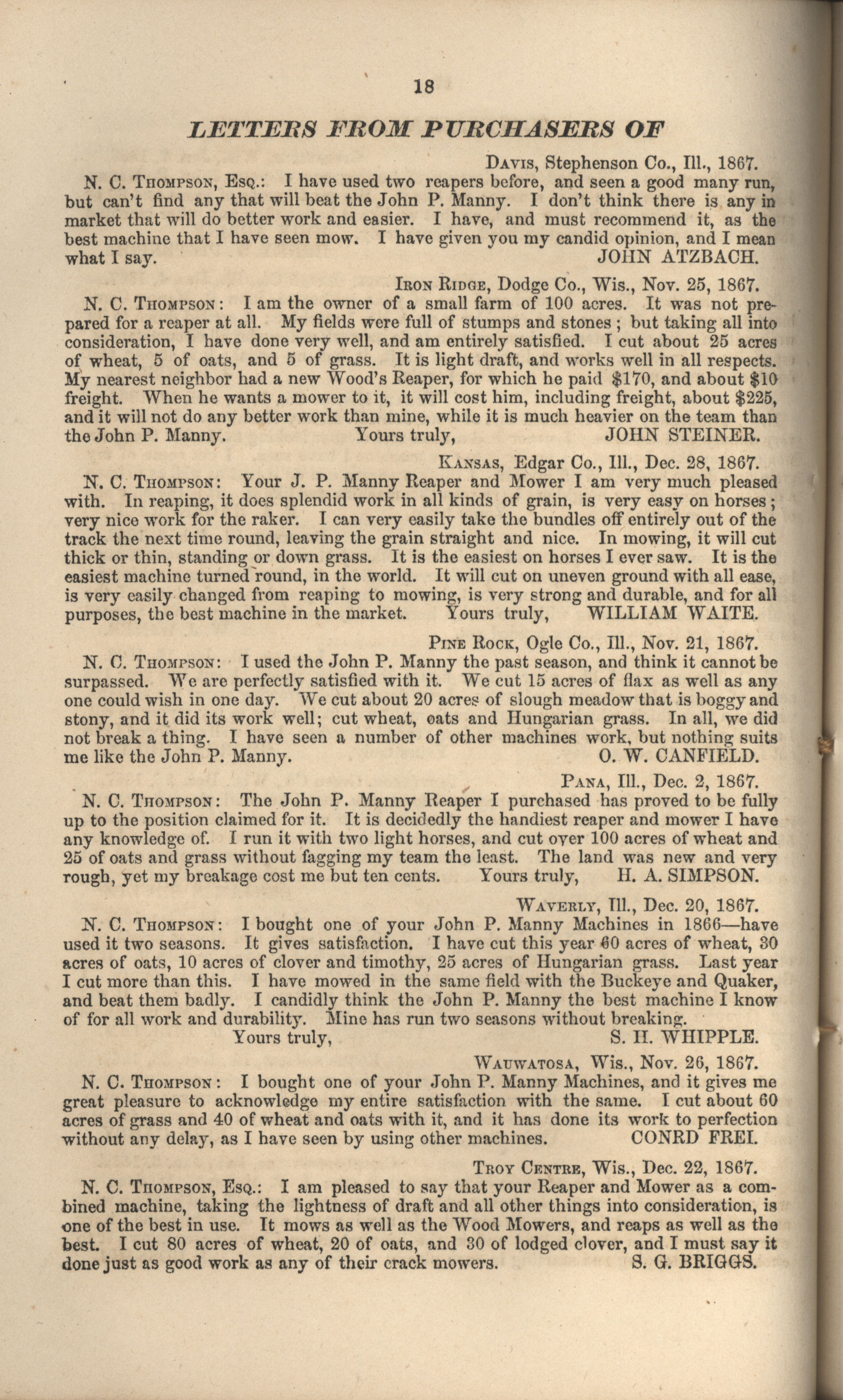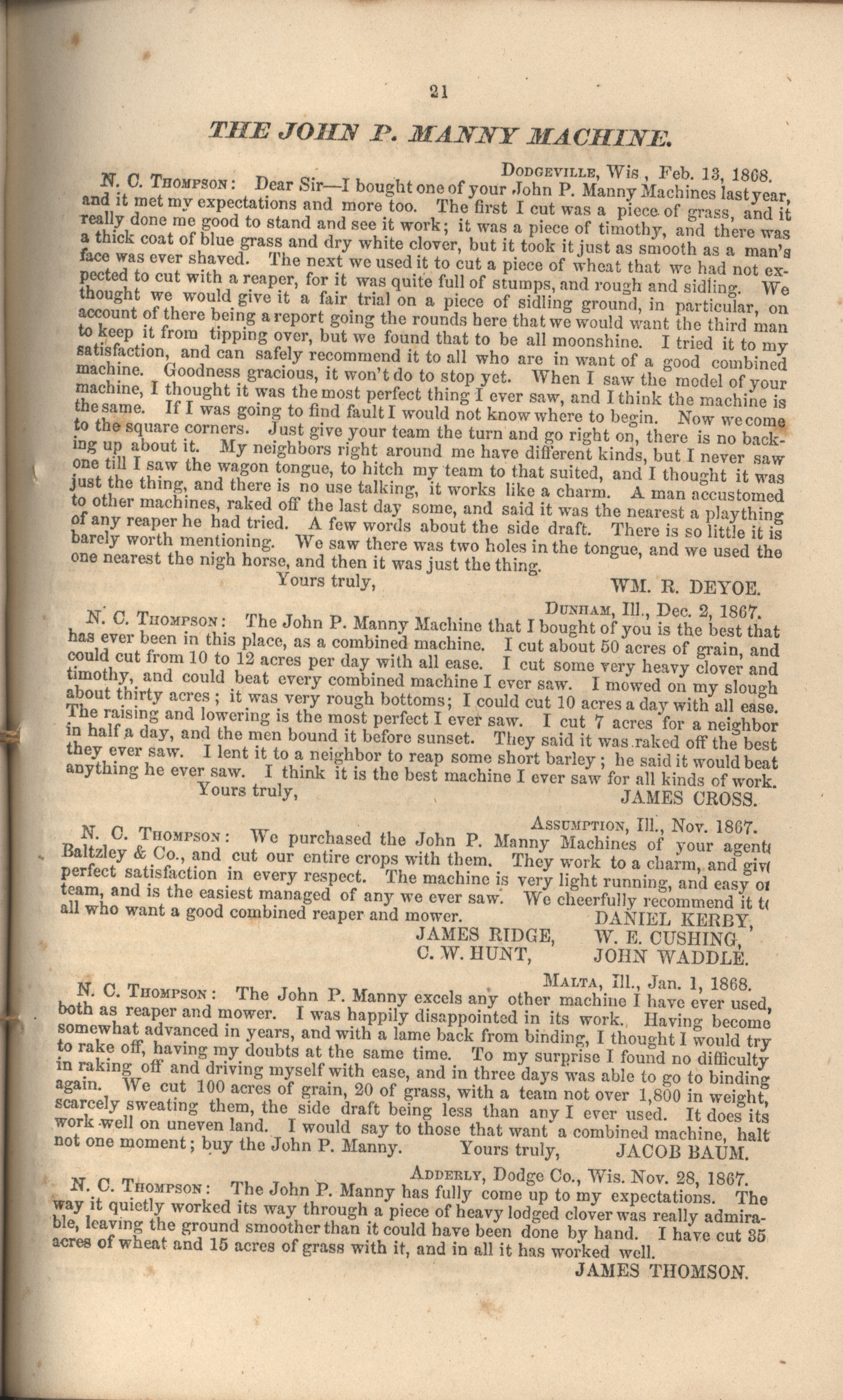 - "John P. Manny's combination mower, reaper, hand-raker and dropper catalog", Agricultural Machinery Literature Collection, Iowa State University Library Digital Collections