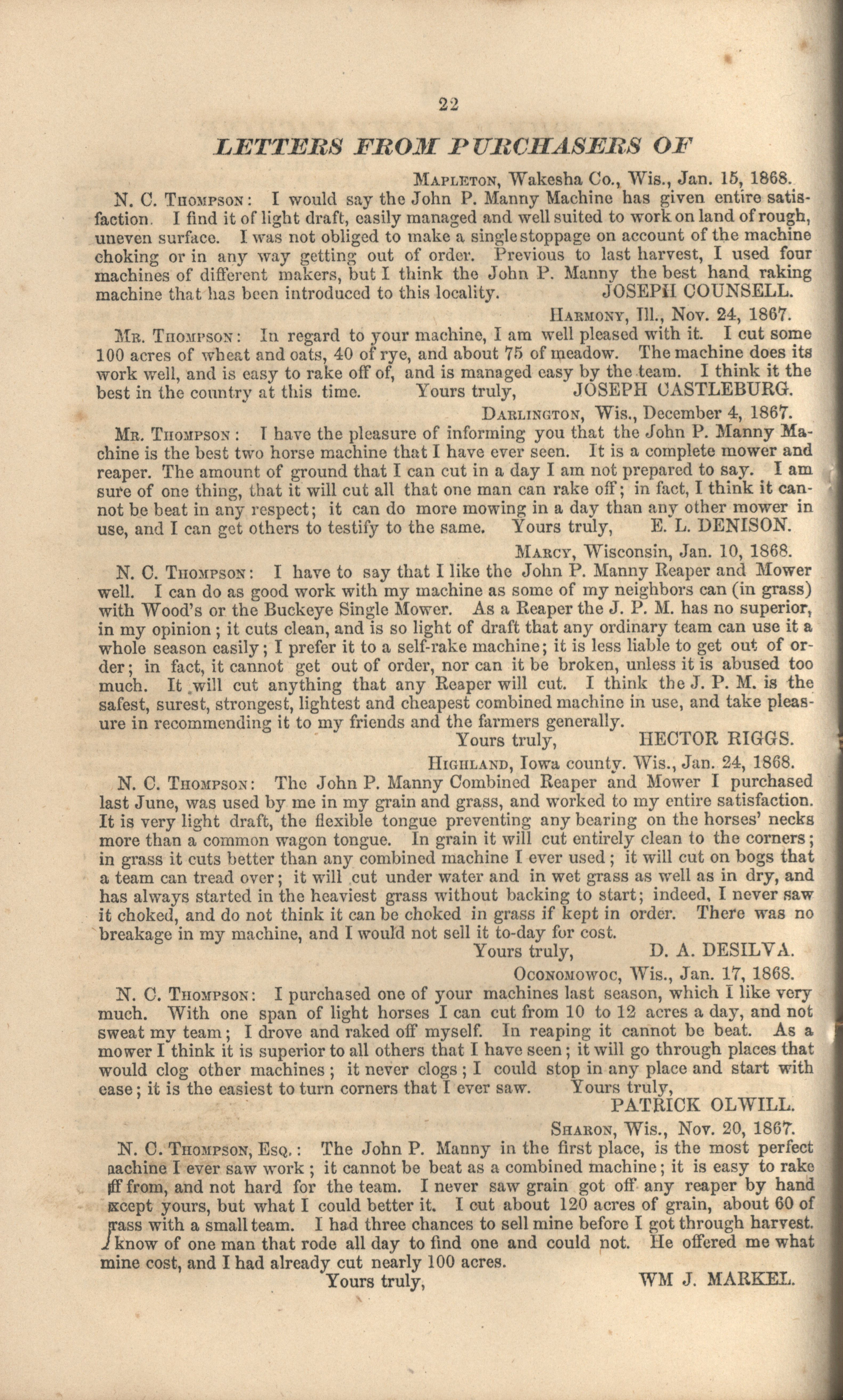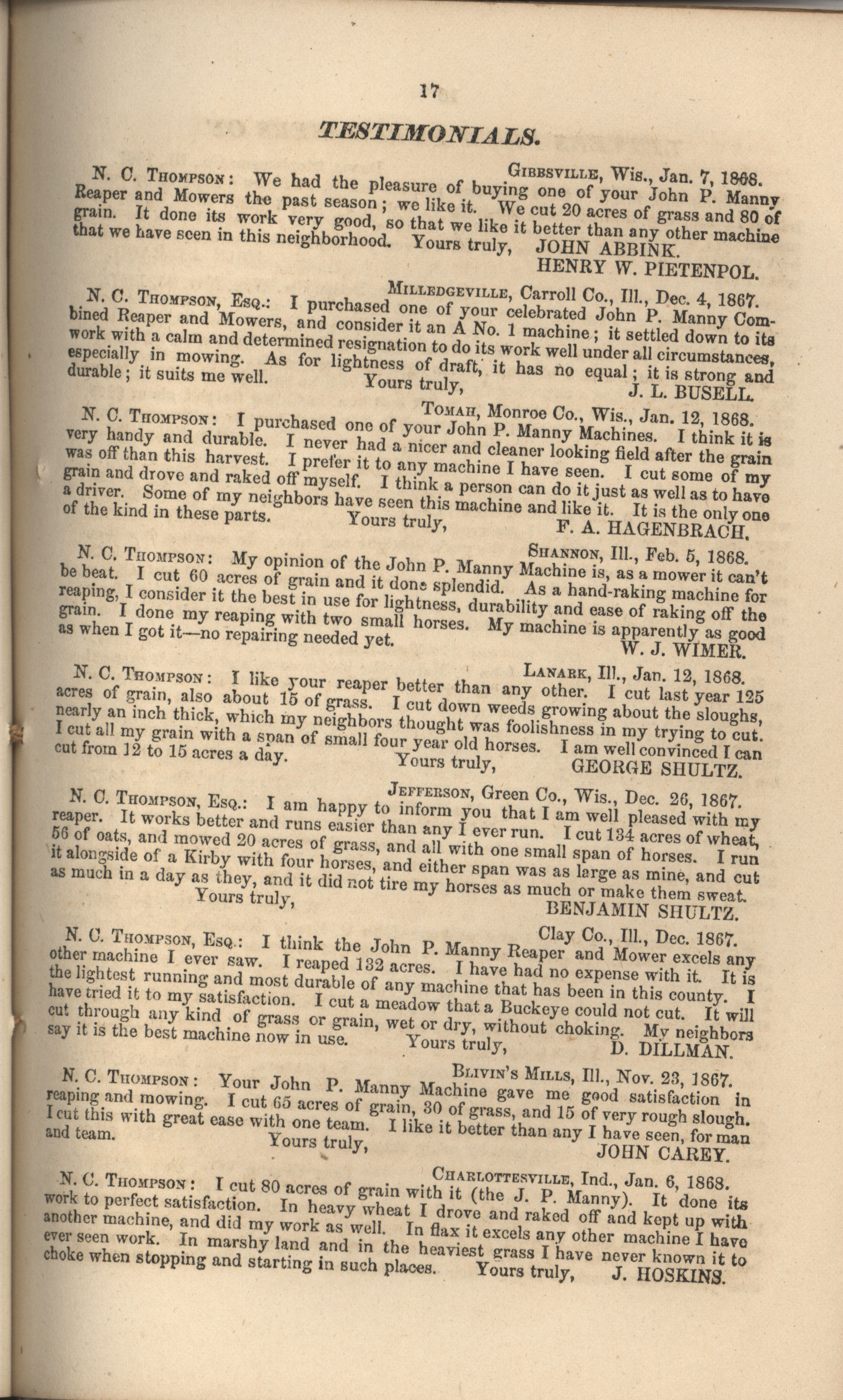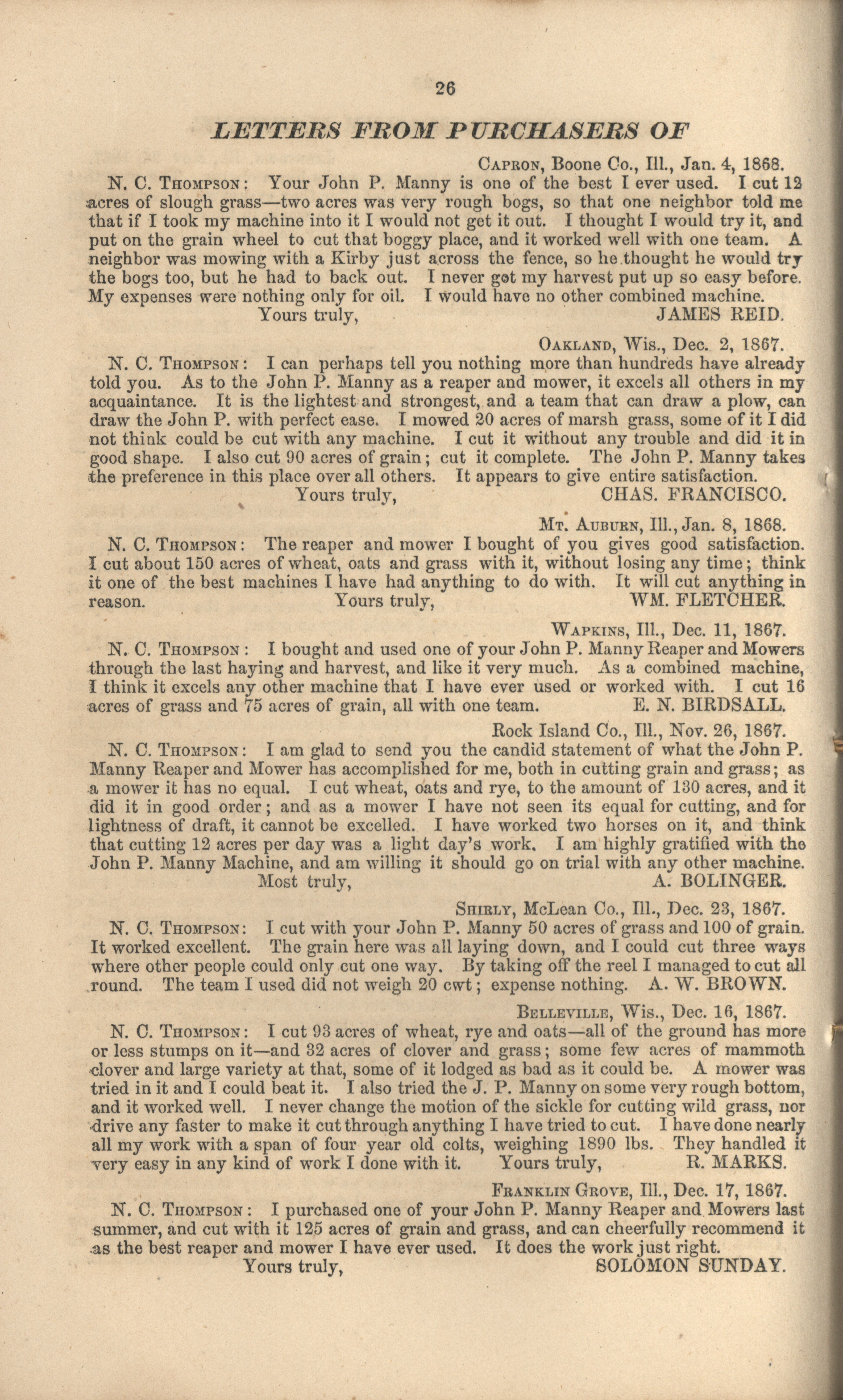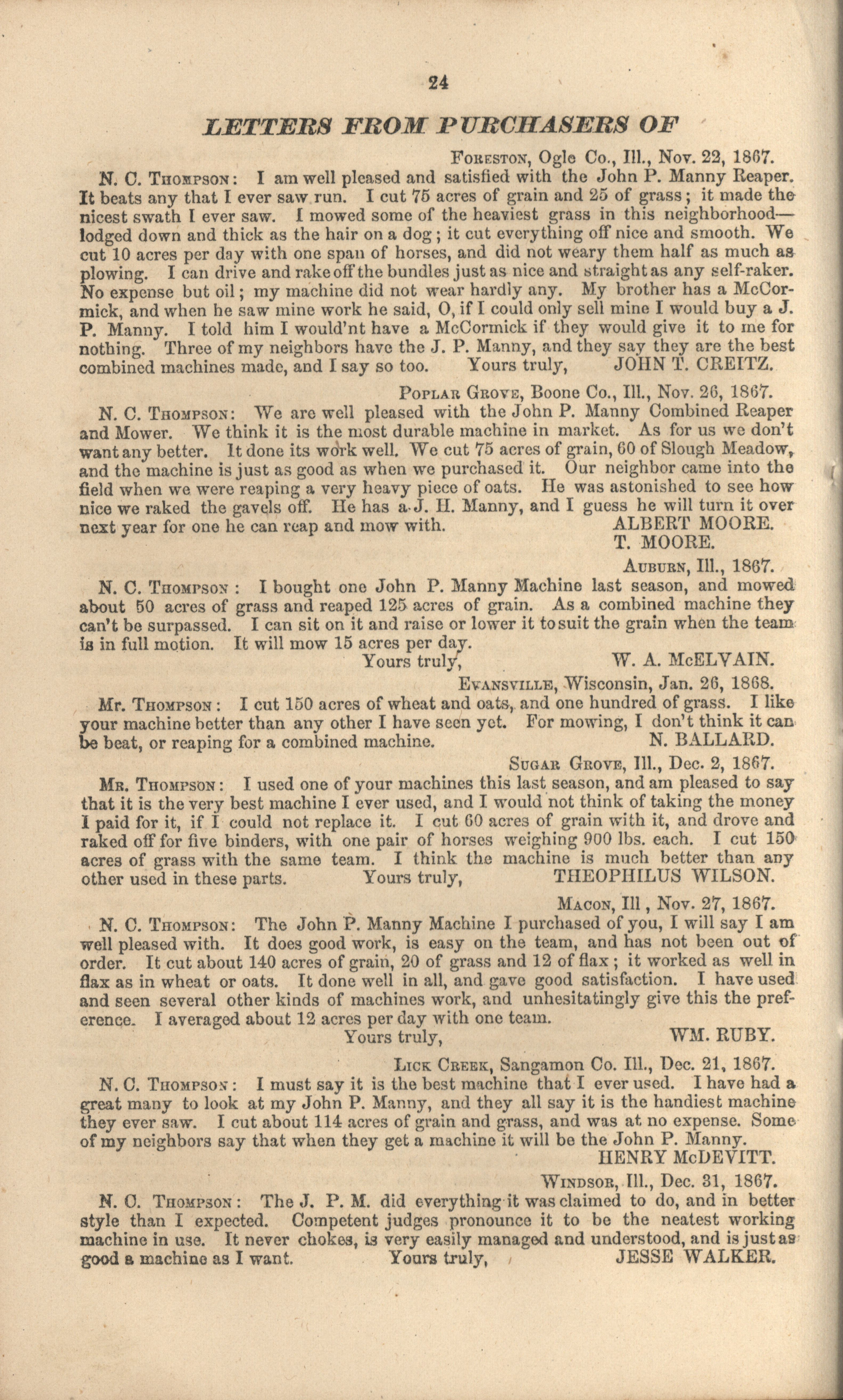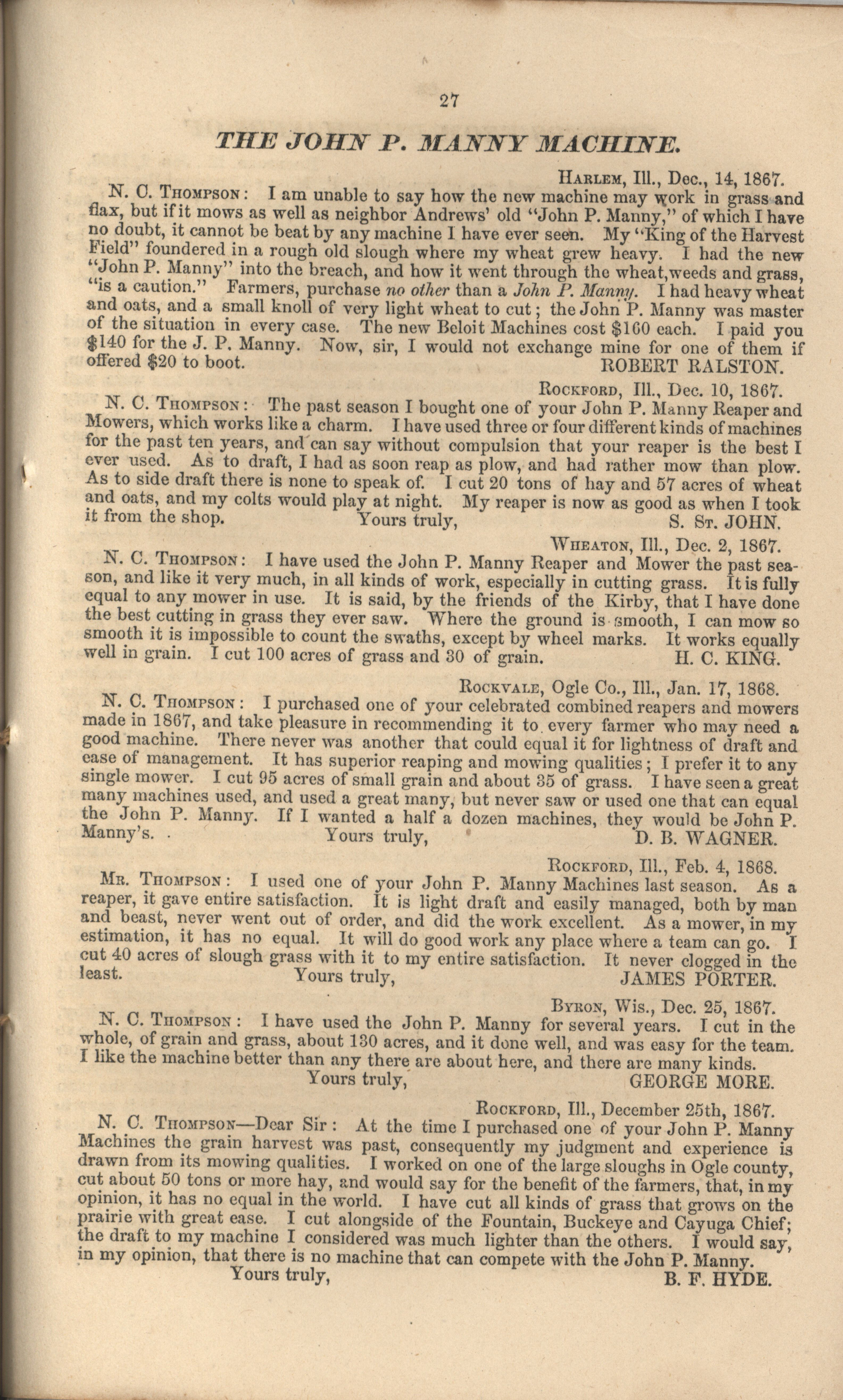 - "John P. Manny's combination mower, reaper, hand-raker and dropper catalog", Agricultural Machinery Literature Collection, Iowa State University Library Digital Collections