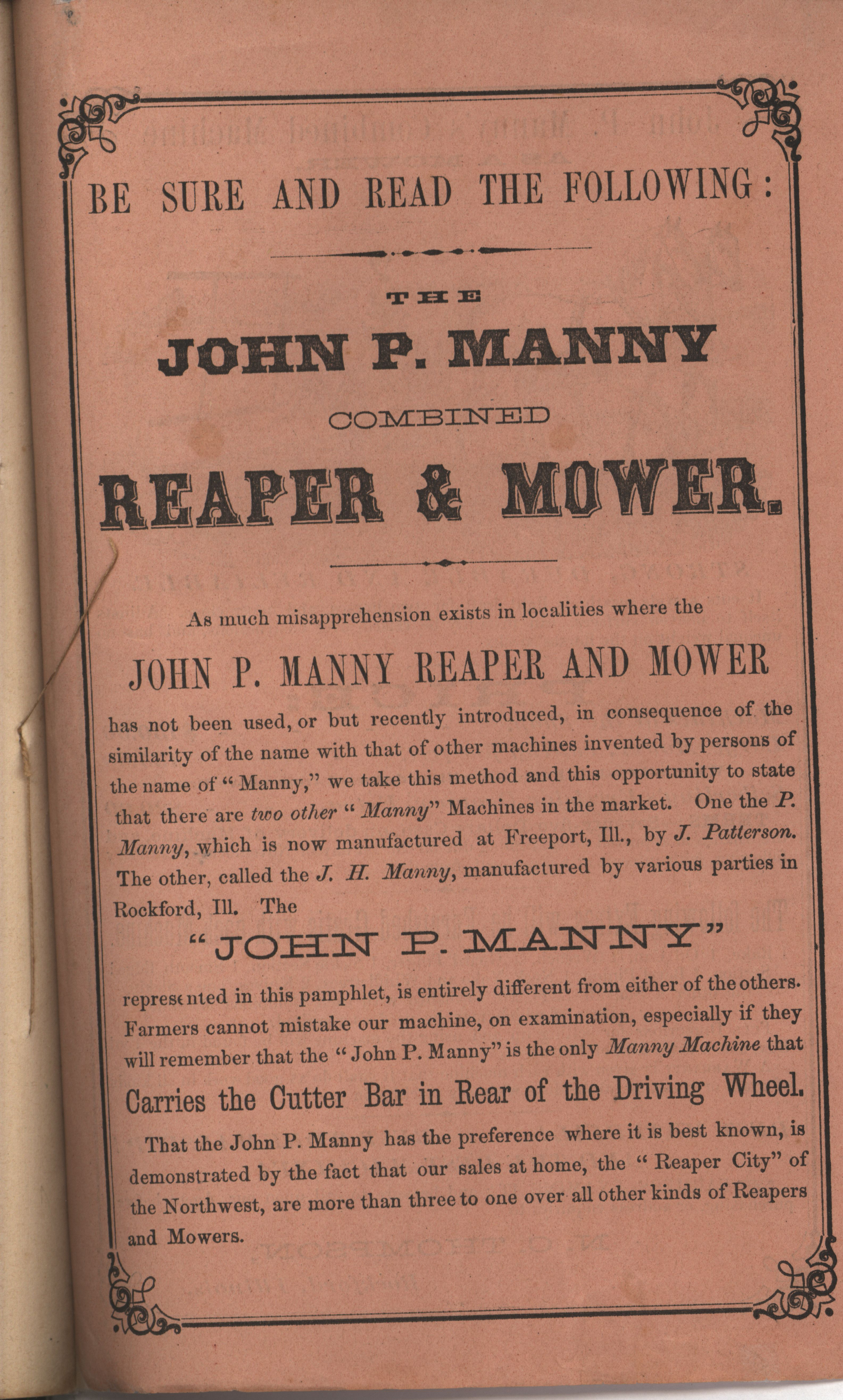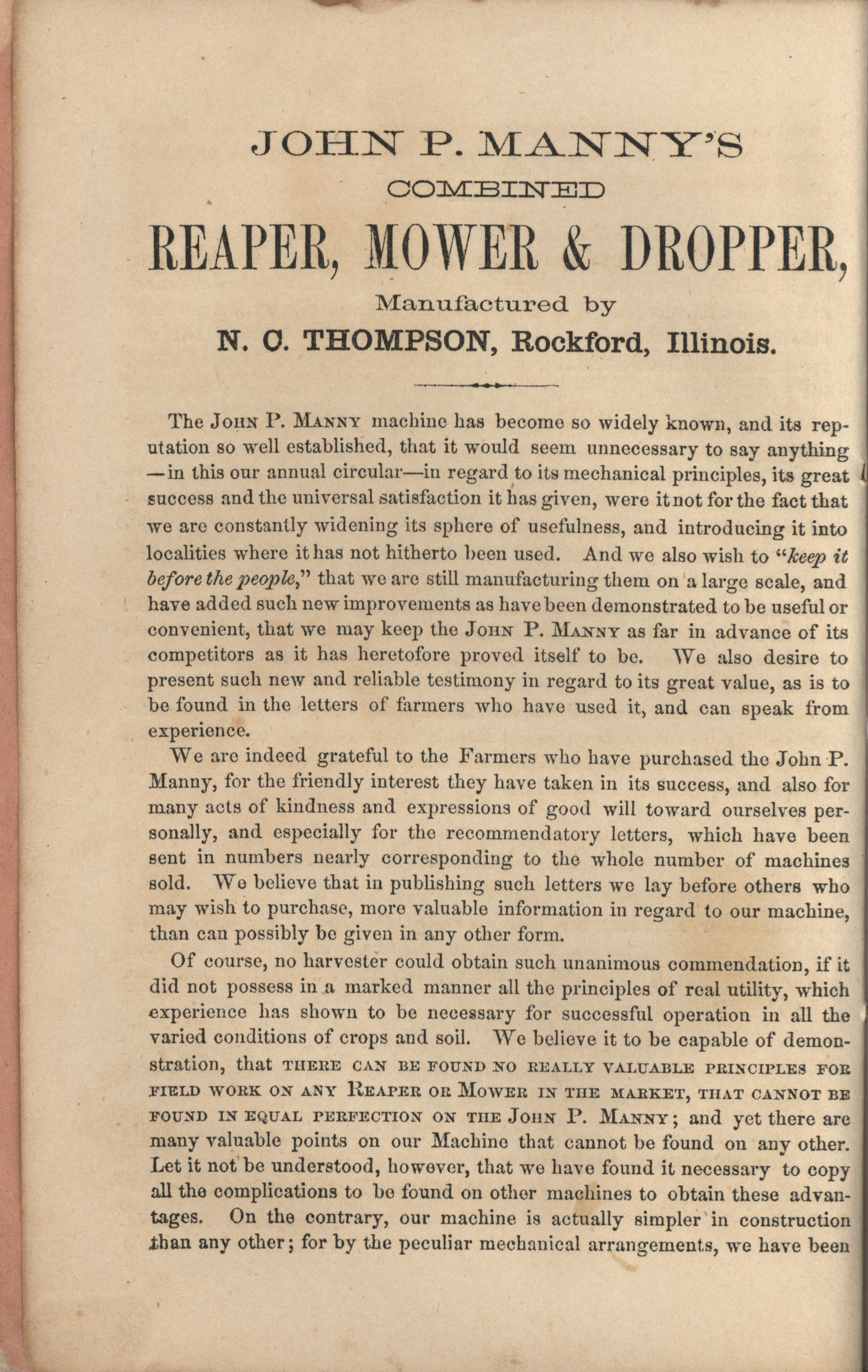 - John P. Manny's combination mower, reaper, hand-raker and dropper catalog
