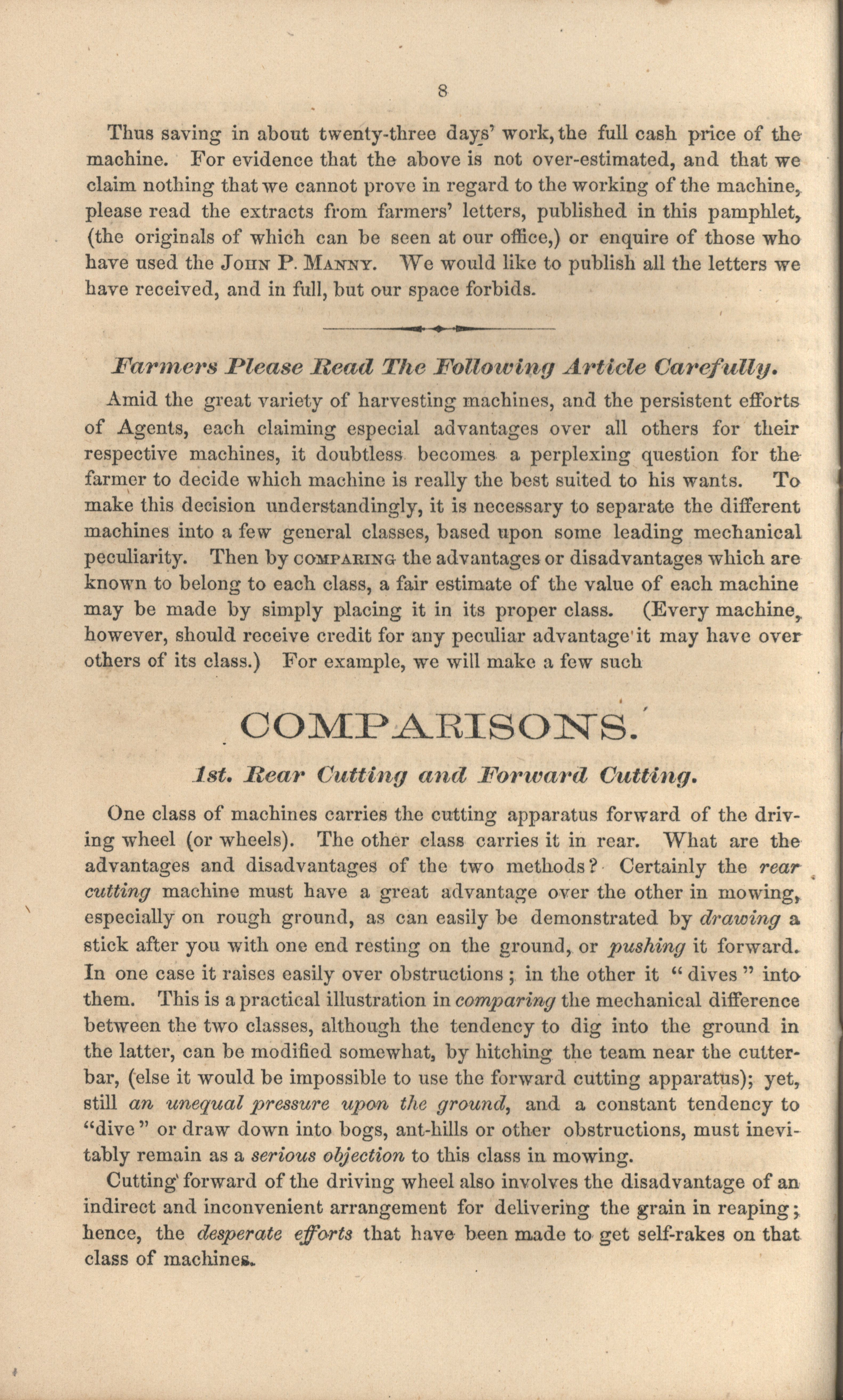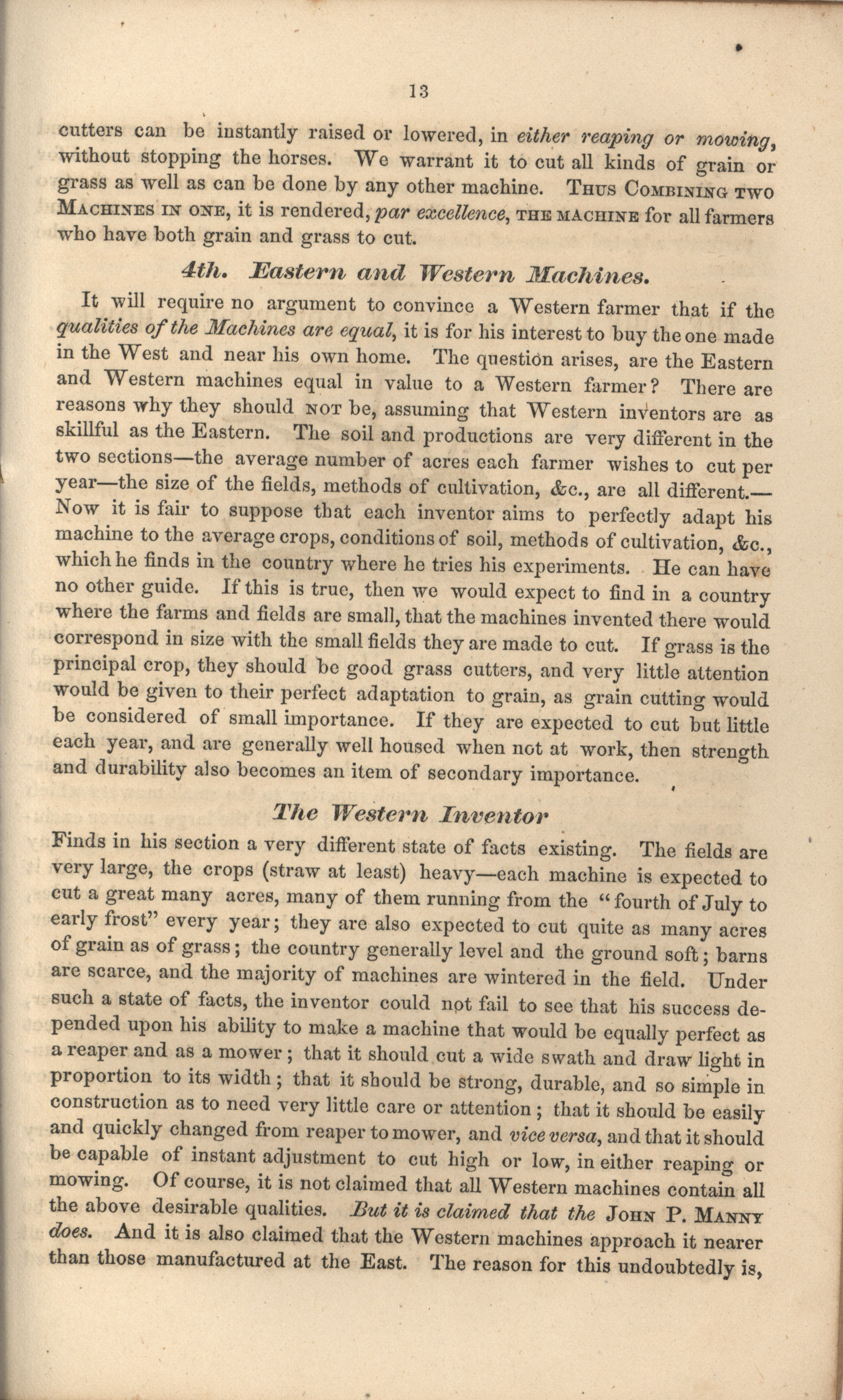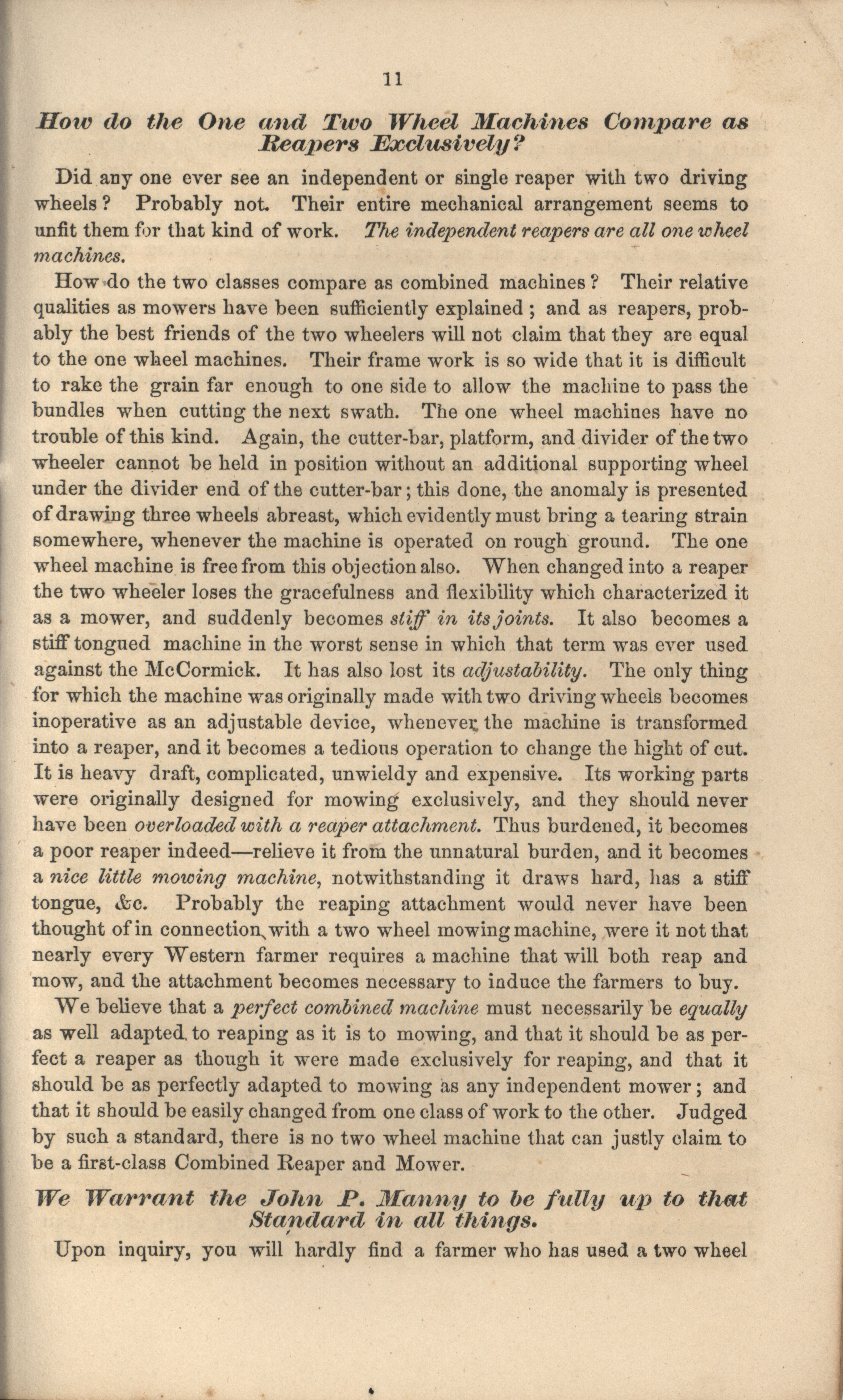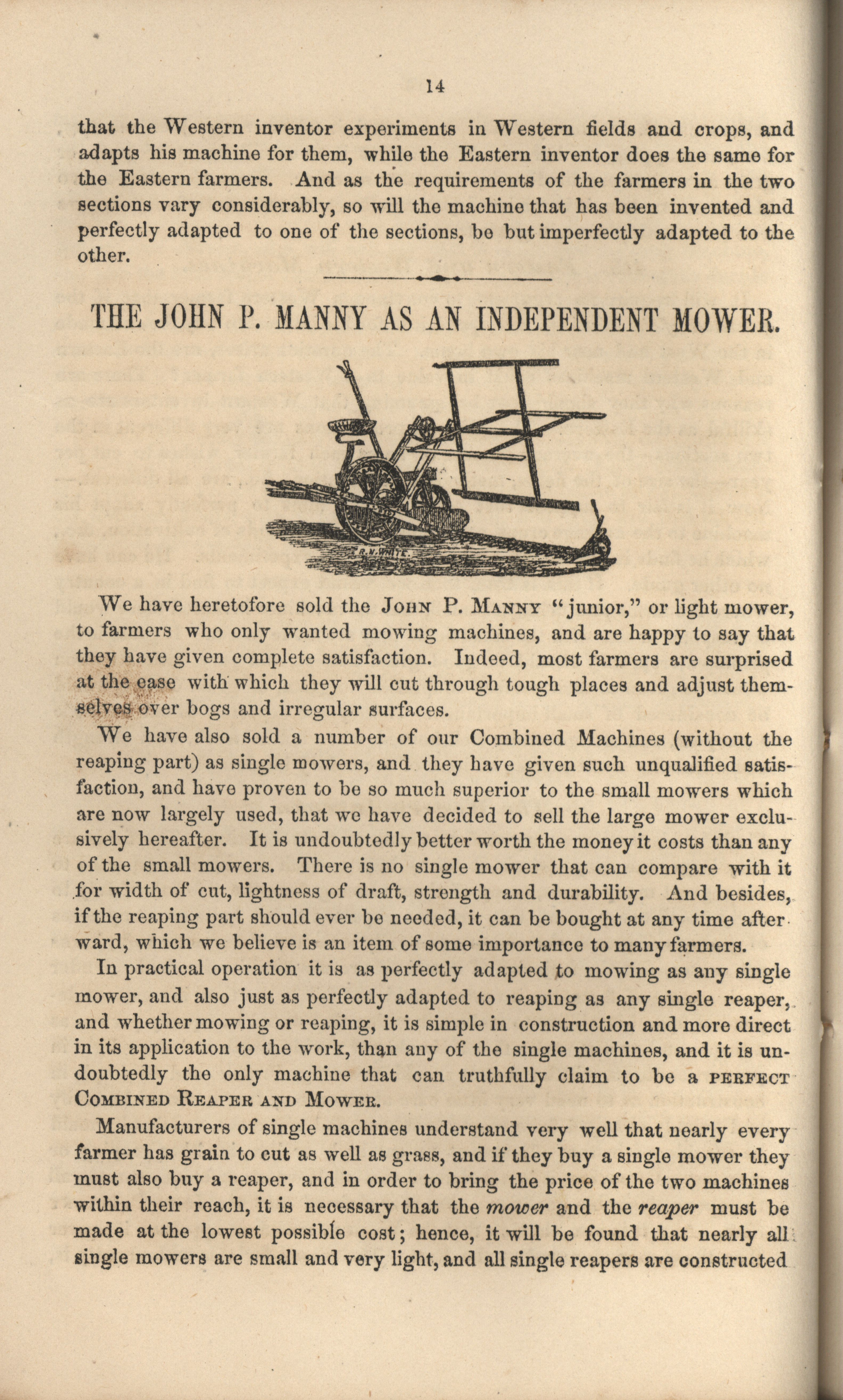 - Booklet for the celebrated John P. manny's Mower, Reaper, Hand-Raker and Dropper.
