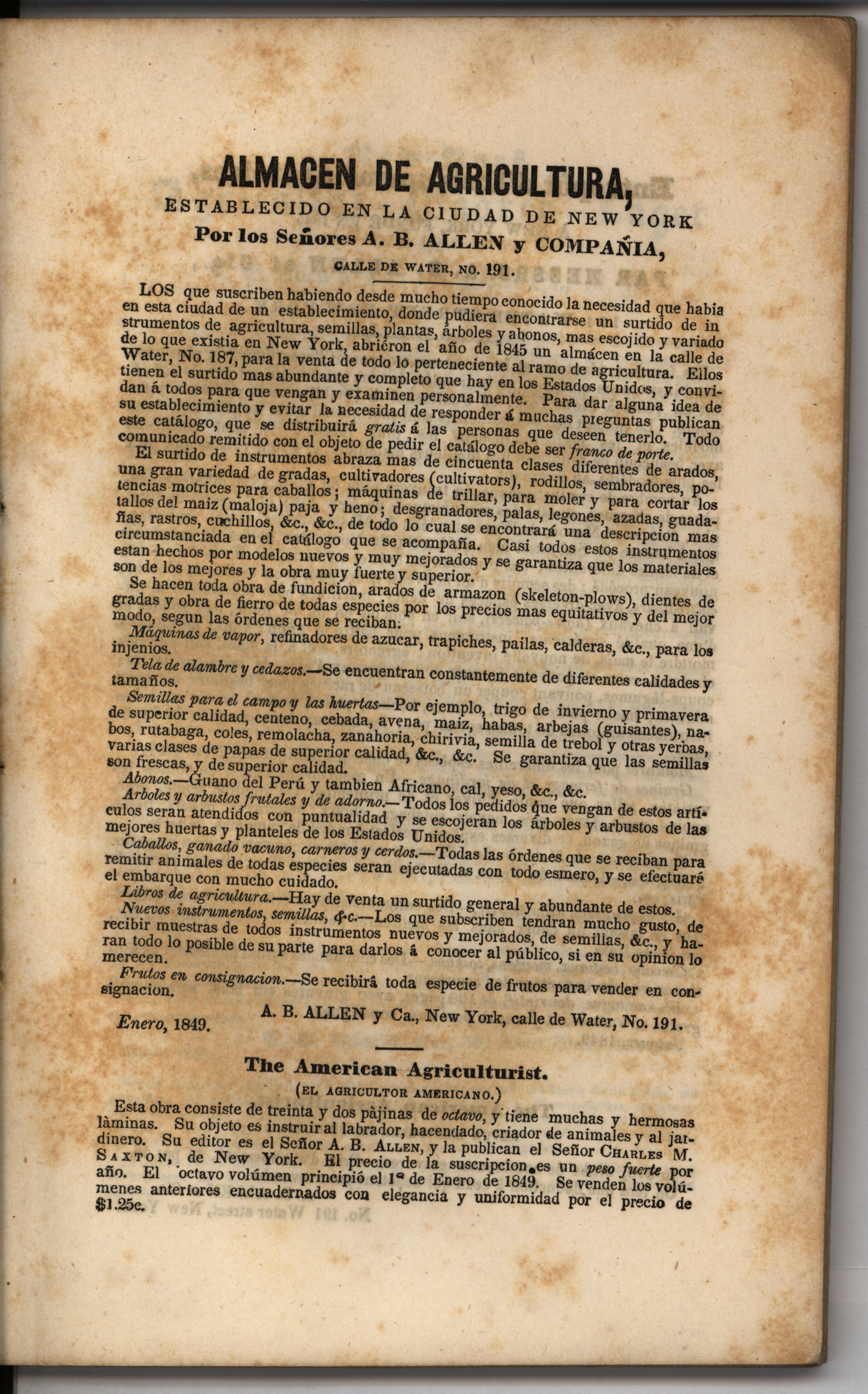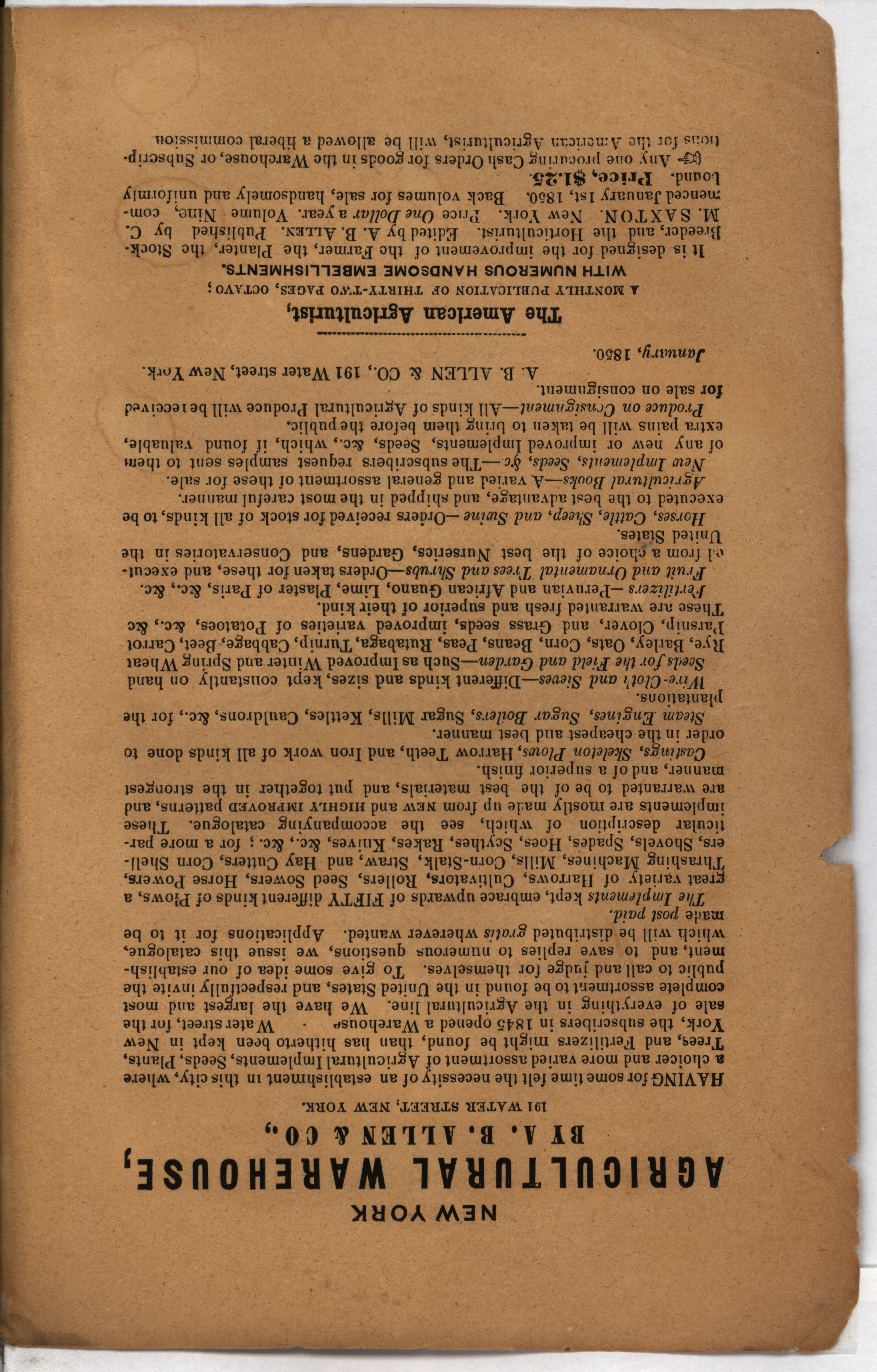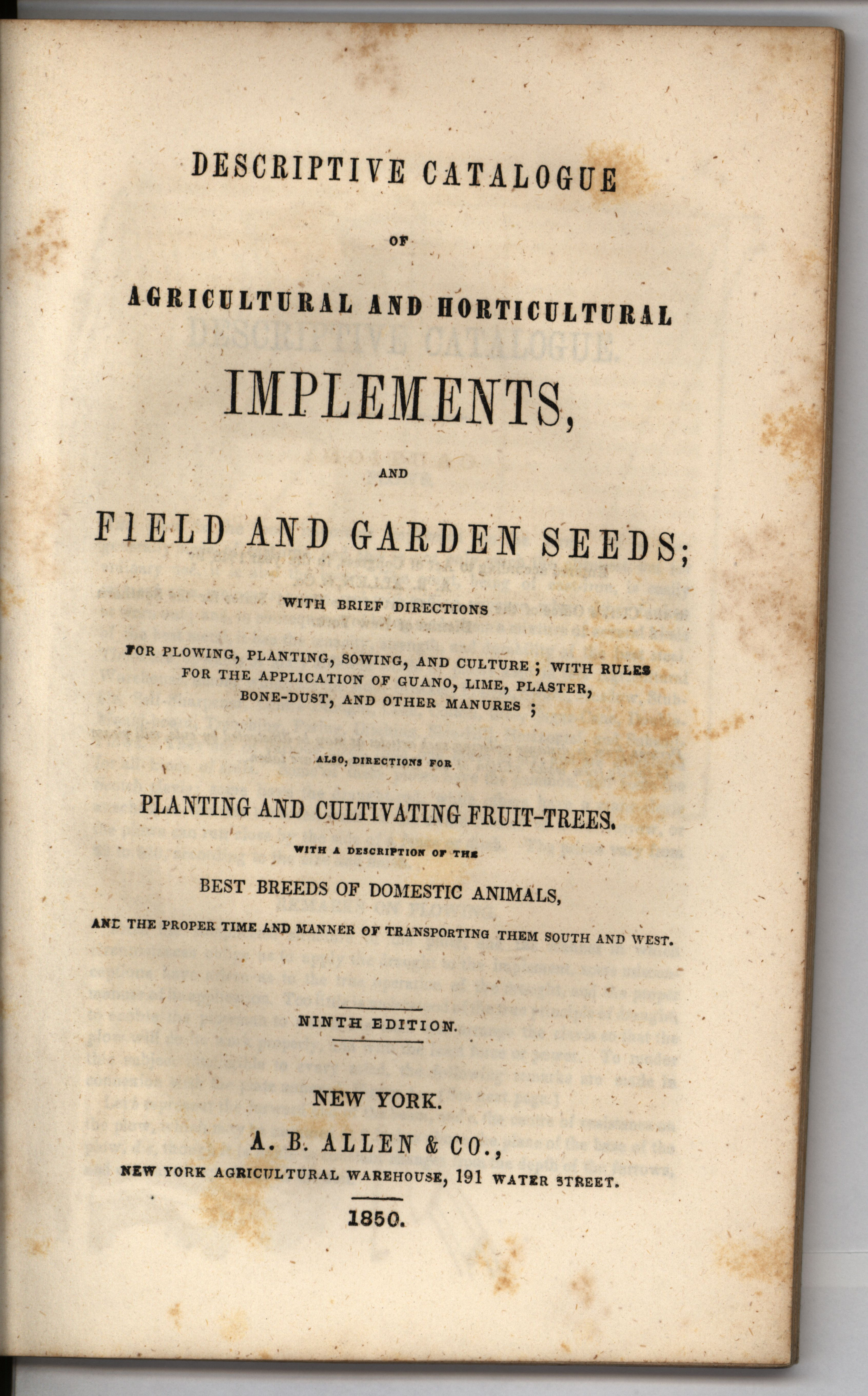 - "Catalog of agricultural and horticultural implements, and of field and garden seeds, fruit and ornamental trees, domestic animals, A.B. Allen & Co.", Agricultural Machinery Literature Collection, Iowa State University Library Digital Collections