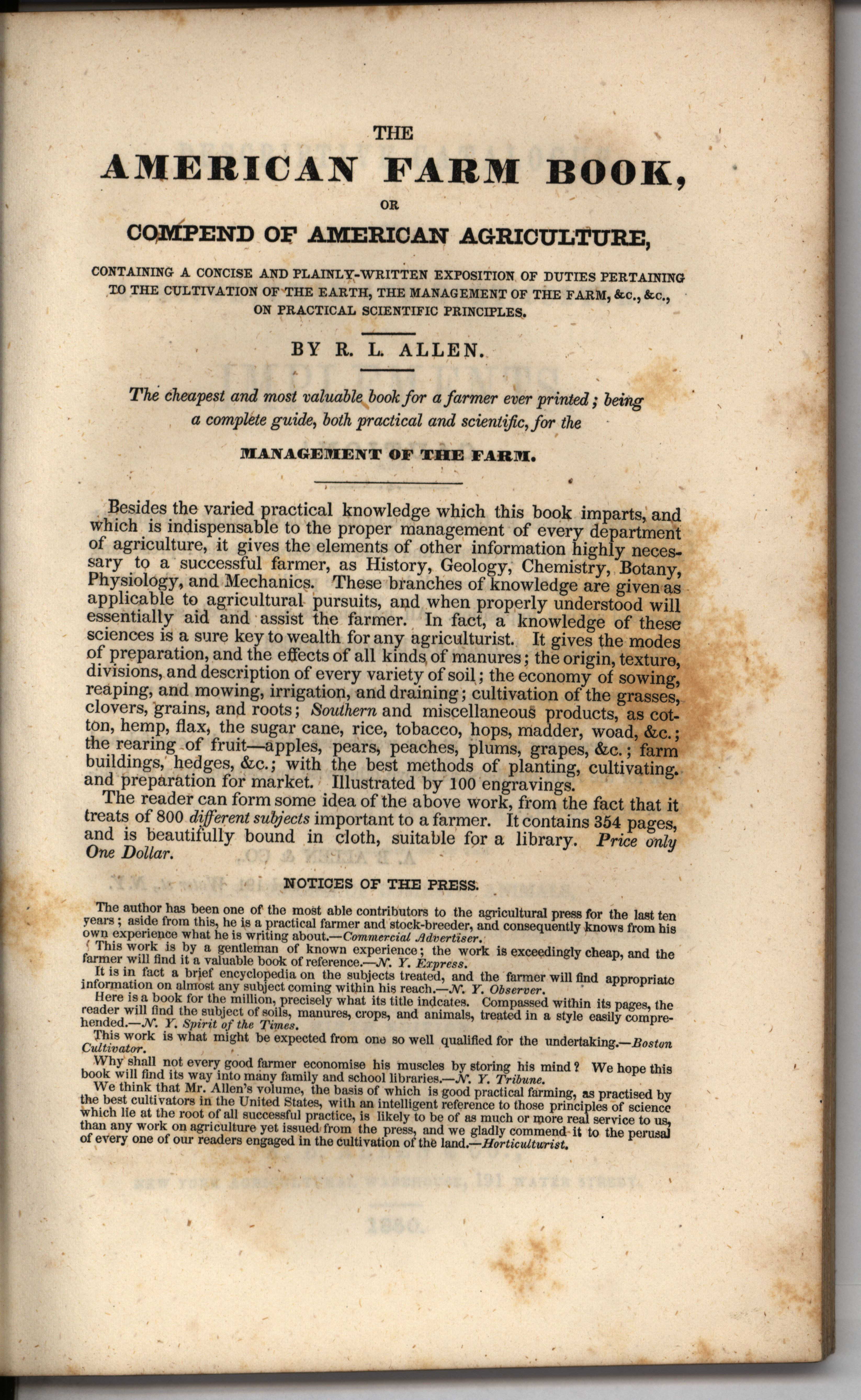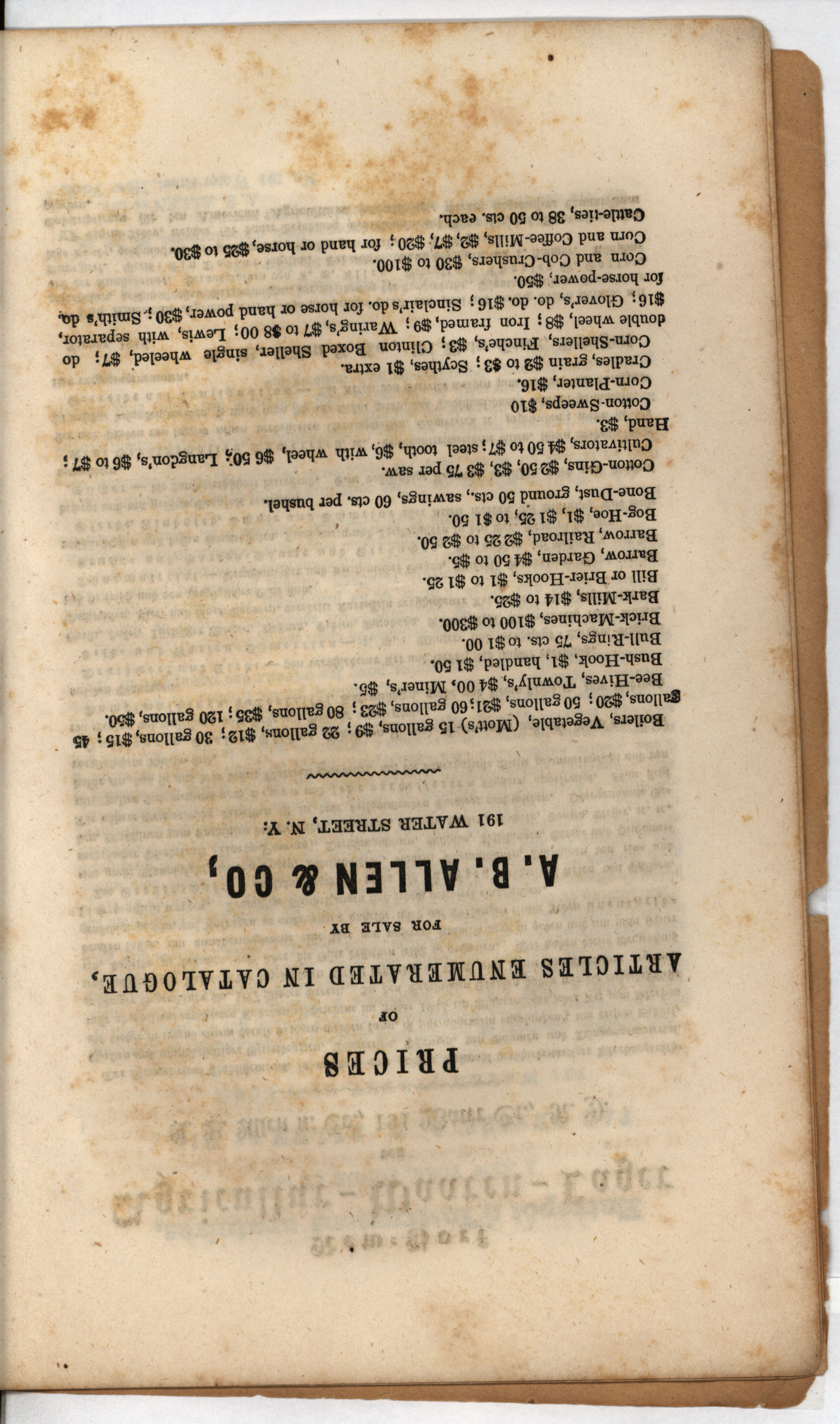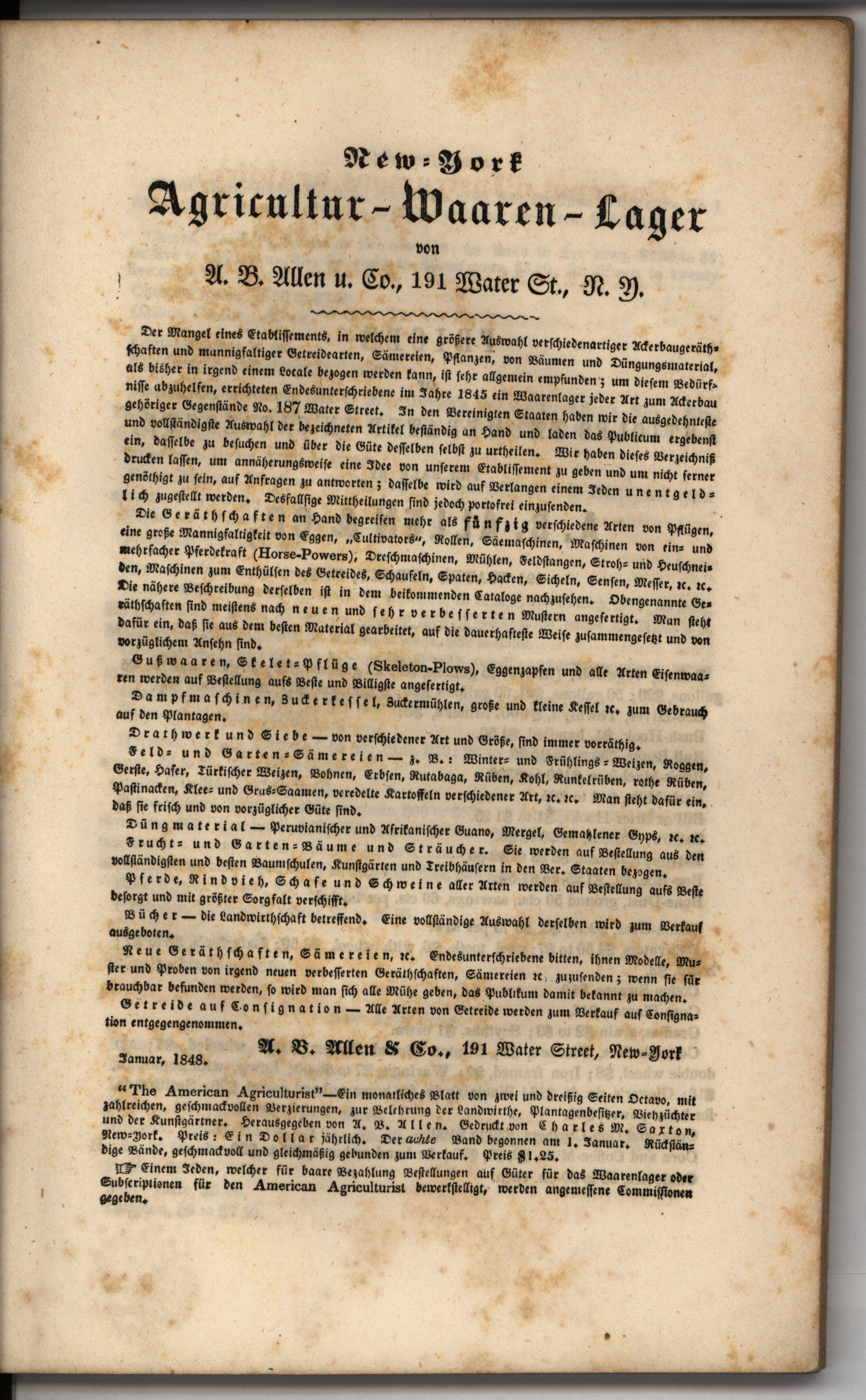 - "Catalog of agricultural and horticultural implements, and of field and garden seeds, fruit and ornamental trees, domestic animals, A.B. Allen & Co.", Agricultural Machinery Literature Collection, Iowa State University Library Digital Collections
