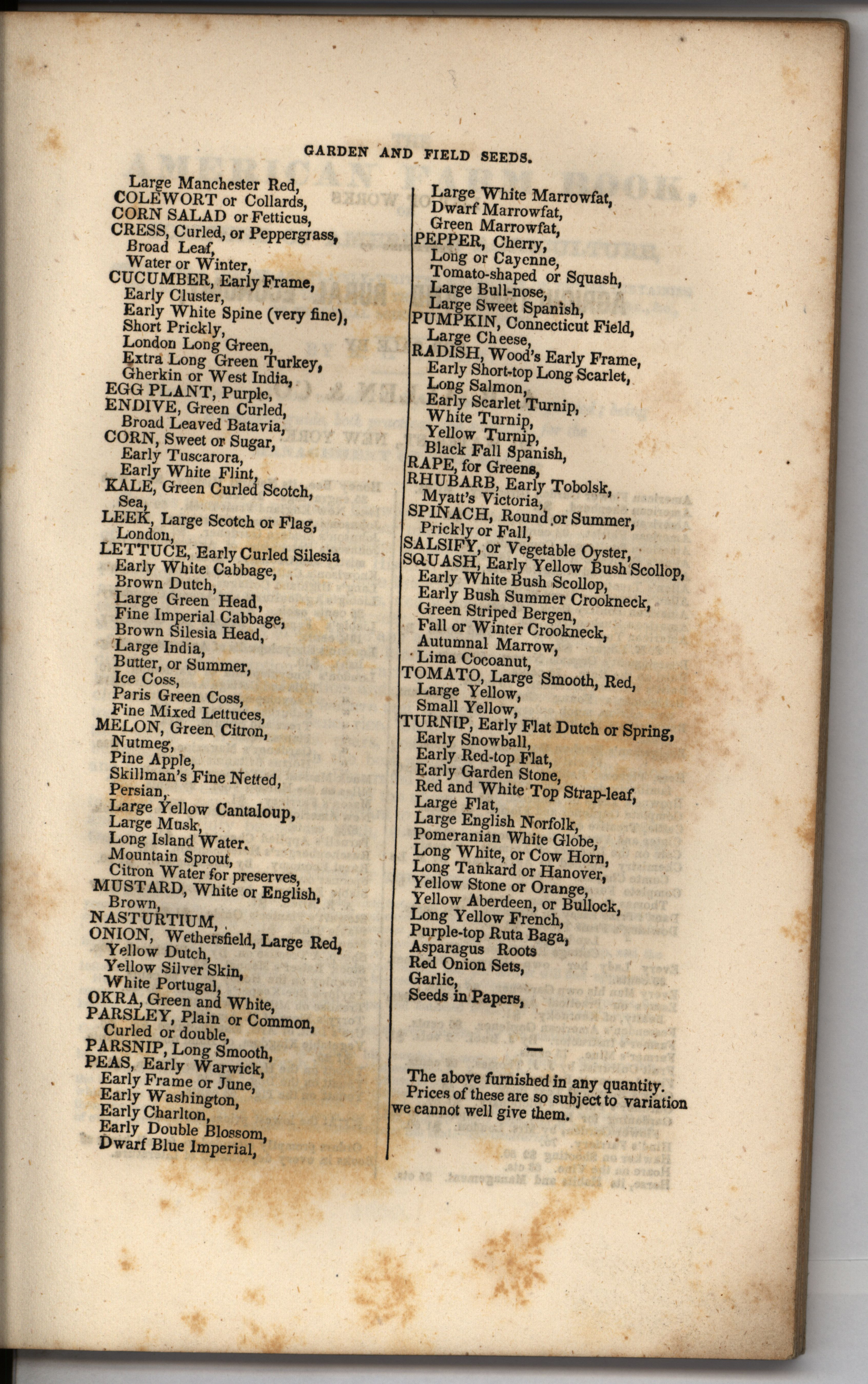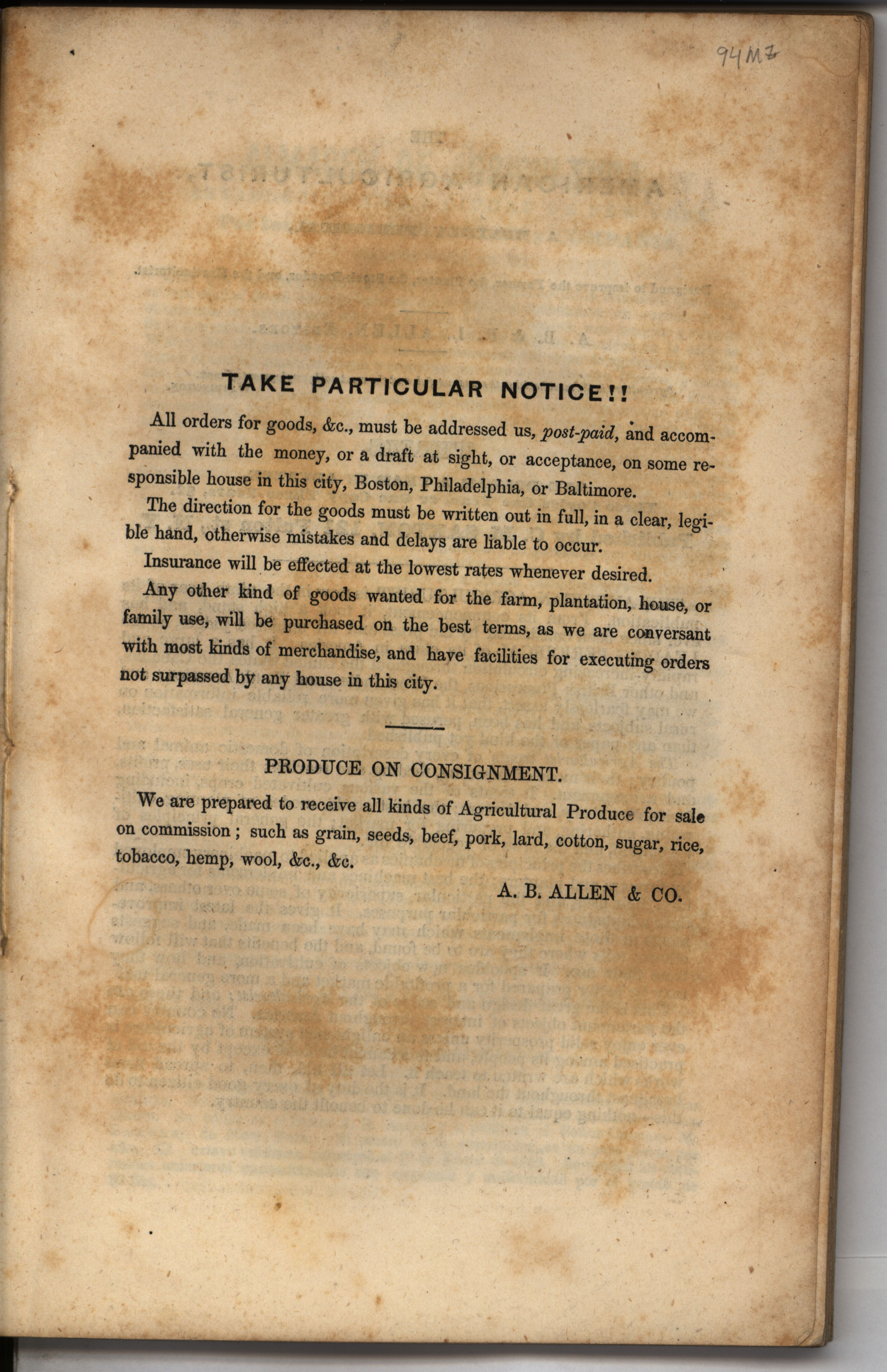 - Catalog describing the agricultural products of A. B. Allen & Co. including animal stock, fertilizers, trees, field and garden seeds, and machinery with price list.