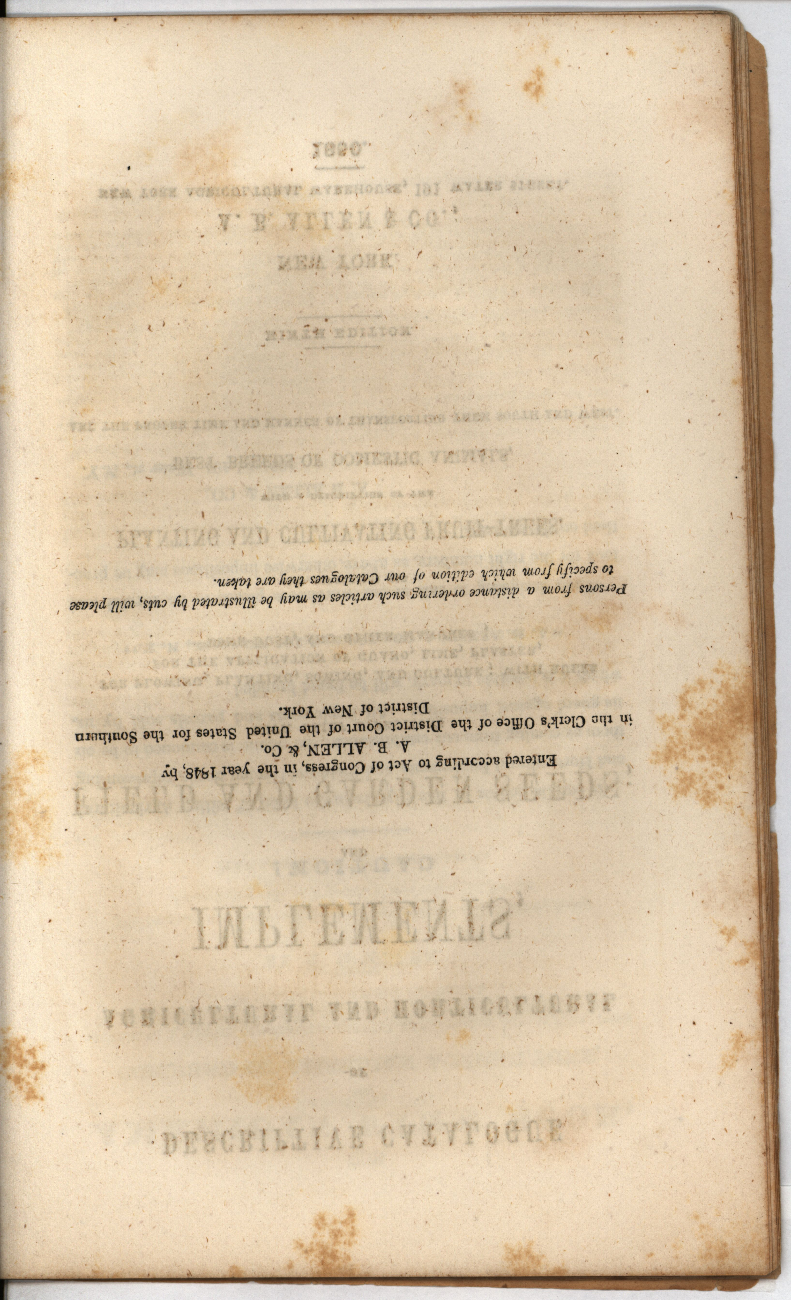 Catalog of agricultural and horticultural implements, and of field and garden seeds, fruit and ornamental trees, domestic animals, A.B. Allen & Co. Item Info