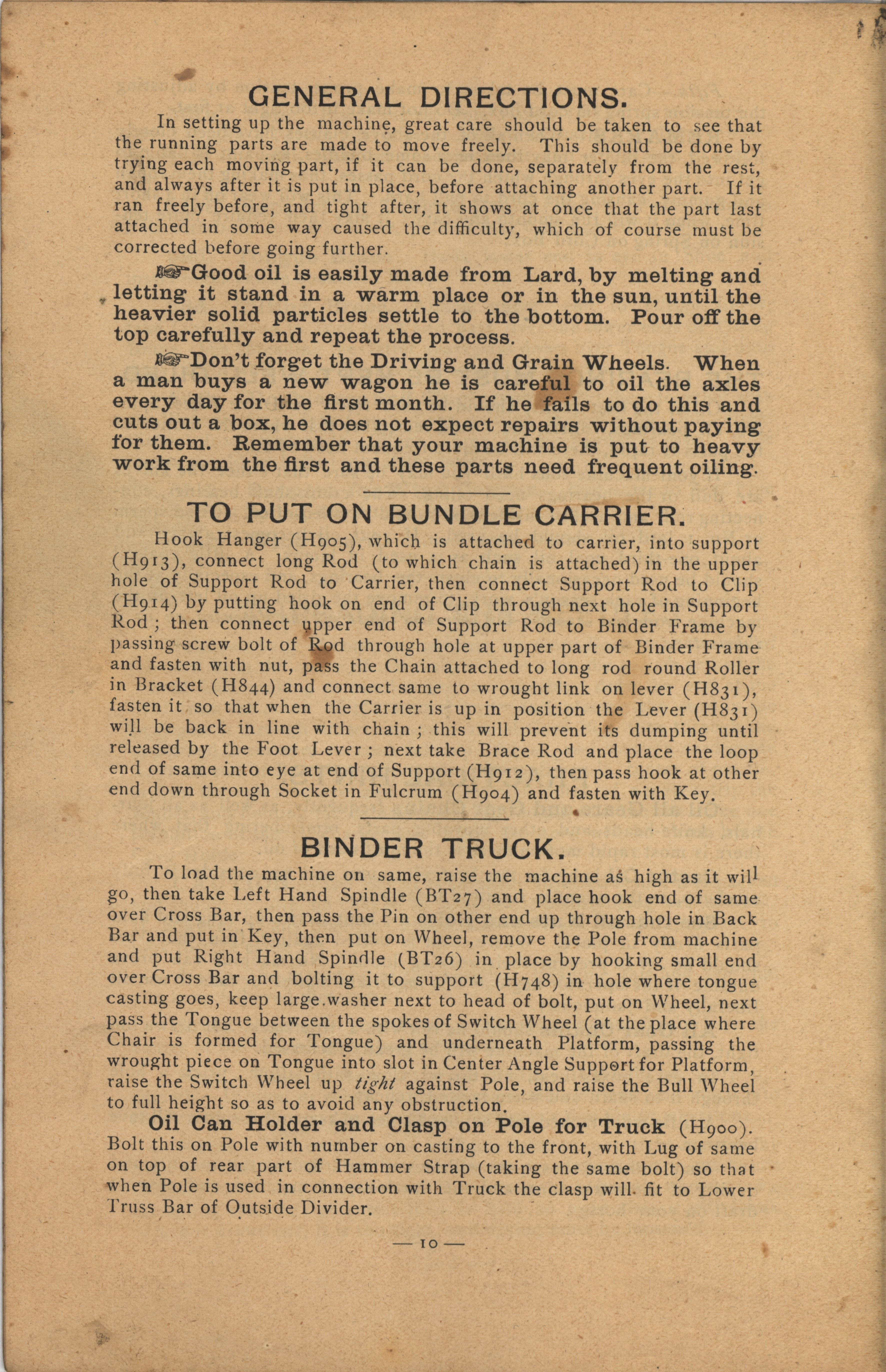 - "Aultman, Miller and Company directions for setting up and operating the Buckeye binder", Agricultural Machinery Literature Collection, Iowa State University Library Digital Collections