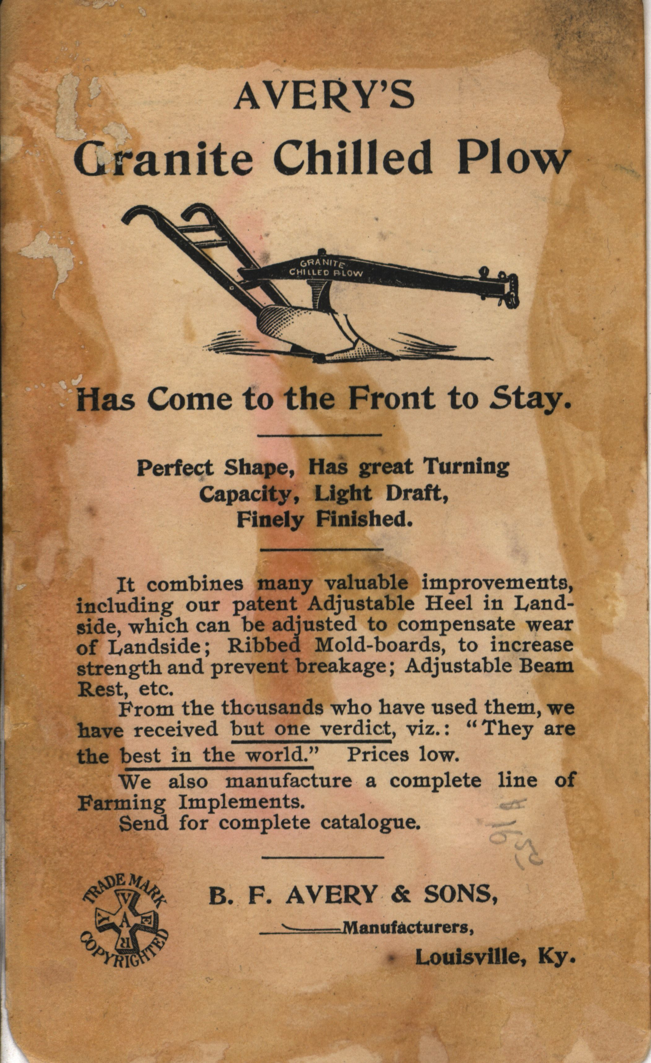 - "B. F. Avery and Songs Granite Chilled Plow advertisement card", Agricultural Machinery Literature Collection, Iowa State University Library Digital Collections