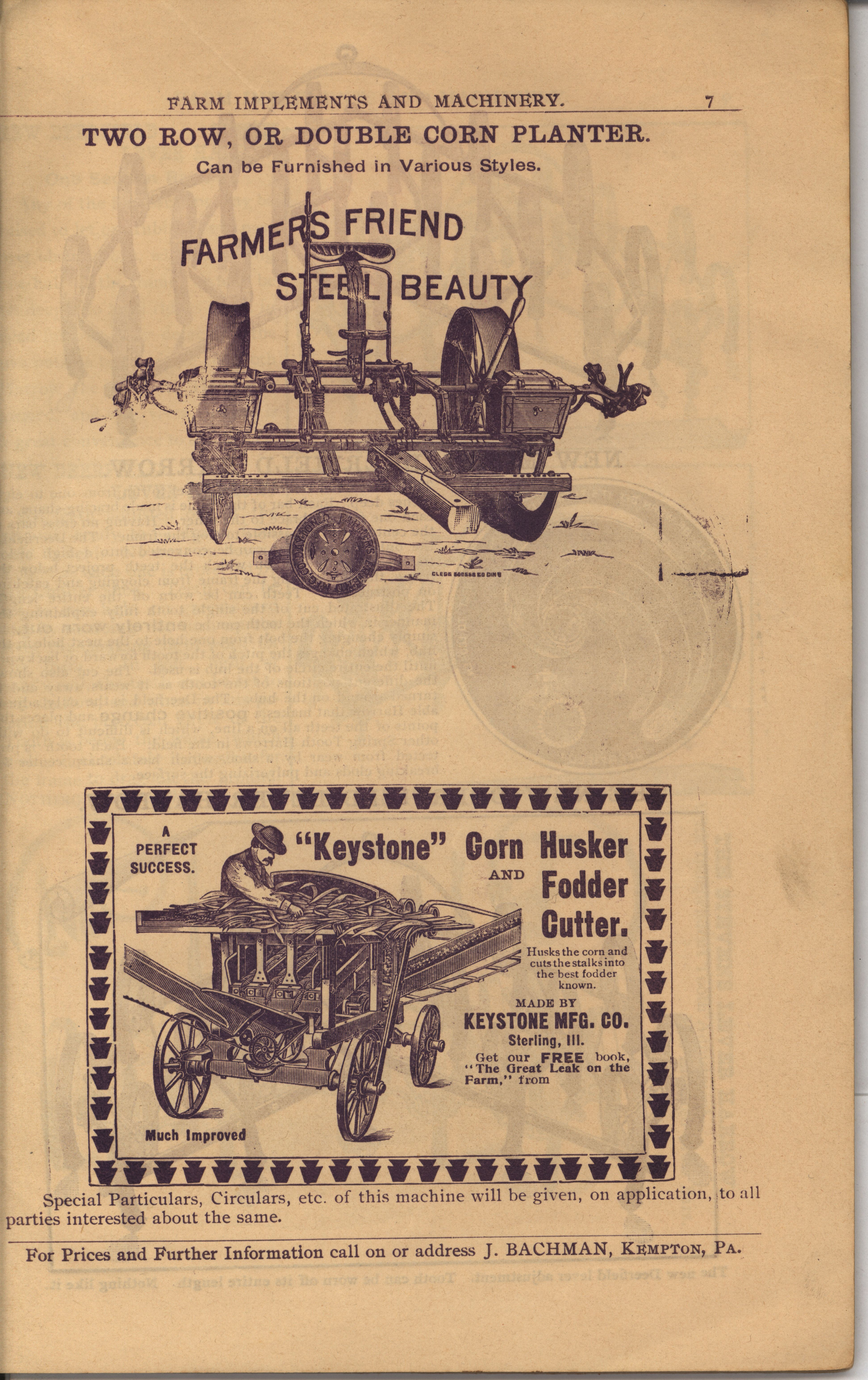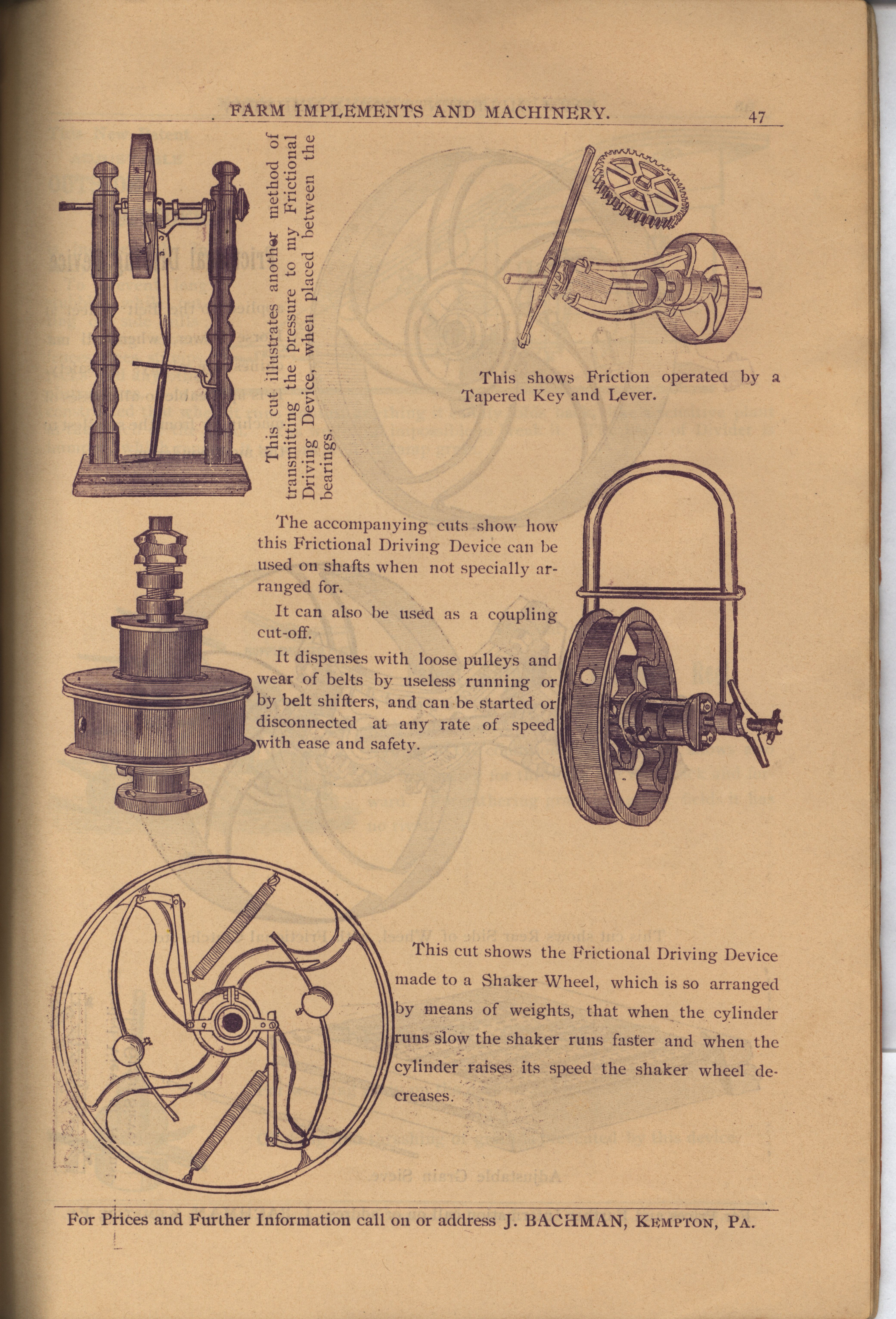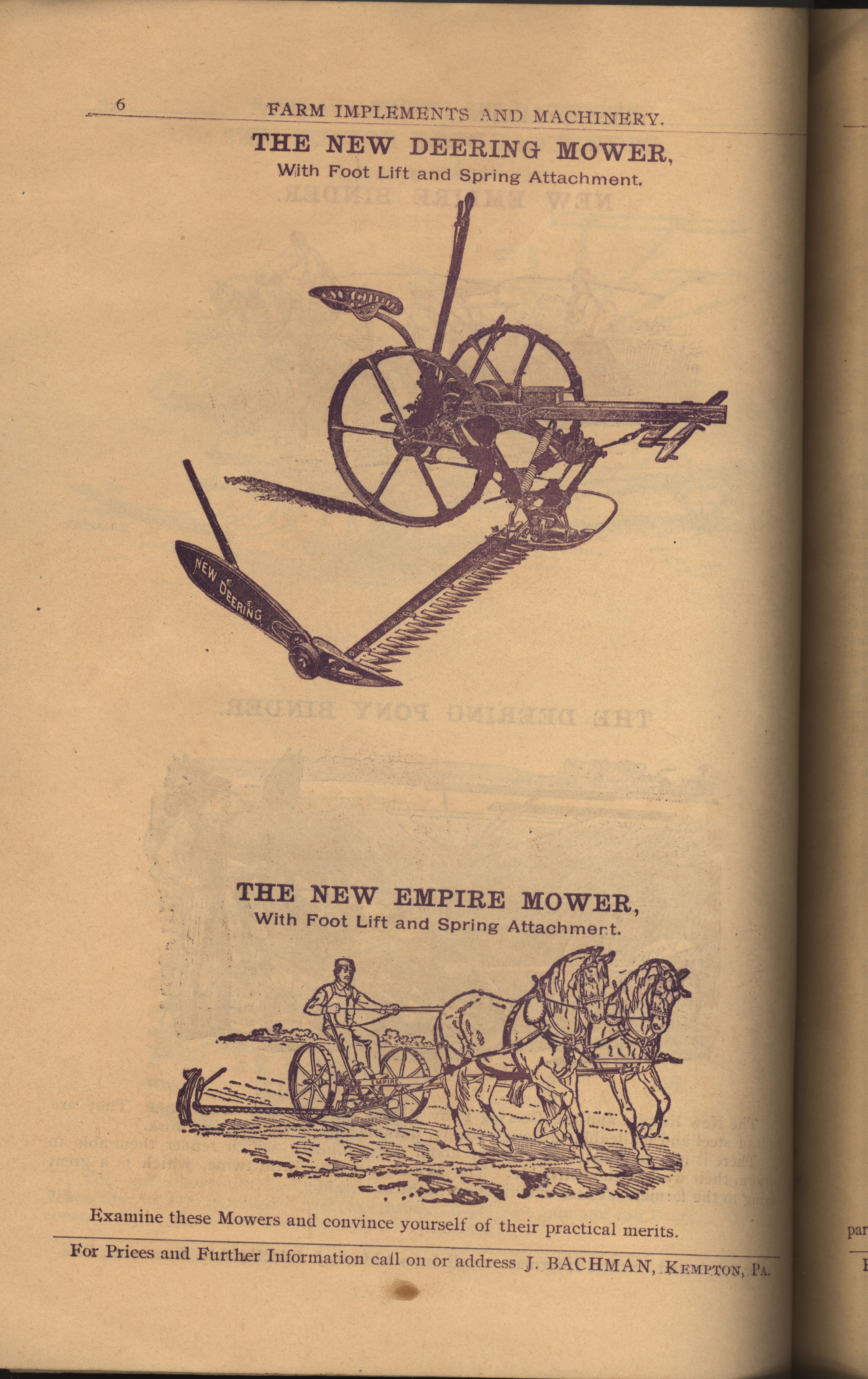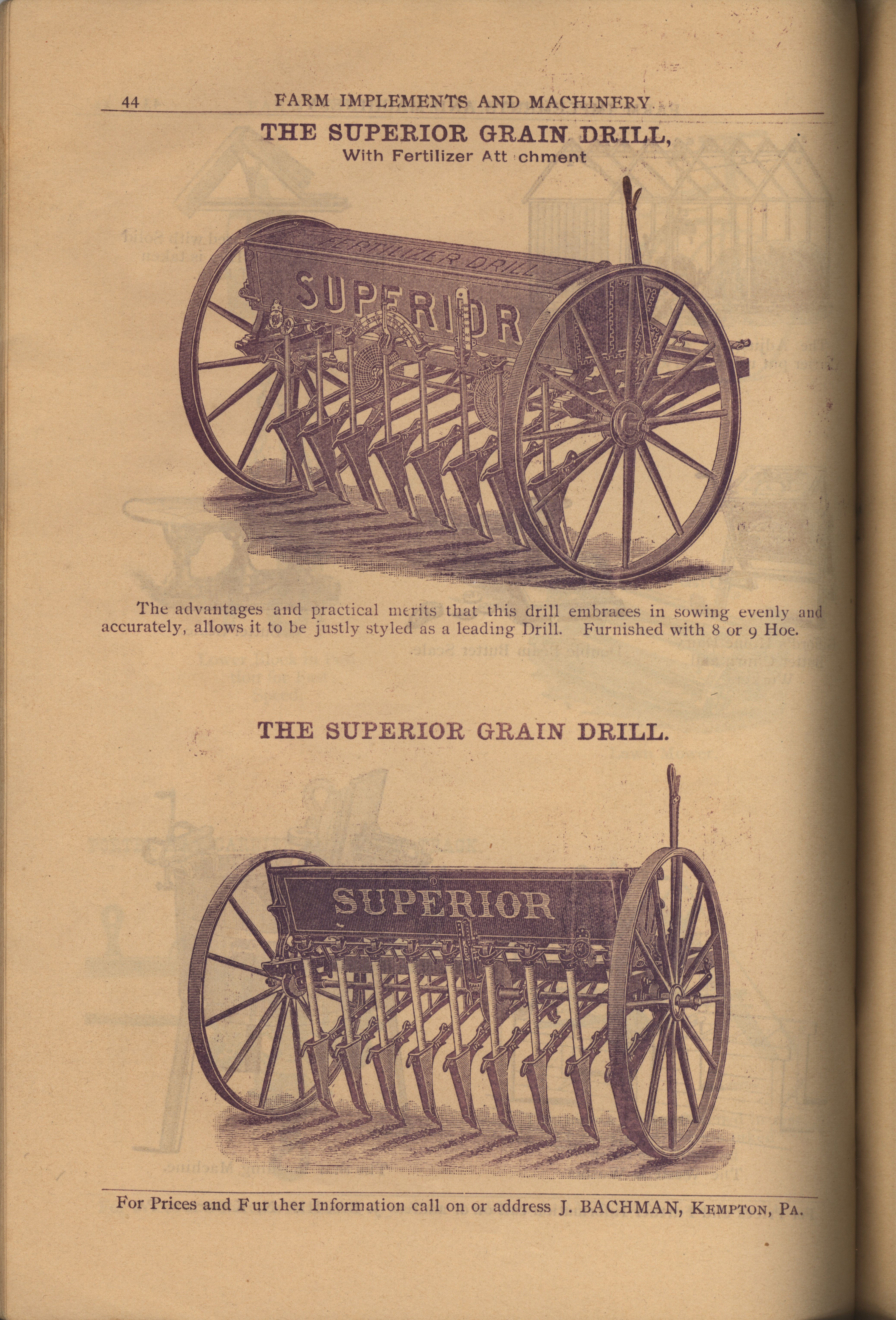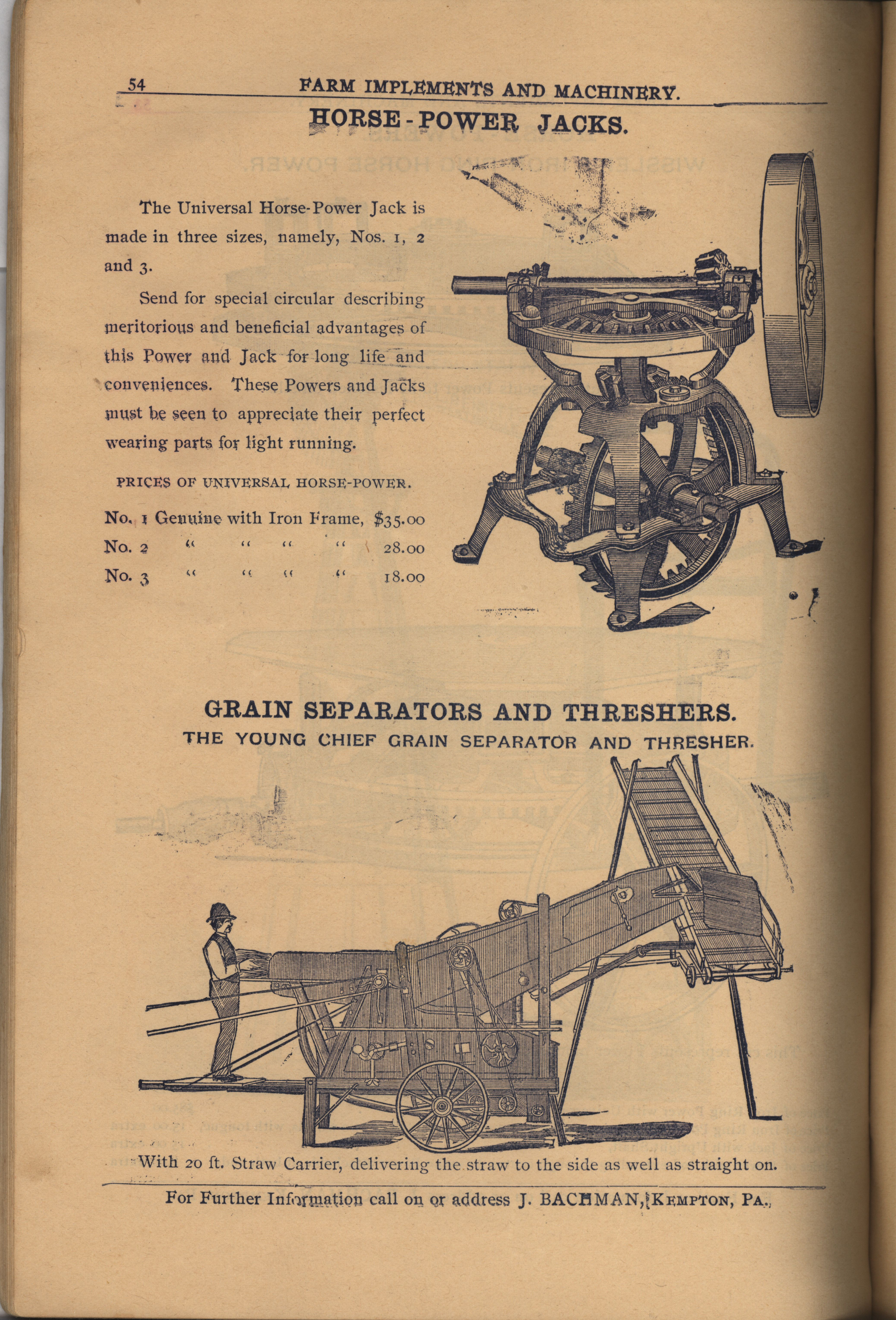 - "Illustrated catalogue No. 2 of agricultural machinery and supplies, for sale by J. Bachman", Agricultural Machinery Literature Collection, Iowa State University Library Digital Collections