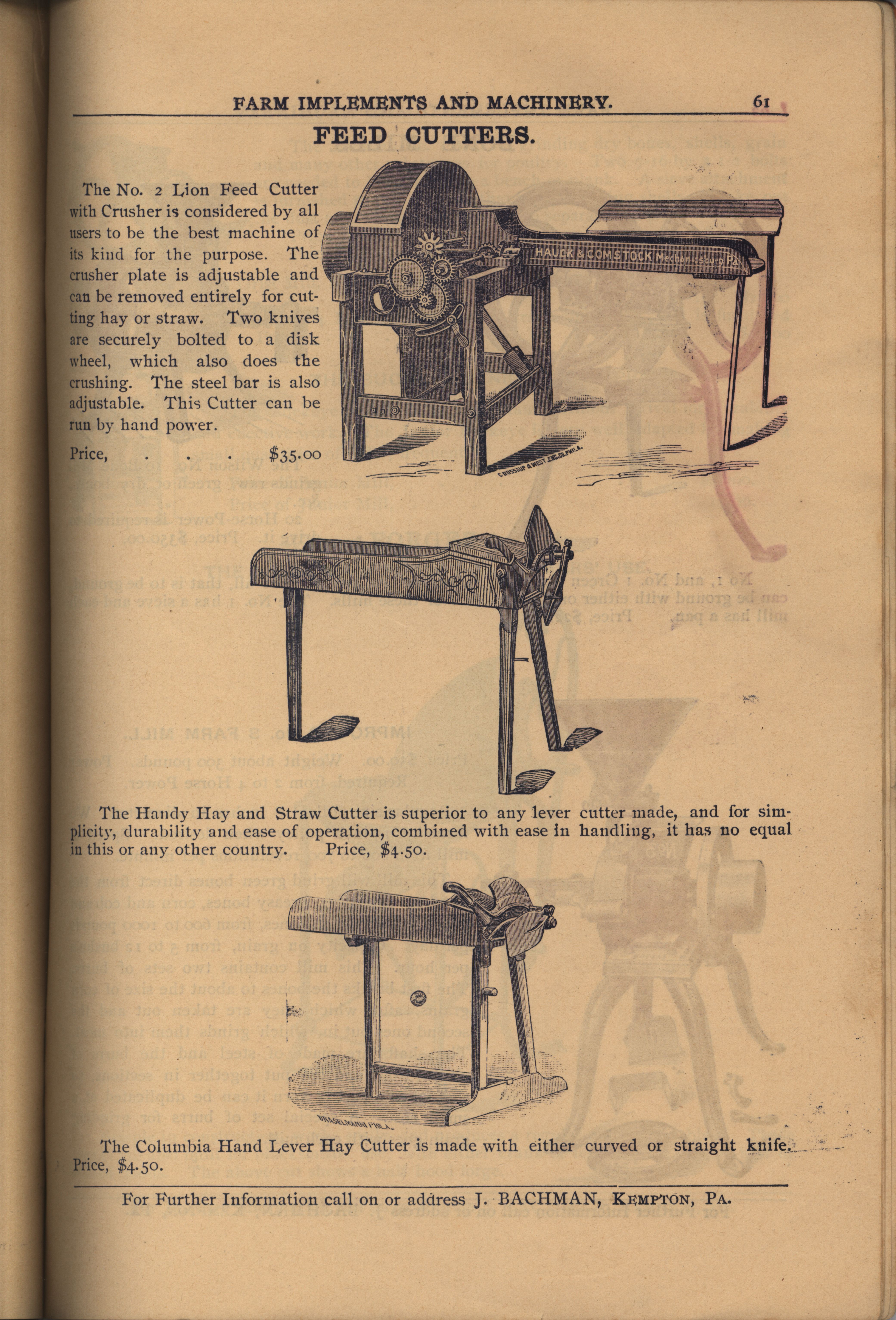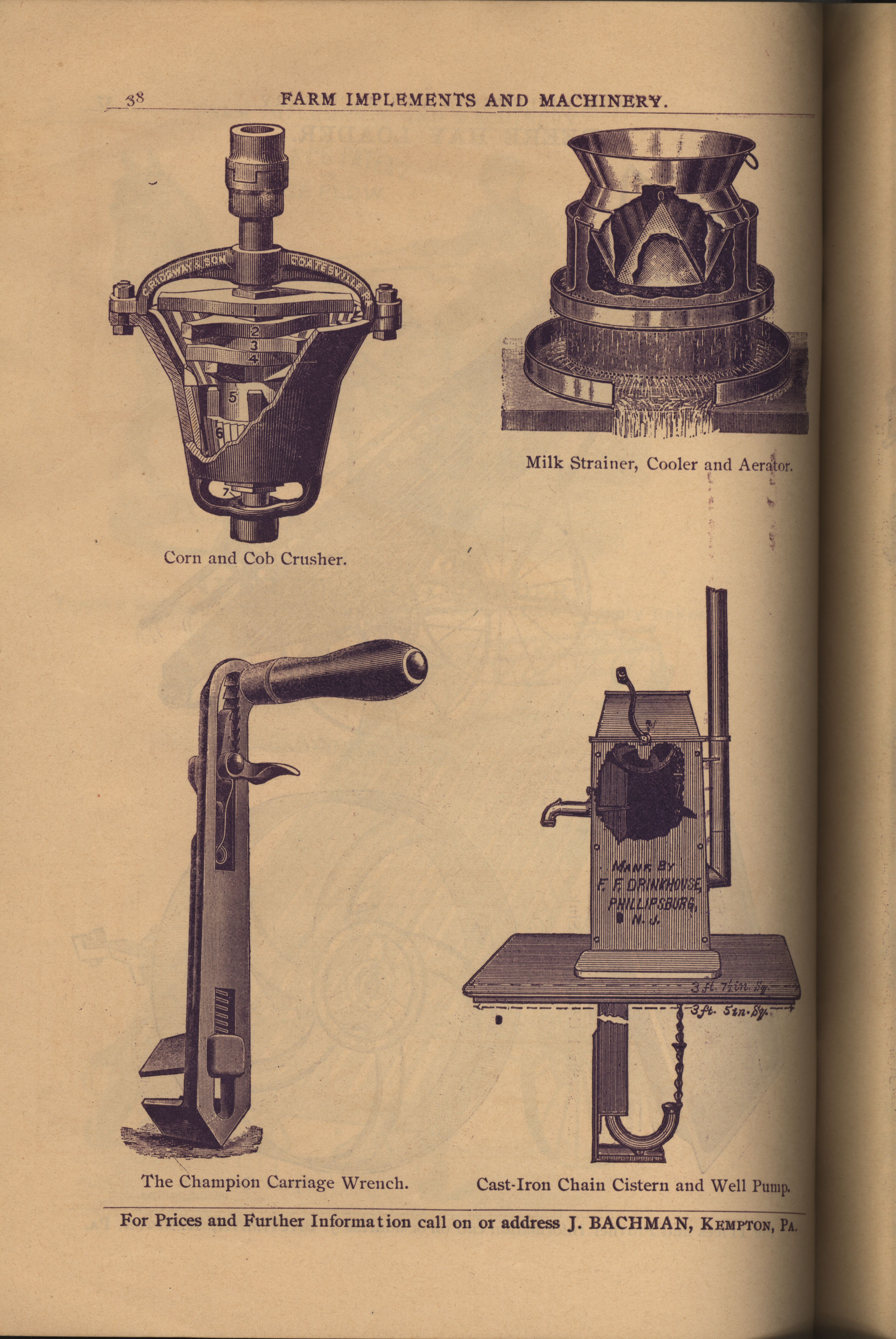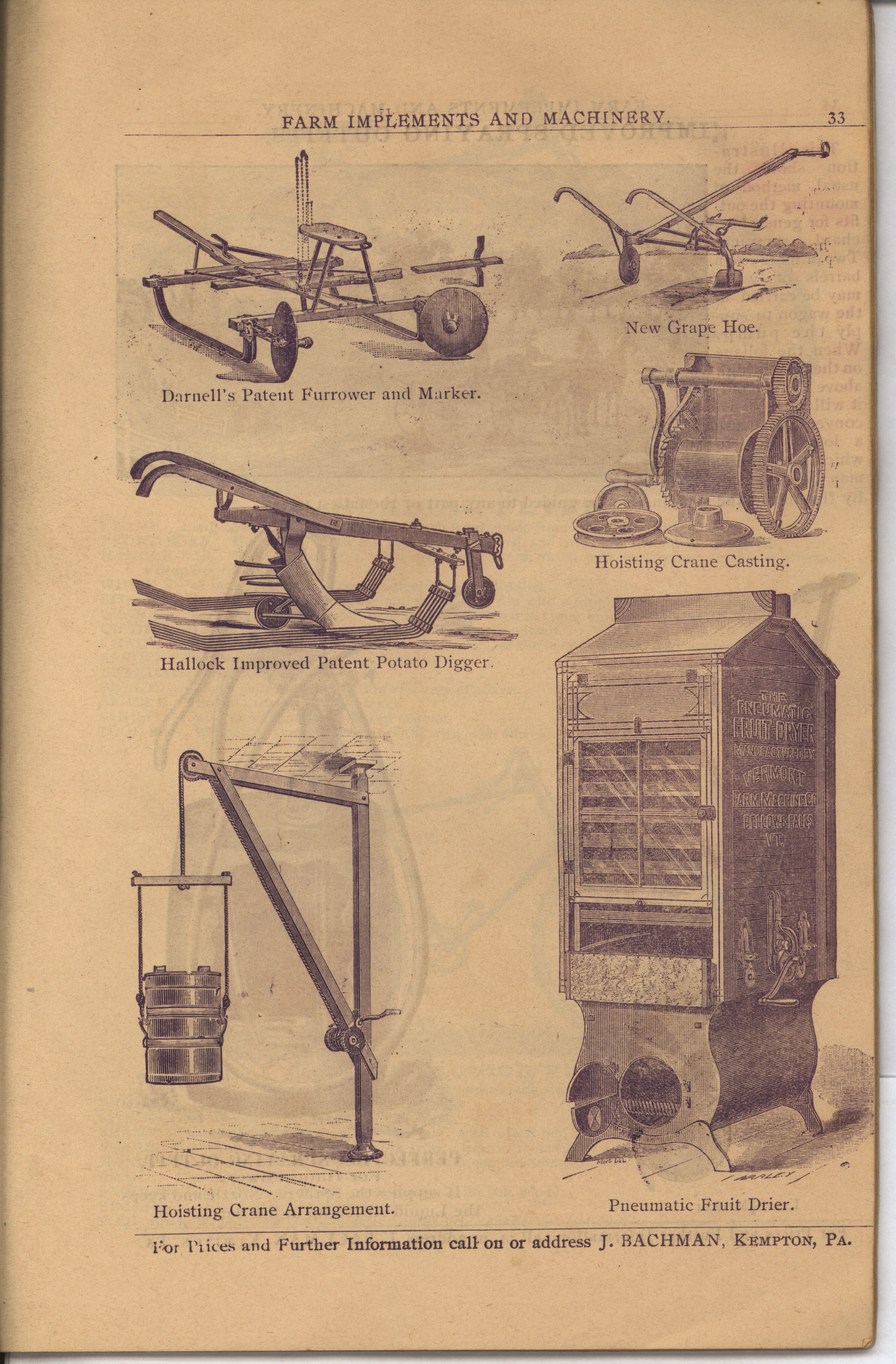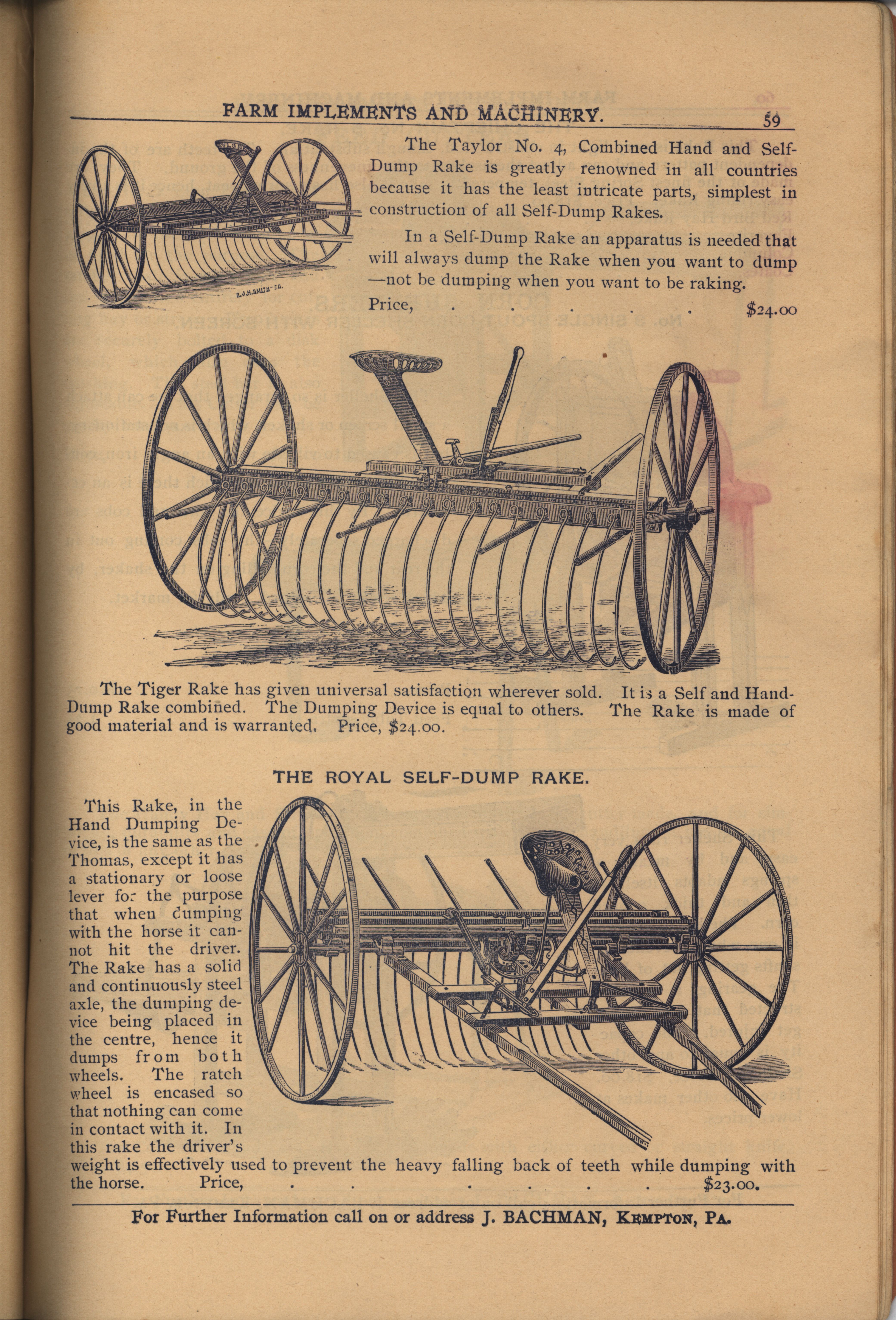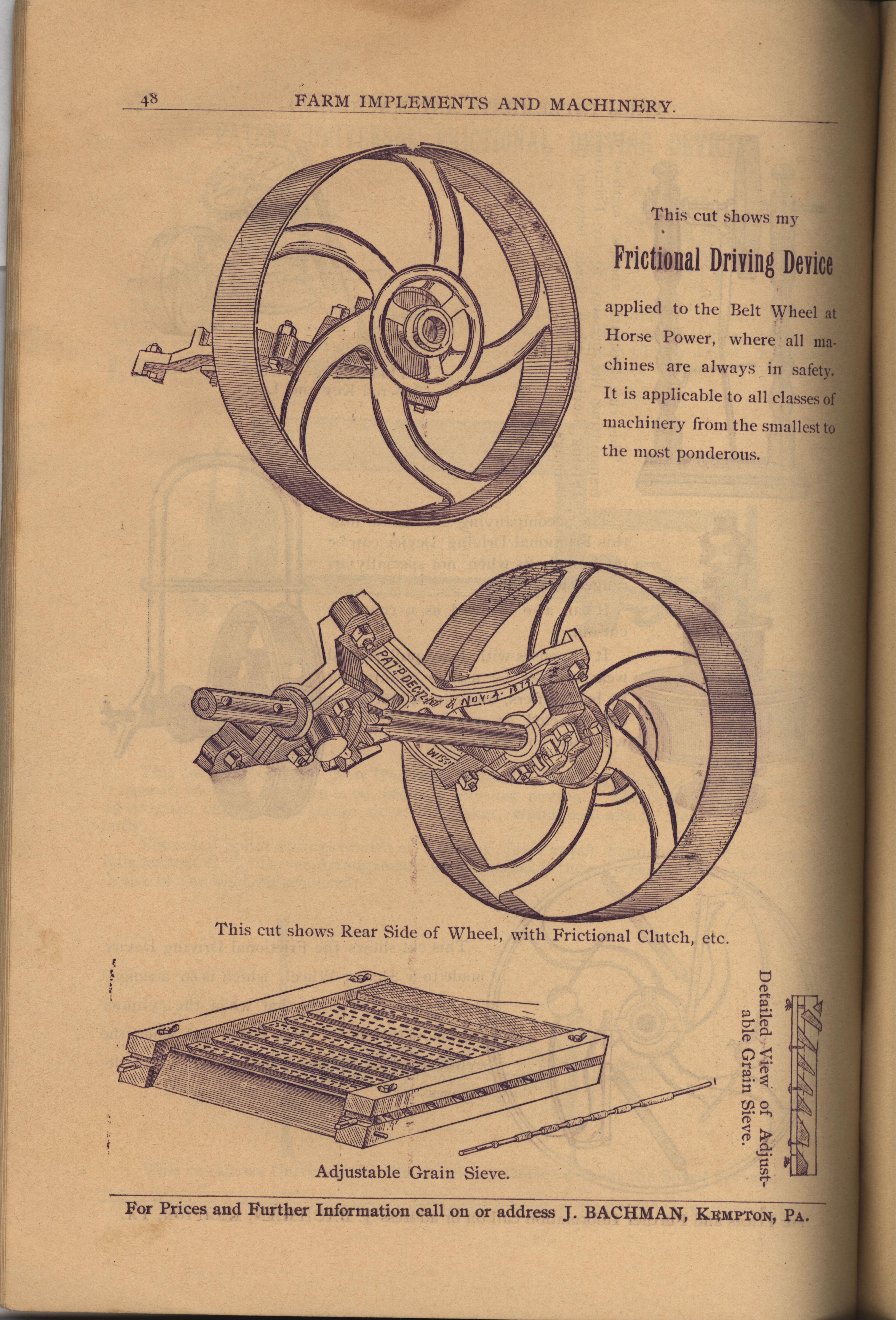 - "Illustrated catalogue No. 2 of agricultural machinery and supplies, for sale by J. Bachman", Agricultural Machinery Literature Collection, Iowa State University Library Digital Collections
