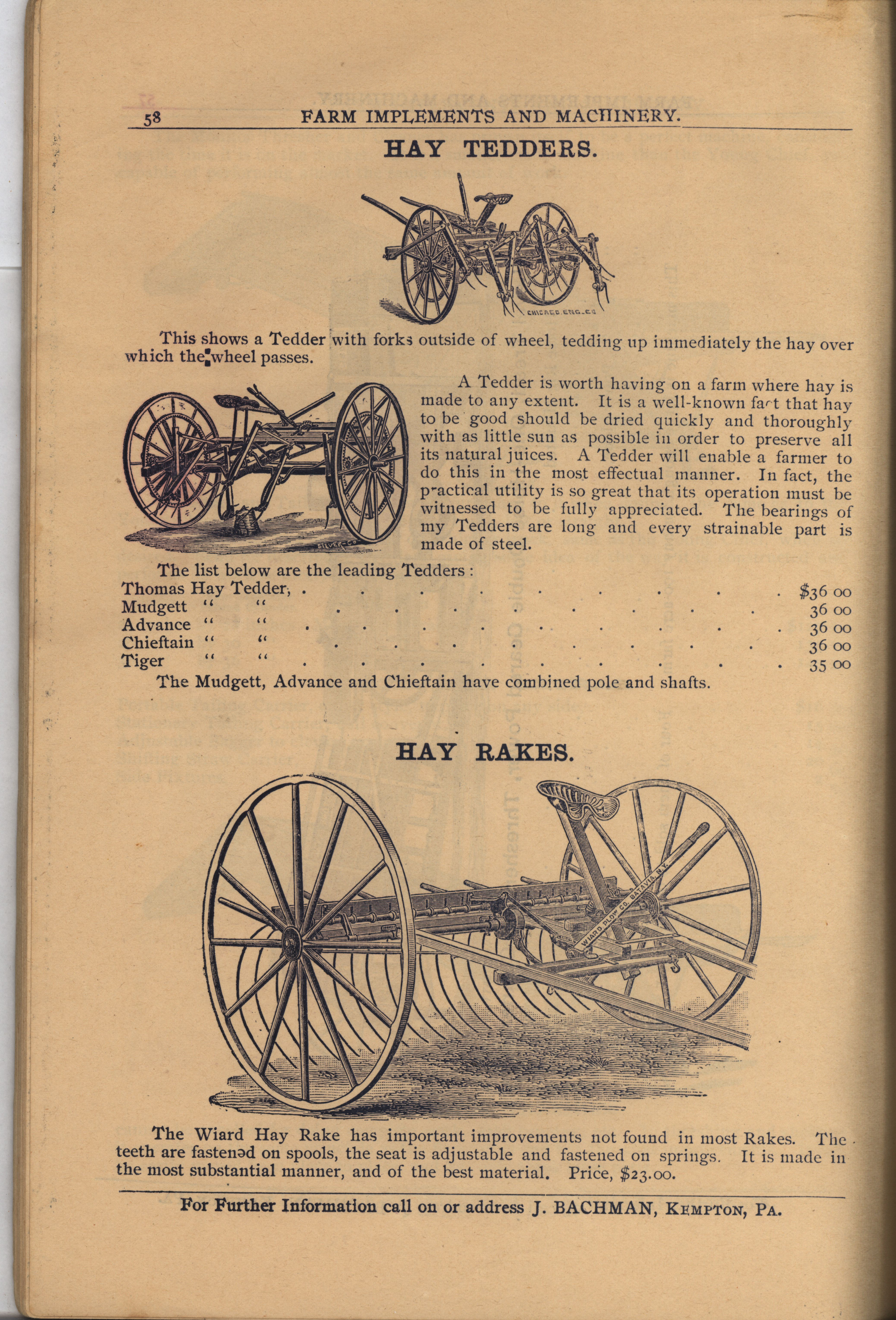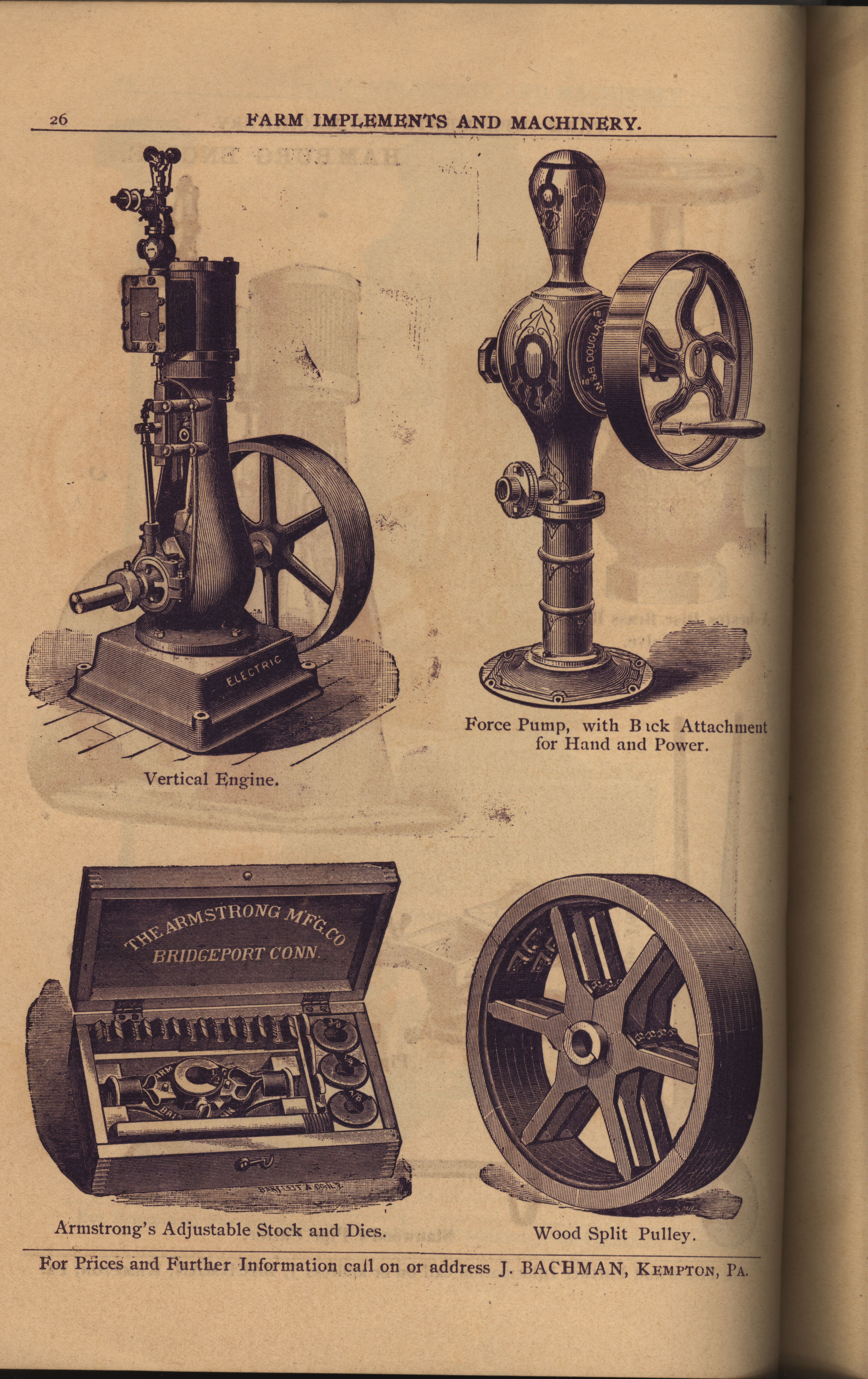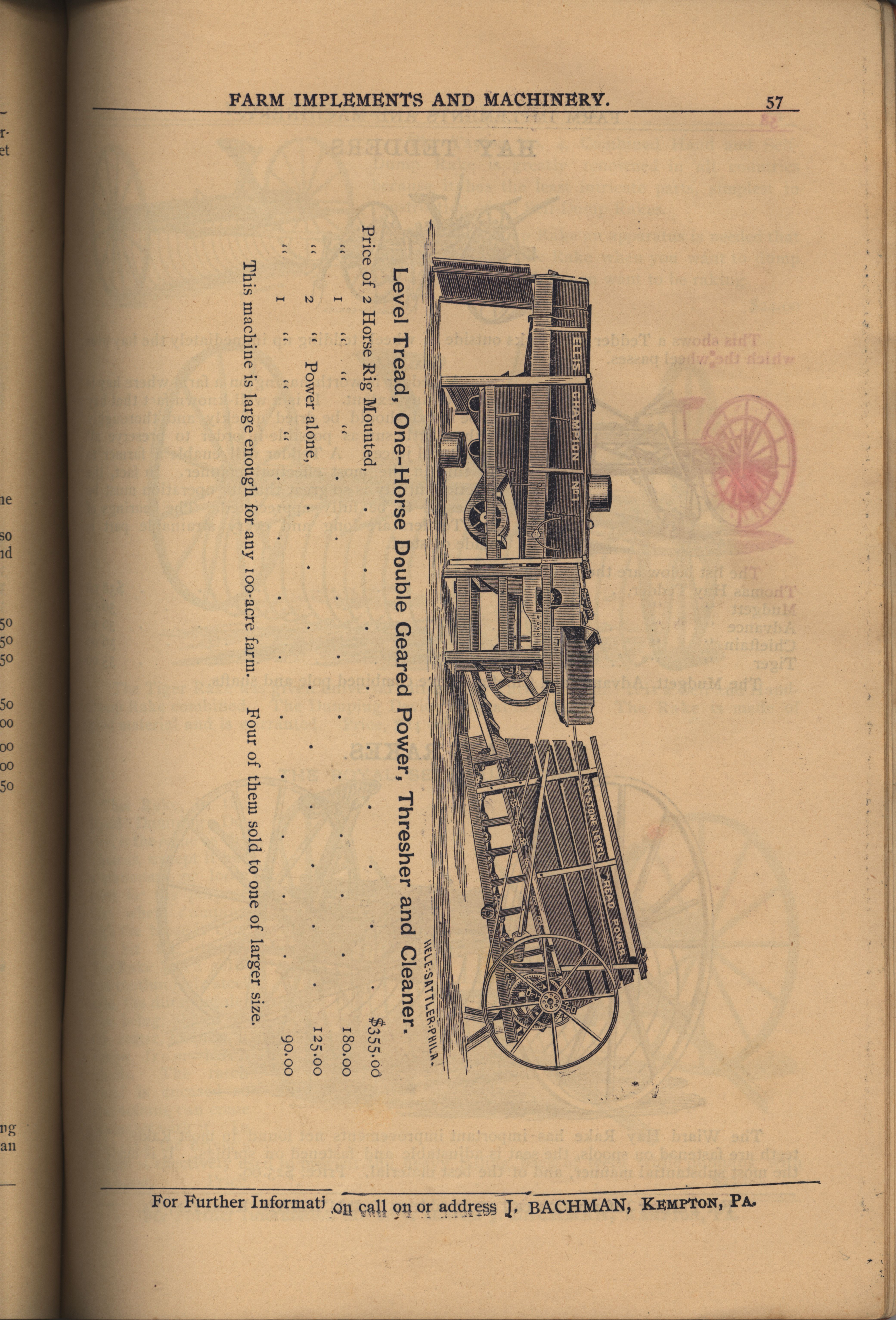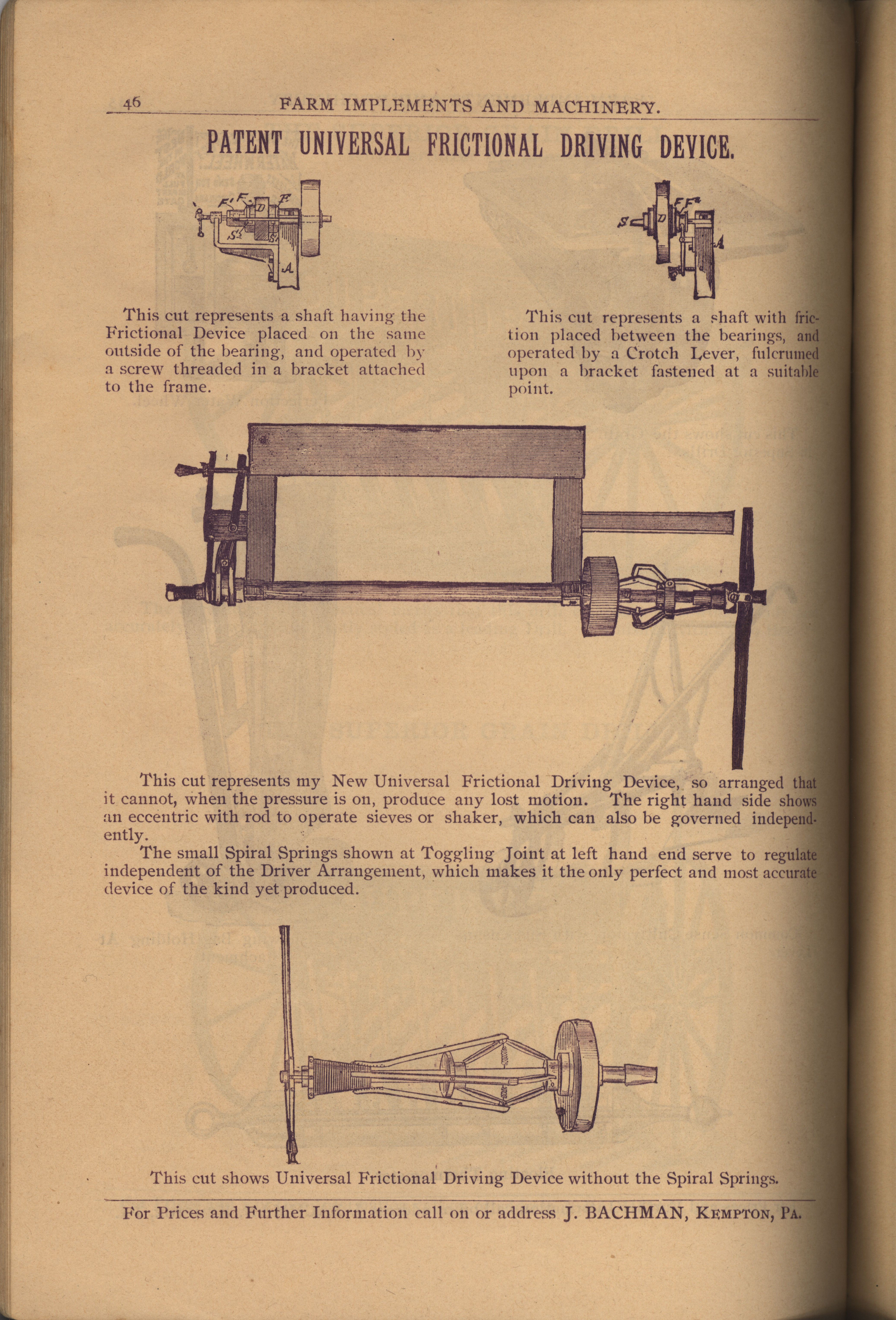 - "Illustrated catalogue No. 2 of agricultural machinery and supplies, for sale by J. Bachman", Agricultural Machinery Literature Collection, Iowa State University Library Digital Collections