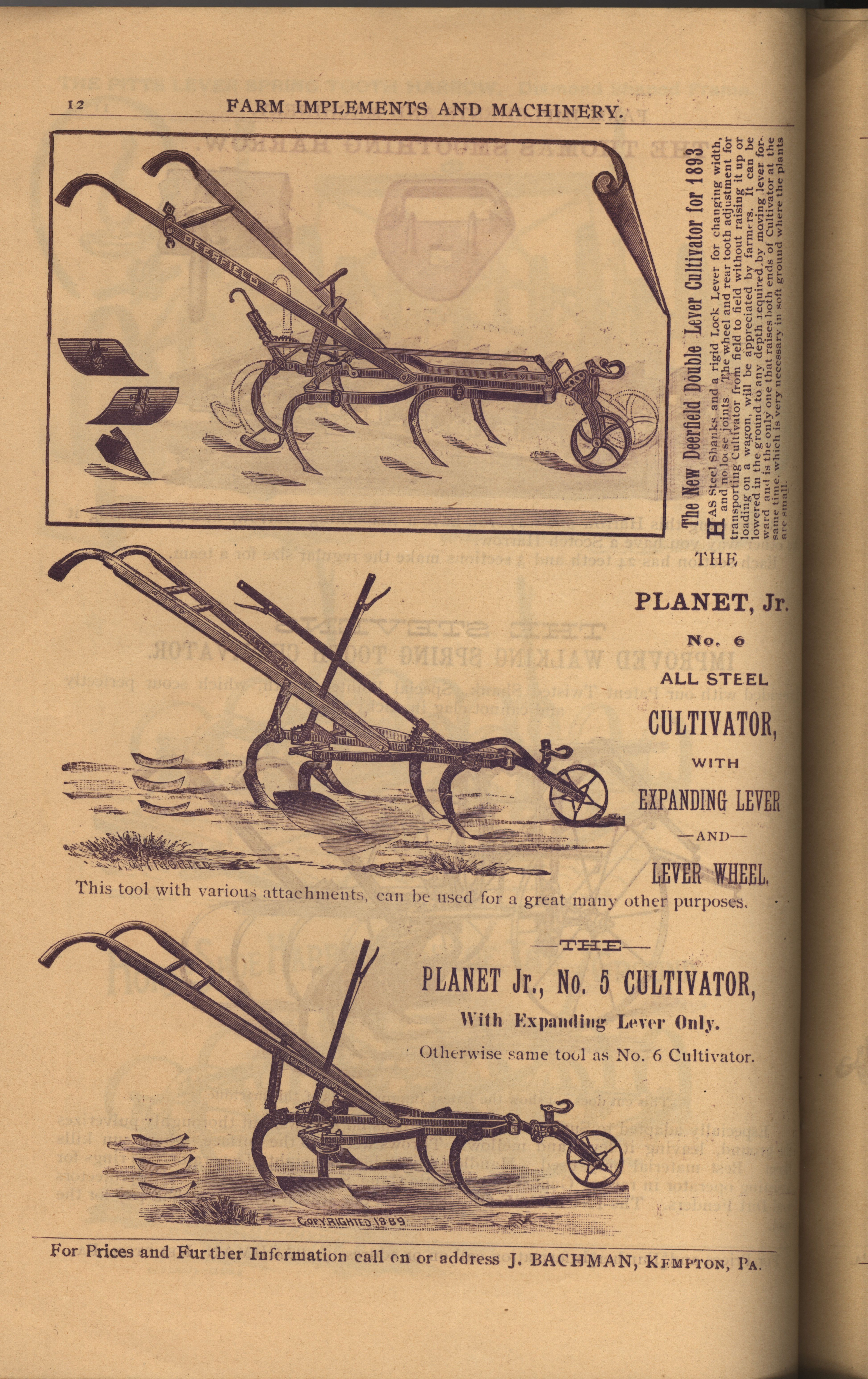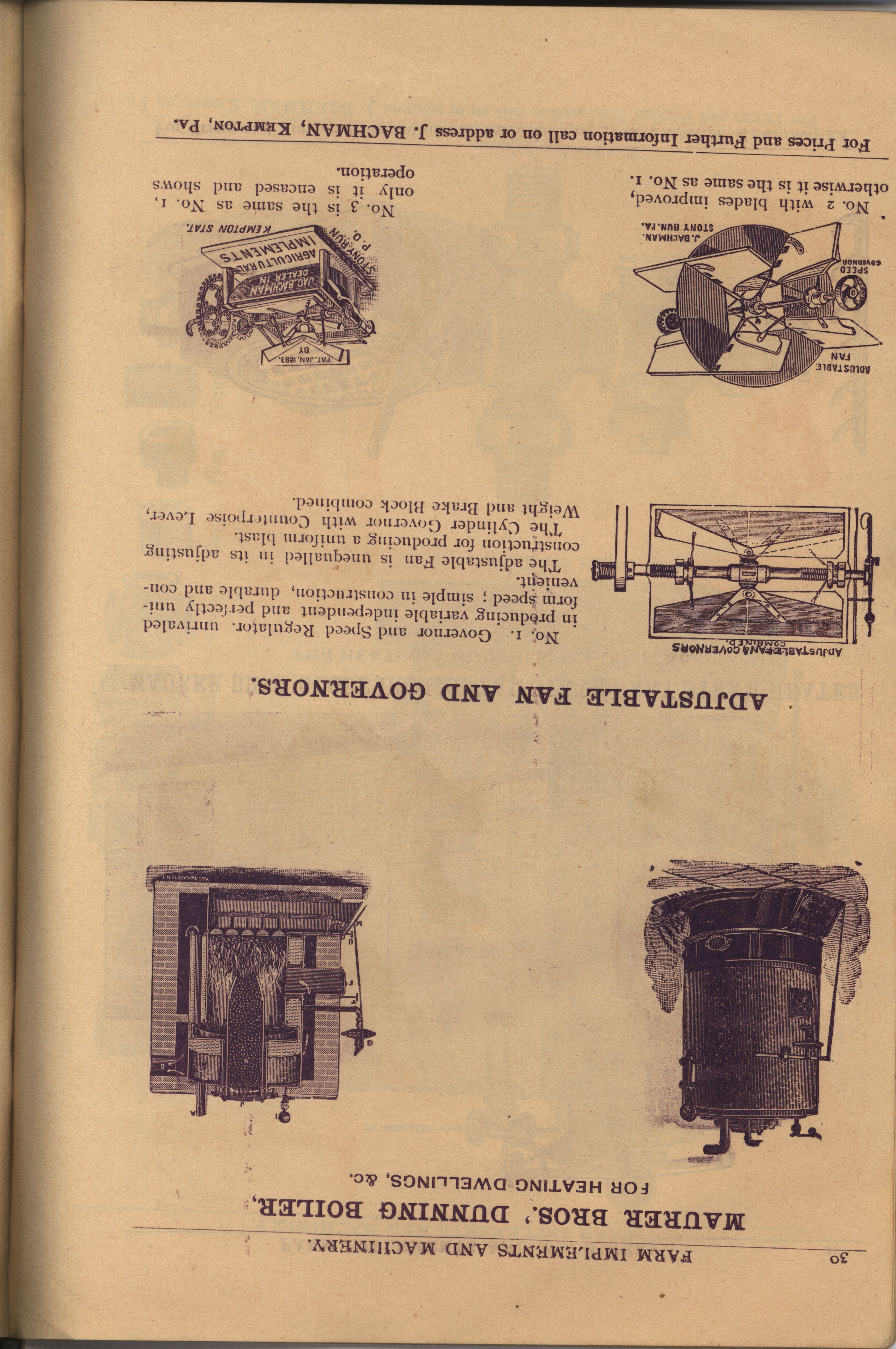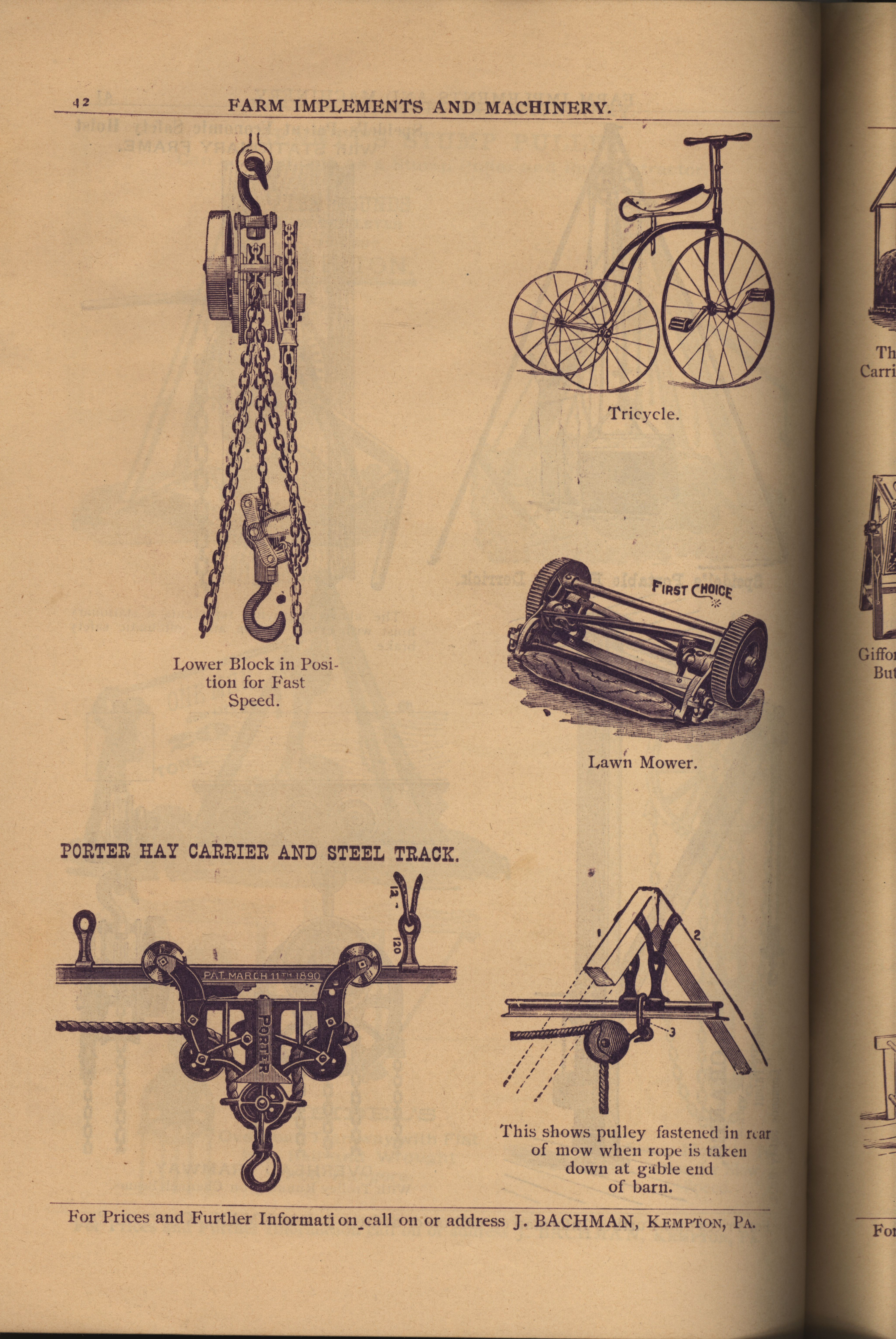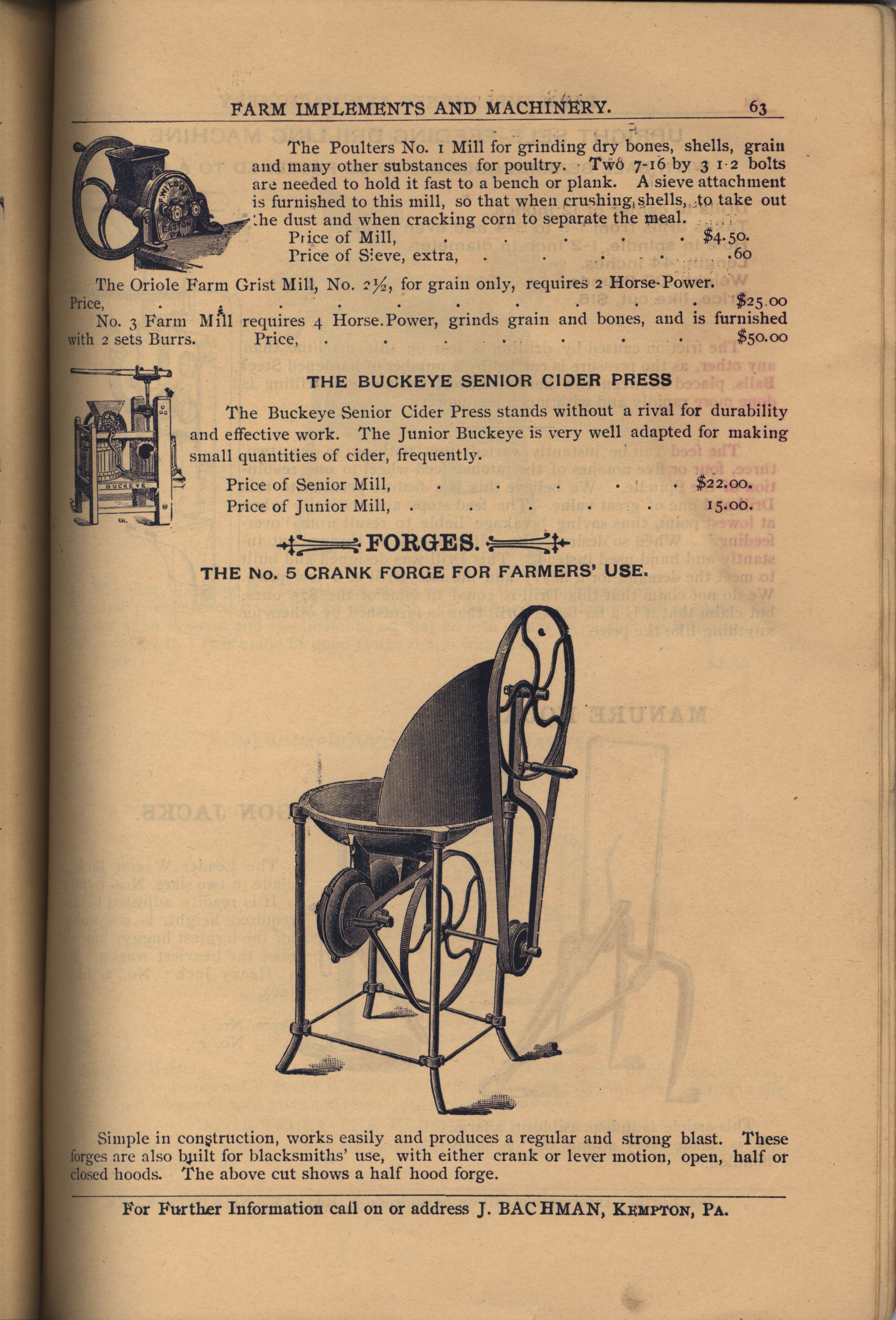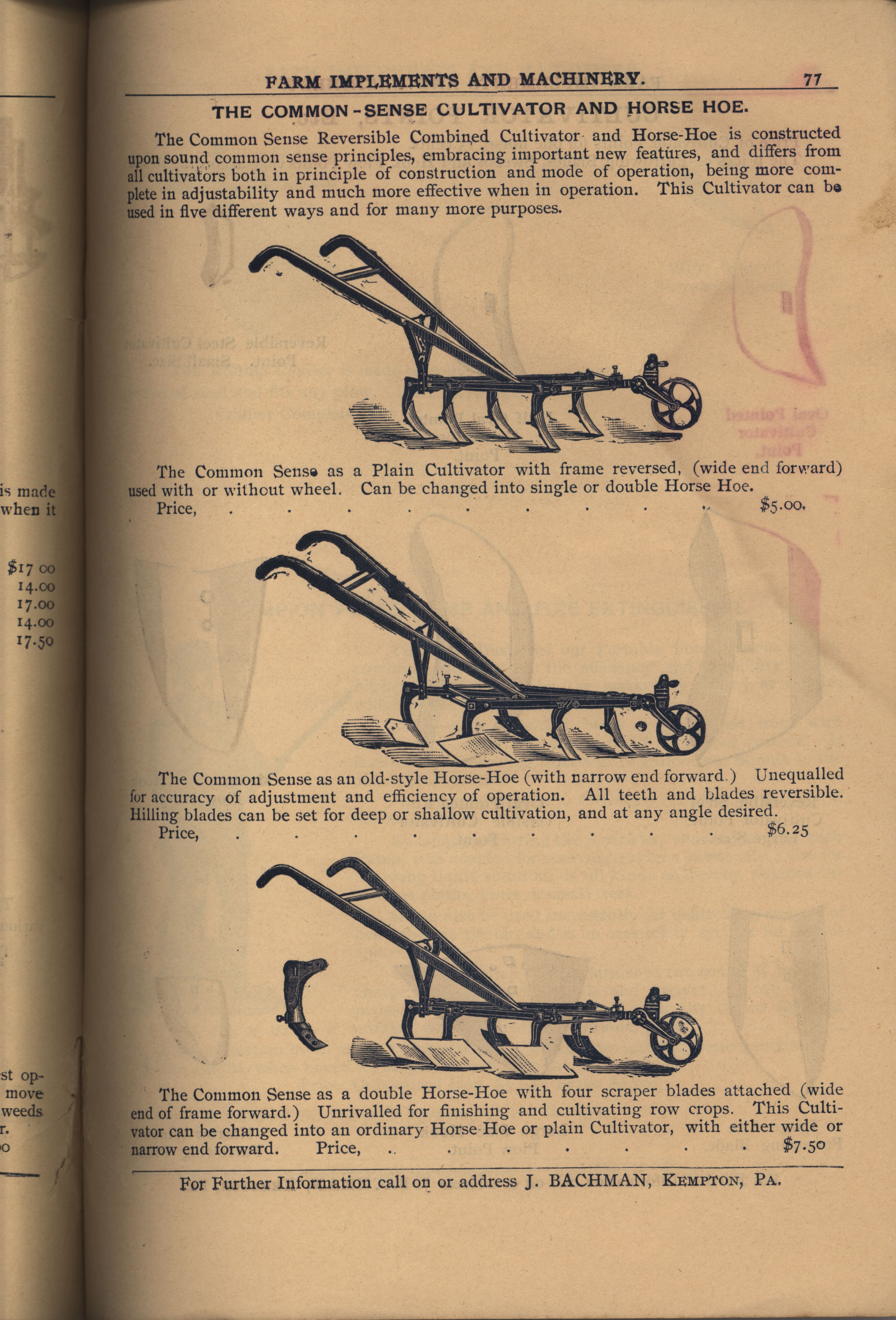- "Illustrated catalogue No. 2 of agricultural machinery and supplies, for sale by J. Bachman", Agricultural Machinery Literature Collection, Iowa State University Library Digital Collections