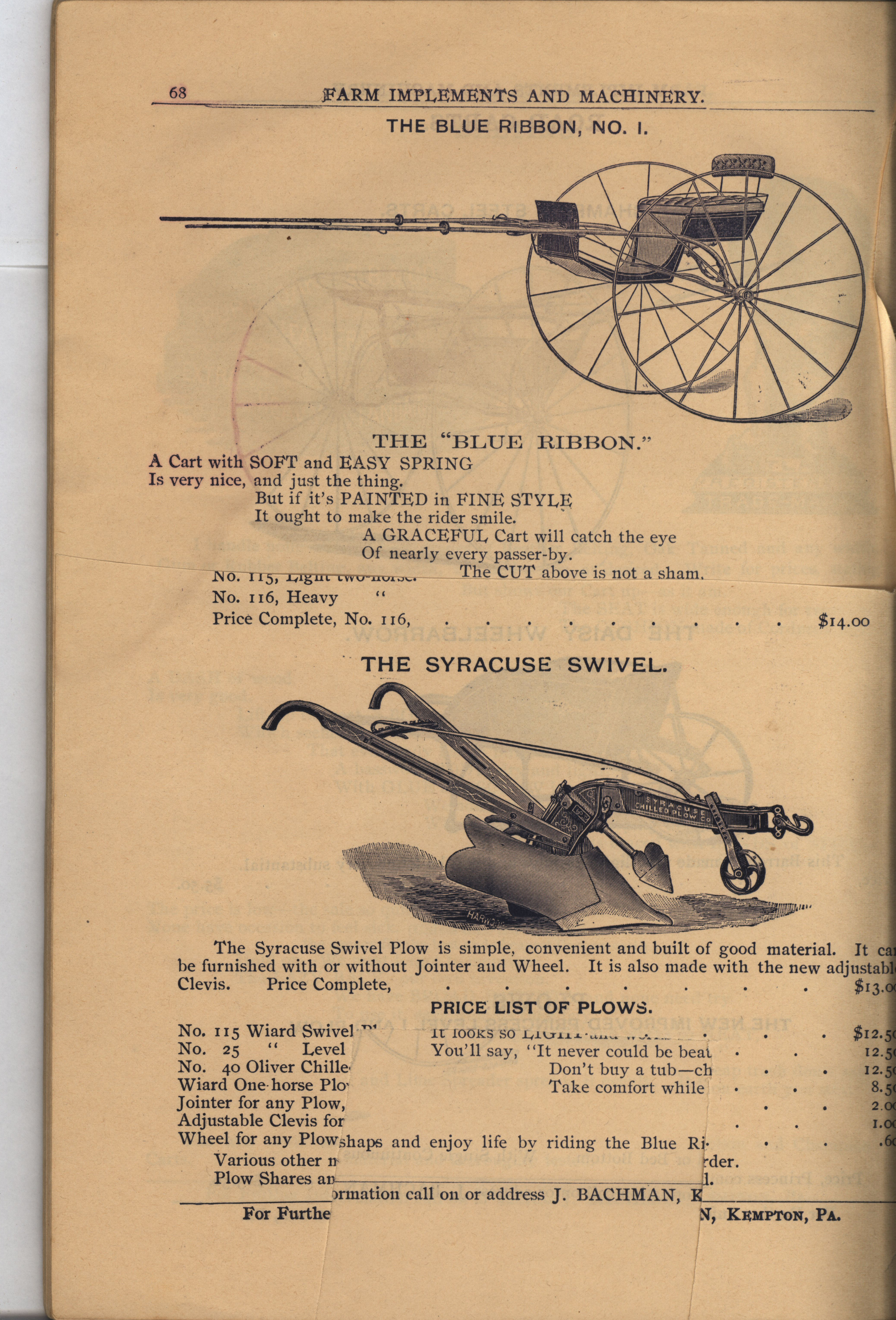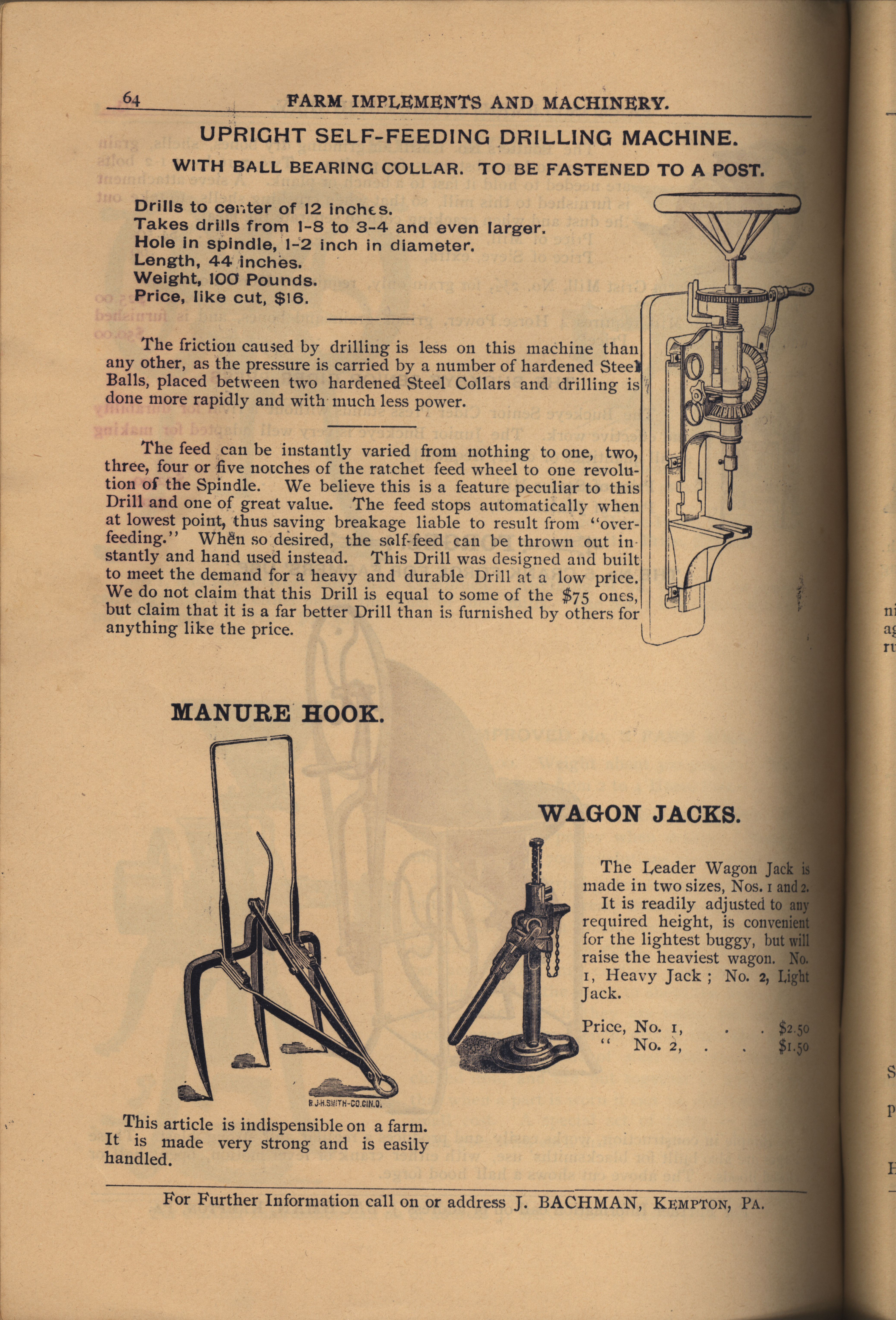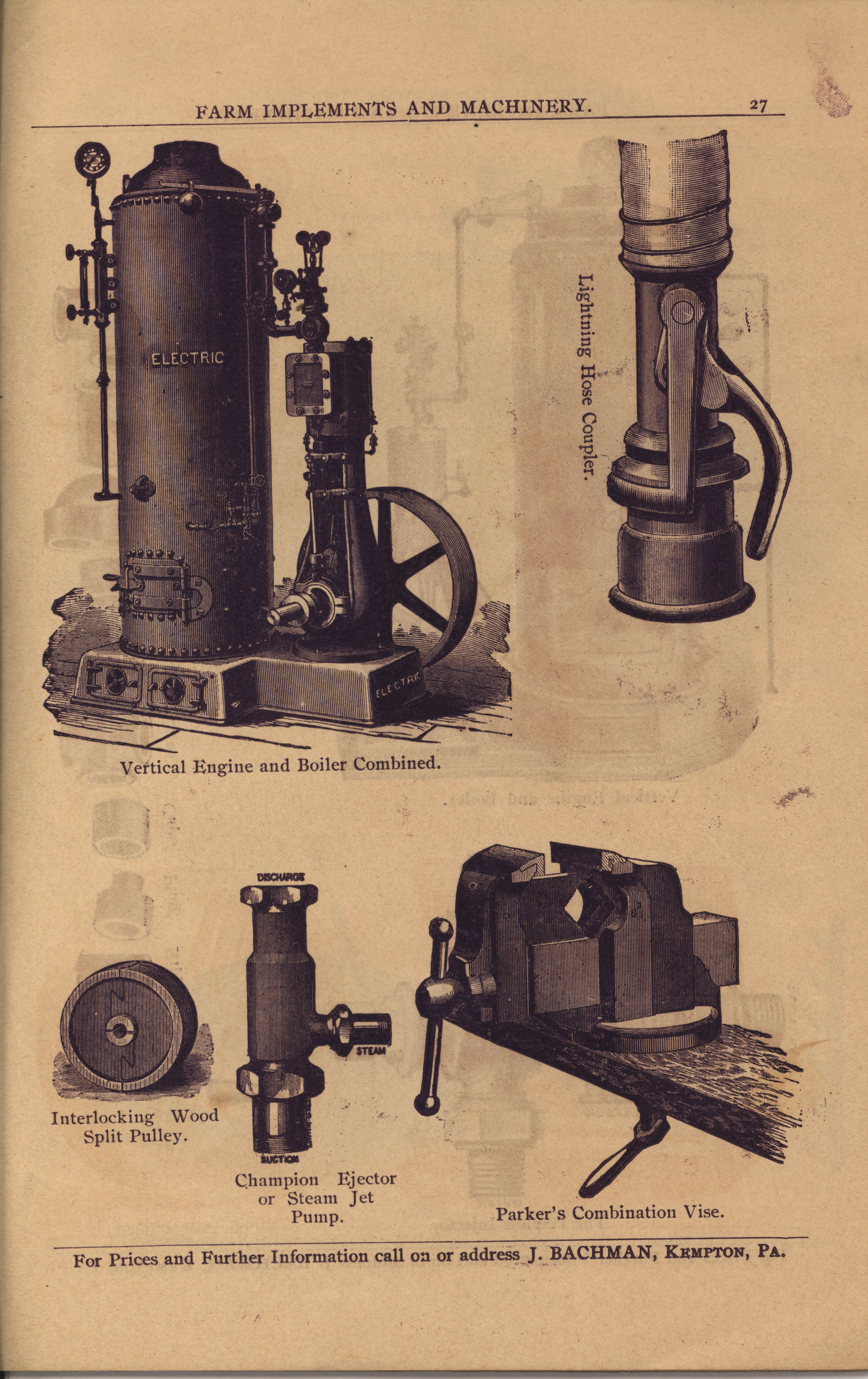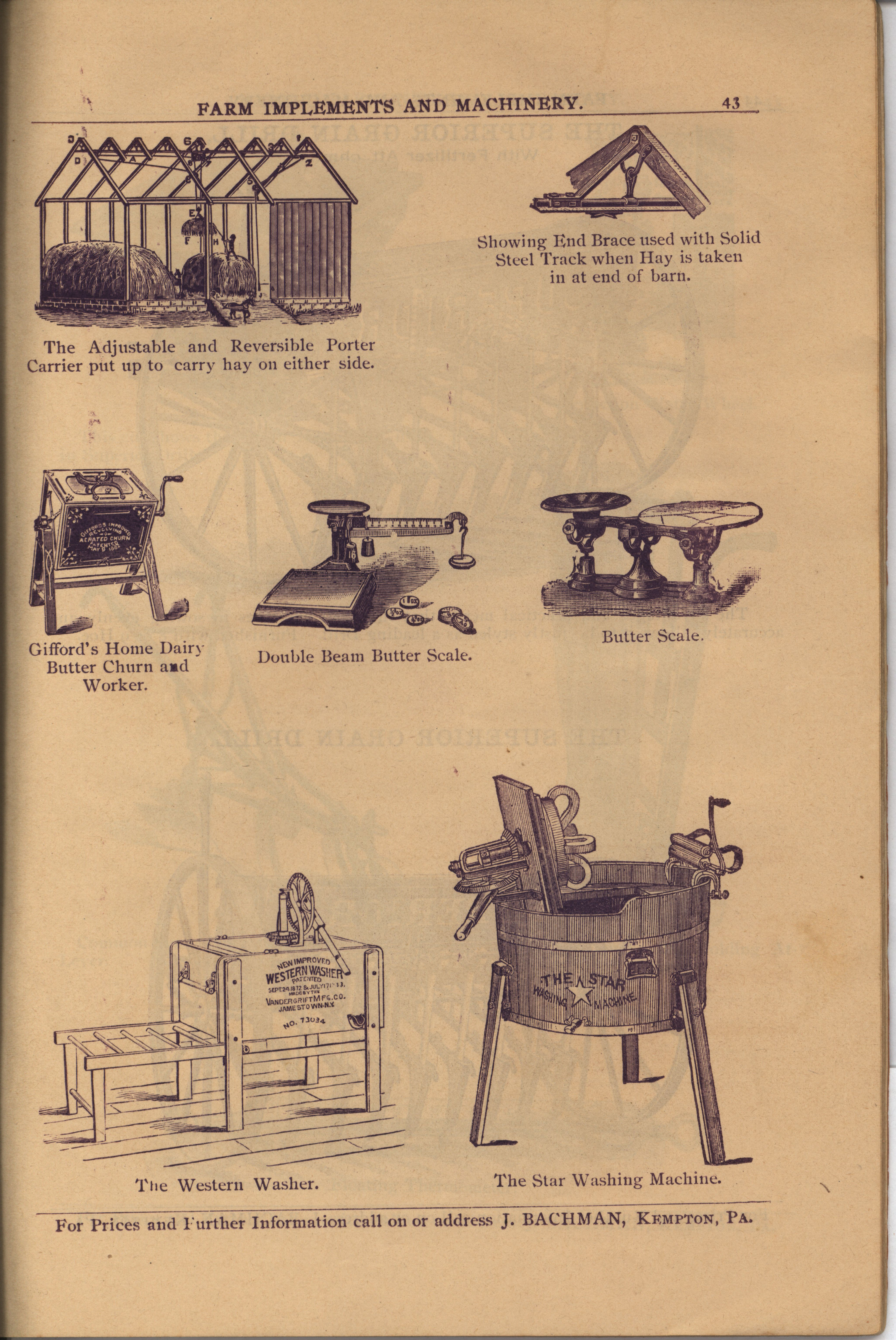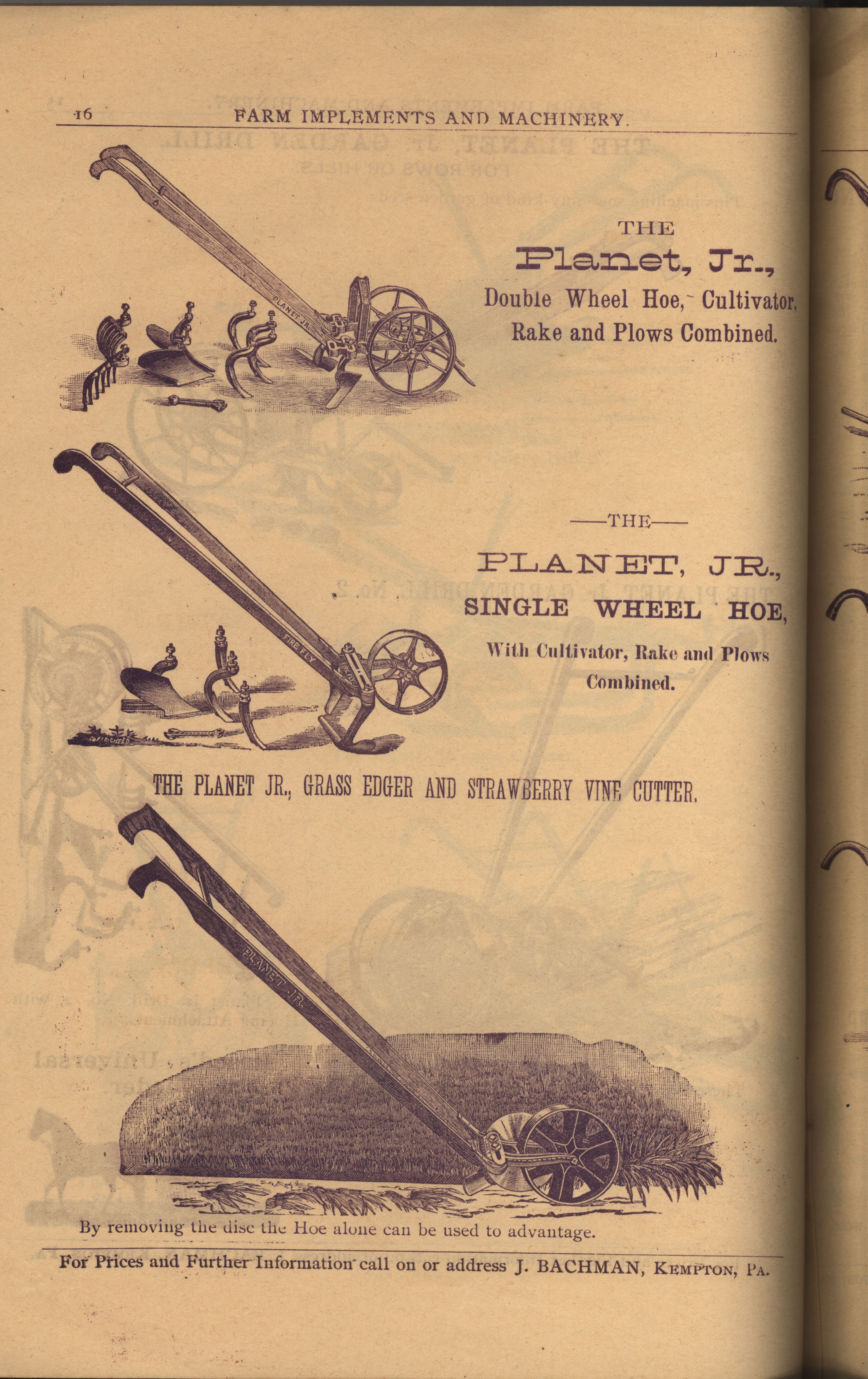 - "Illustrated catalogue No. 2 of agricultural machinery and supplies, for sale by J. Bachman", Agricultural Machinery Literature Collection, Iowa State University Library Digital Collections