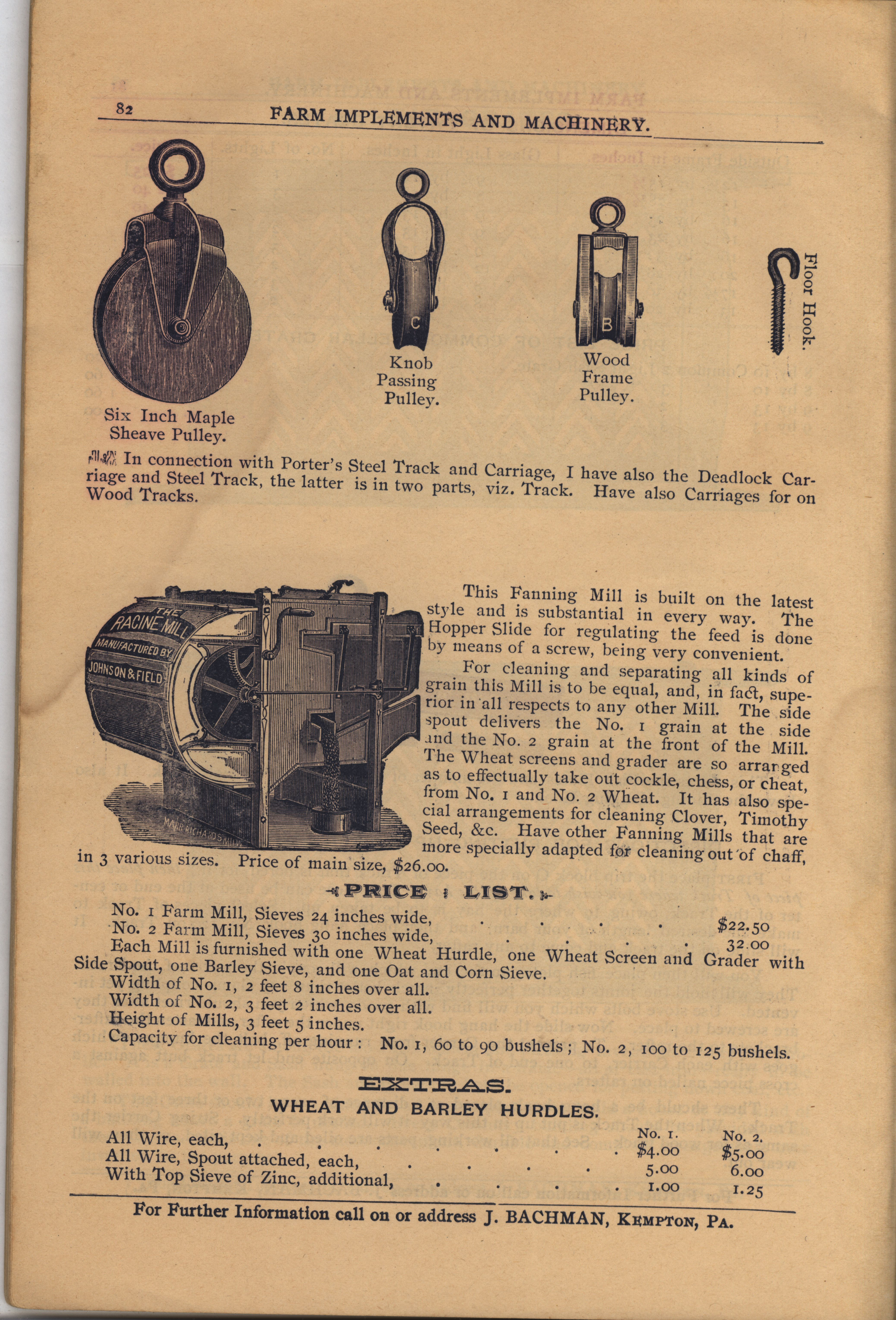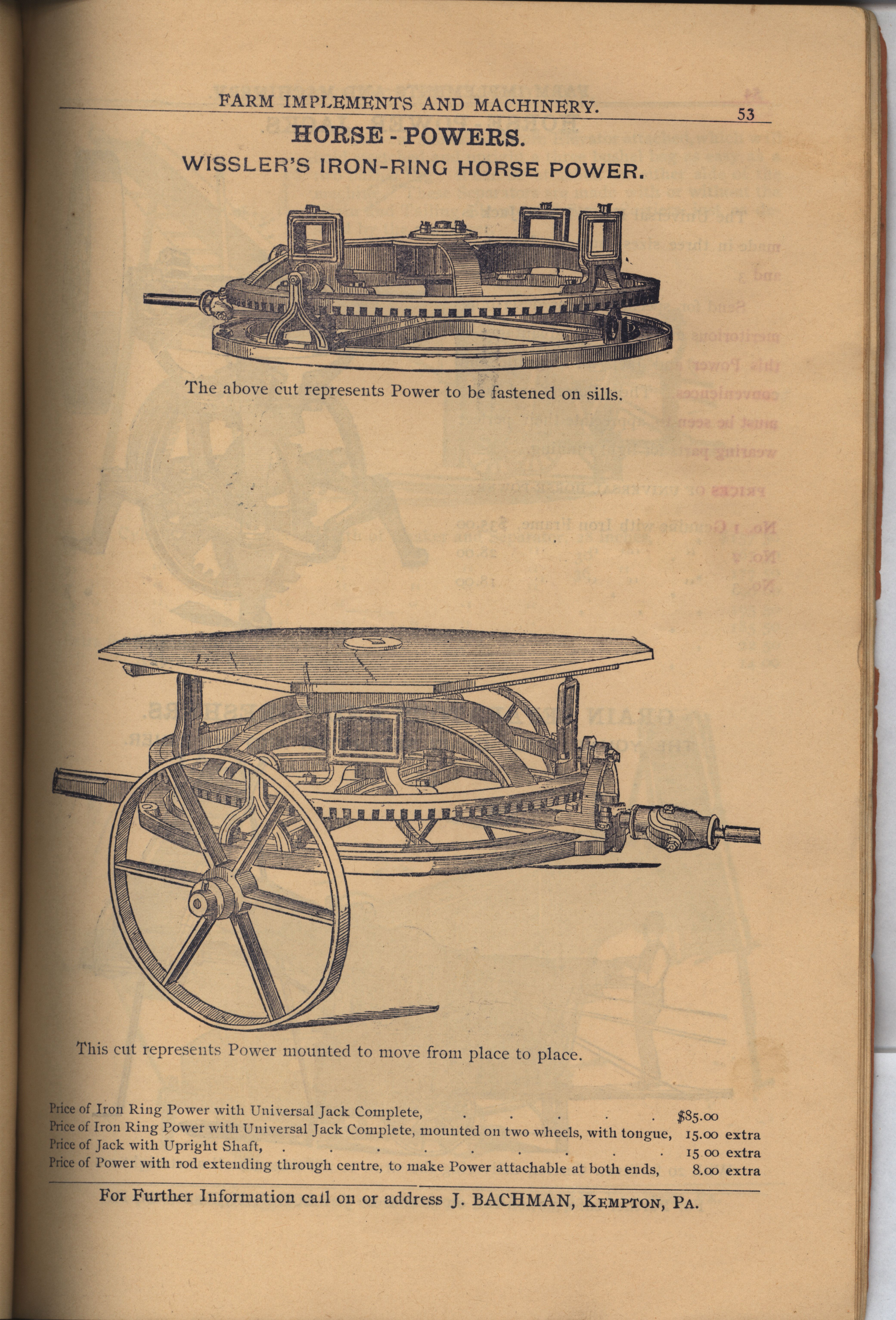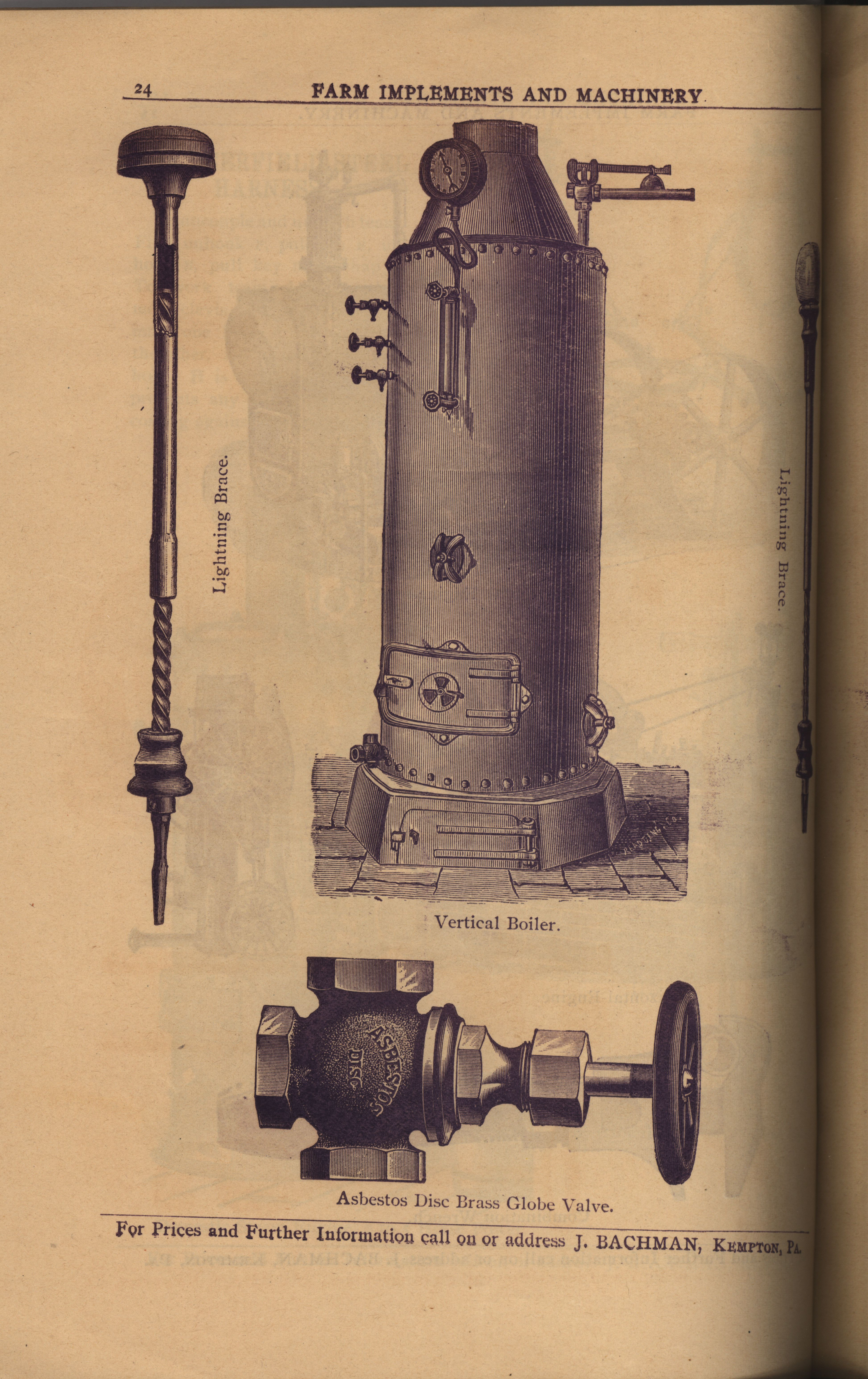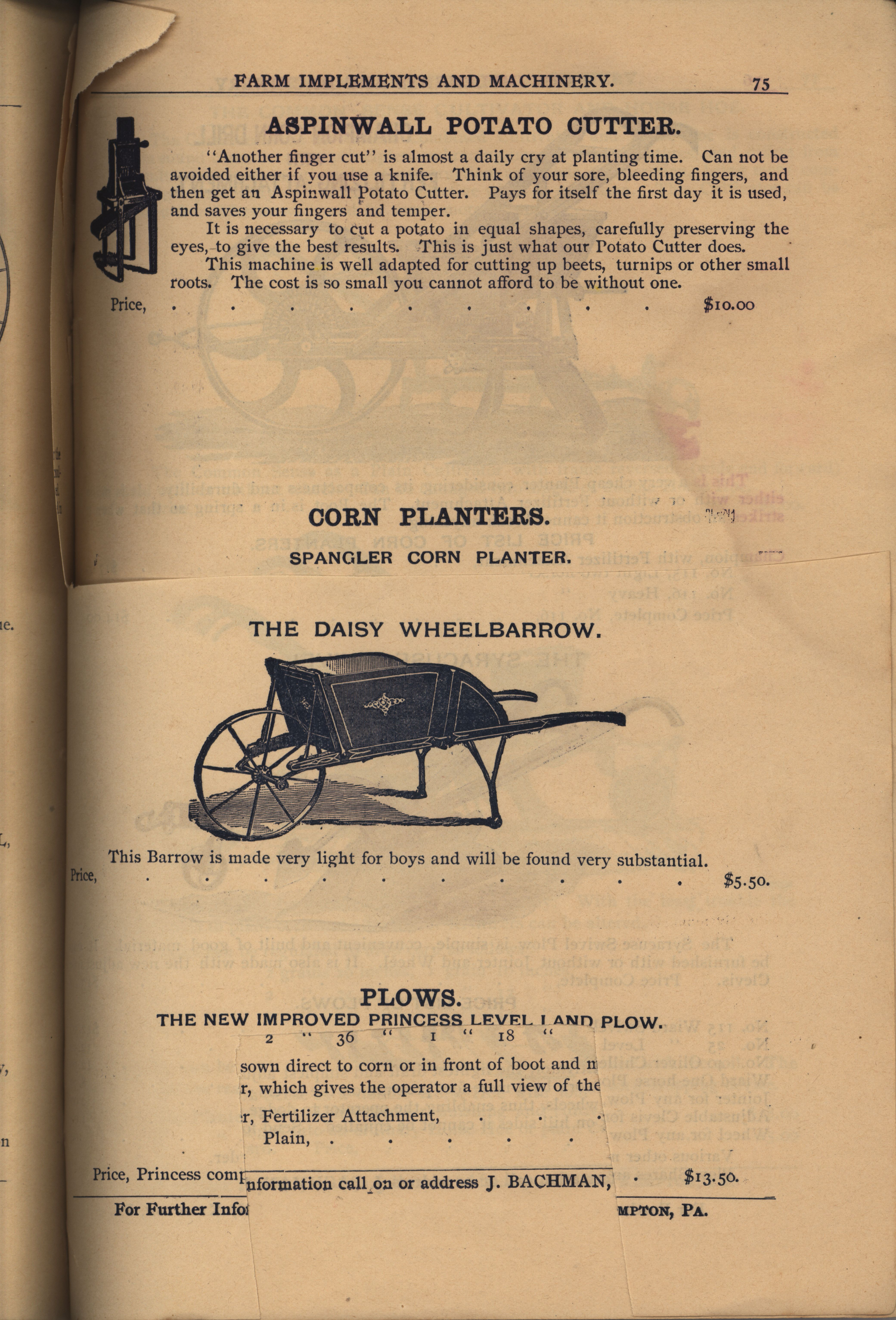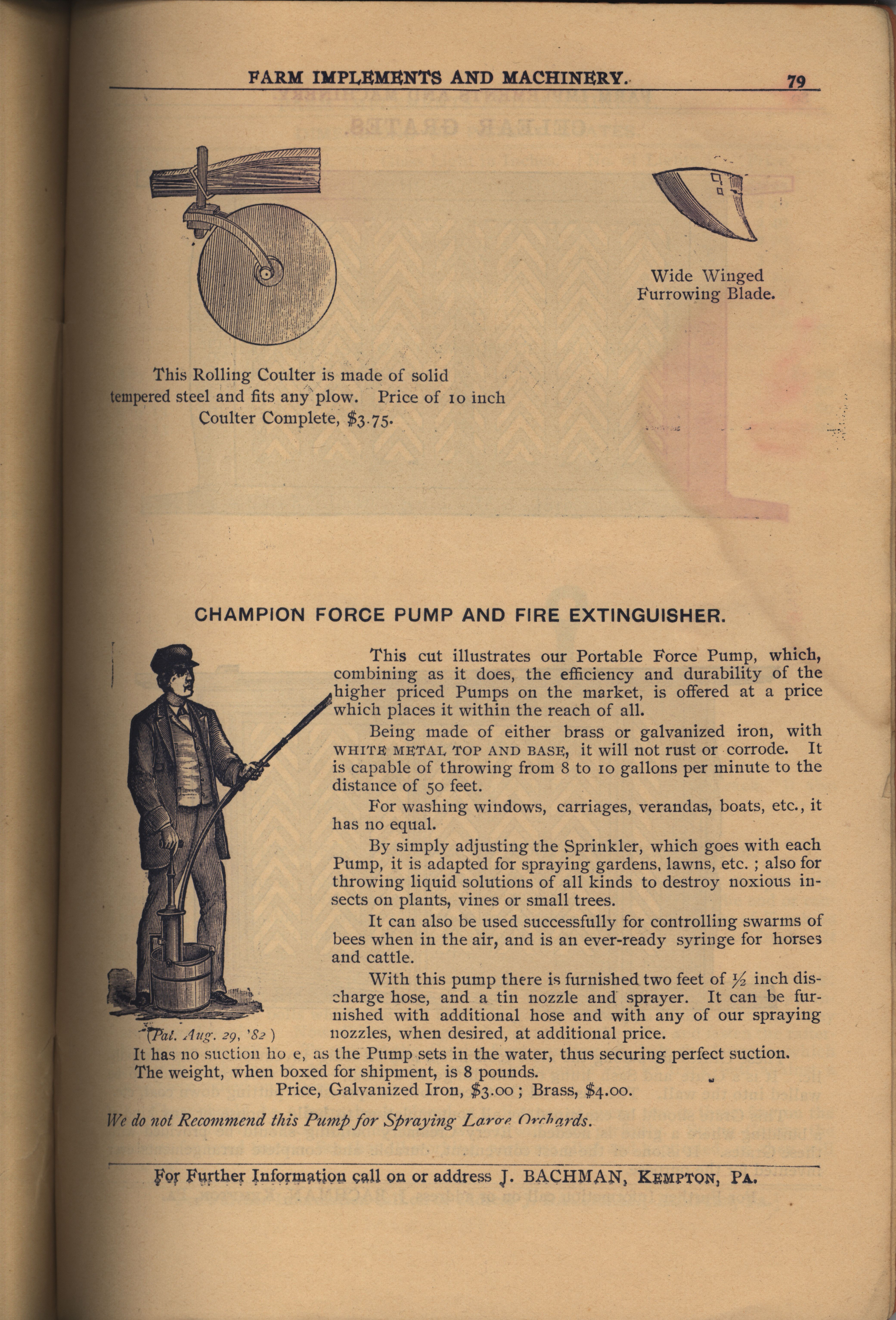- "Illustrated catalogue No. 2 of agricultural machinery and supplies, for sale by J. Bachman", Agricultural Machinery Literature Collection, Iowa State University Library Digital Collections