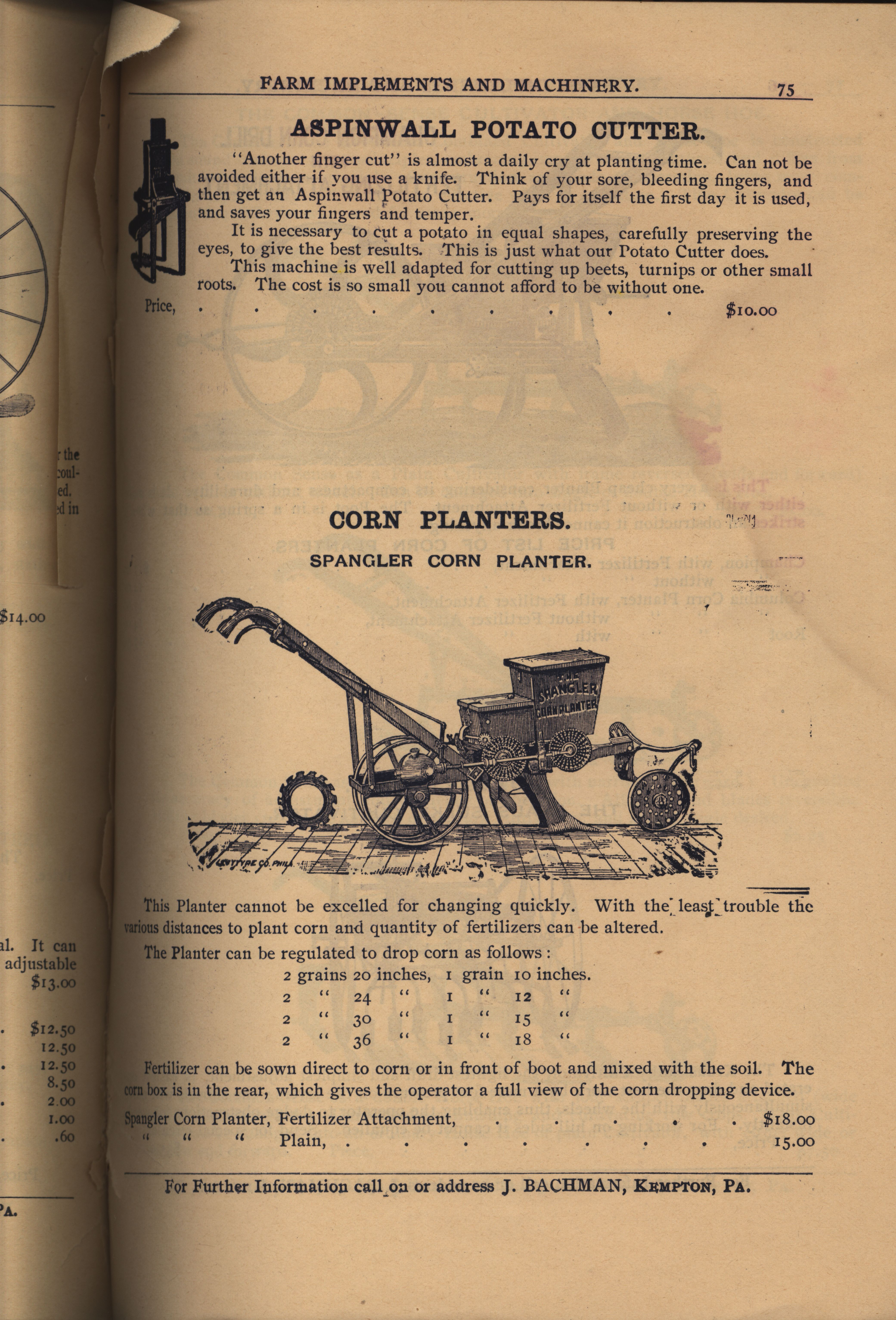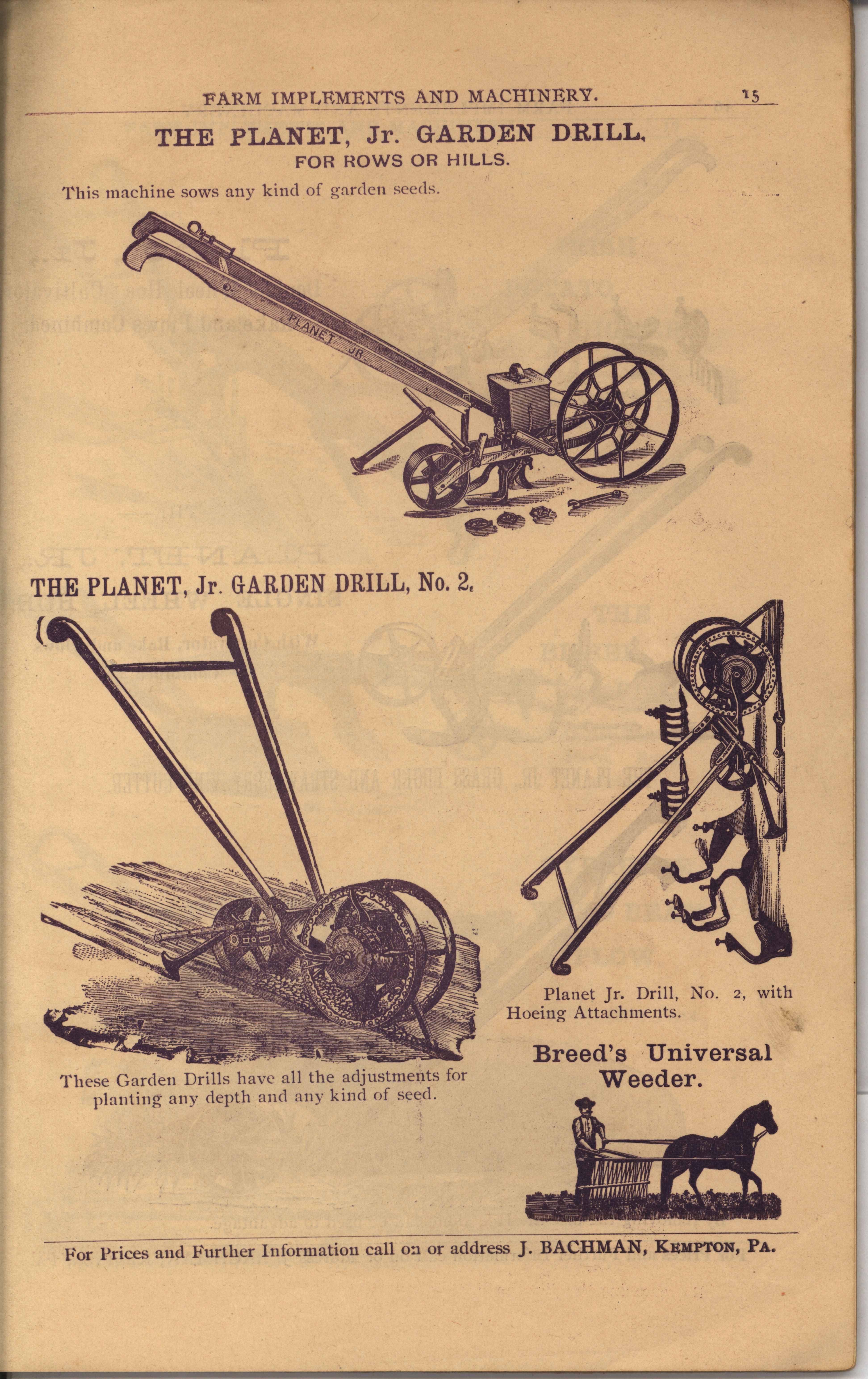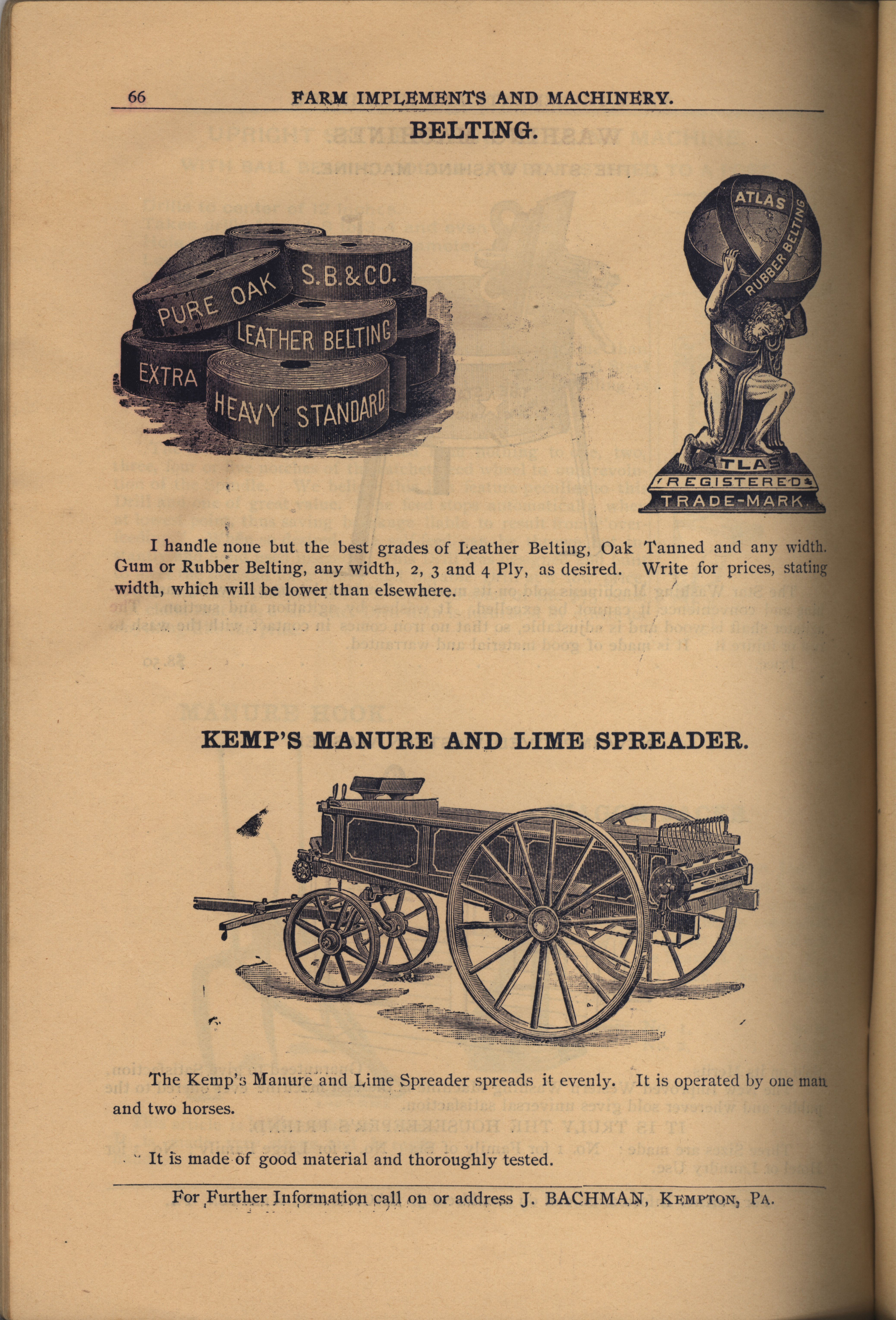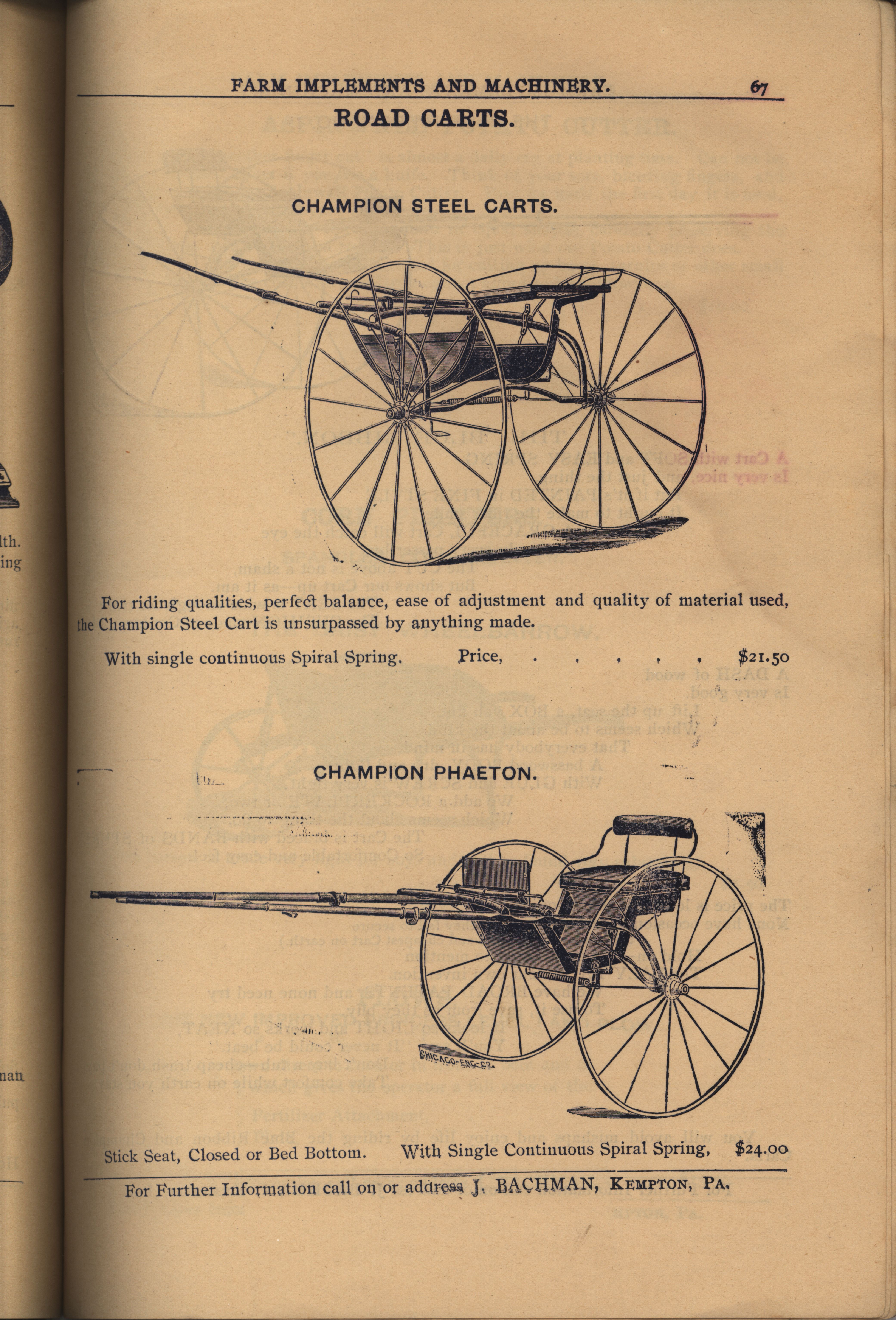 - "Illustrated catalogue No. 2 of agricultural machinery and supplies, for sale by J. Bachman", Agricultural Machinery Literature Collection, Iowa State University Library Digital Collections