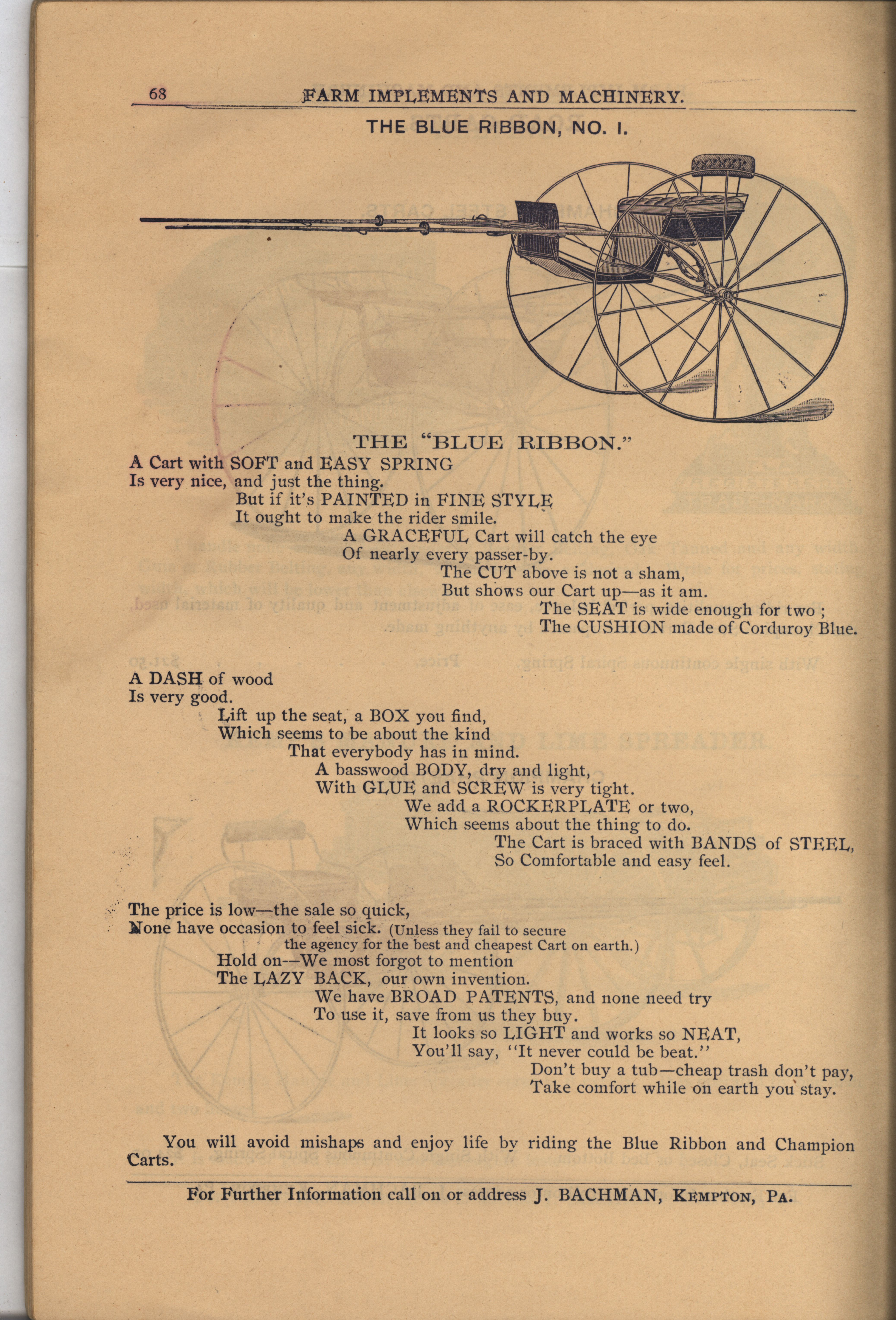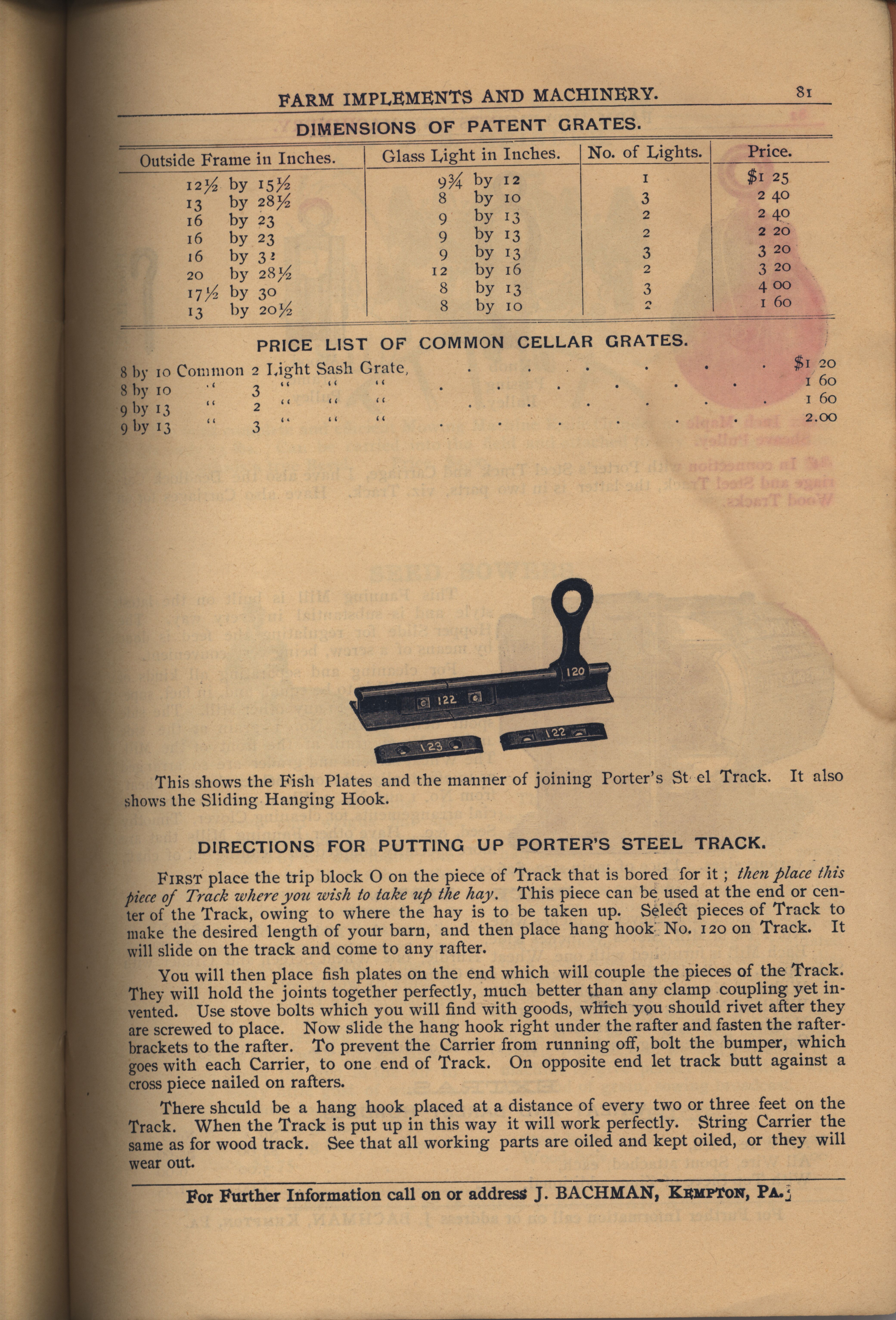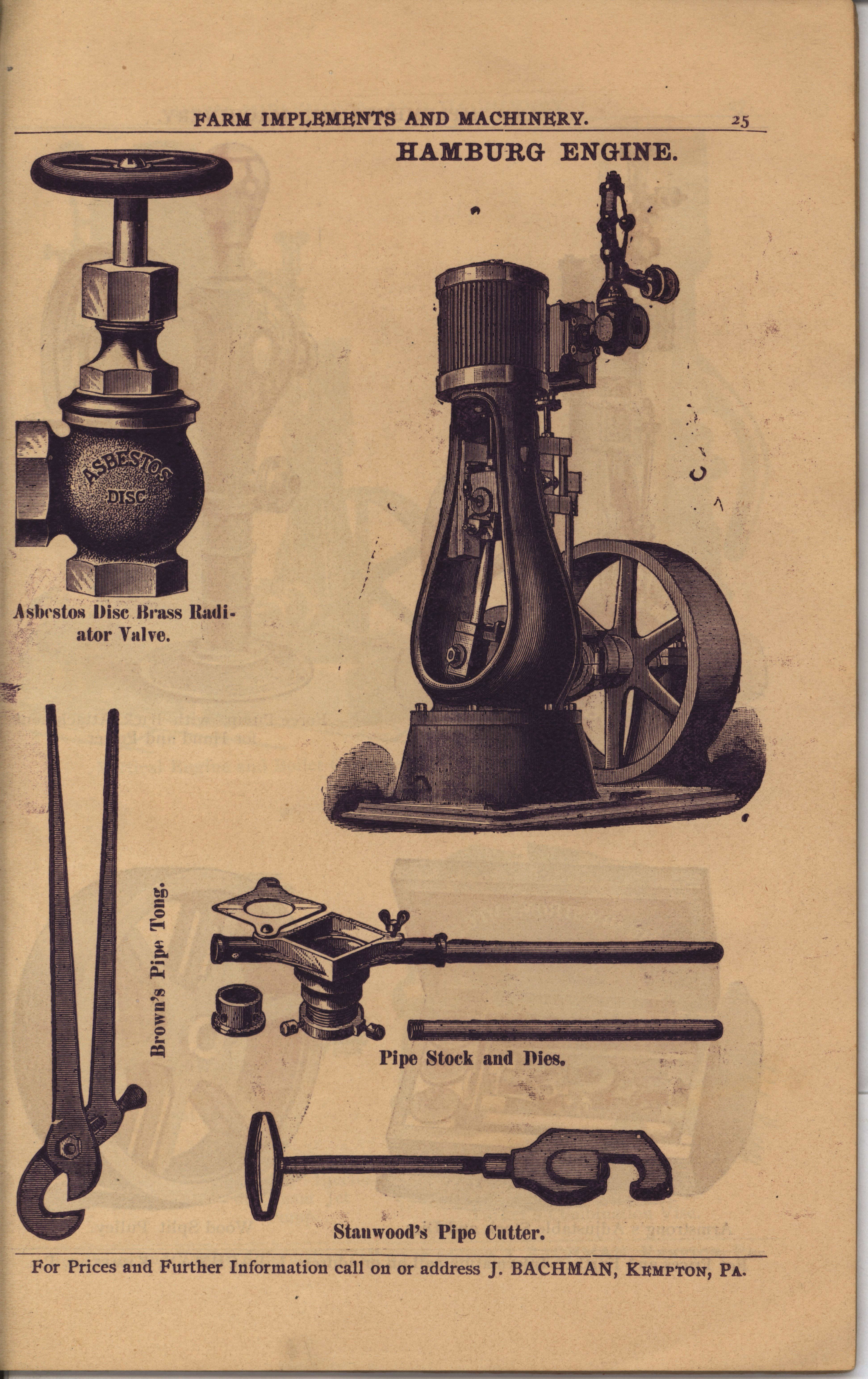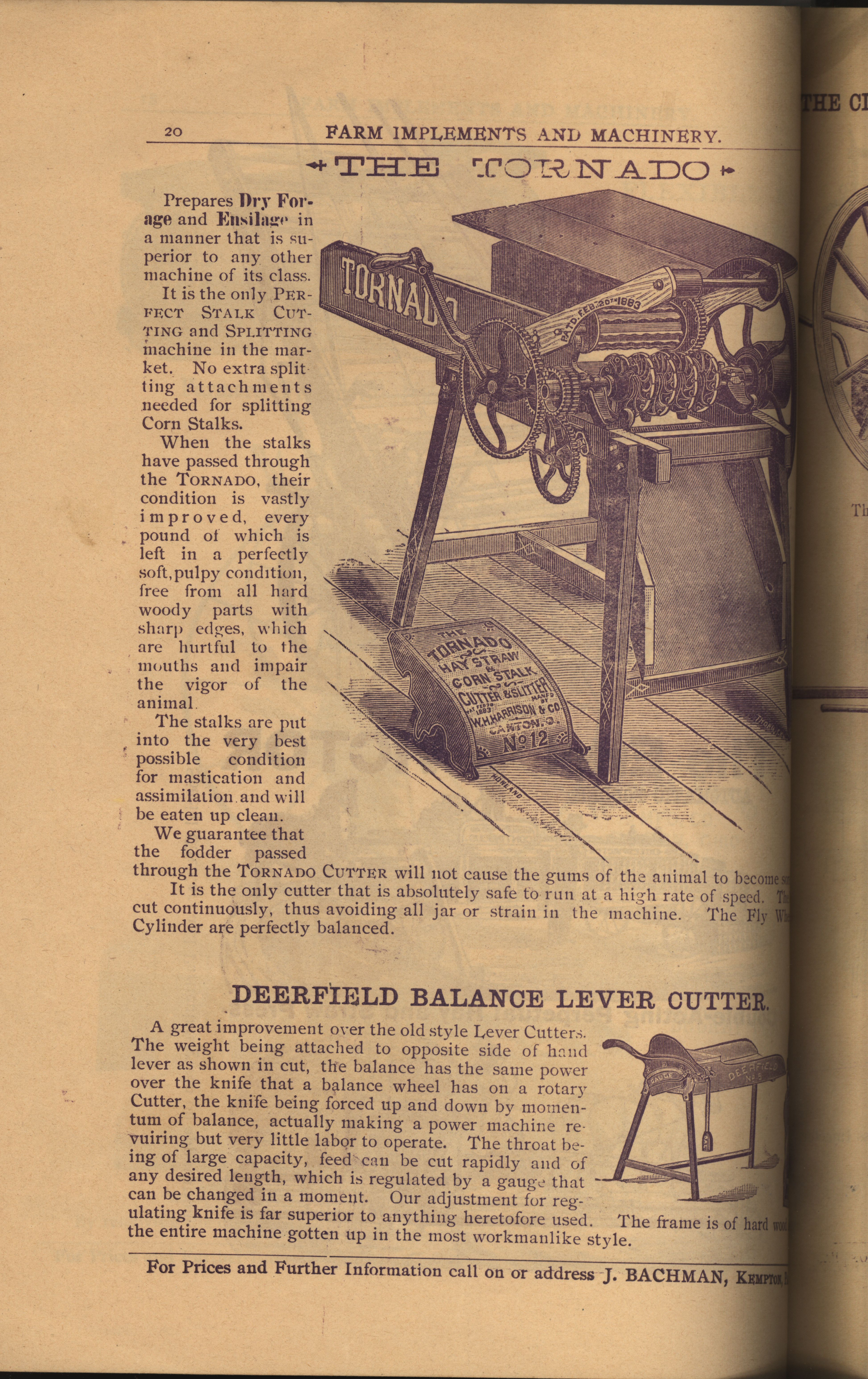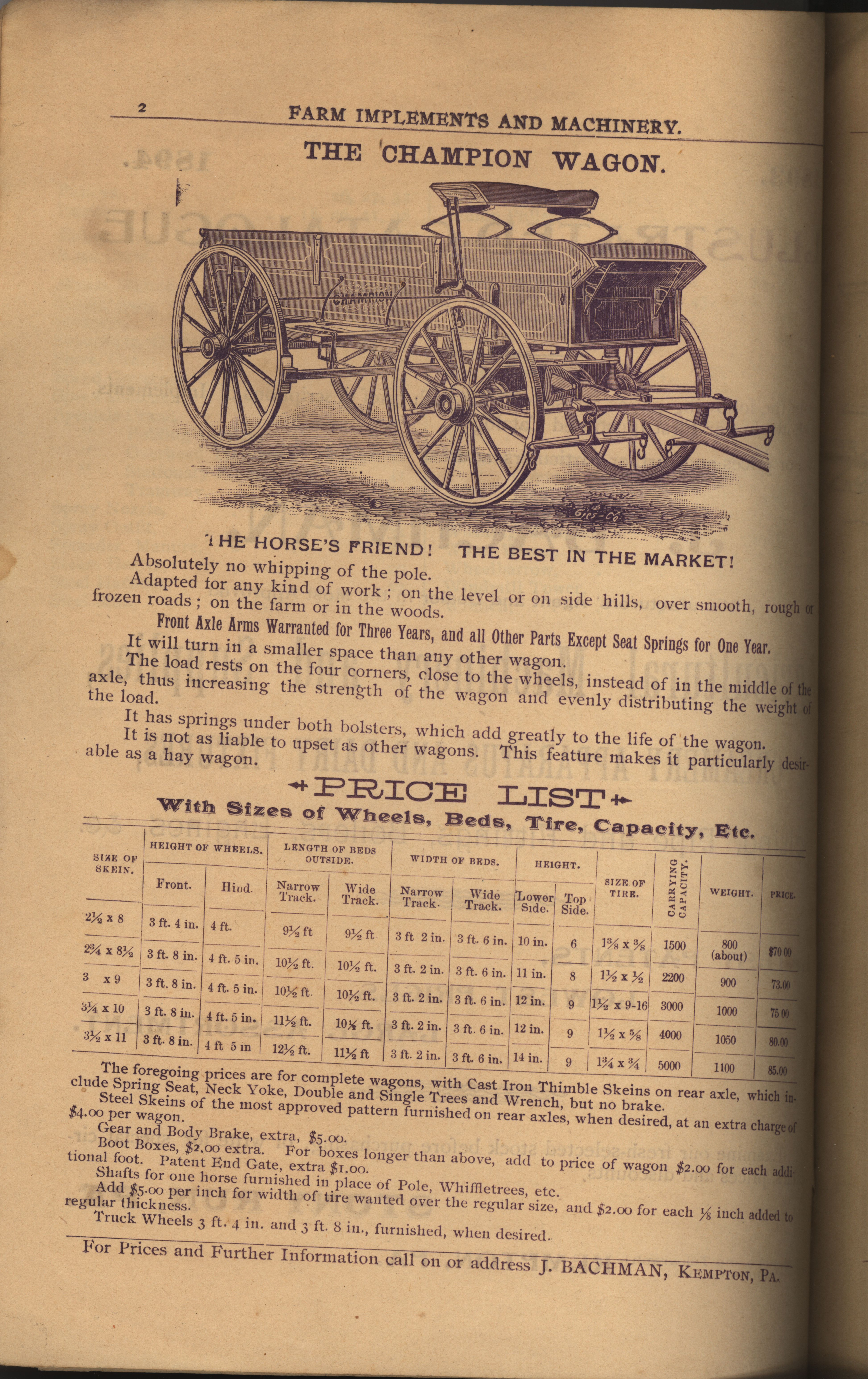 - "Illustrated catalogue No. 2 of agricultural machinery and supplies, for sale by J. Bachman", Agricultural Machinery Literature Collection, Iowa State University Library Digital Collections
