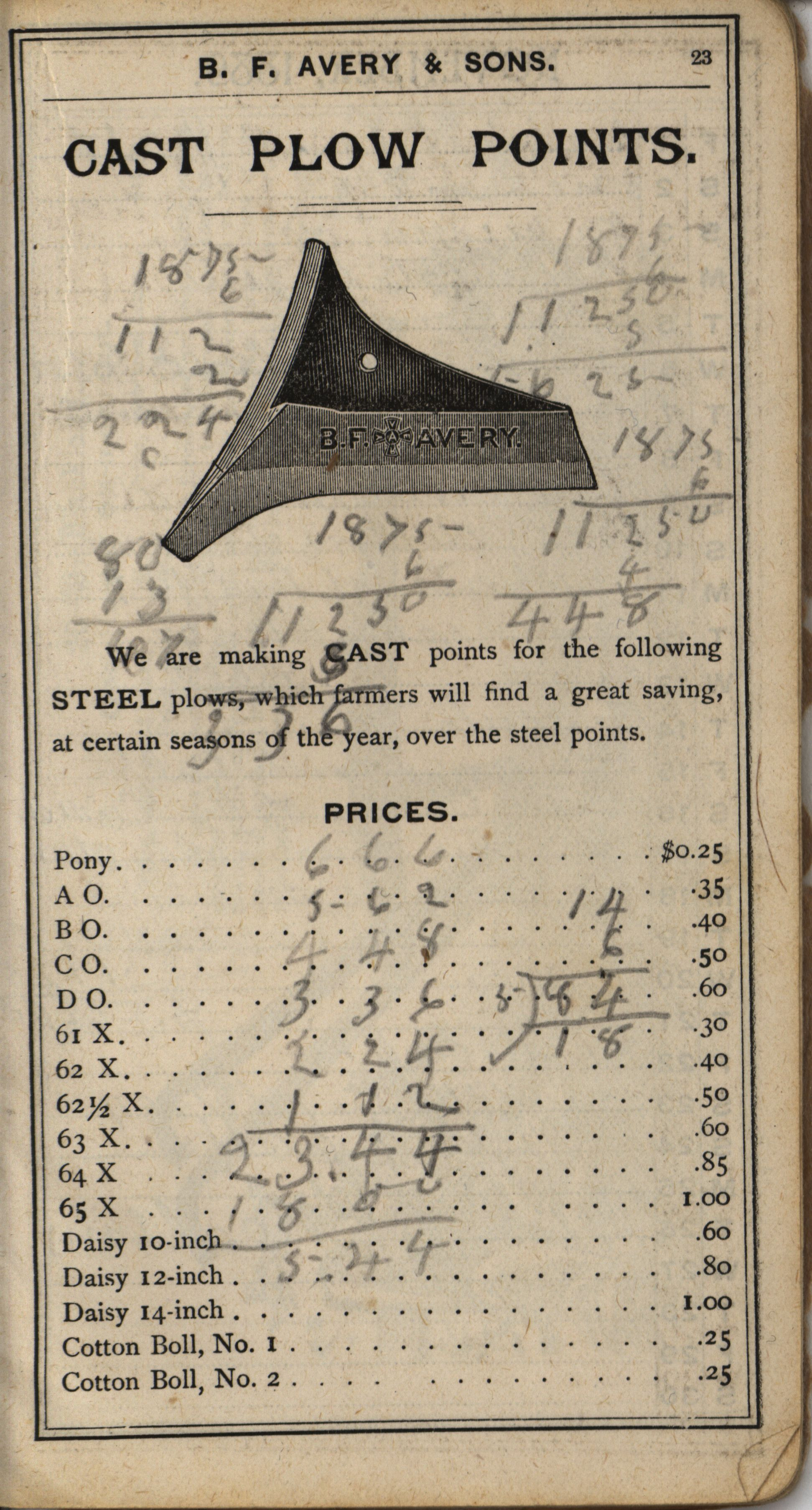 B. F. Avery and Sons, The Genuine Avery Plow catalog Item Info