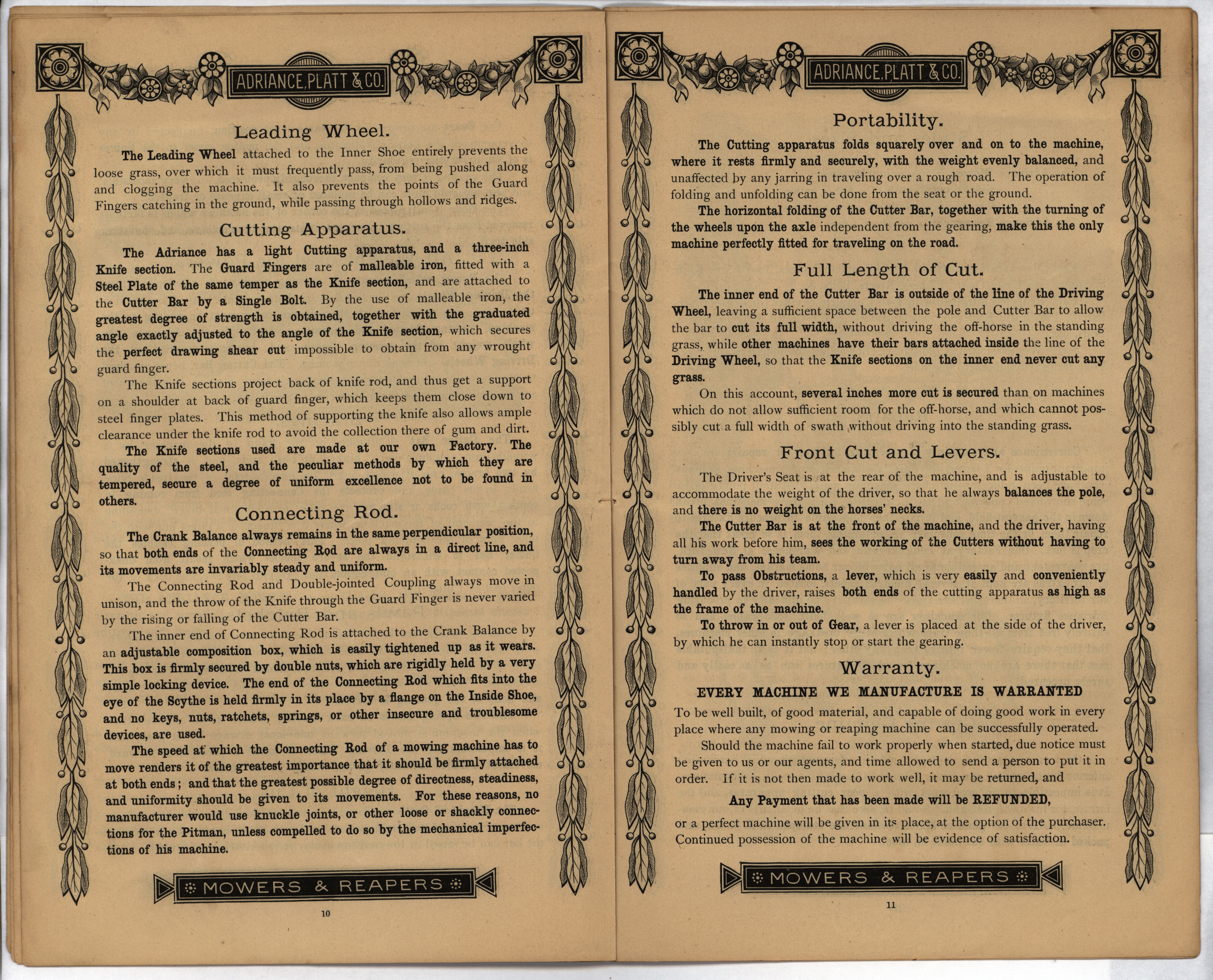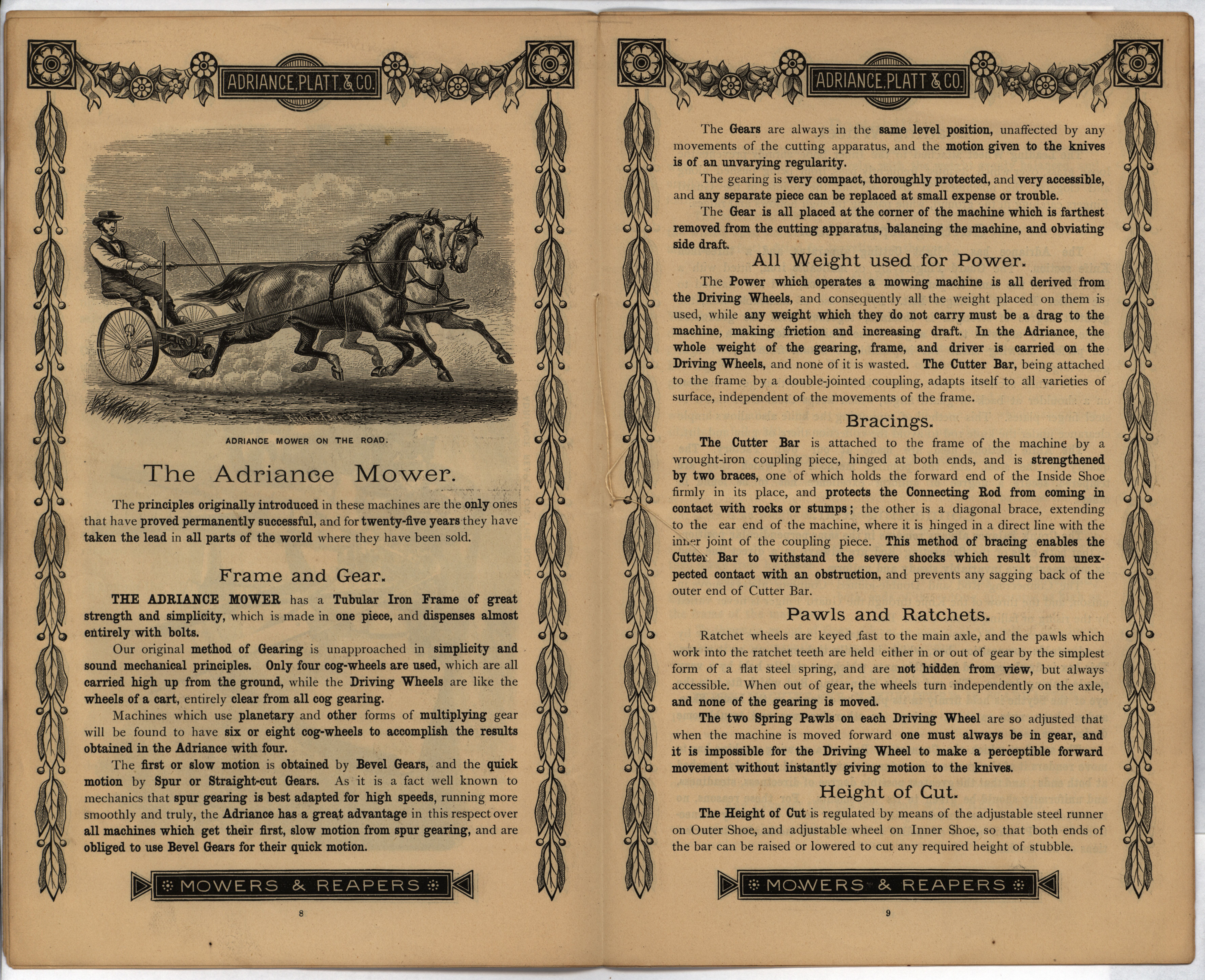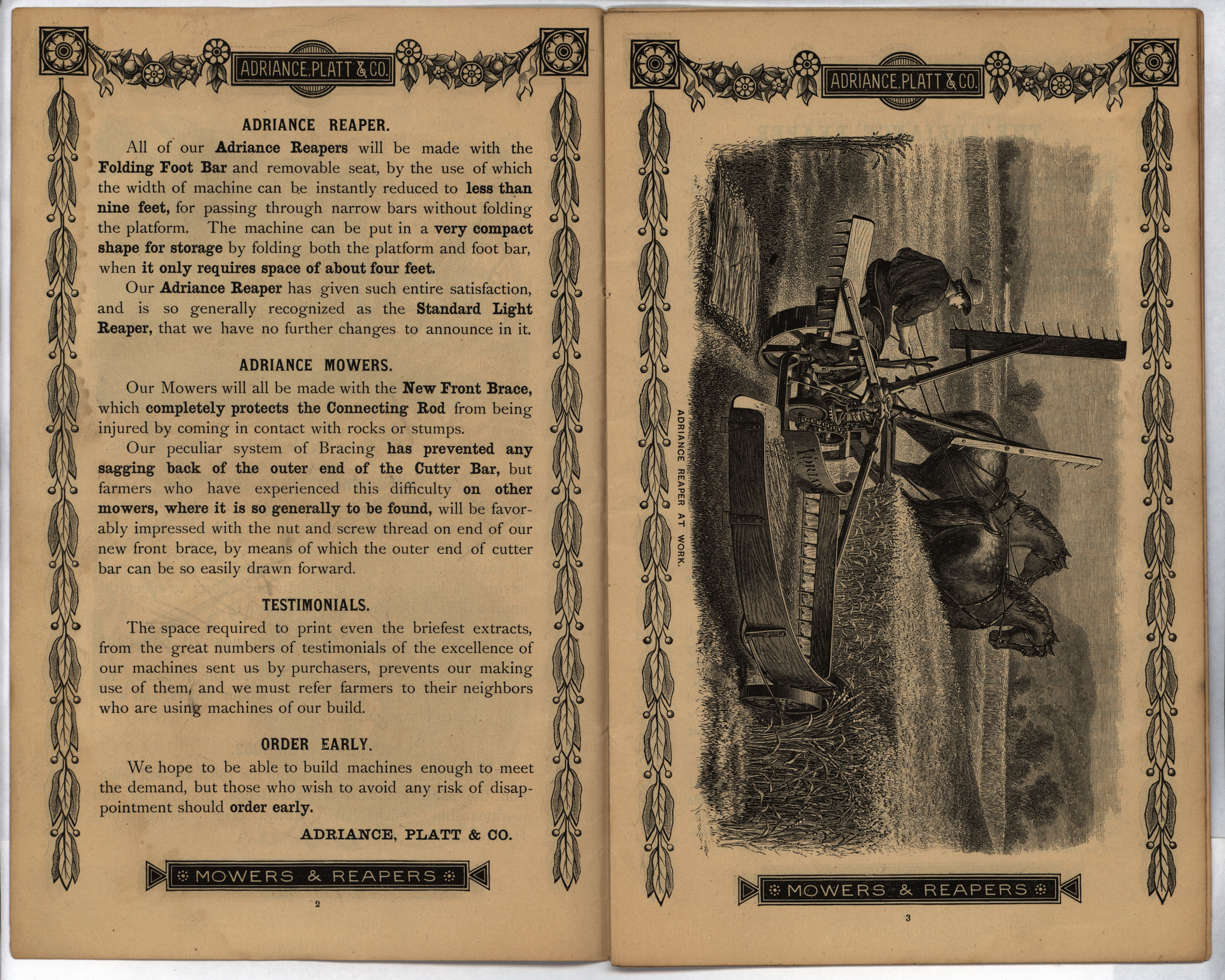 - "Adriance mower and Adriance reaper", Agricultural Machinery Literature Collection, Iowa State University Library Digital Collections