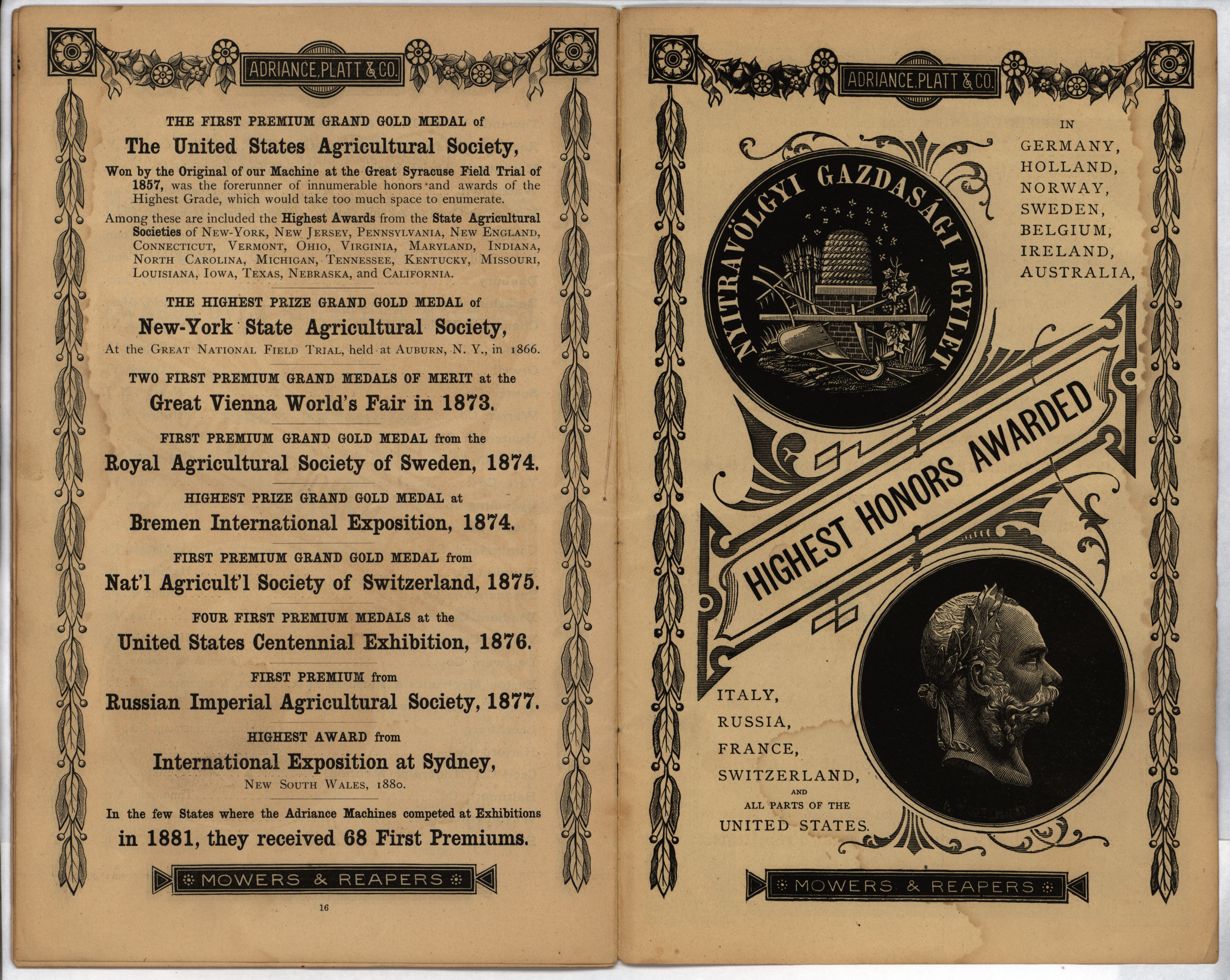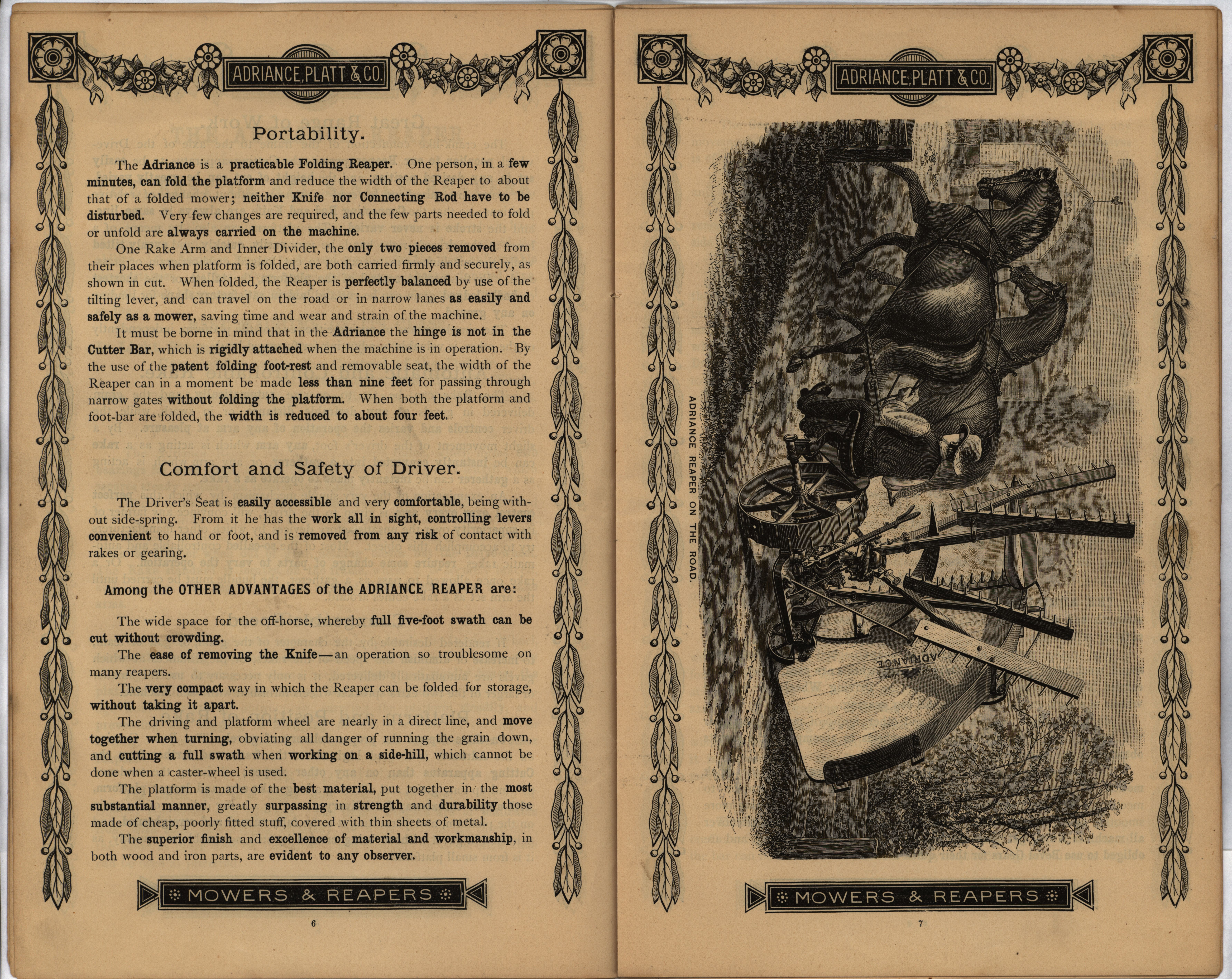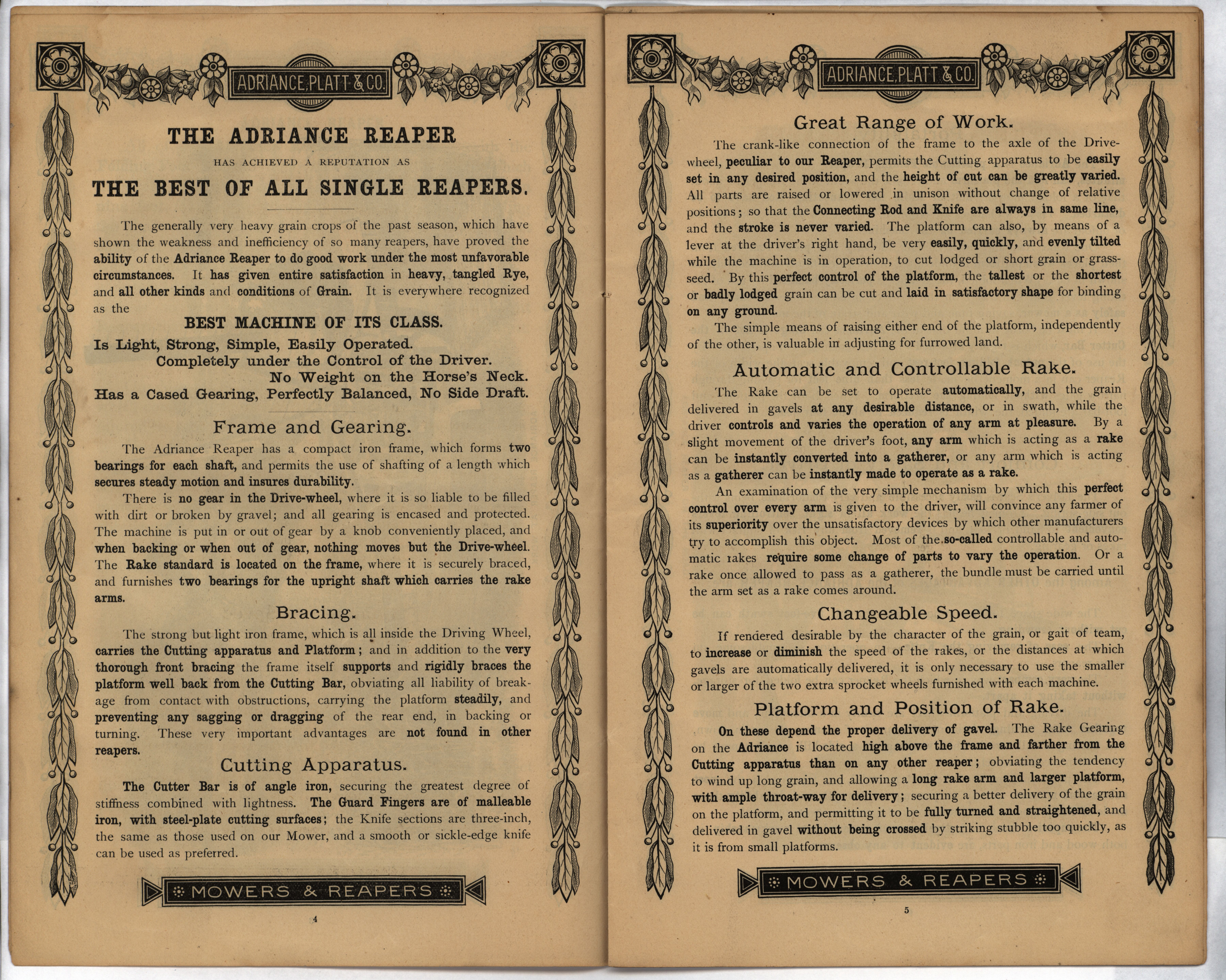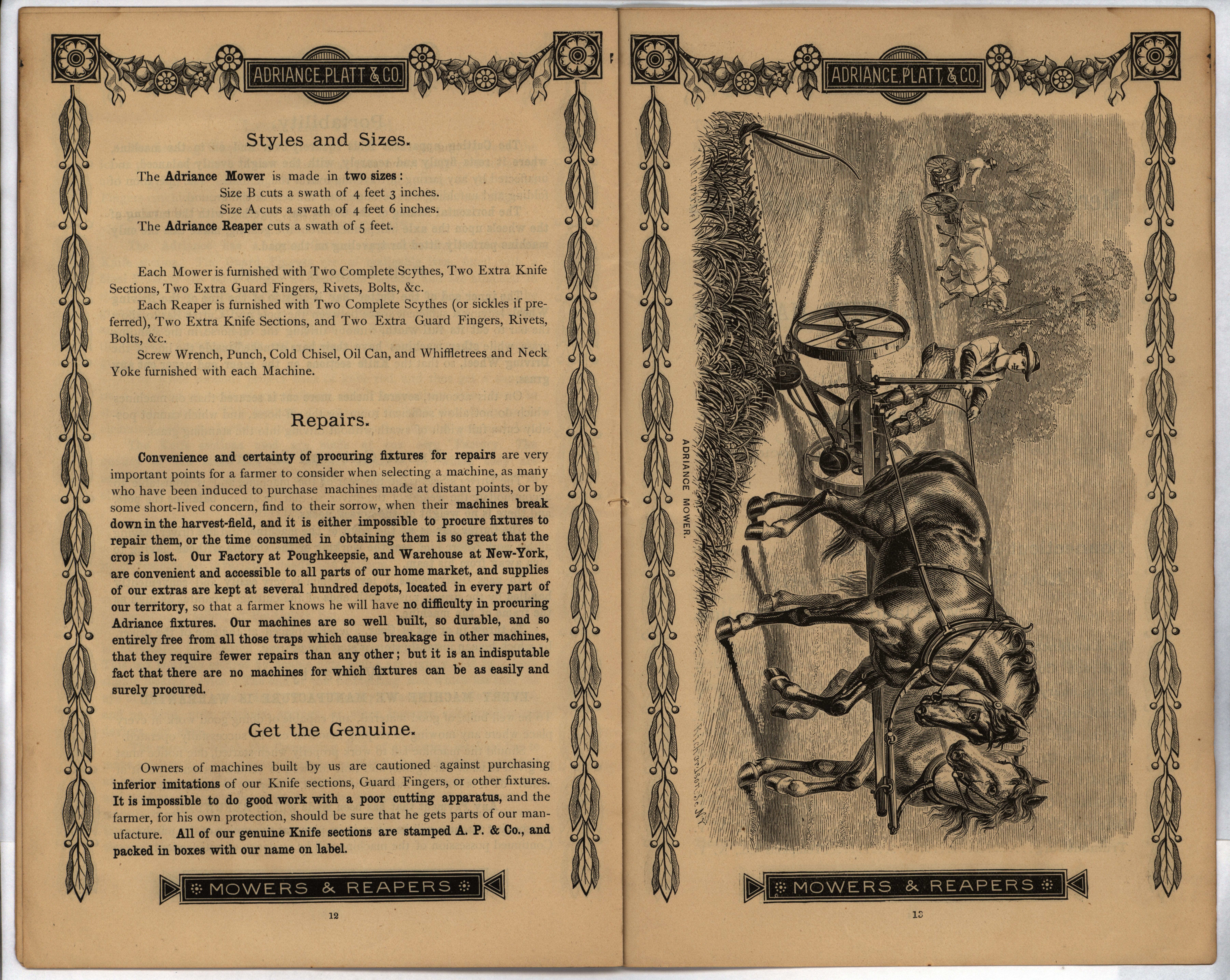 - "Adriance mower and Adriance reaper", Agricultural Machinery Literature Collection, Iowa State University Library Digital Collections