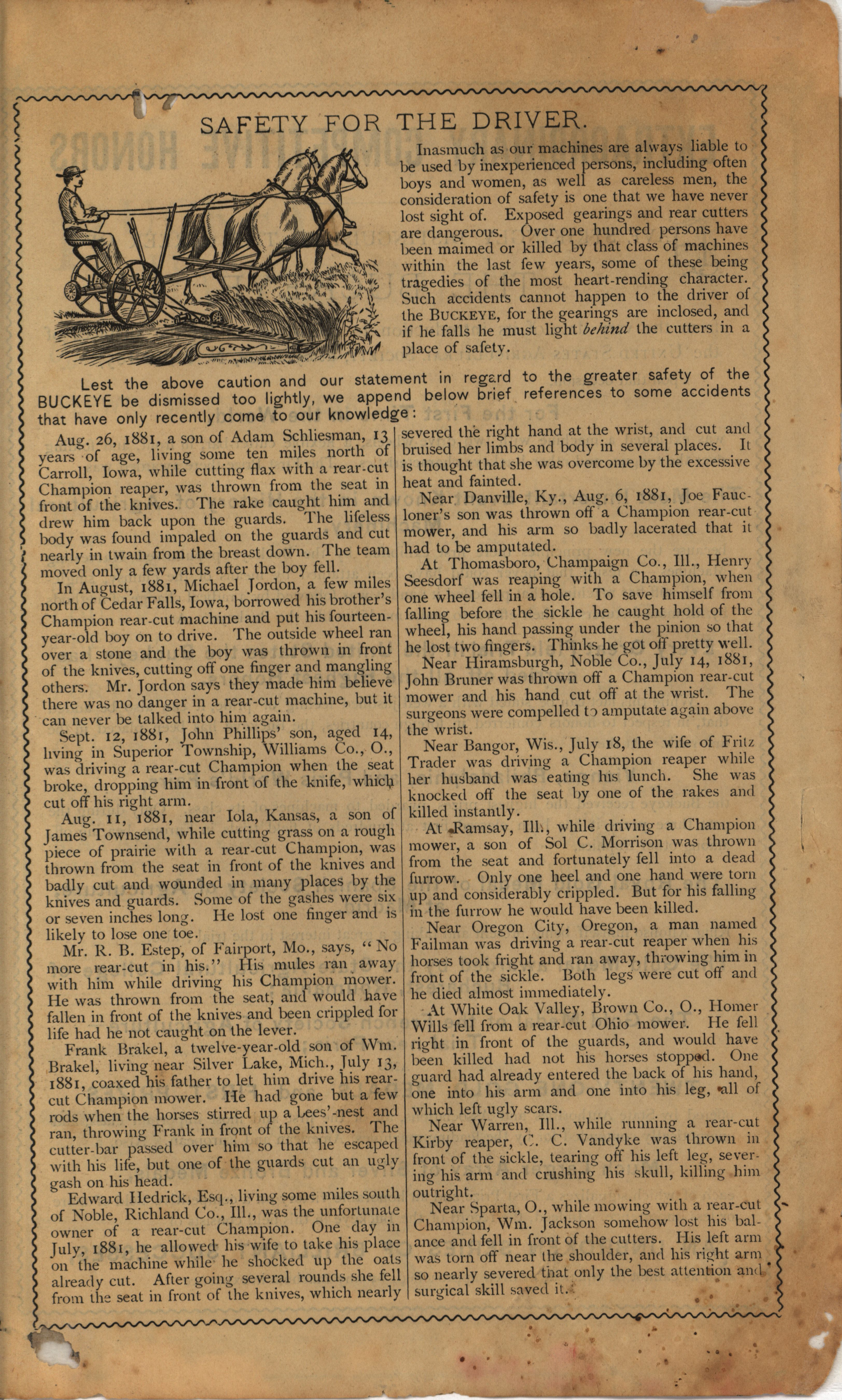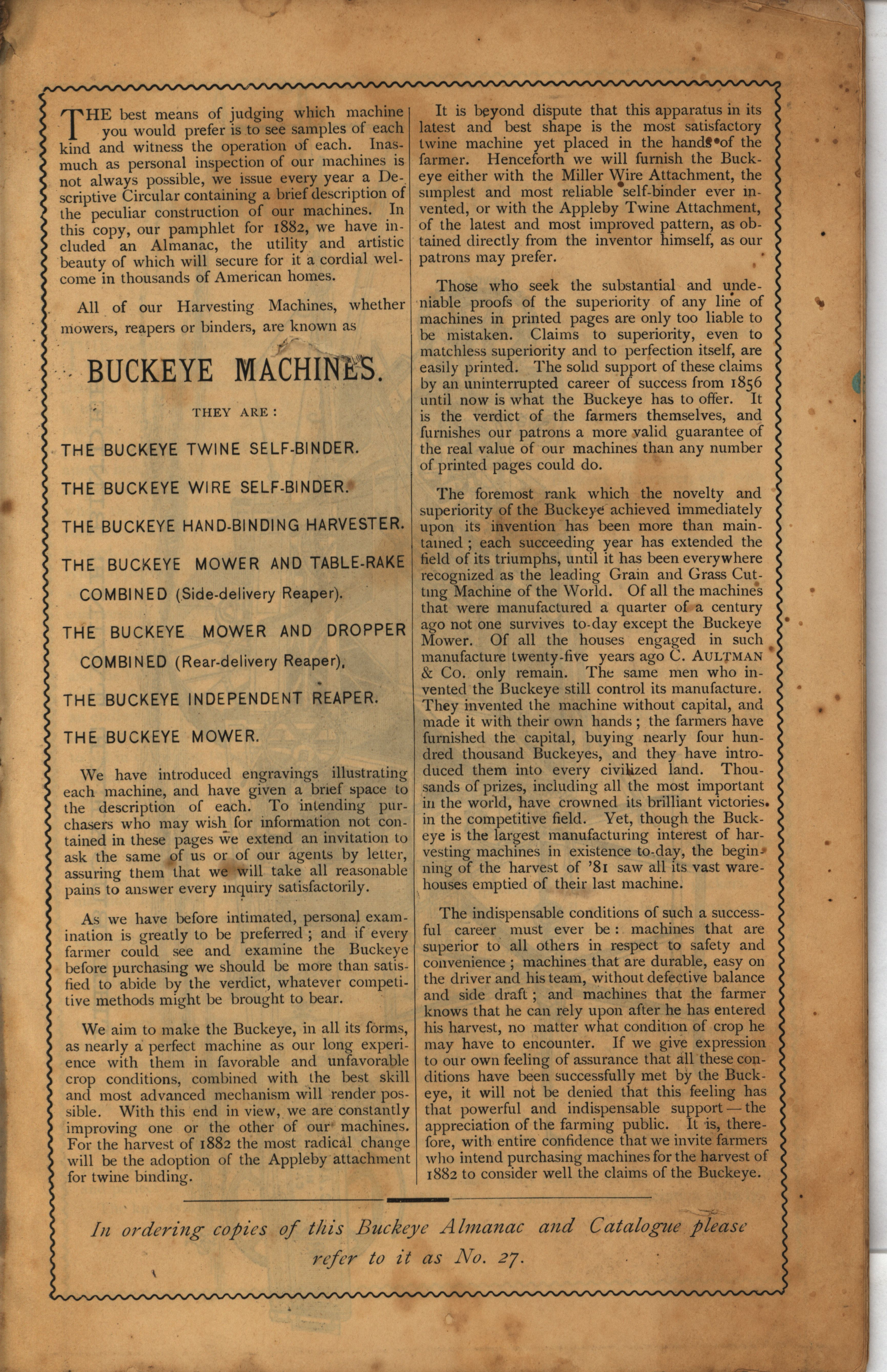 - "The Buckeye Annual 1882", Agricultural Machinery Literature Collection, Iowa State University Library Digital Collections
