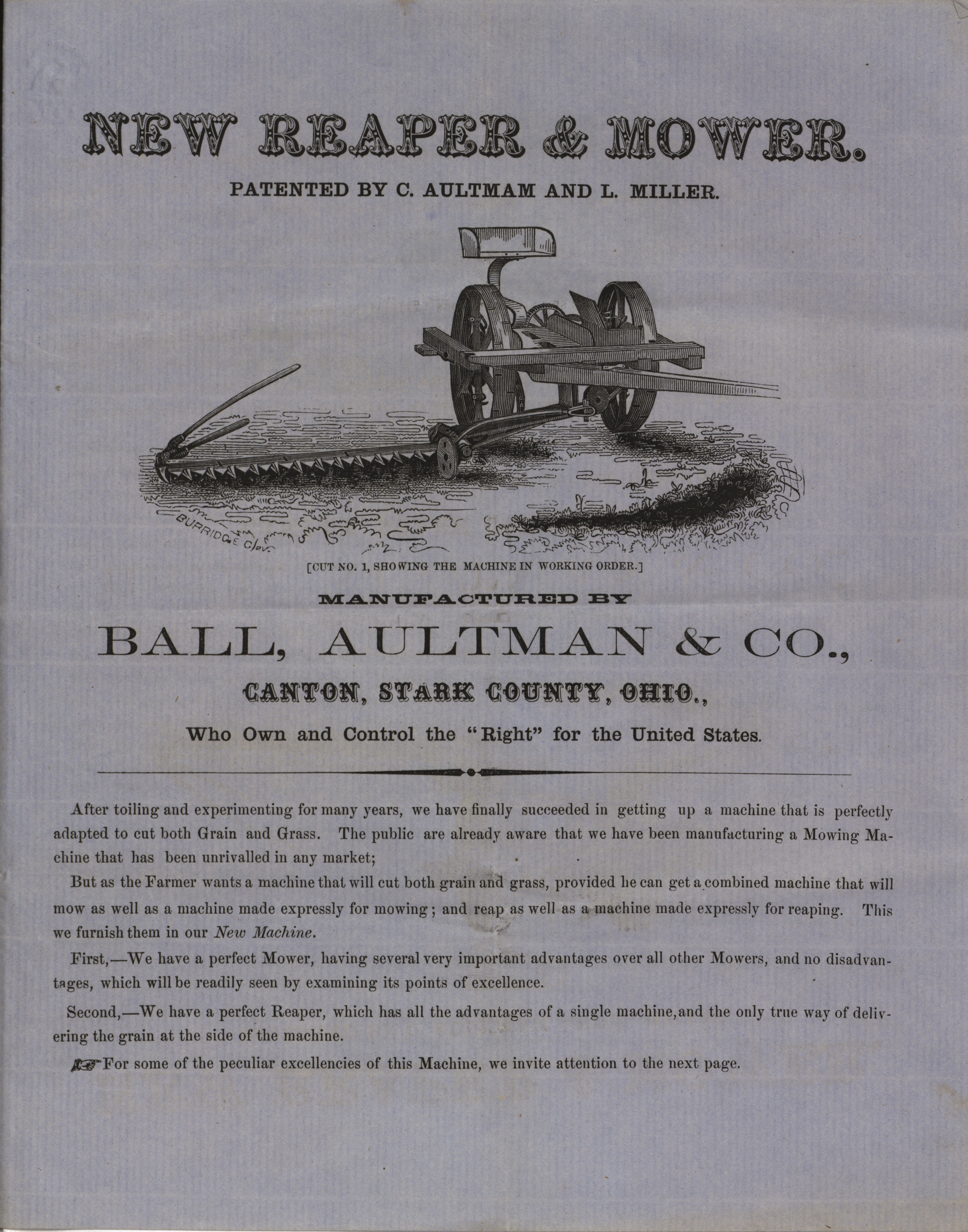 - "New reaper and mower, manufactured by Ball, Aultman & Co., advertisement", Agricultural Machinery Literature Collection, Iowa State University Library Digital Collections