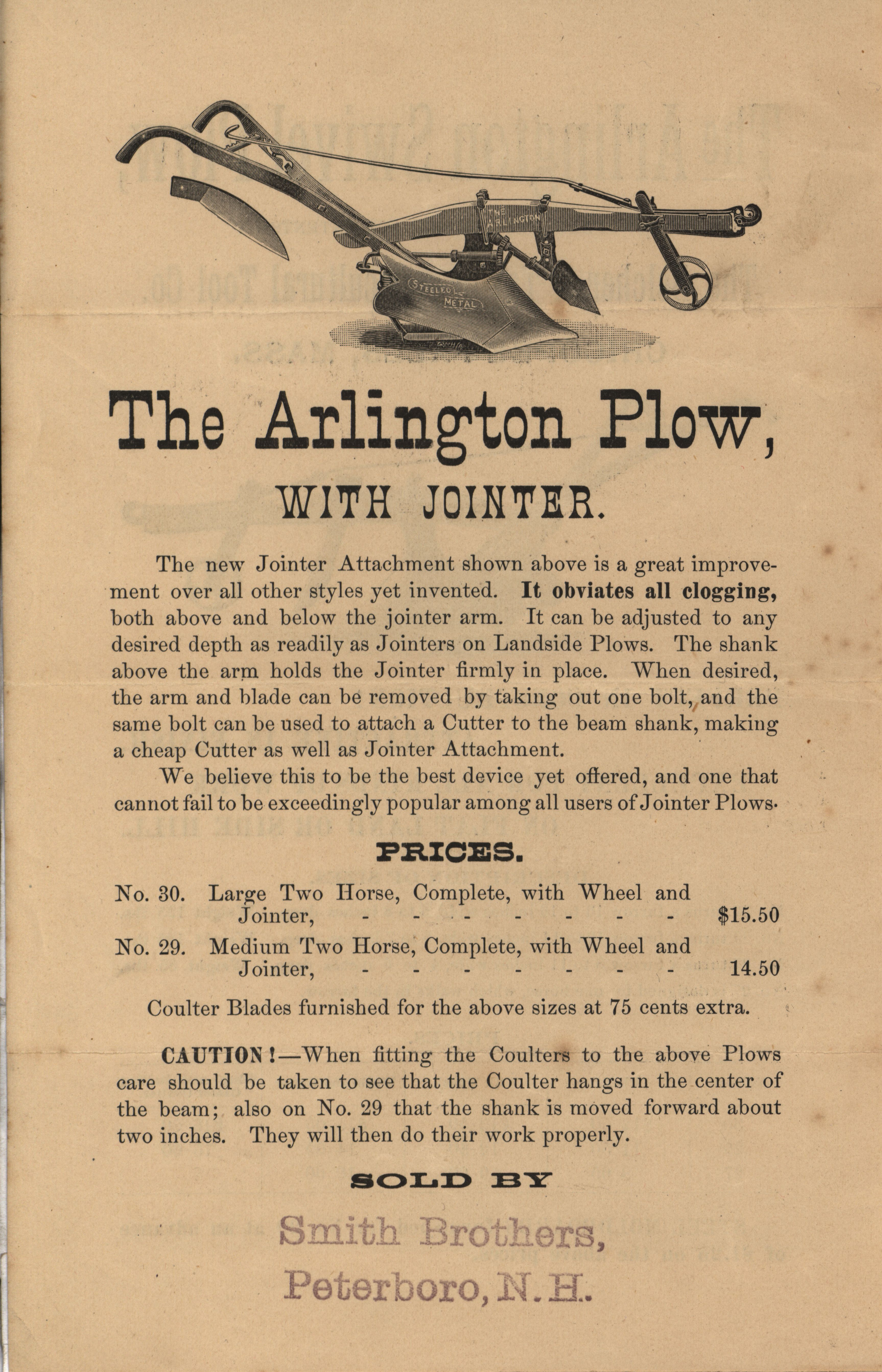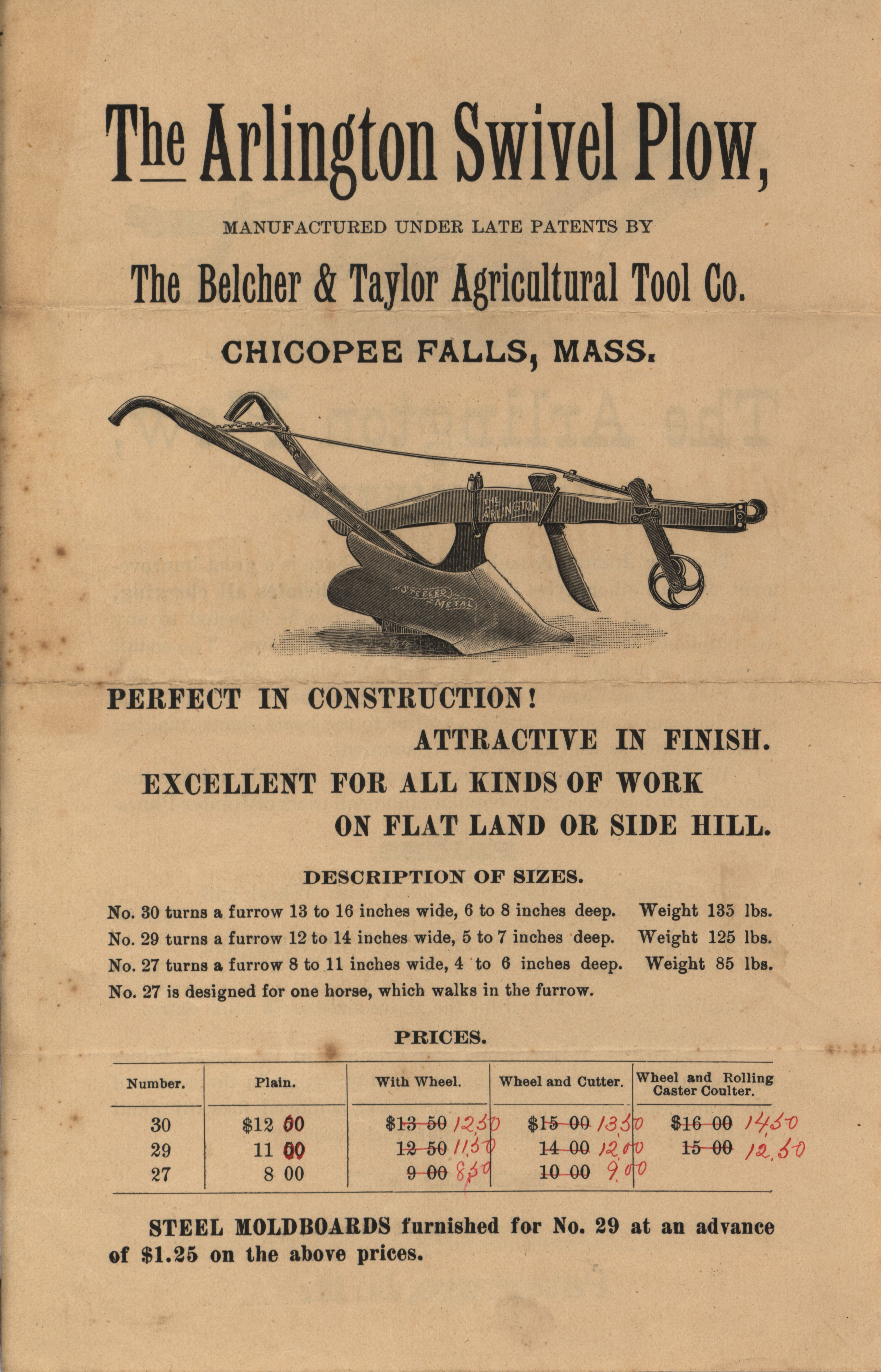 - "The Arlington Swivel Plow, manufactured under late patents by The Belcher & Taylor Agricultural Tool Co. advertisement", Agricultural Machinery Literature Collection, Iowa State University Library Digital Collections