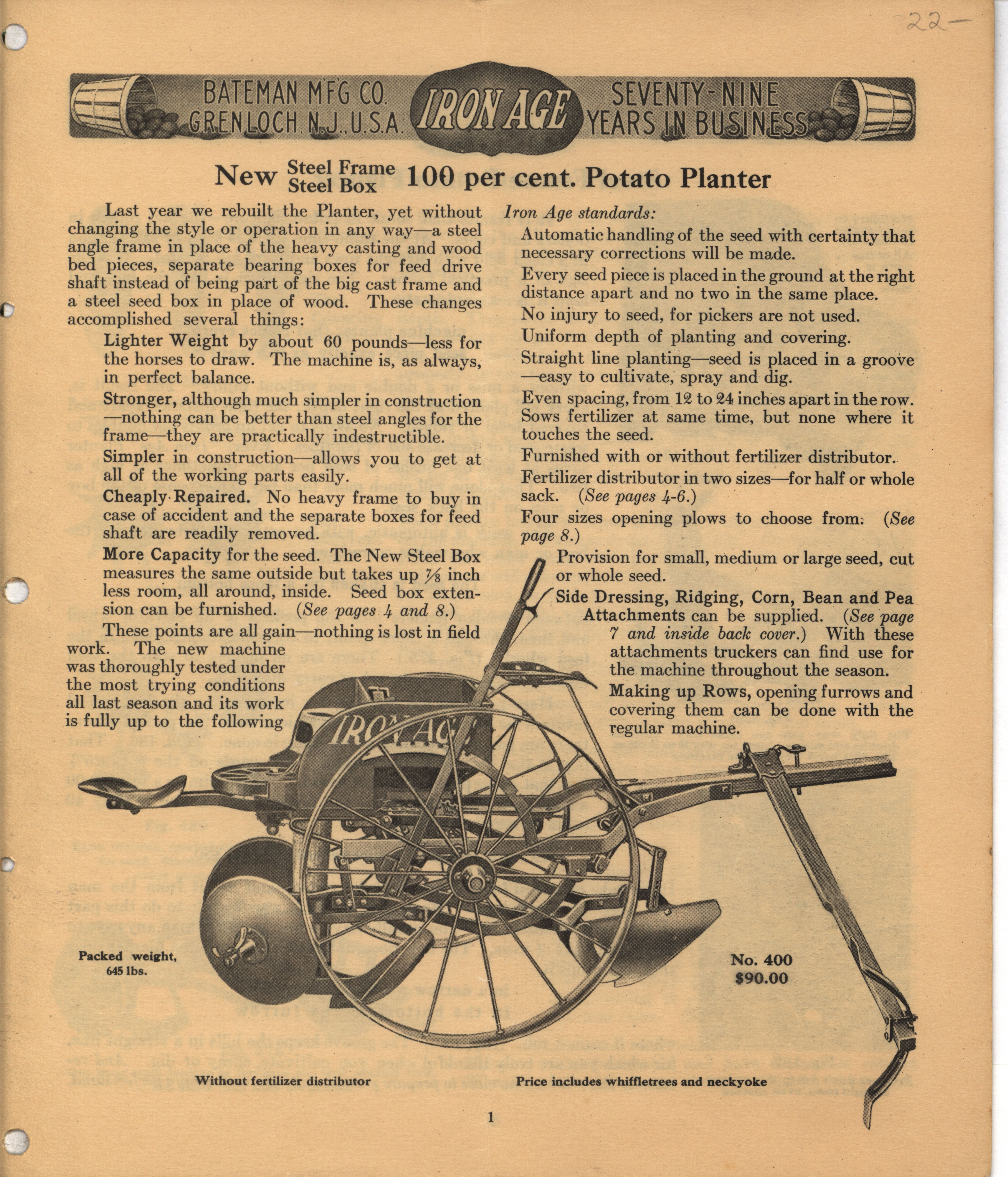- "Bateman Manufacturing Company catalog", Agricultural Machinery Literature Collection, Iowa State University Library Digital Collections