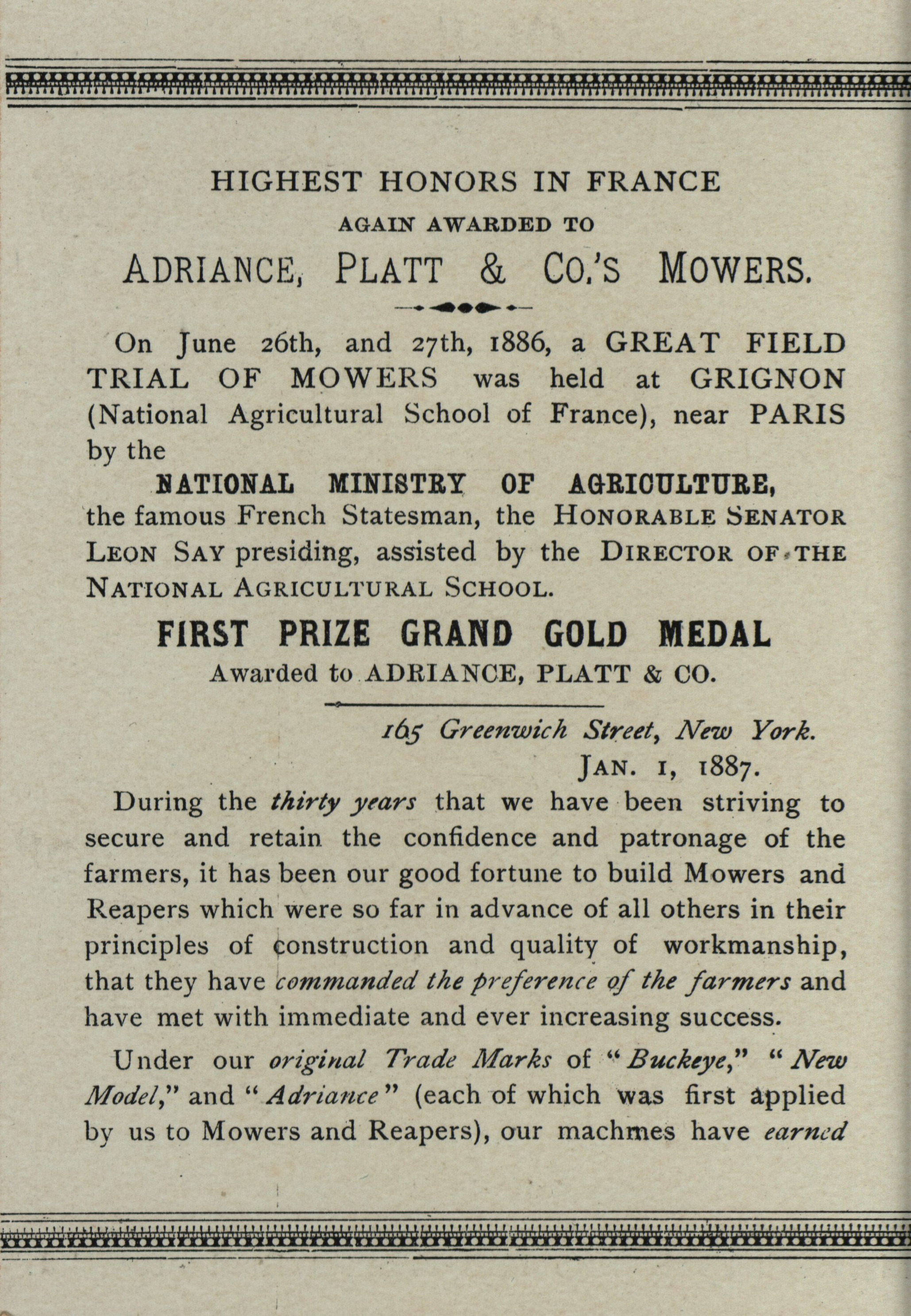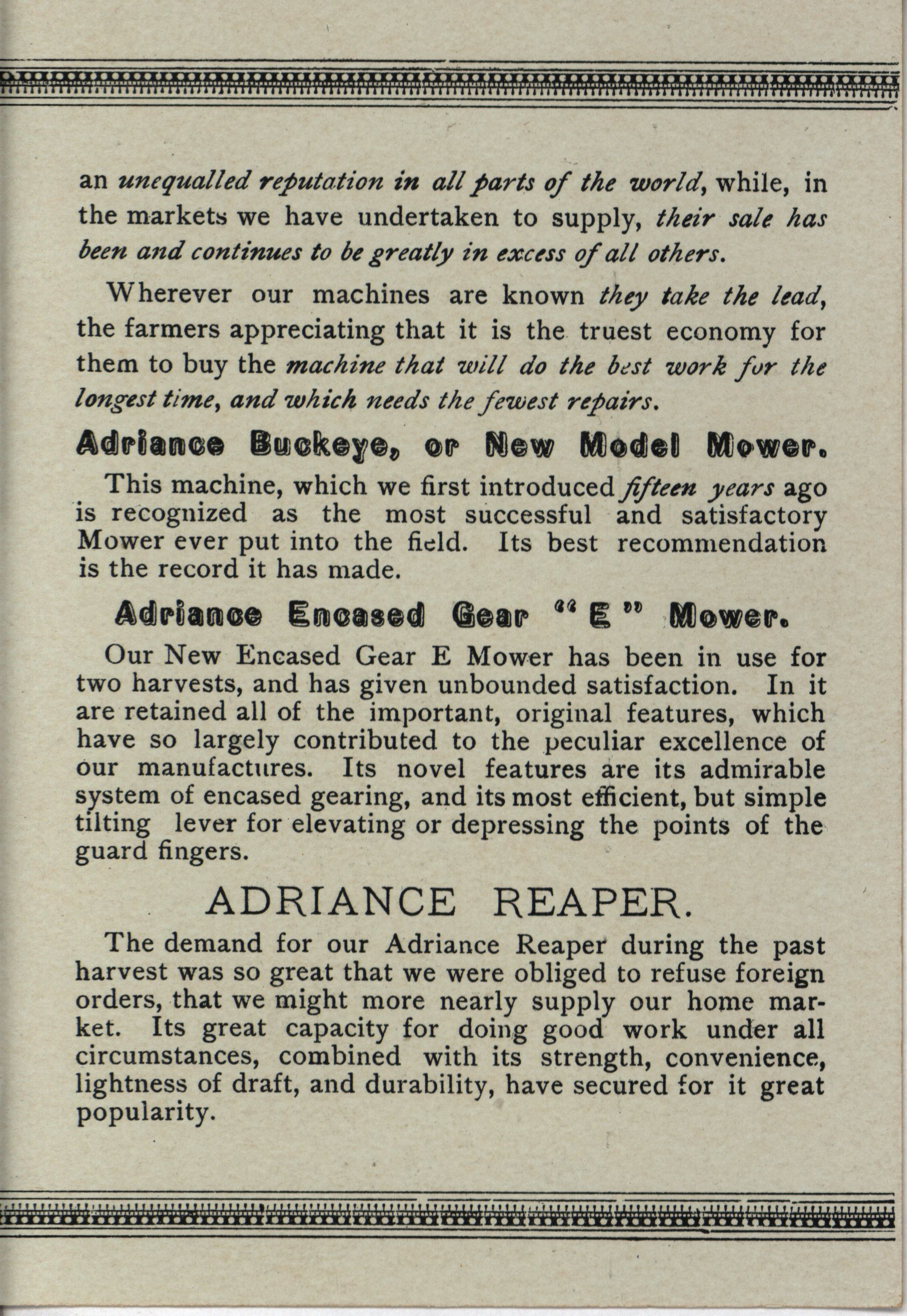 - "Adriance, Platt & Co. Buckeye works mowers and reapers", Agricultural Machinery Literature Collection, Iowa State University Library Digital Collections