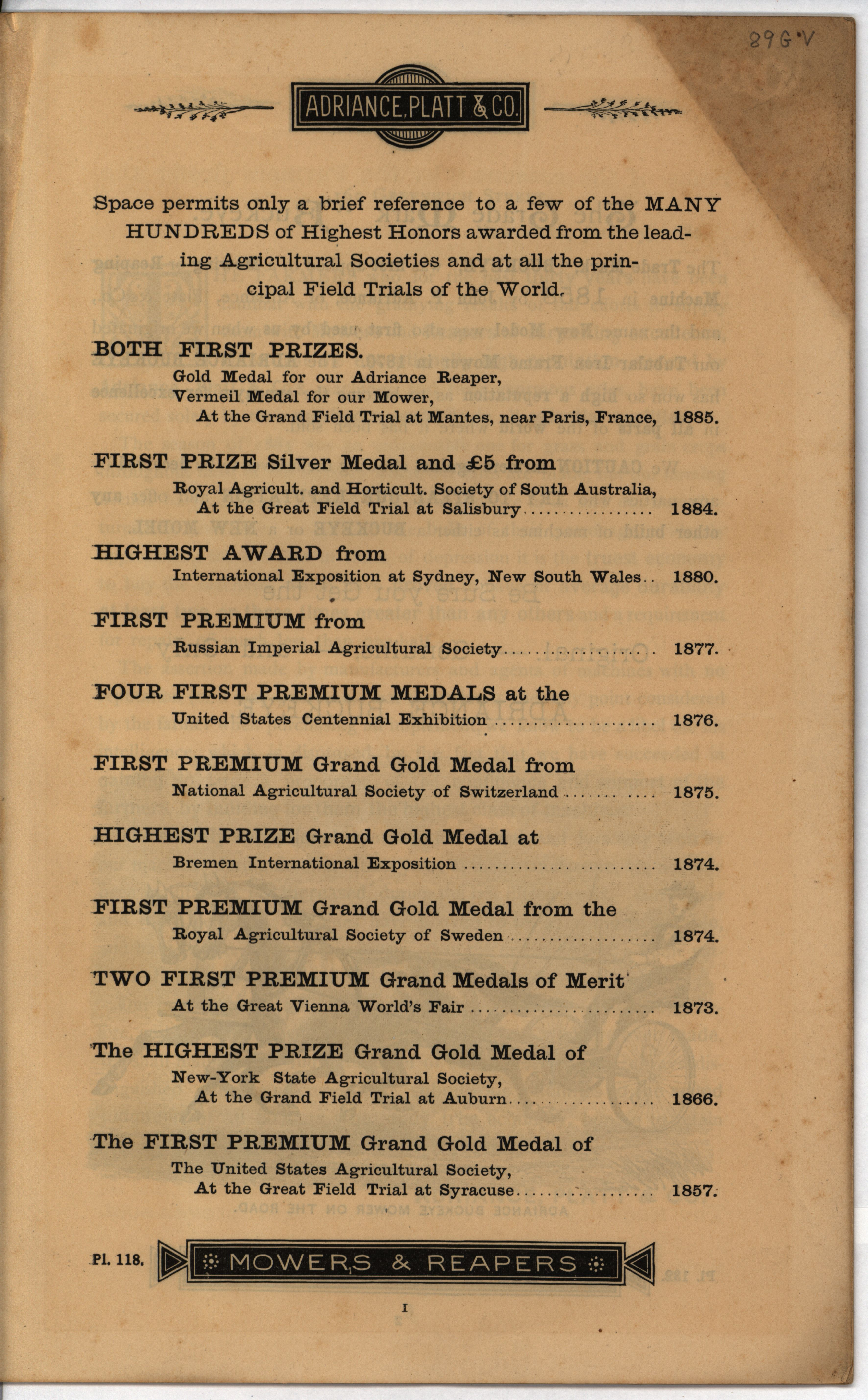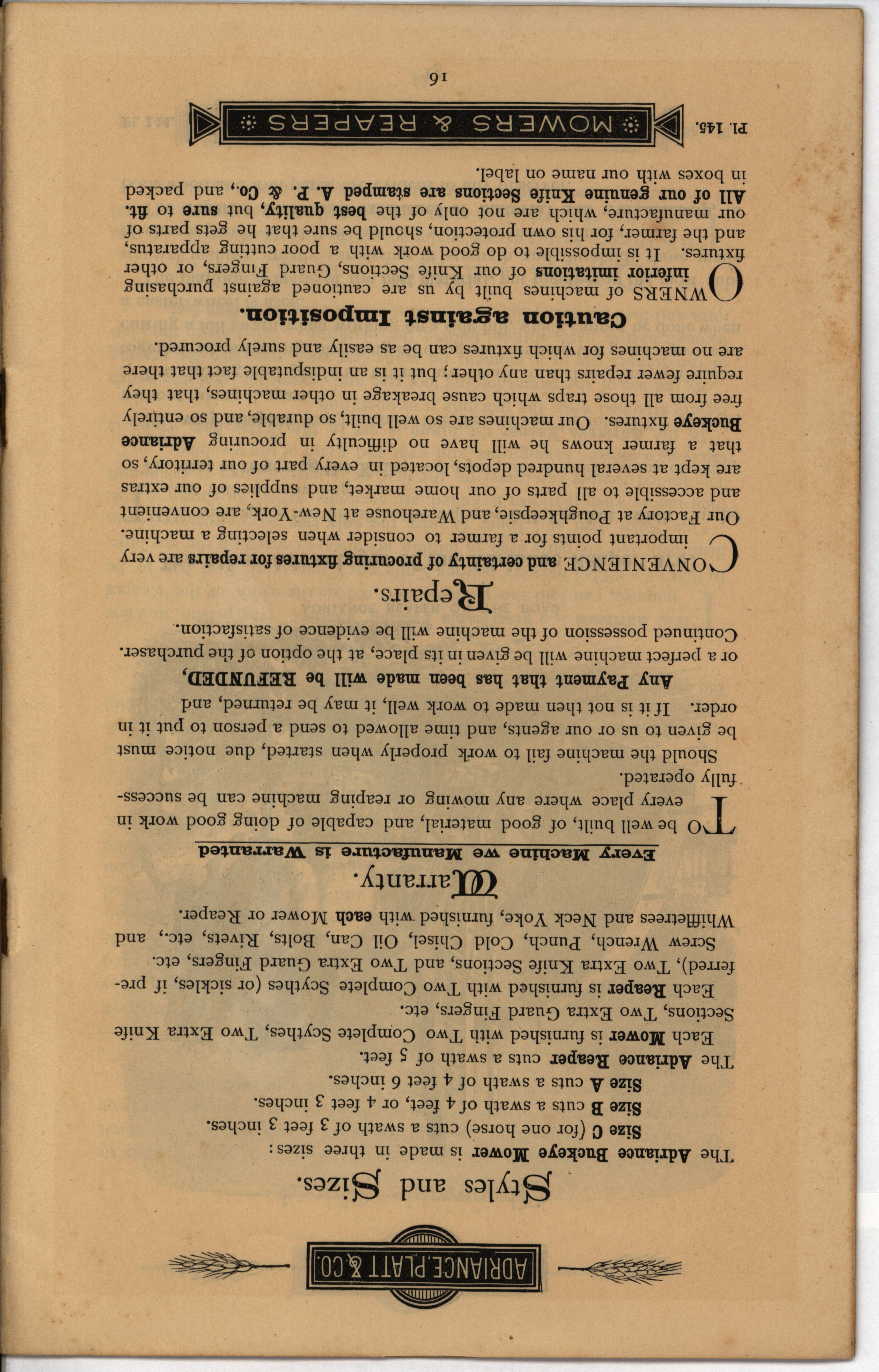 - "Adriance, Platt & Co. mowers and reapers", Agricultural Machinery Literature Collection, Iowa State University Library Digital Collections