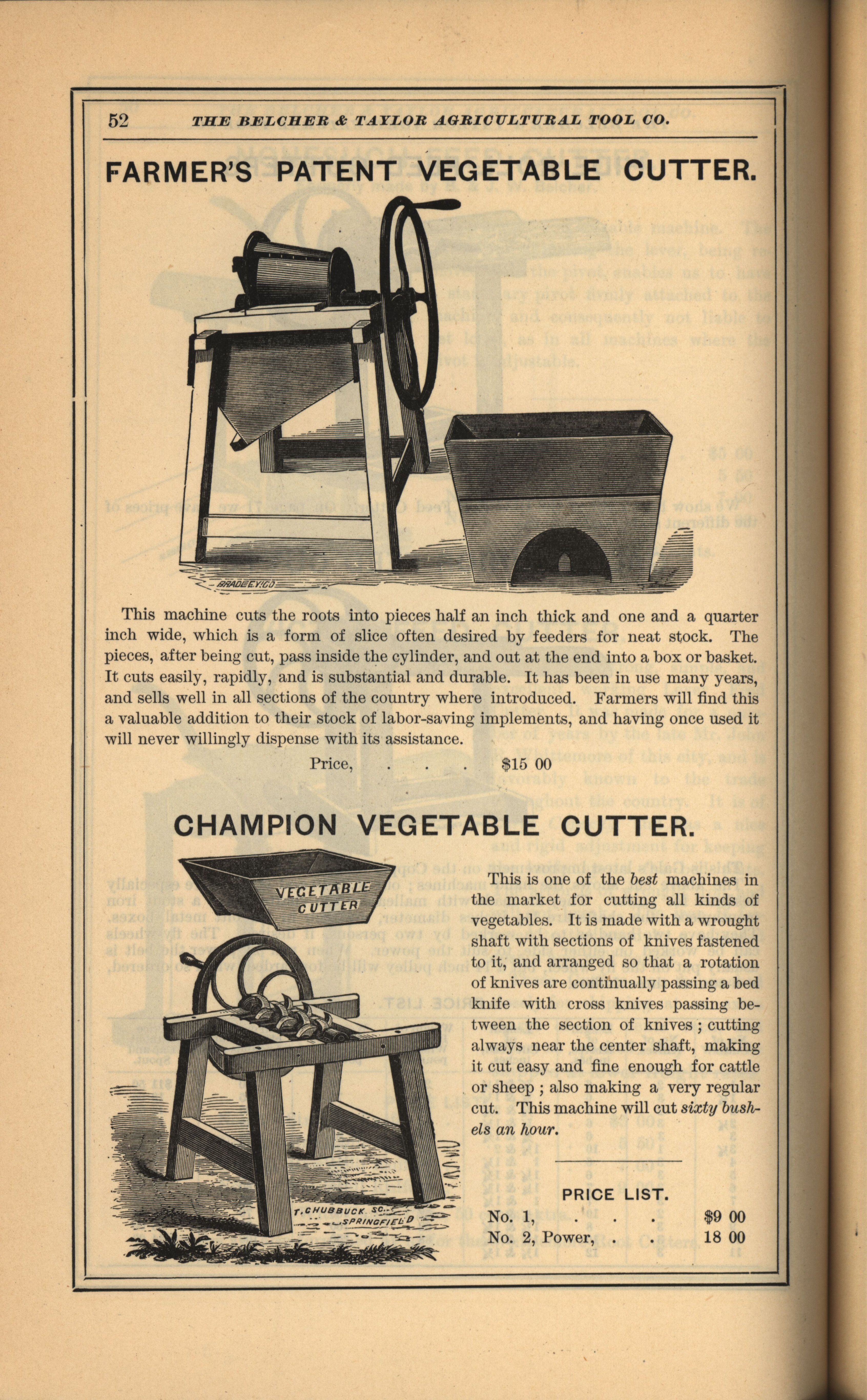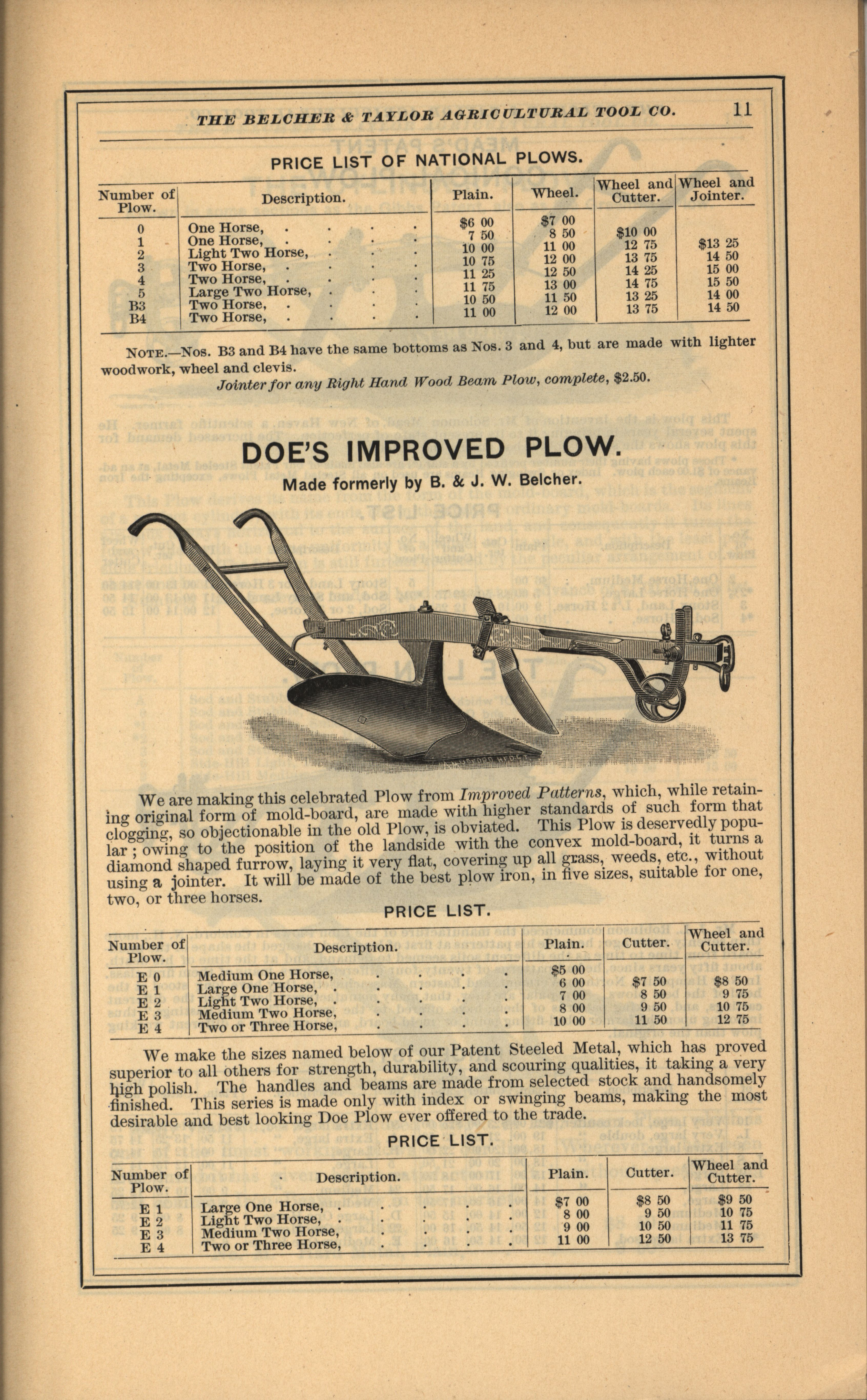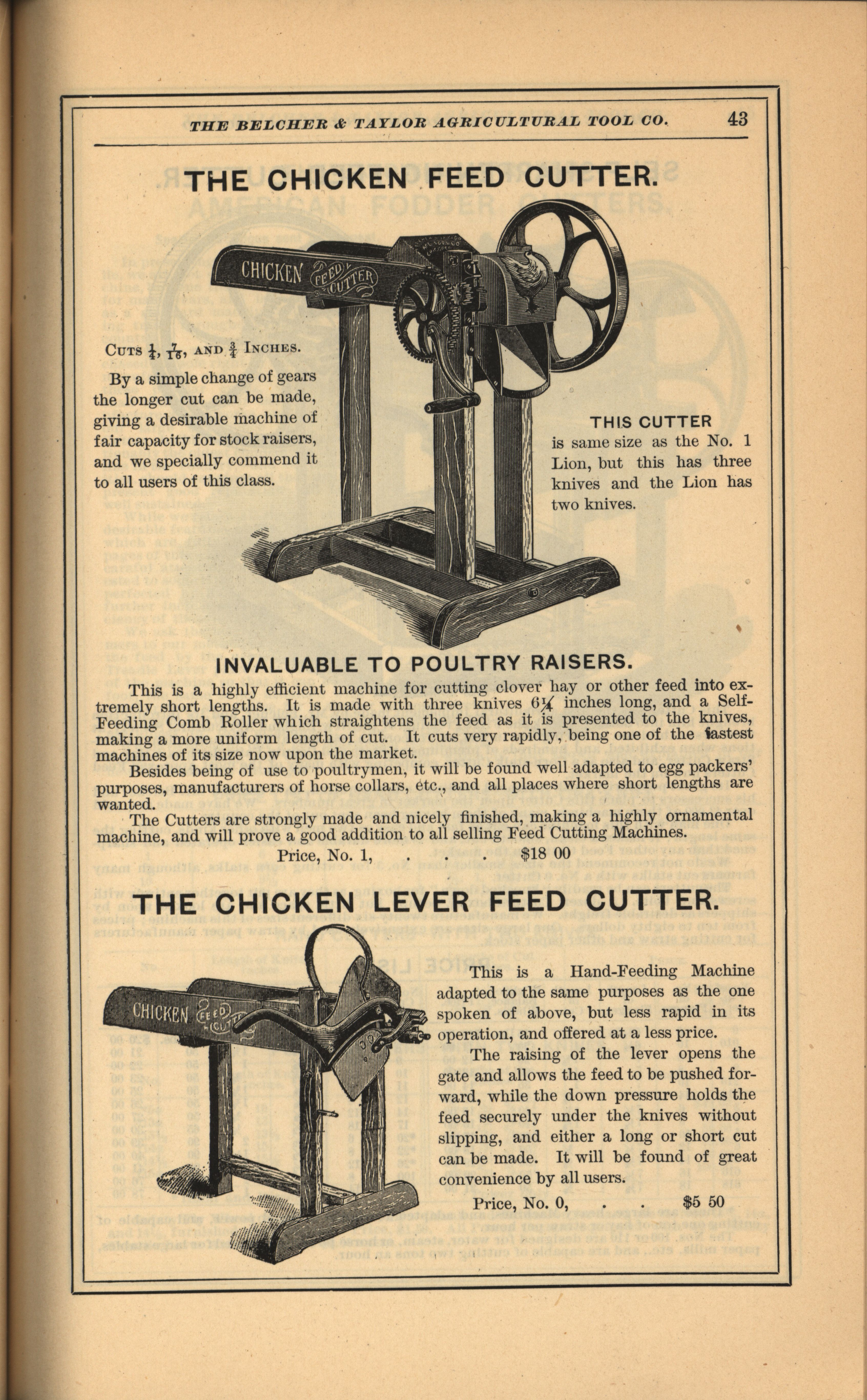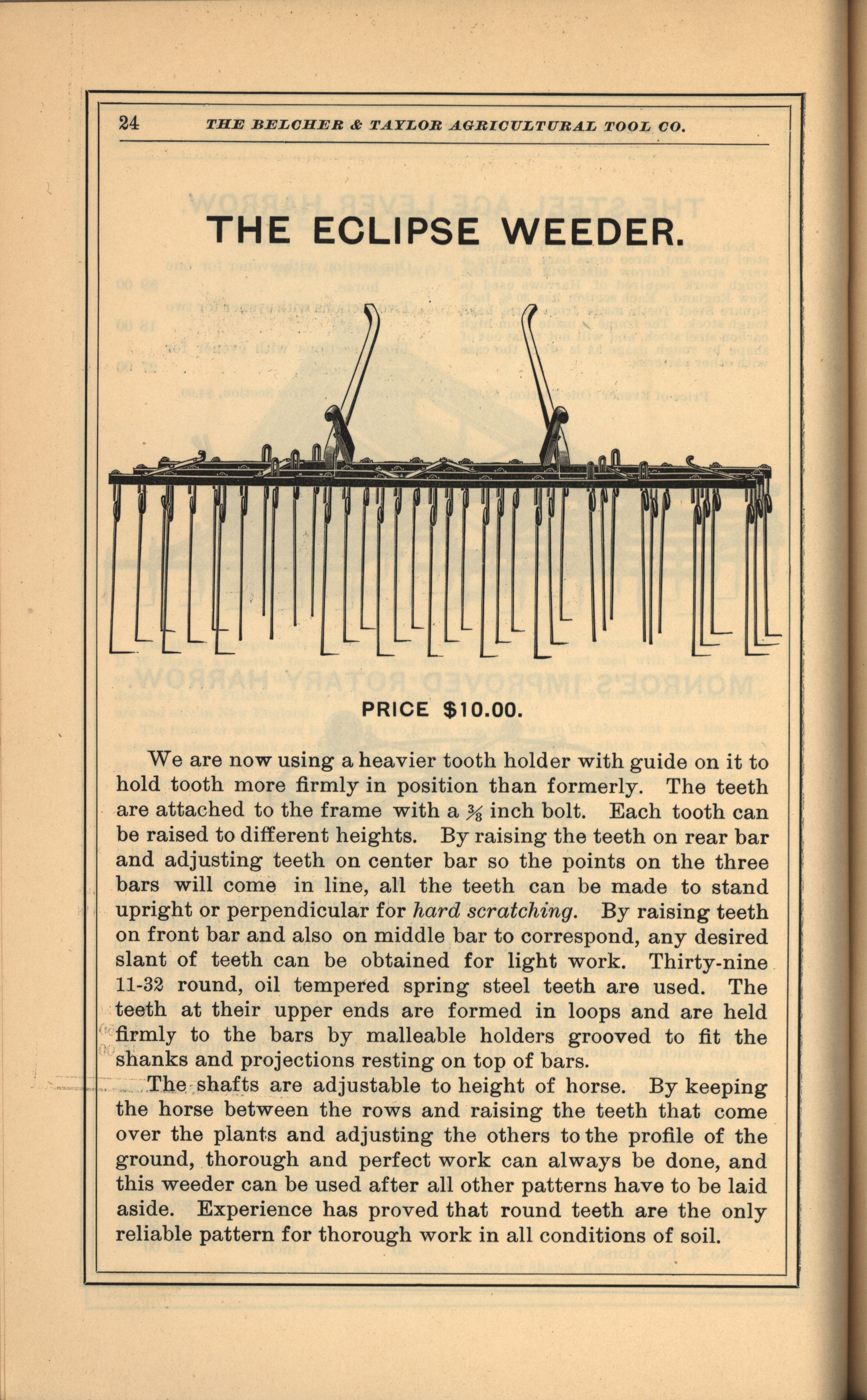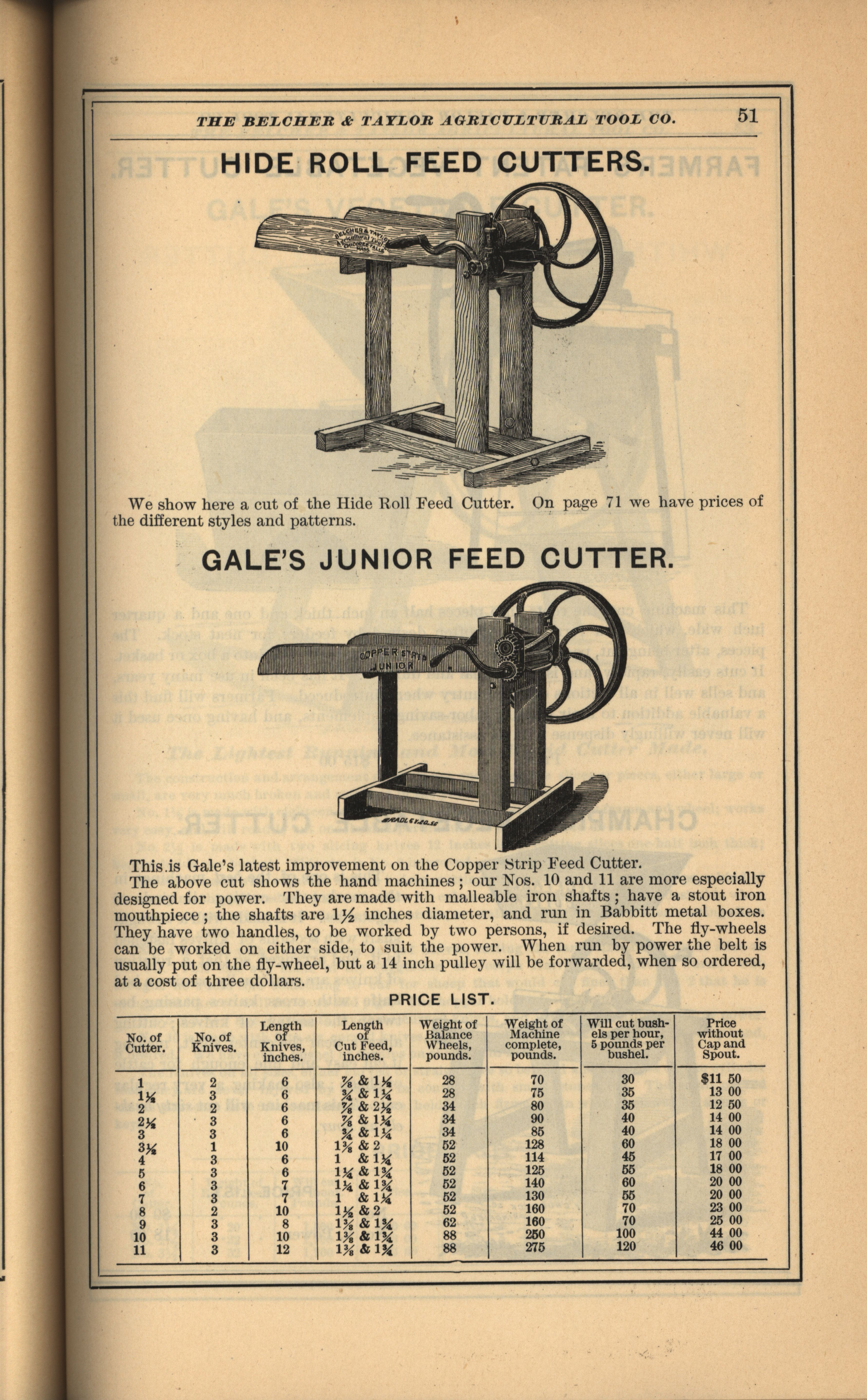 - Catalog describing agricultural products offered by the Belcher and Taylor Agricultural Tool Company, includes illustrations.