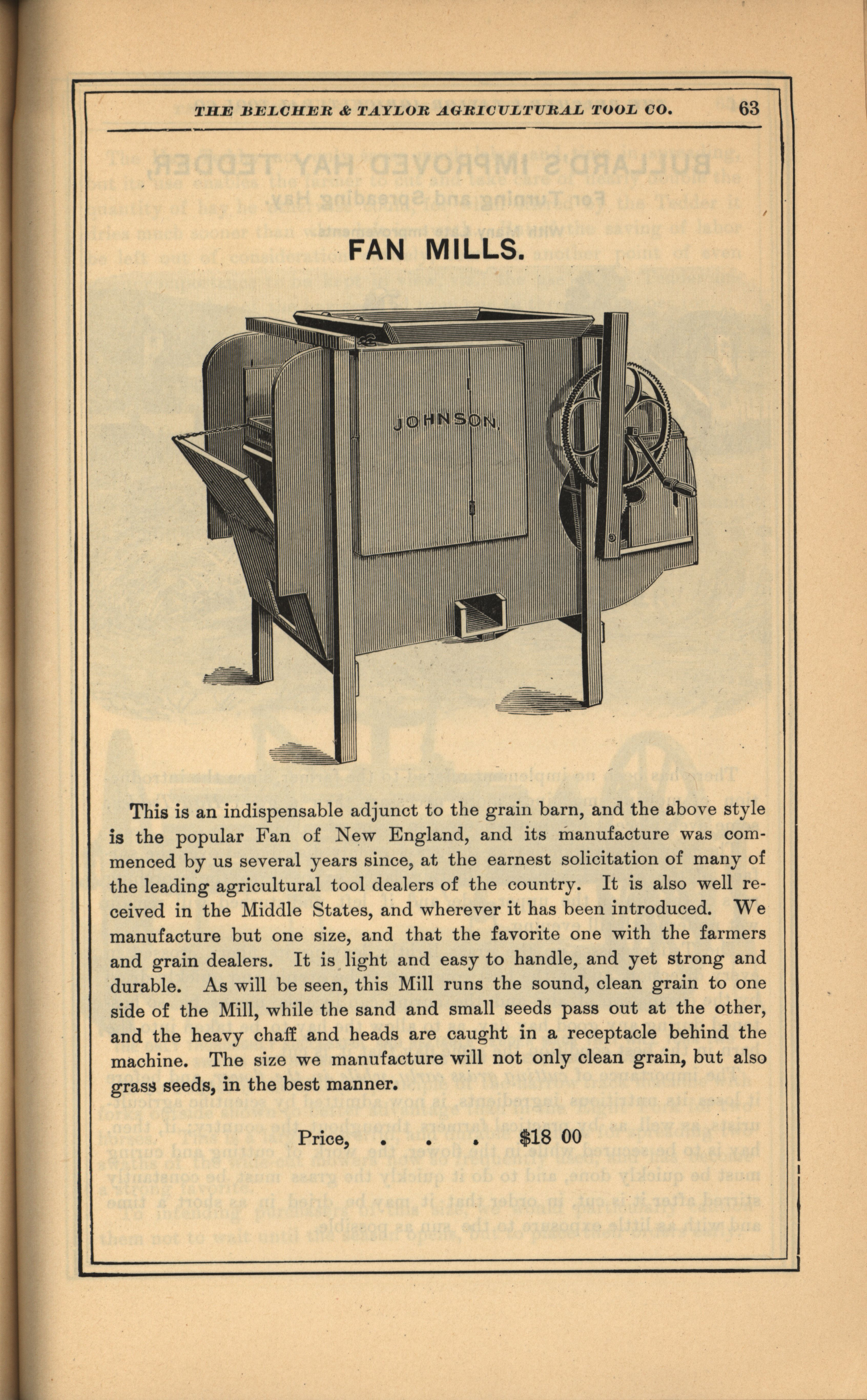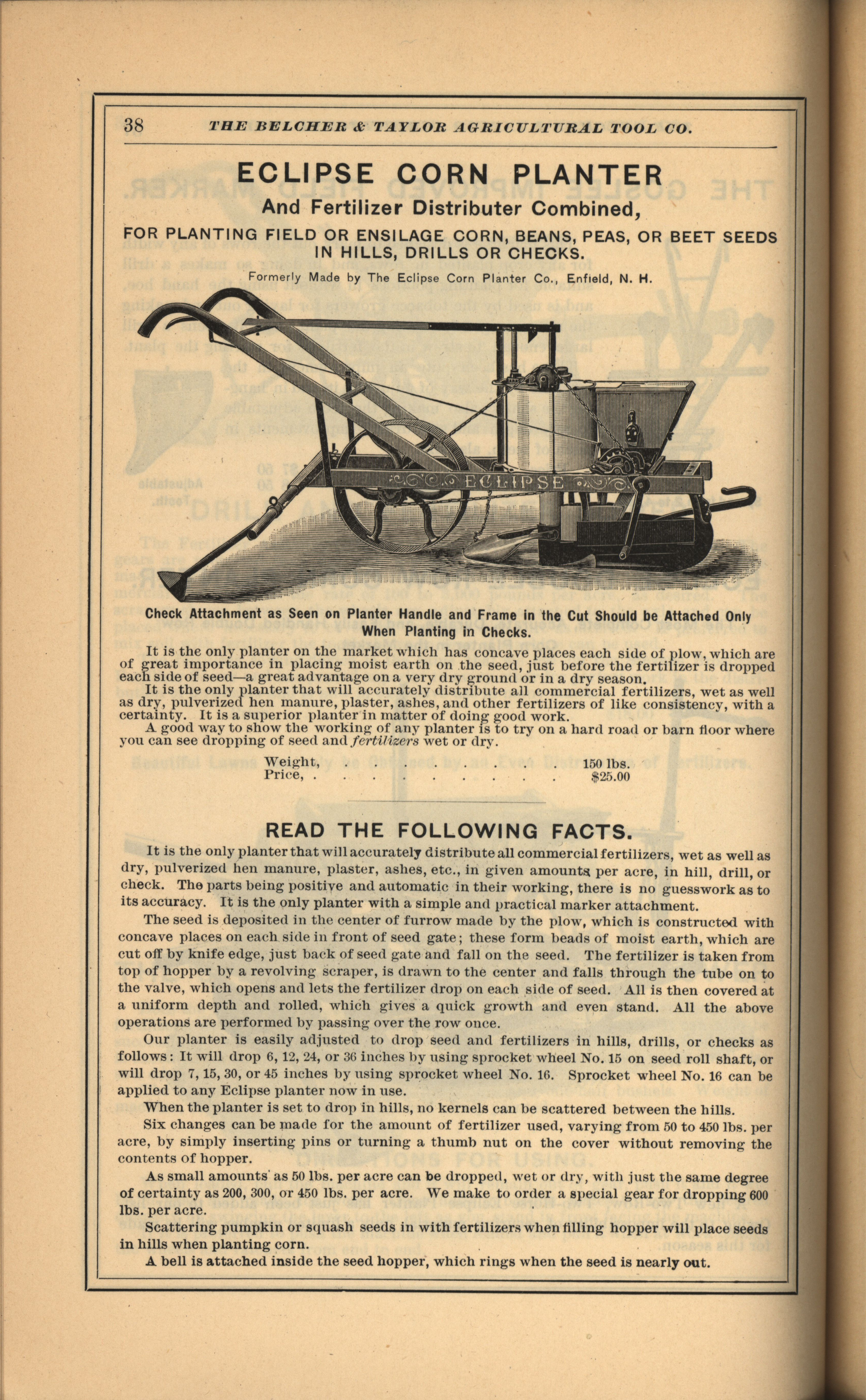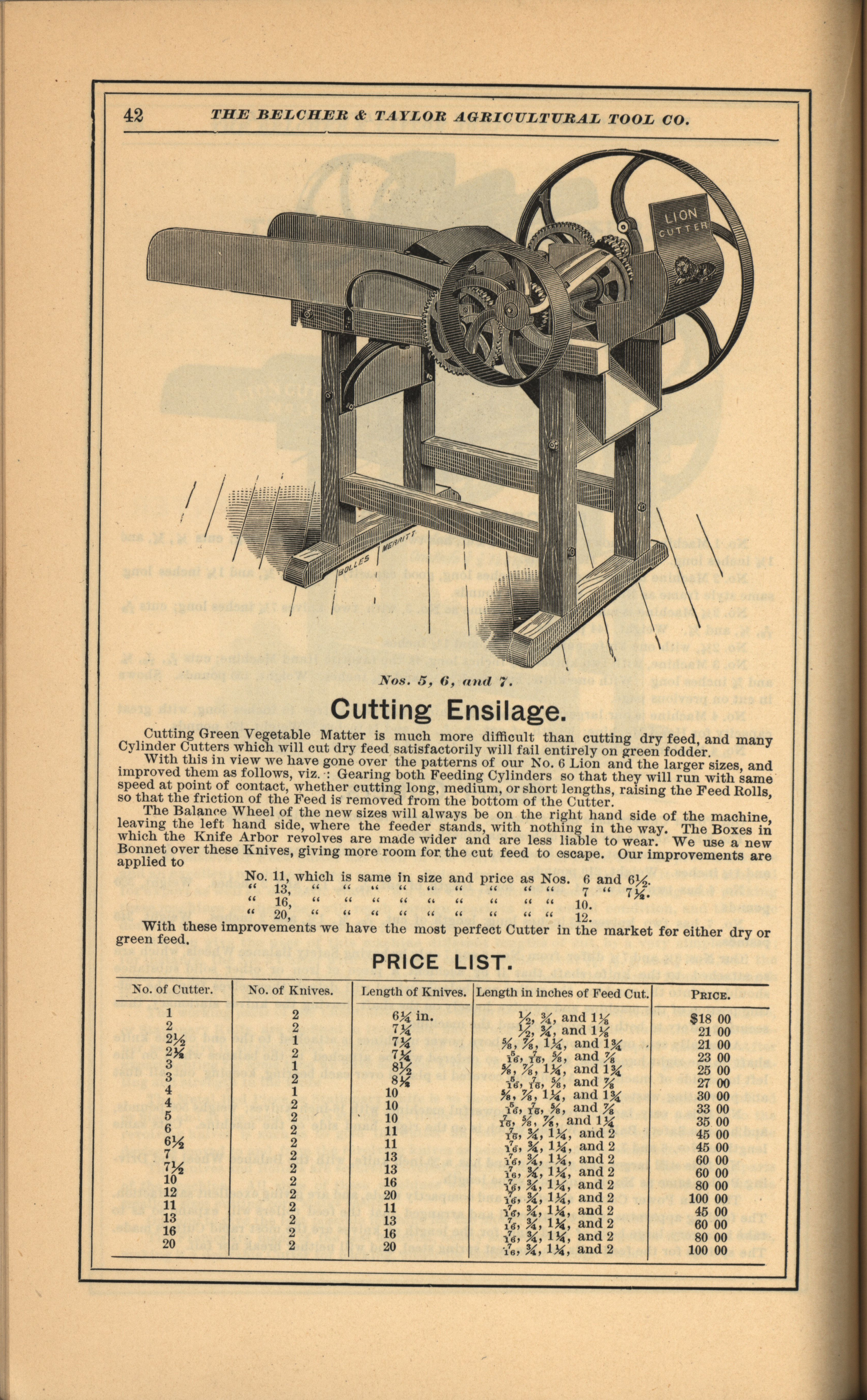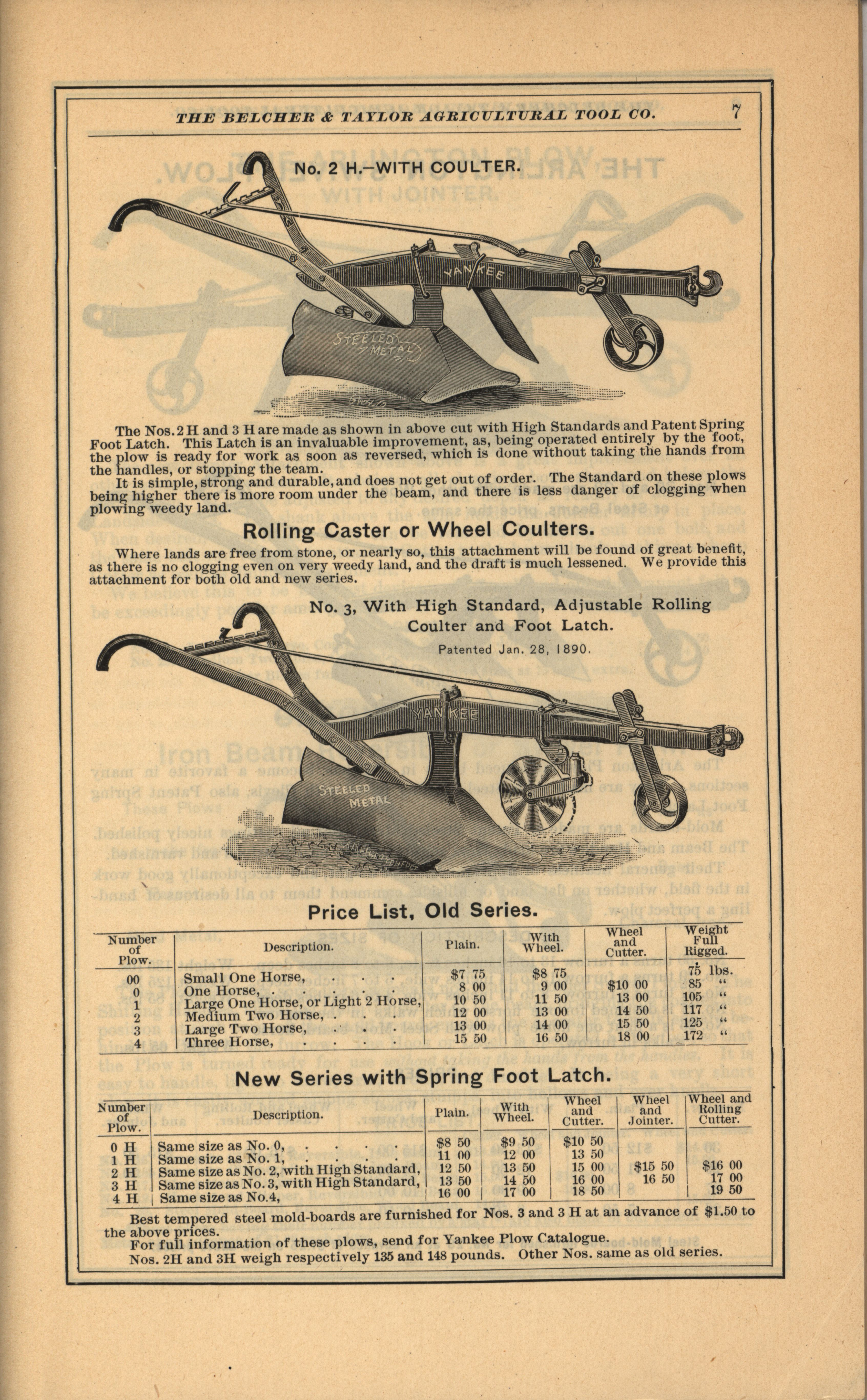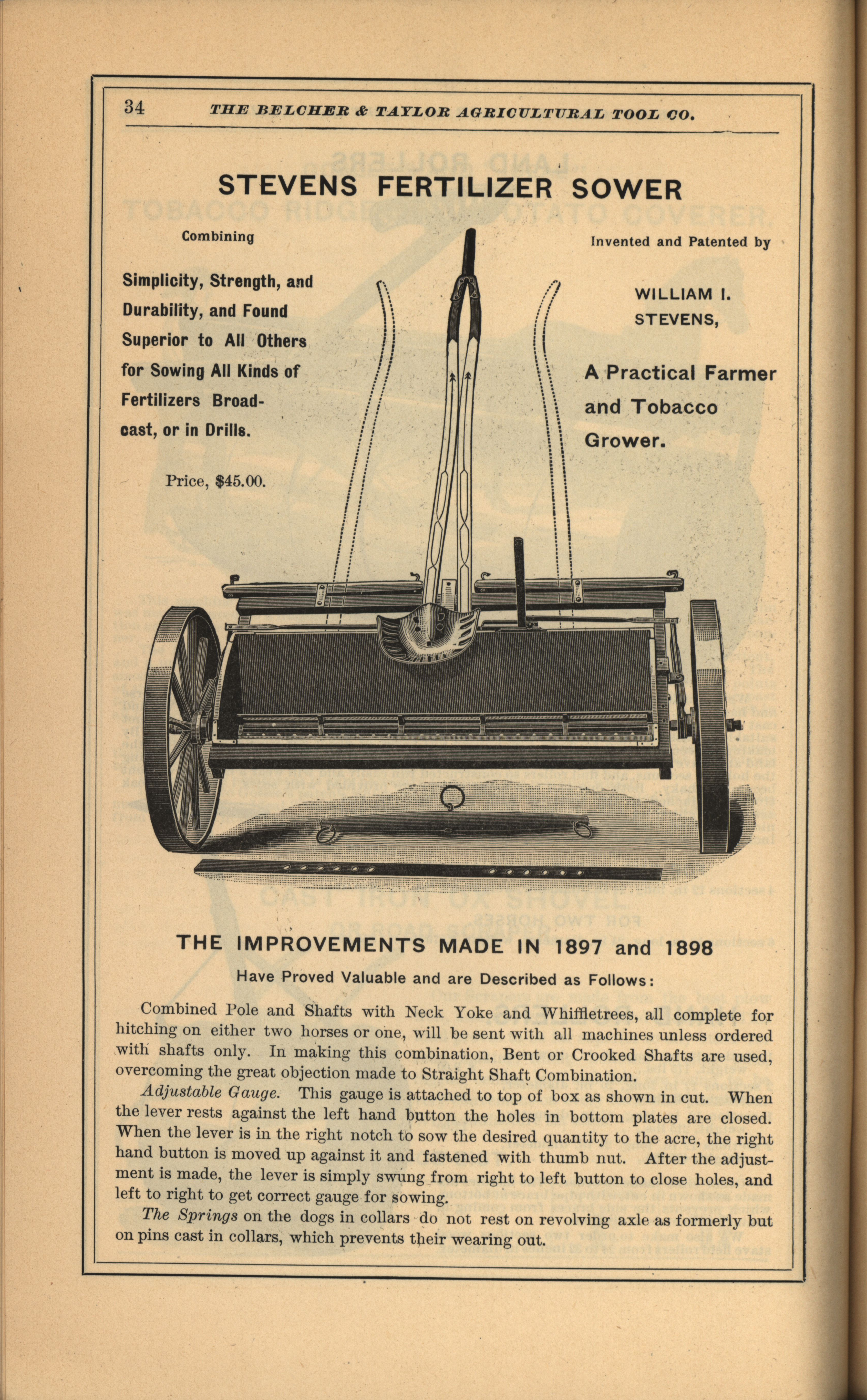 - Catalog describing agricultural products offered by the Belcher and Taylor Agricultural Tool Company, includes illustrations.